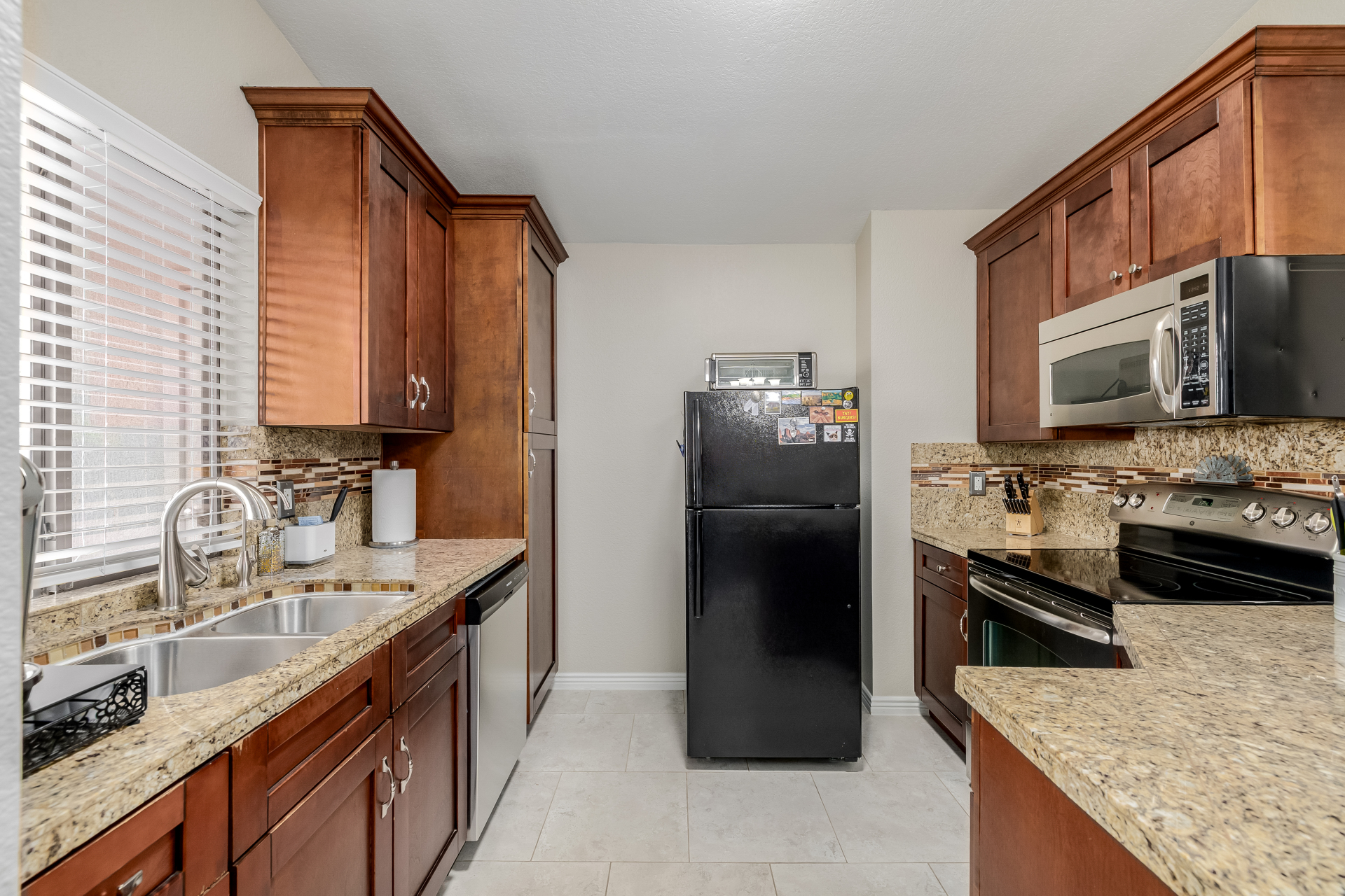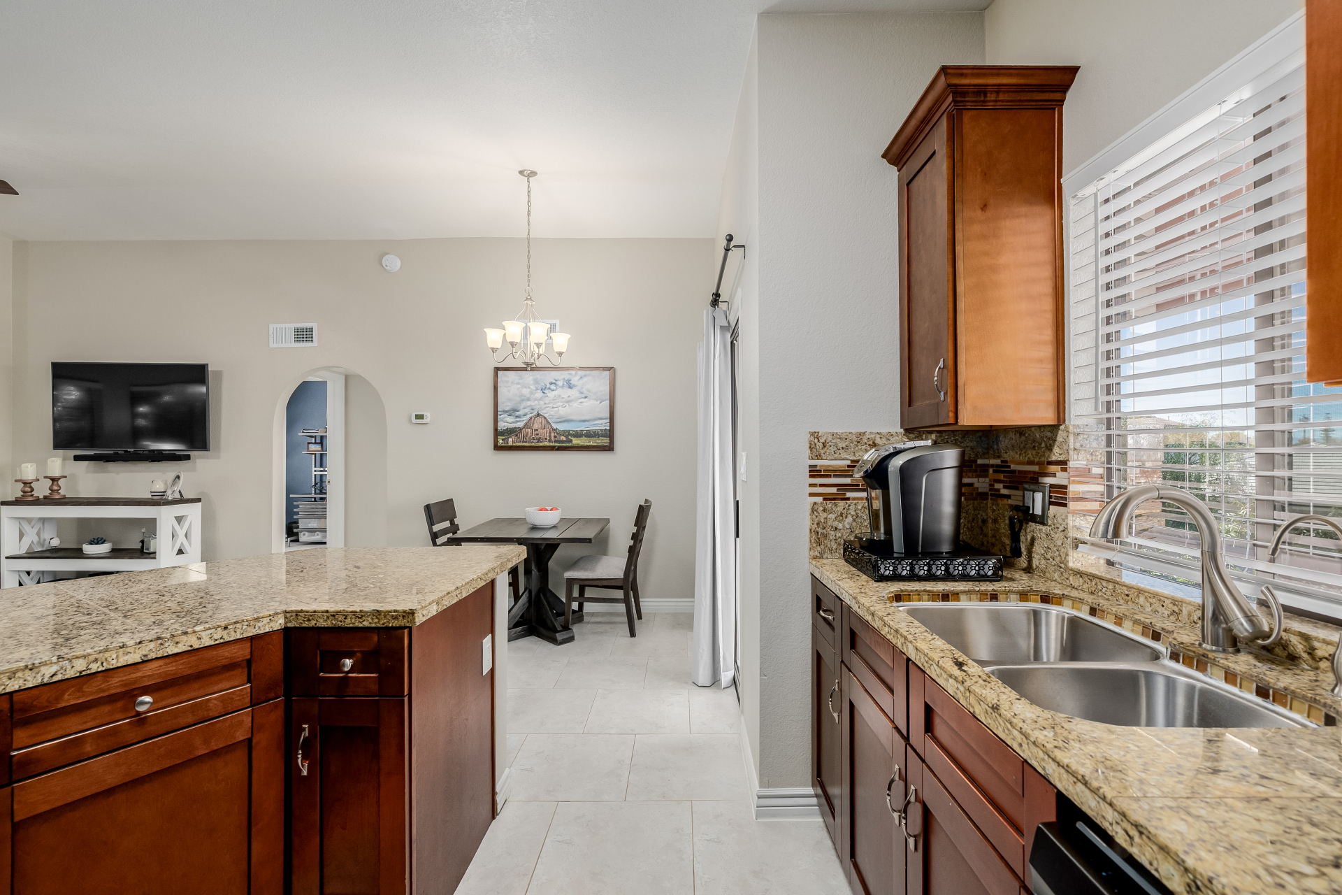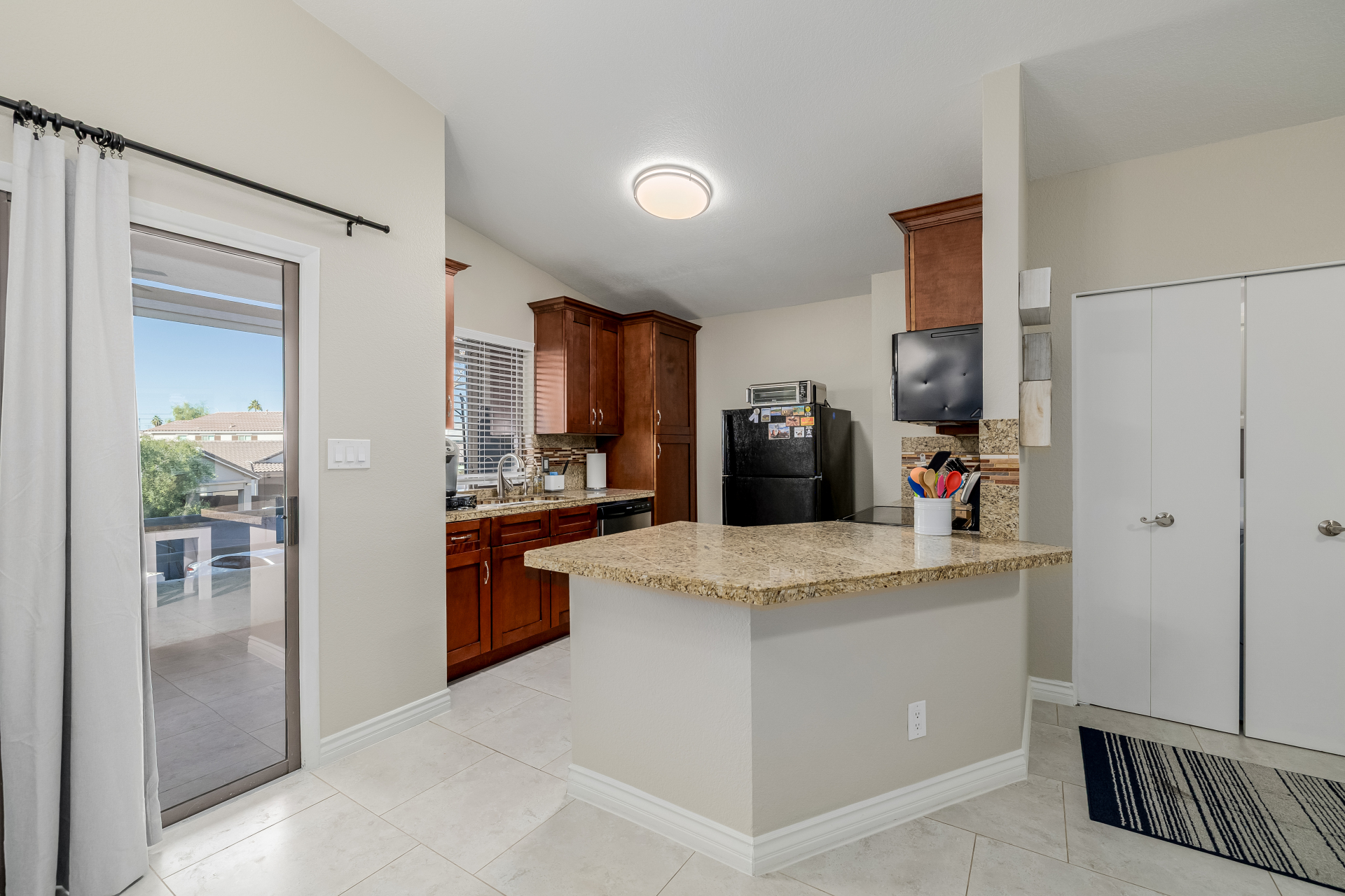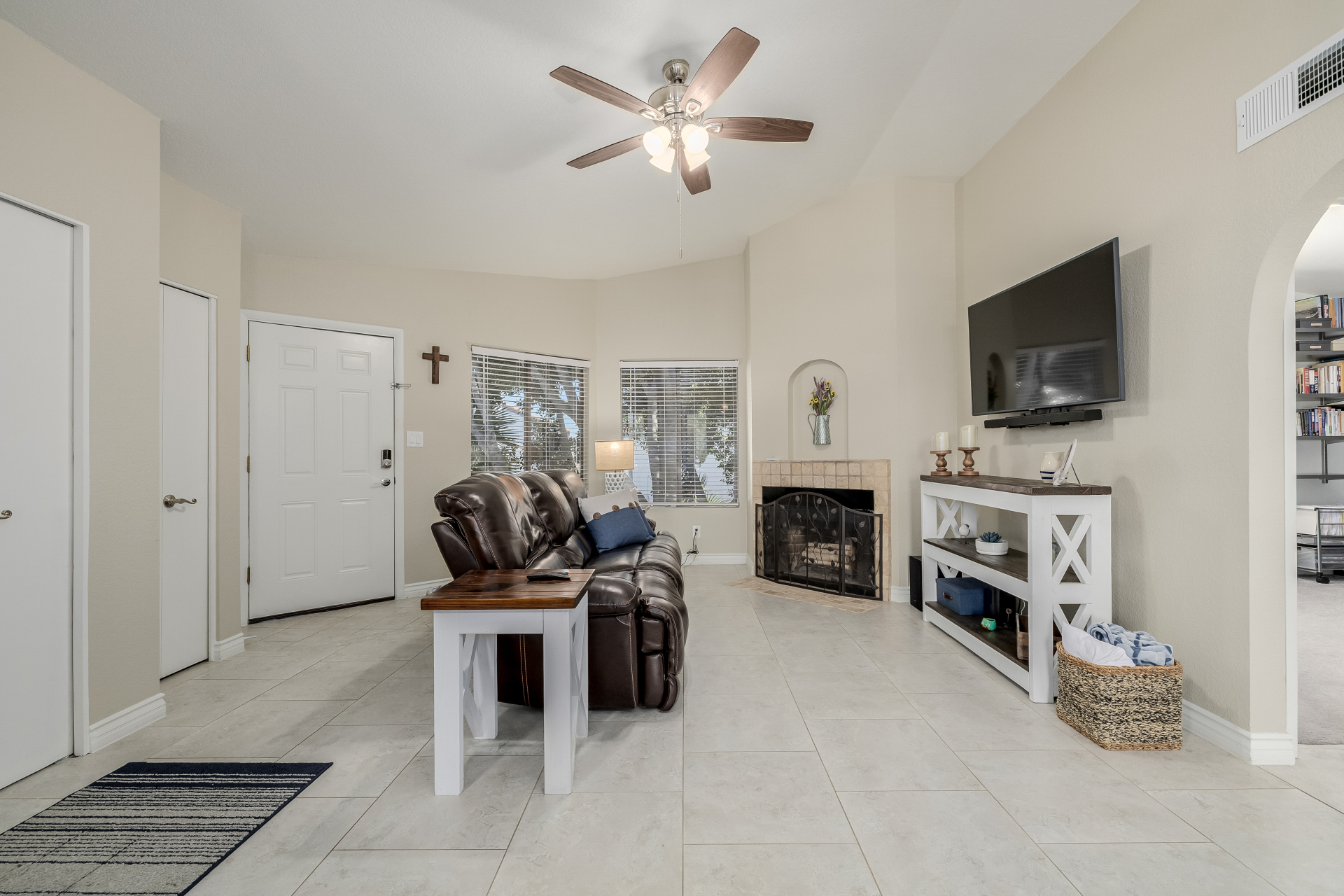 Adorable 2-bedroom upstairs condo in Shadow Run, offering beautiful pool views! The inviting interior showcases abundant natural light, a neutral palette, vaulted ceilings, and tile flooring w/carpet in bedrooms. With a fireplace as the focal point, the desirable great room exudes warmth & charm. The kitchen boasts SS appliances, granite tile counters/backsplash, ample wood cabinetry w/crown molding, and a peninsula w/breakfast bar. The primary bedroom features a private vanity area connected to a walk-in closet, with direct access to the Jack & Jill bathroom for added convenience. If you want to relax or enjoy BBQ, the cozy balcony awaits you! The assigned parking space is a plus. Take advantage of the Community pool and spa! Excellent Chandler location close to everything. Welcome home!