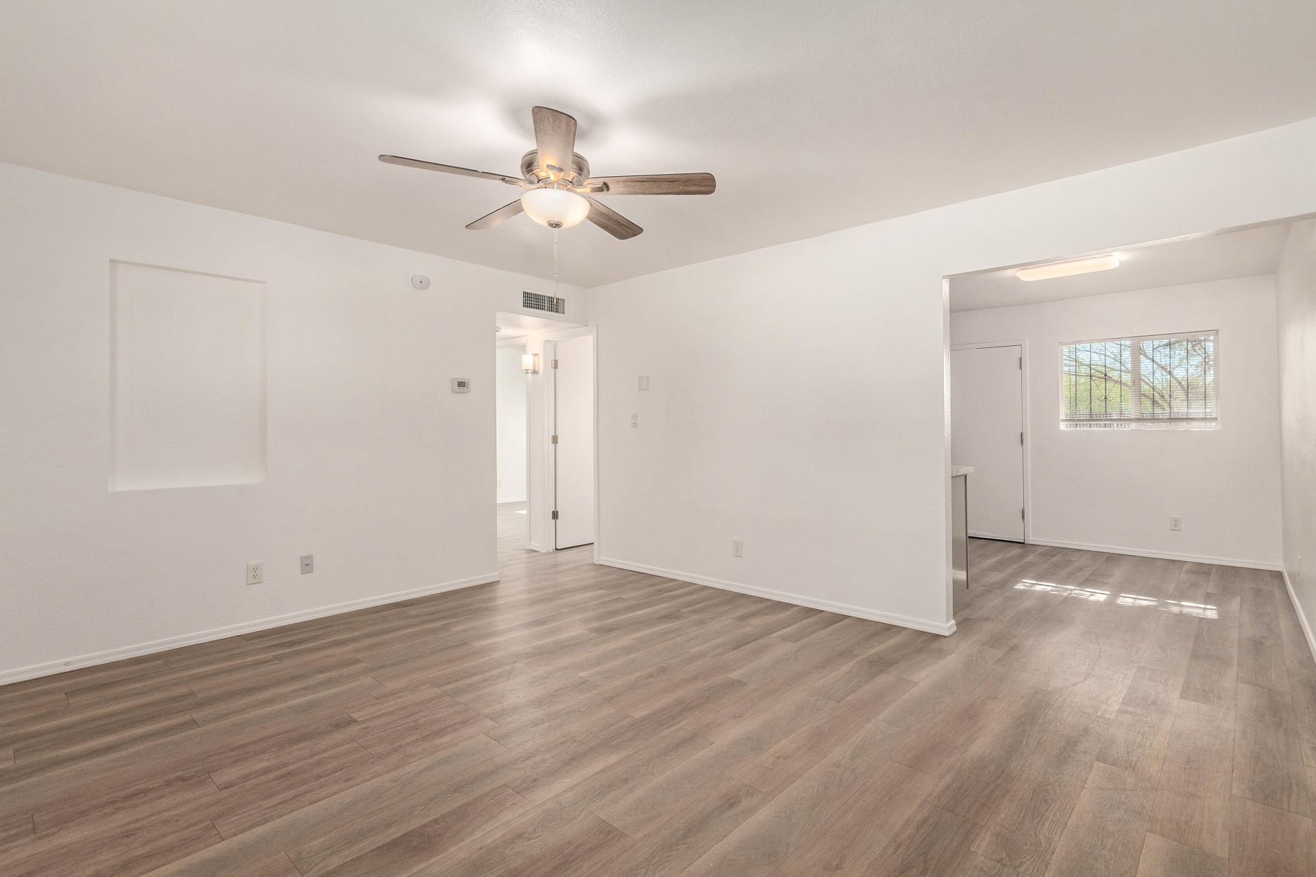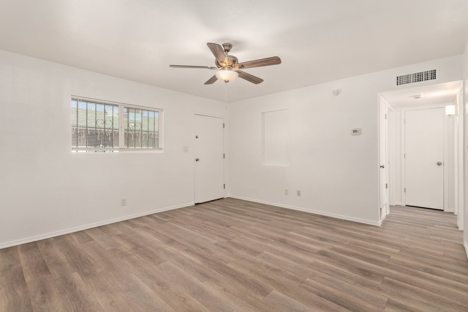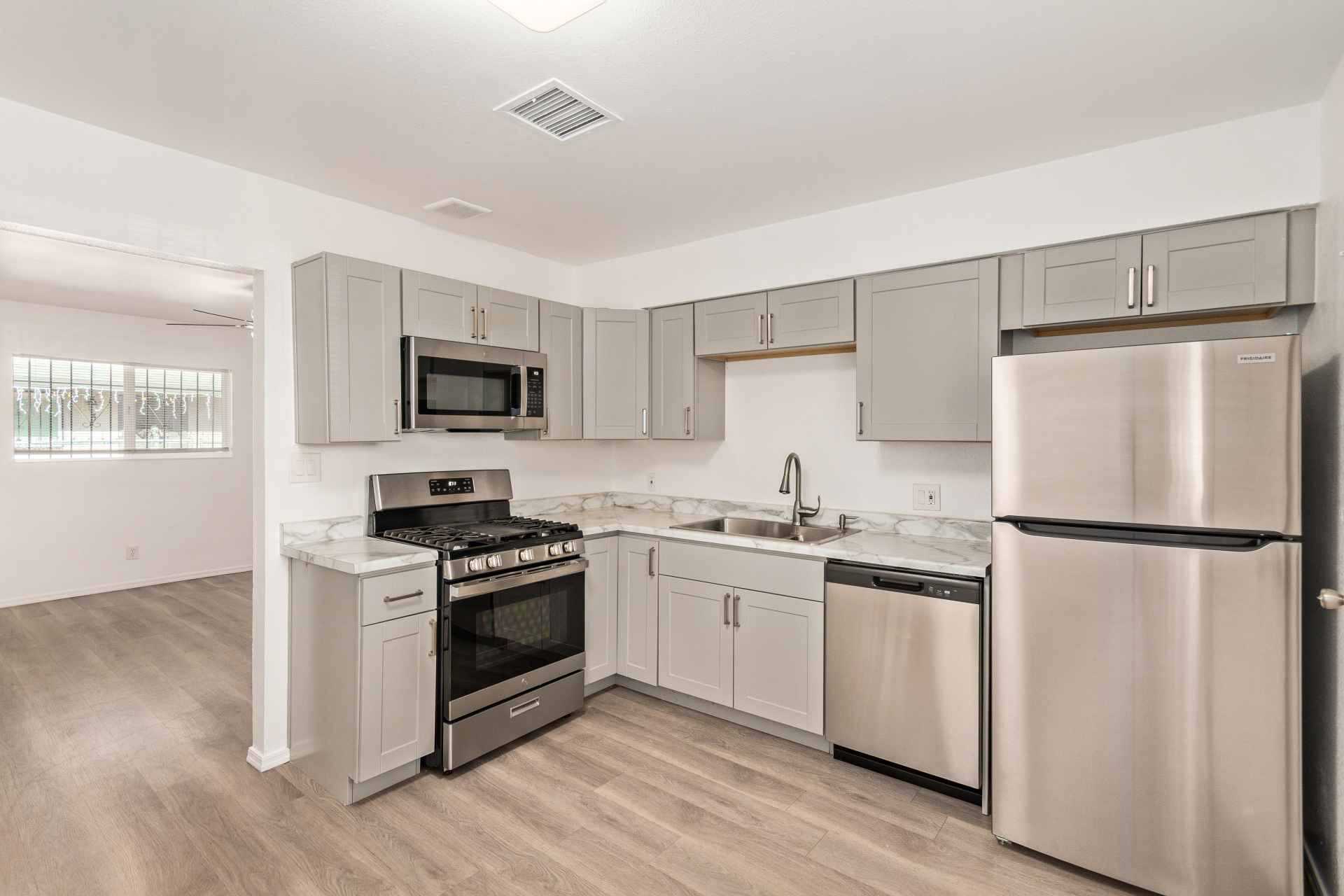 Discover an incredible opportunity with this well-maintained 8-unit commercial property! Ideal for investors or owner-users, this building offers versatility, strong visibility, and convenient access for customers and tenants. One of the vacant units is ready to shine, featuring wood-look floors, a welcoming front area perfect for client interaction, and a clean, functional kitchen space with SS appliances, ample counters, and neutral cabinetry—great for breakroom use or light prep needs. The private back room delivers comfort with its own bathroom, while the rear covered area provides extra room for storage or customization. With plenty of parking and adaptable spaces throughout, this property is packed with potential. Come and experience it for yourself!
