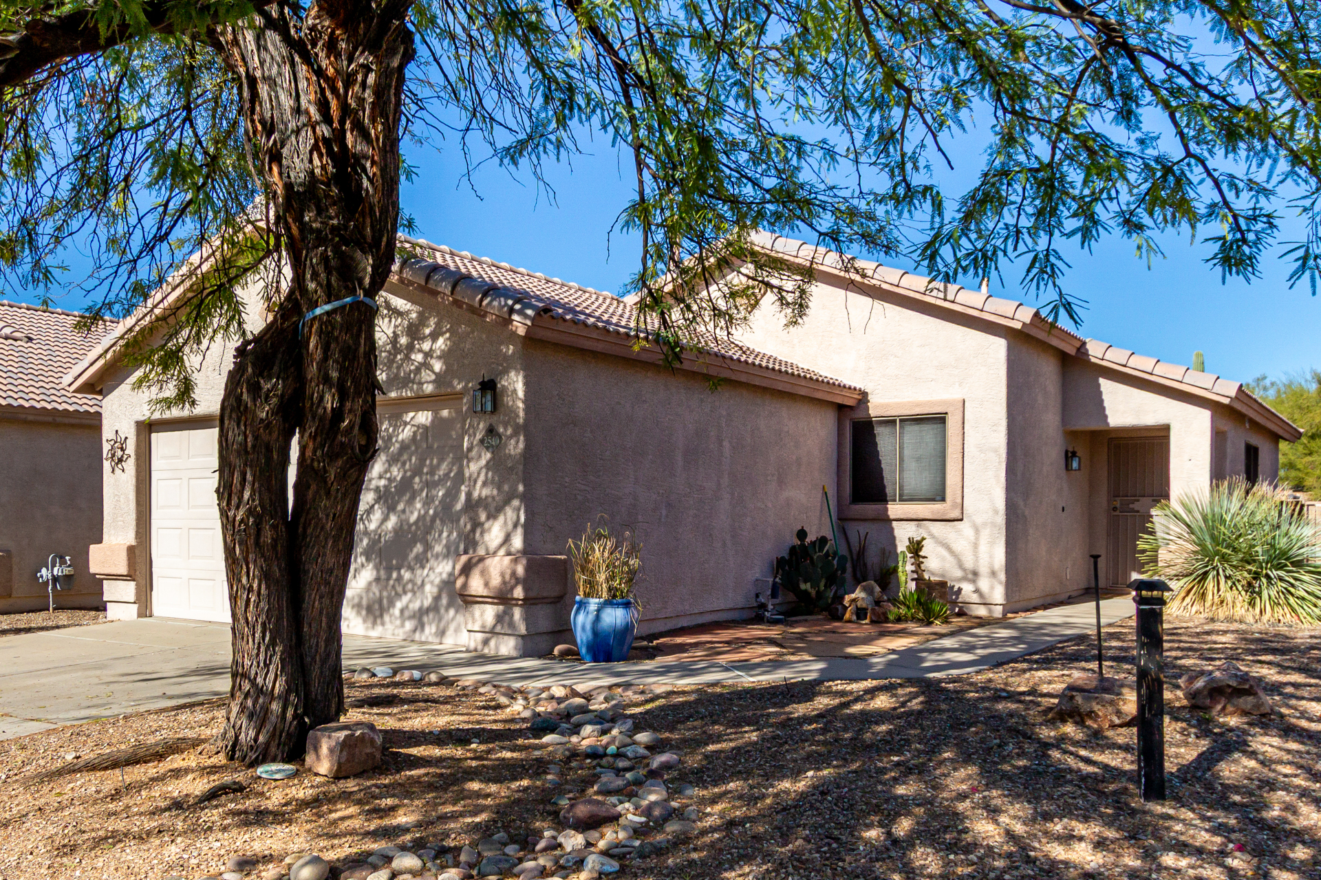 You will instantly love this updated 2 bedroom, 1 bath home in the gated Mona Lisa Community with lovely views! This move-in ready property, updated throughout with new interior paint, stainless steel appliances, gas range with stainless hood, and no carpet. Bright kitchen opens to living area that overlooks the private backyard with covered patio, pavers and turf for enjoying lovely Arizona evenings. Enjoy private location with no homes in the back, storage in the backyard, a durable tile roof, and a 2-car garage. Conveniently located near the YMCA, schools, Foothills Mall, near restaurants and shopping. A fantastic Tucson find!