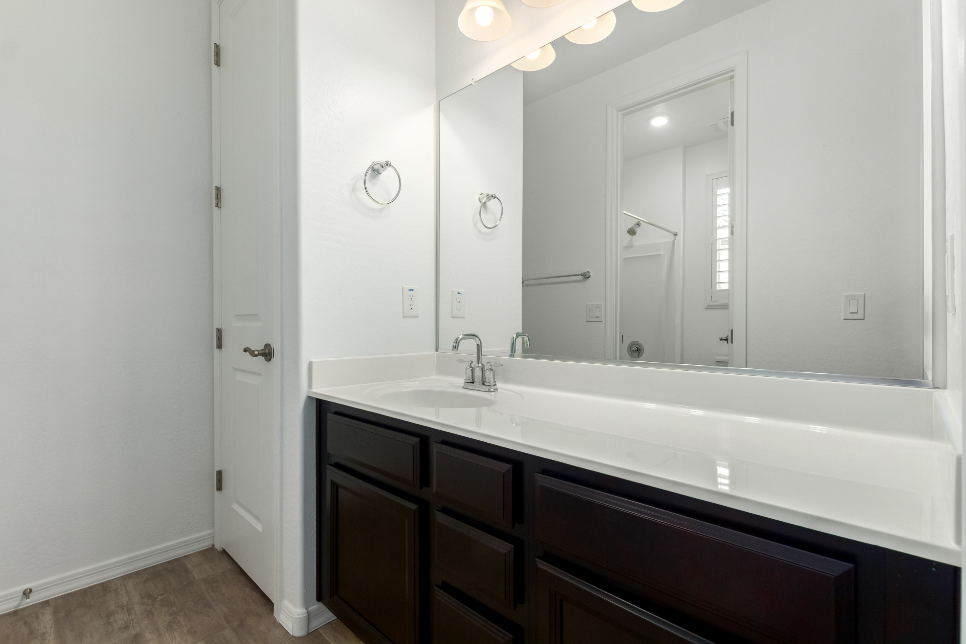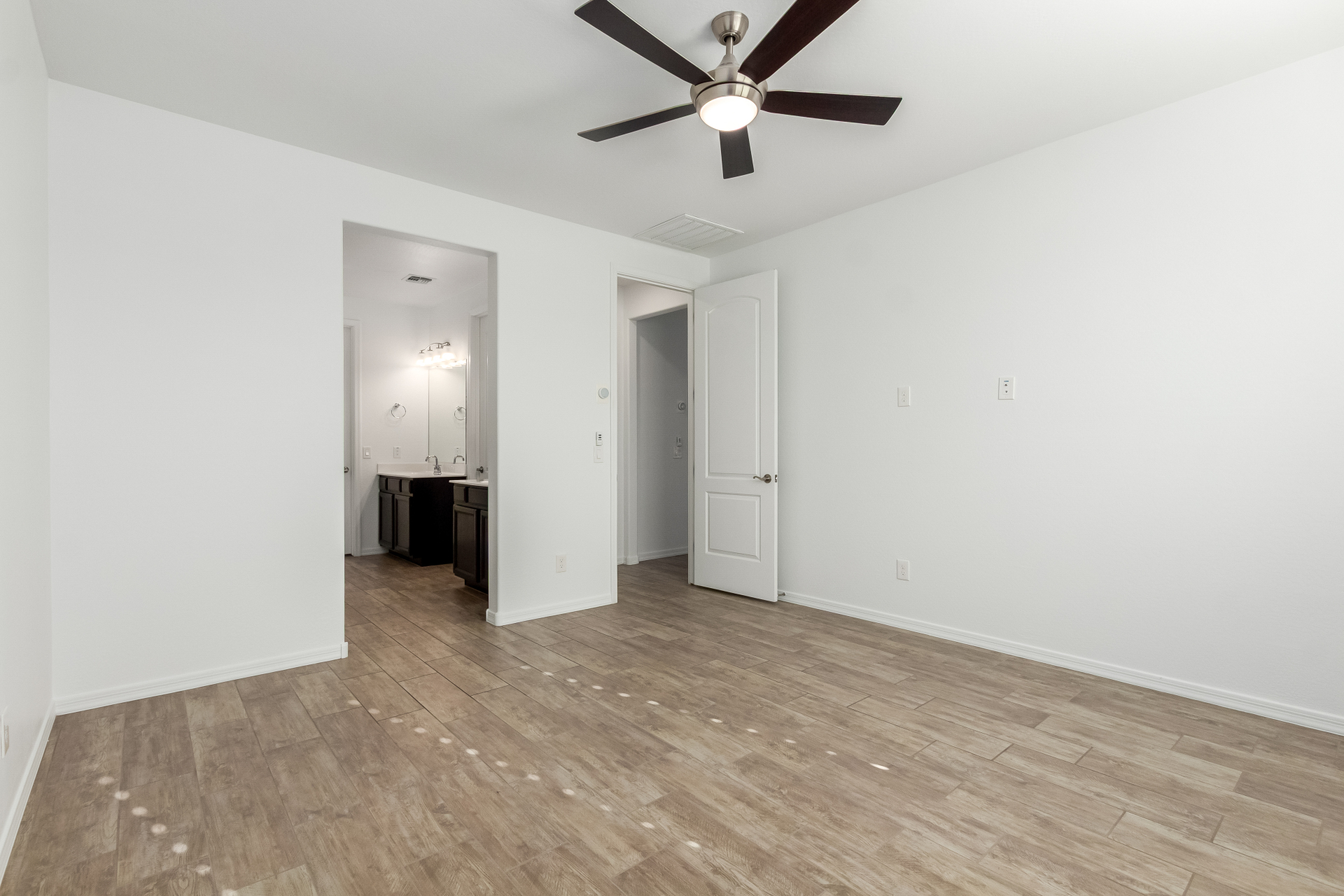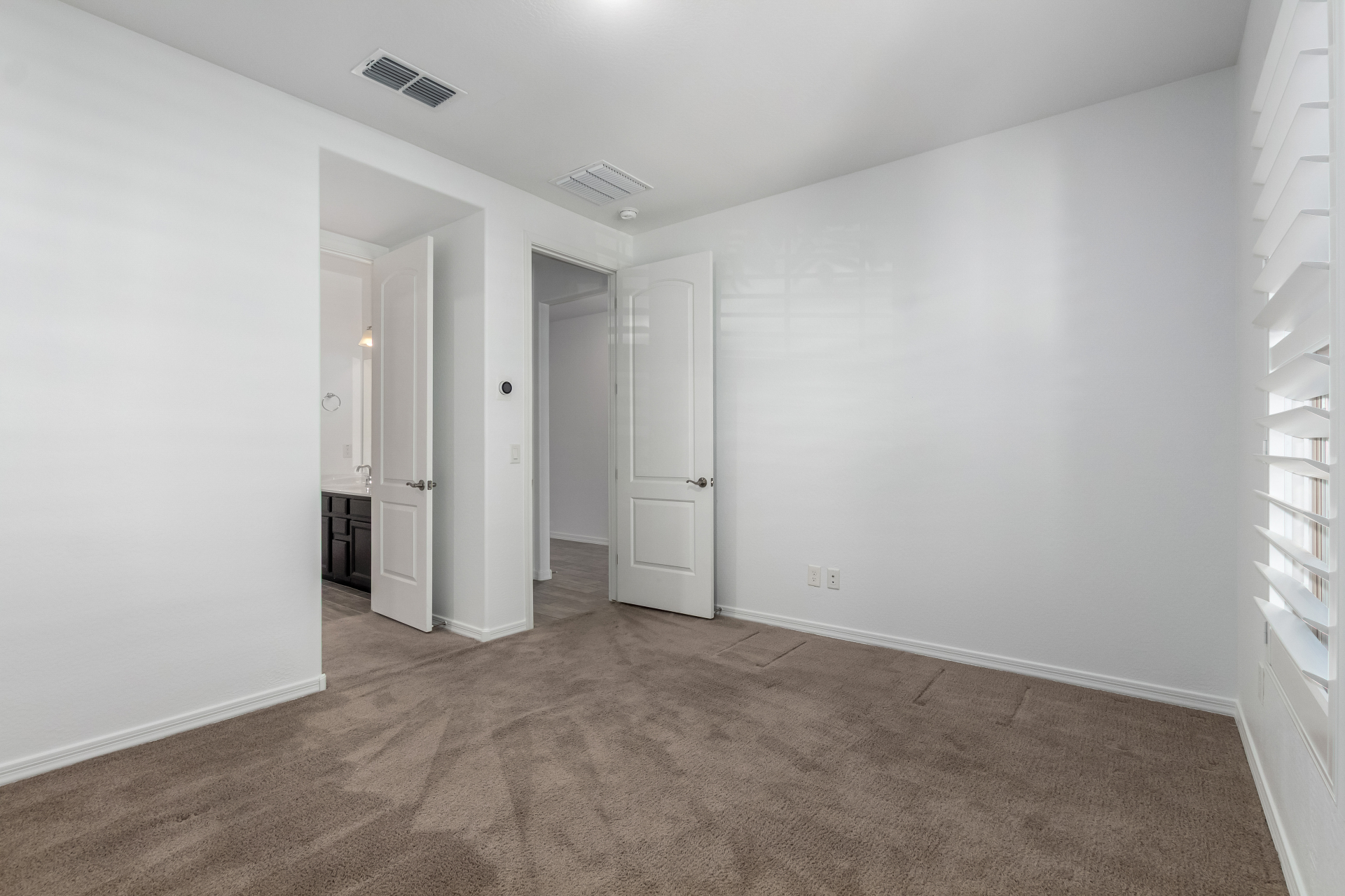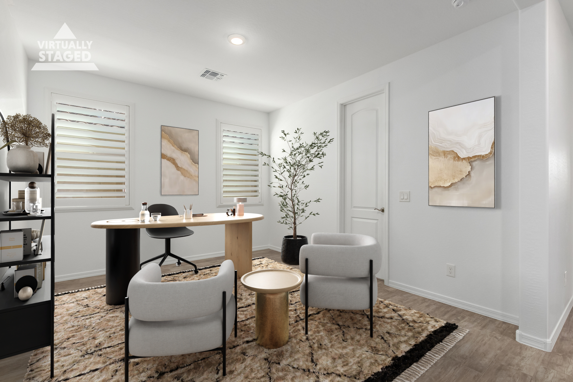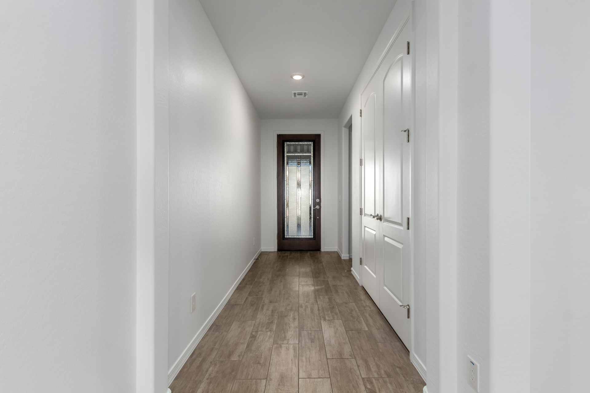 Start living in this upgraded single-level home offering a 2-car garage, stone accents, and a cozy front porch! Inviting hallway leads to the spacious open floor plan enhanced by wood-look tile flooring, abundant natural light, plantation shutters, and fresh paint throughout. Upscale kitchen is a cook's delight, fully equipped with stainless steel appliances, ample espresso cabinets adorned with crown moulding, a walk-in pantry, granite counters, a prep island with a breakfast bar, and recessed lighting that illuminates every corner. Sizable main bedroom provides a bathroom with two vanities and a walk-in closet. Flexible den can be used as an office, game area, or reading nook. Enjoy outdoor living in the large backyard, complete with a covered patio and artificial turf. Don't miss!