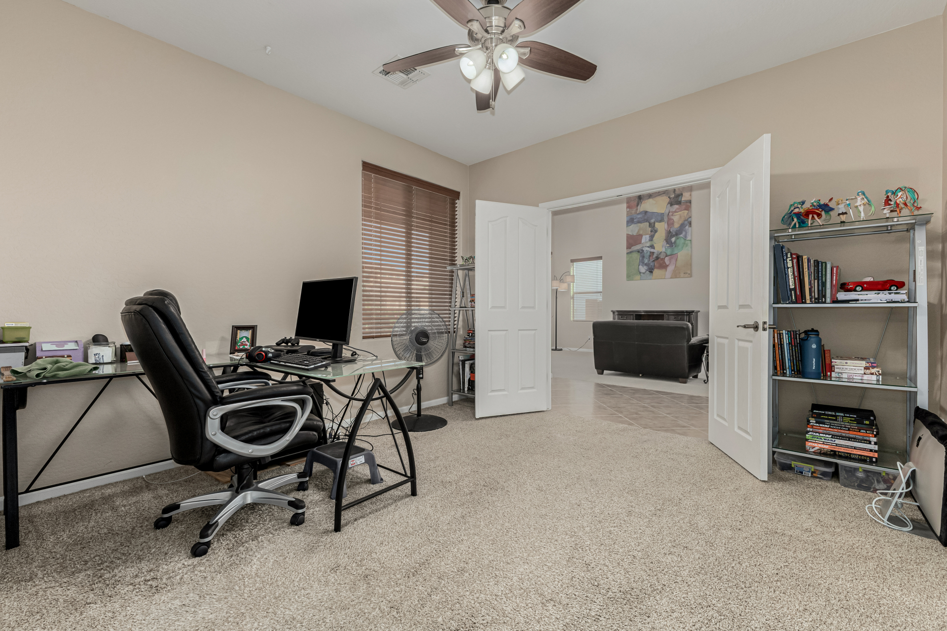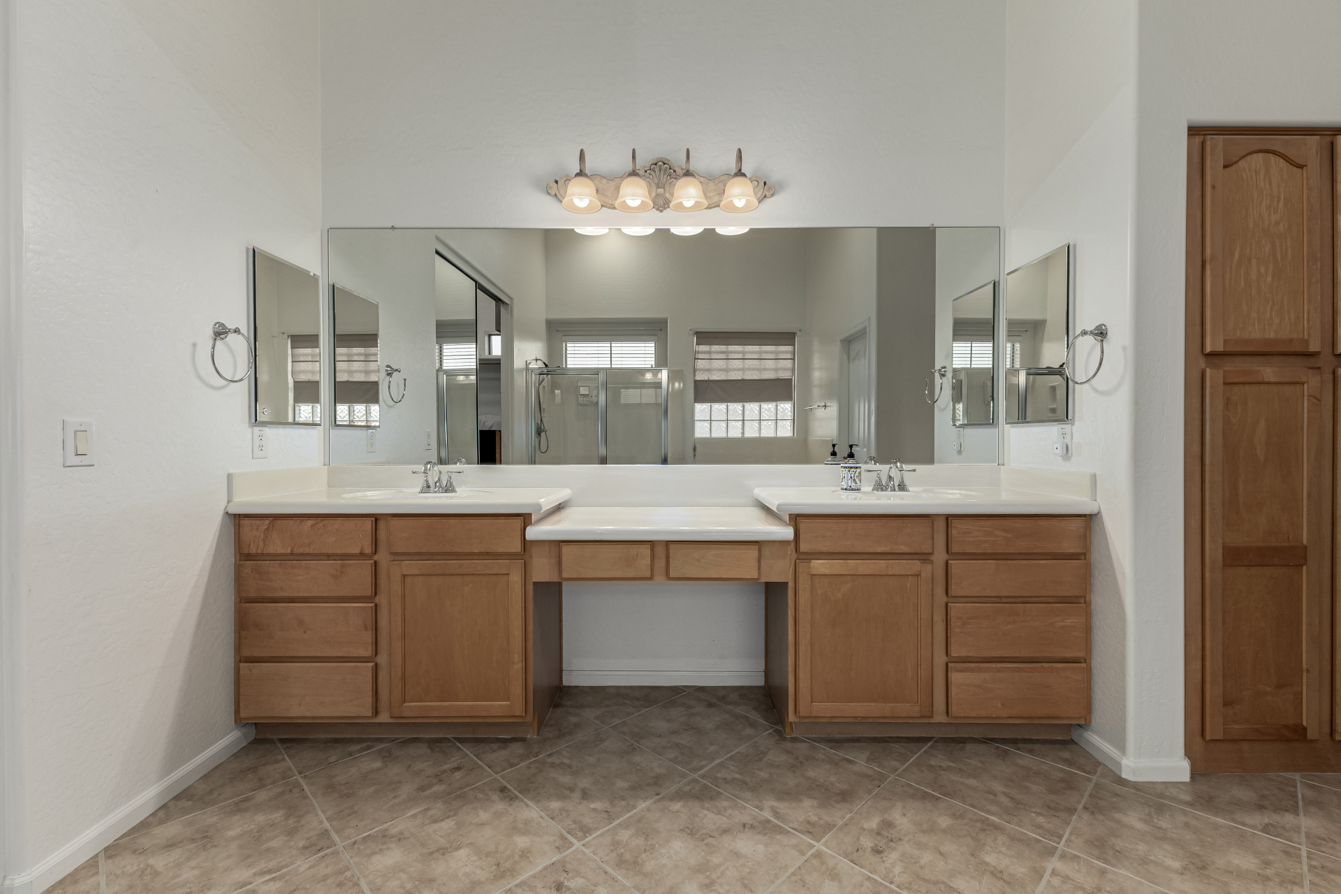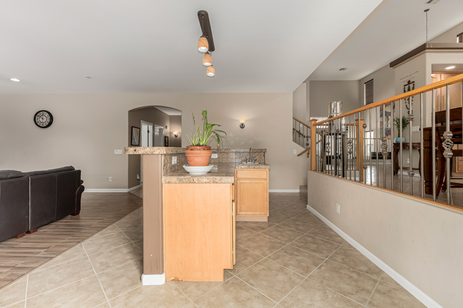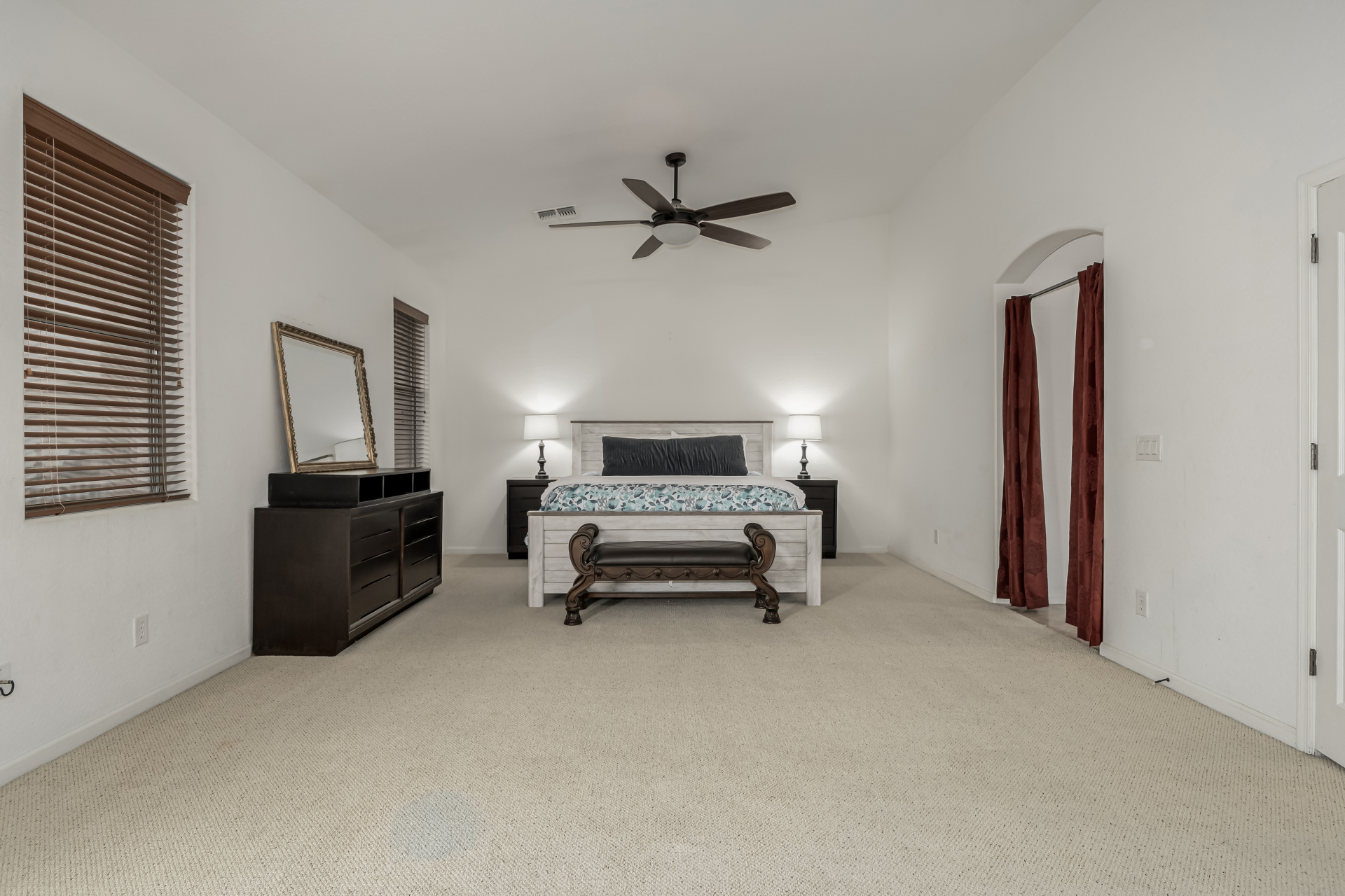 Own this stunning, spacious home w/ flexible living spaces Soaring ceilings welcome you into elegant formal living & dining areas, complemented by spacious loft w/dual fan & wrought-iron railing. Multiple indoor & outdoor living spaces include a huge Cvd front porch, mountain-view deck & Cvd patio +brick-paved backyard seating—perfect for entertaining. This versatile floor plan features 3 bedrms/2 baths plus loft UP & 2 bedrms +full bath down--ideal for in-laws & a home office. A Gourmet kitchen offers SS appls, gas range, granite C-tops+ backsplash, island, pantry, desk, bay wdw w/pool views all overlooking expansive Family Rm w/blt-in entertainment niche & wet bar. Luxurious mstr suite w/ private access to a mtn-view deck, spa-like bath w/jetted soaking tub, huge shower, dual sinks.