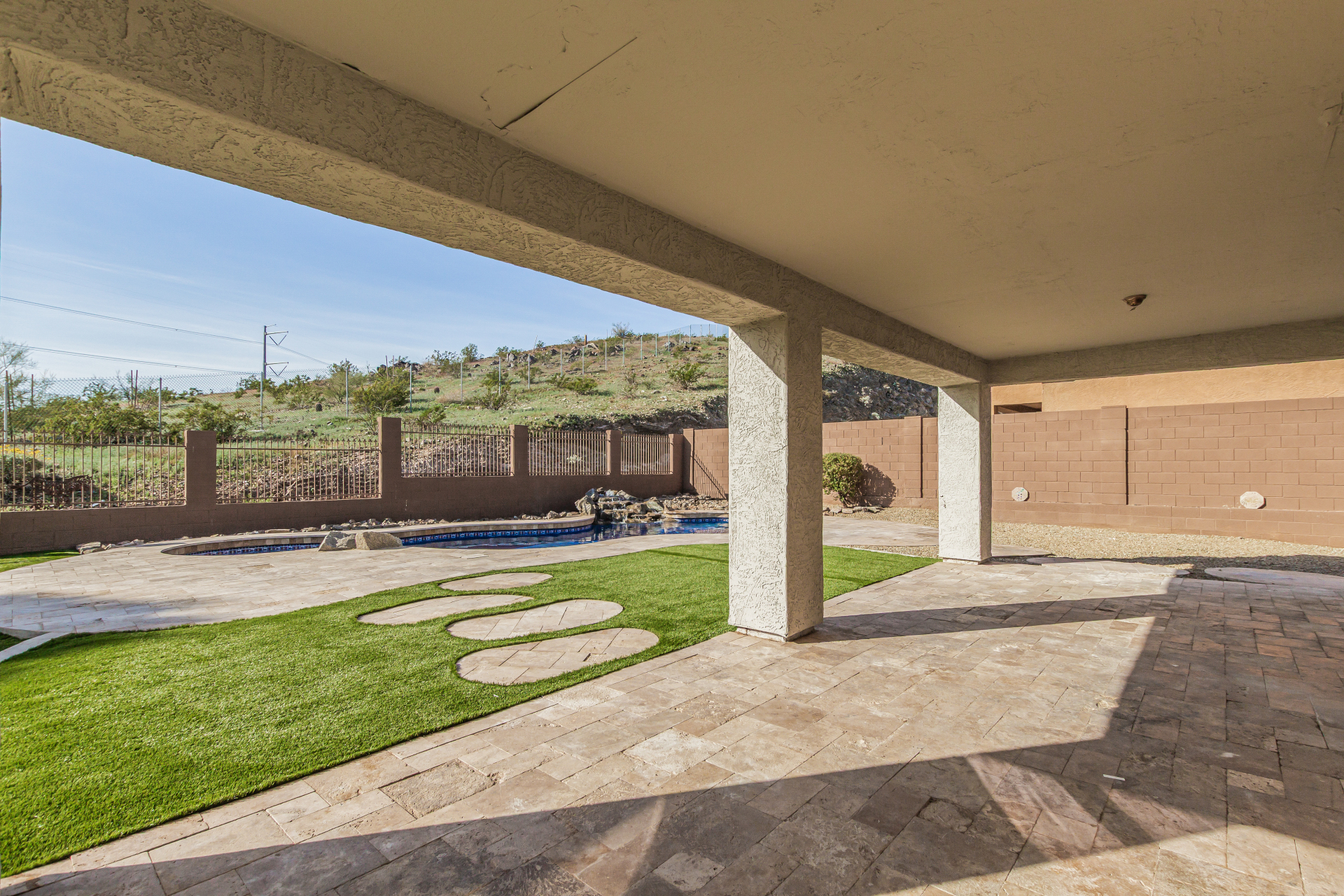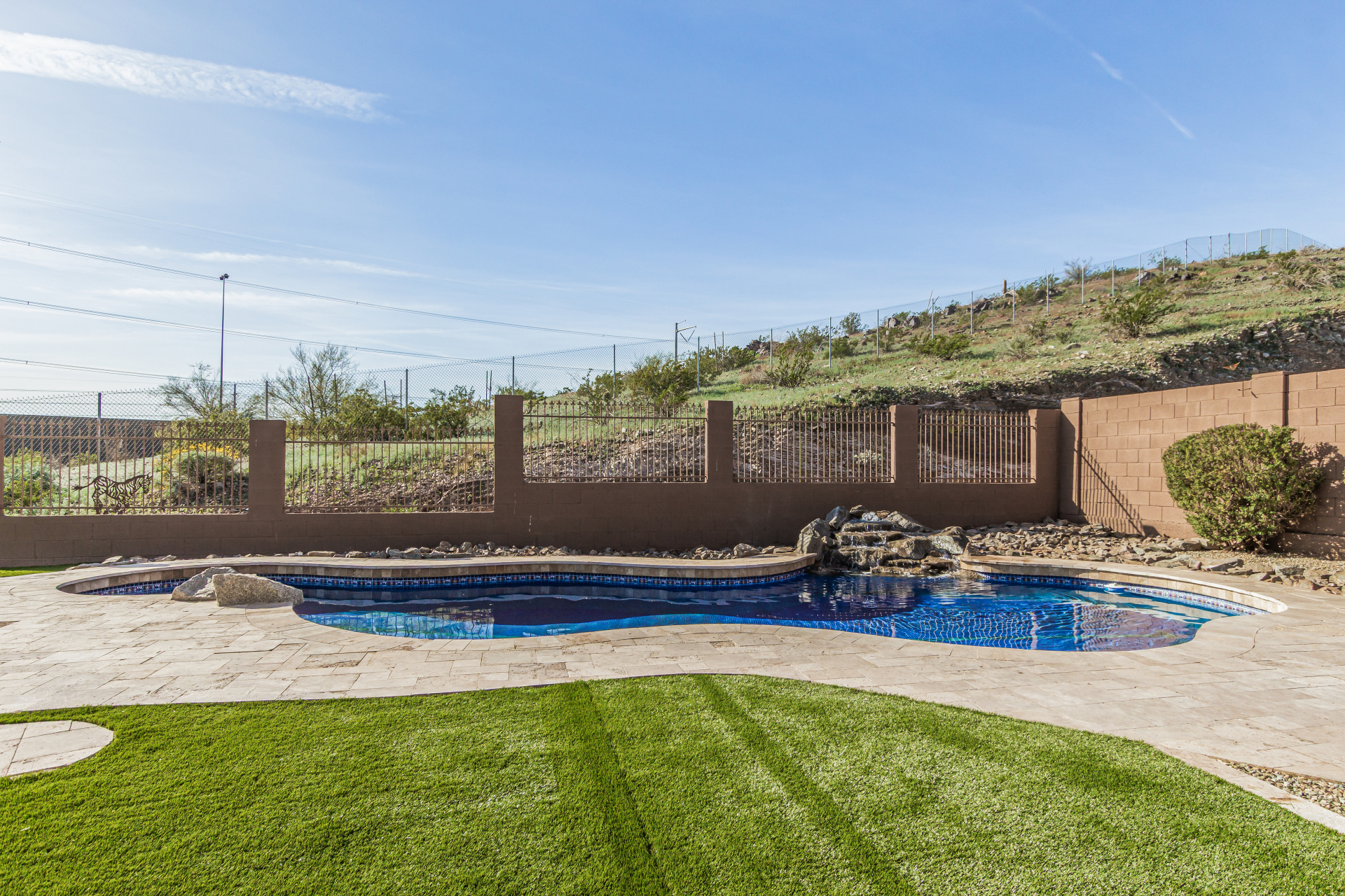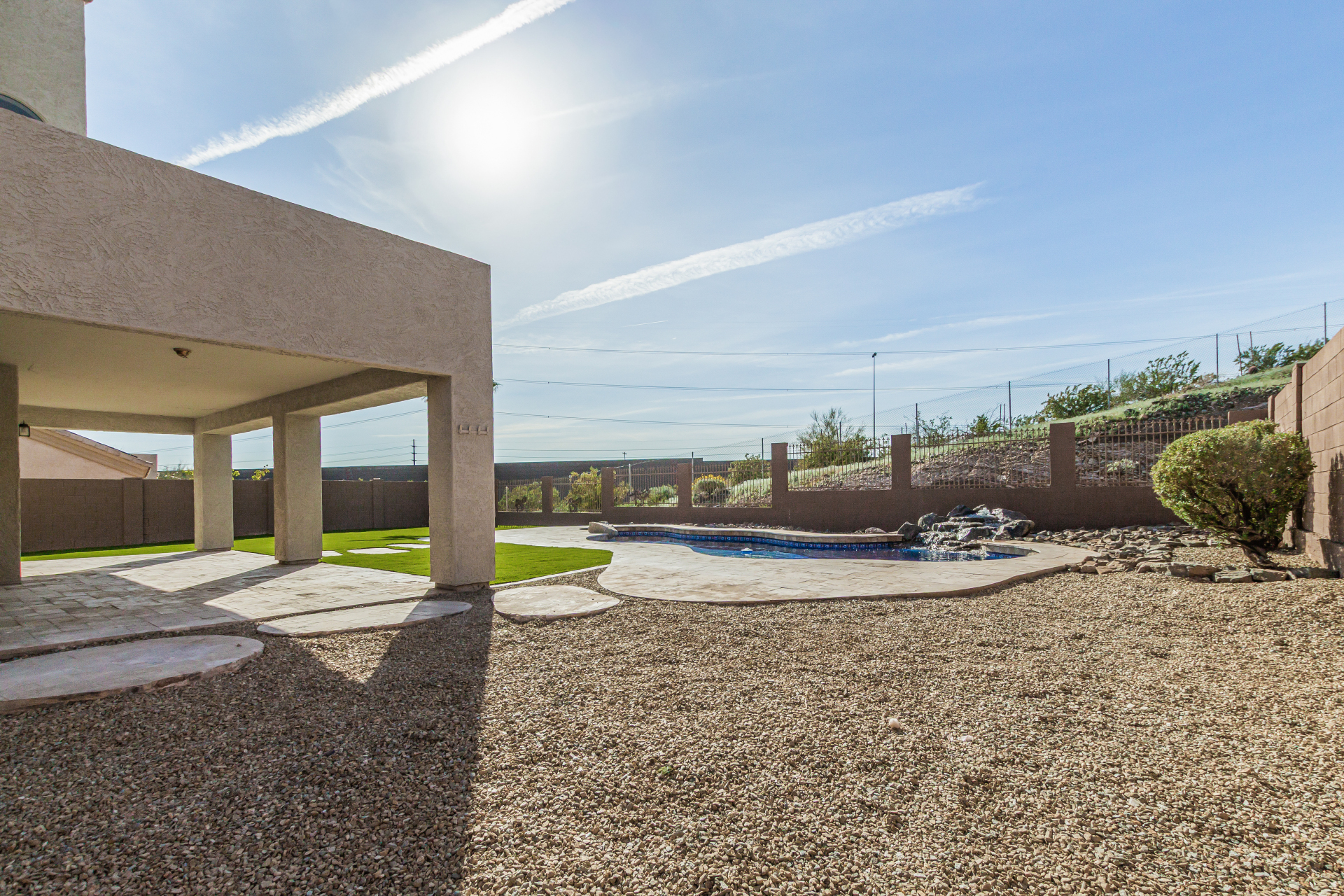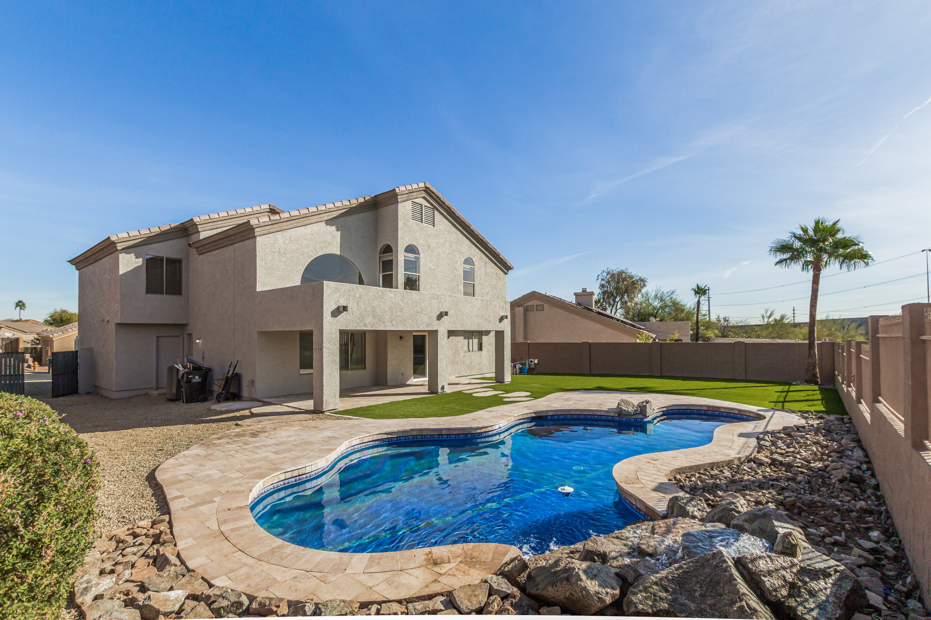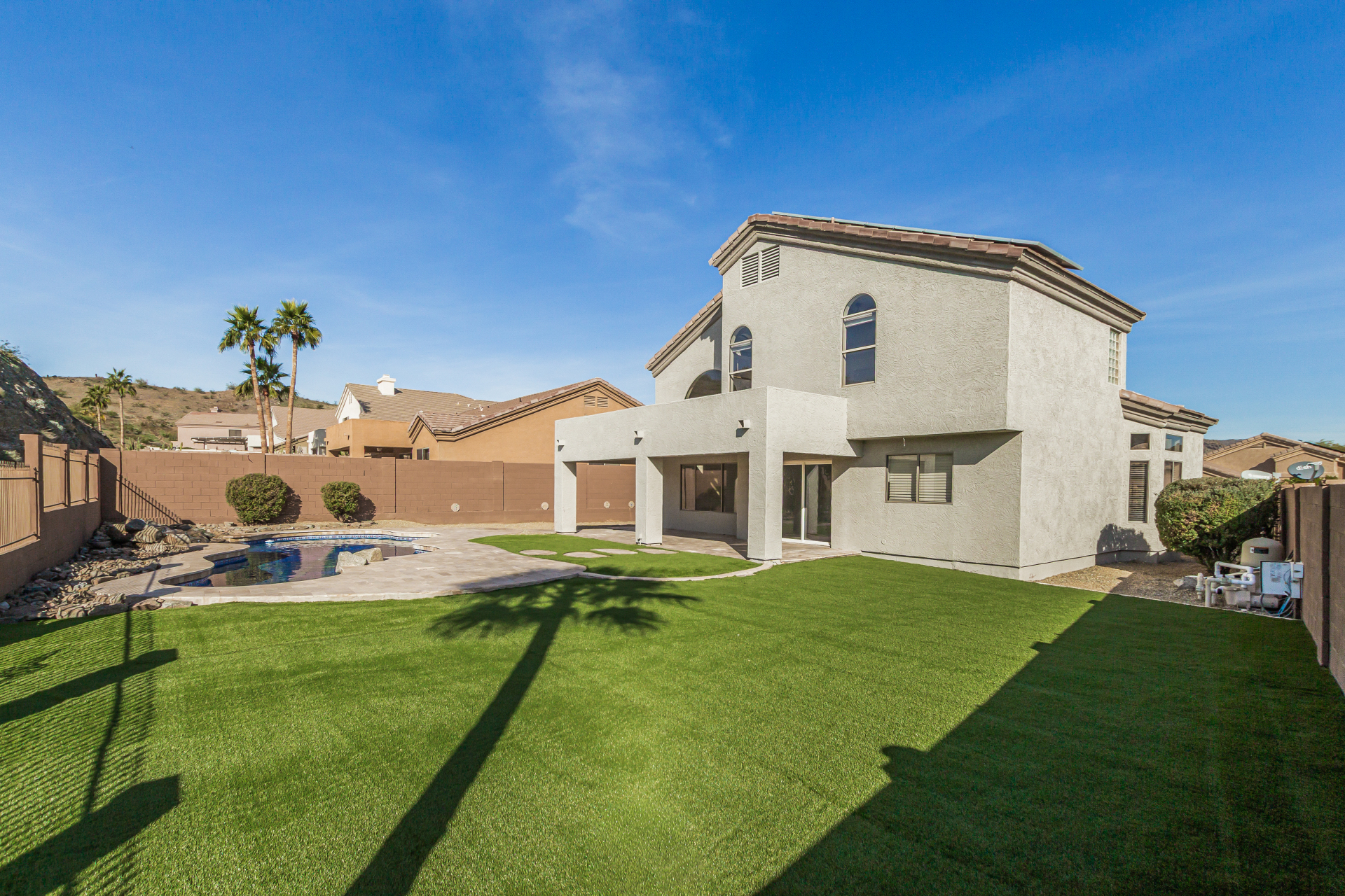 Beautifully updated 3 bedroom 2.5 bath pool home featuring new amenities which include all new flooring with 18 x 24 inch tile, new carpet, completely remodeled bathrooms, entire new kitchen with new kitchen cabinets, new granite countertops, and all new fresh paint. The outside is a paradise in the desert with a sparkling pool with new pool pumps, and new landscaping. This home has been redone from top to bottom.