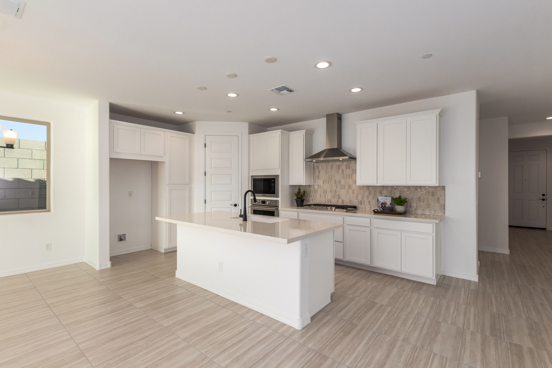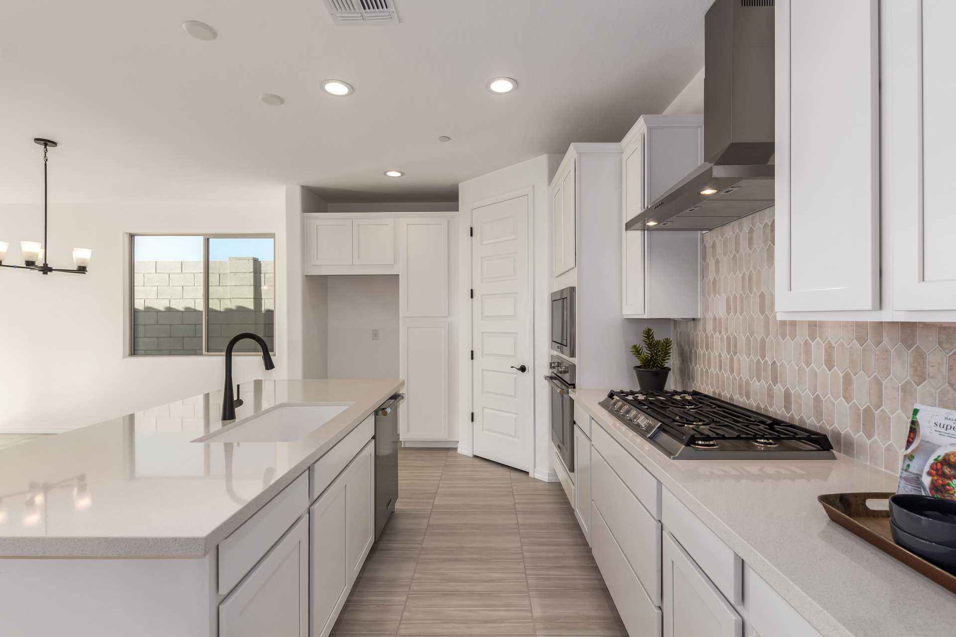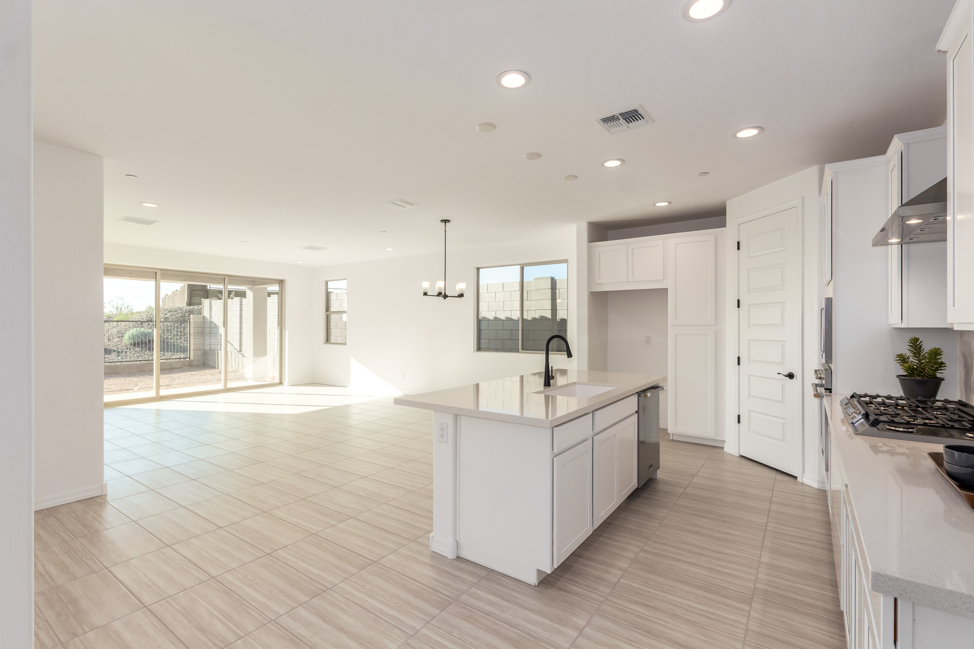 Move-in Ready! The Clover is ONE of the BEST selling Plans at Mystic! Only 1 neighbor on this view fence homesite! The Designer Kitchen, perfect for entertaining- gas cooktop, wall oven, canopy hood, 42'' upper cabinets & quartz countertops +++ Large open great room with Multi sliding door. Pavers at drive, walk & entry. This home is perfect for those looking for a low maintenance lifestyle without sacrificing style & luxury finishes. Mystic is an Amenity rich master planned community with a resort pool, Rec. center, year -round events. Prime Peoria location with easy access to the Loop 303, Lake Pleasant, shopping, restaurants and only 20 minutes to TSMC.