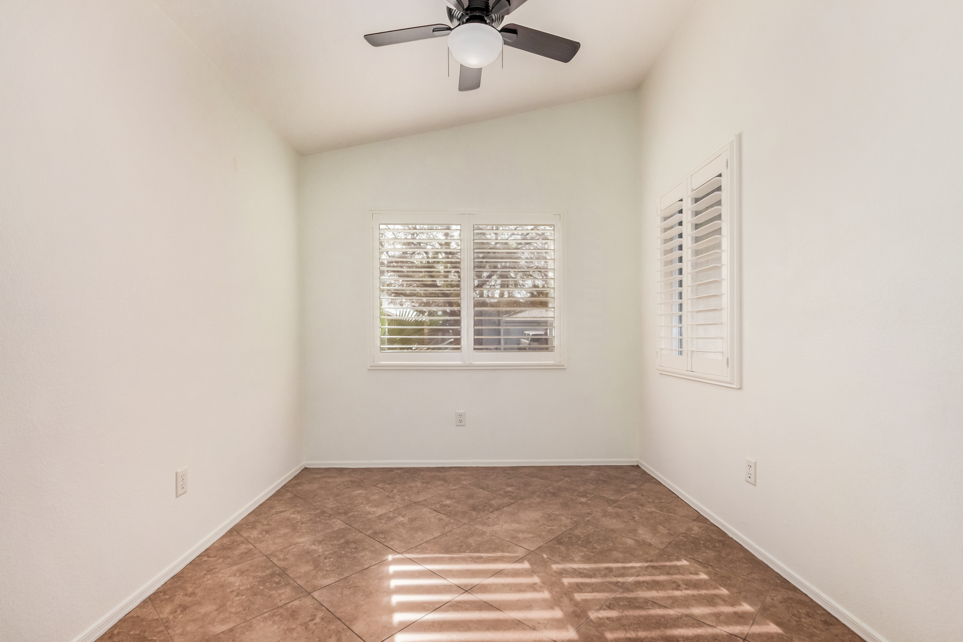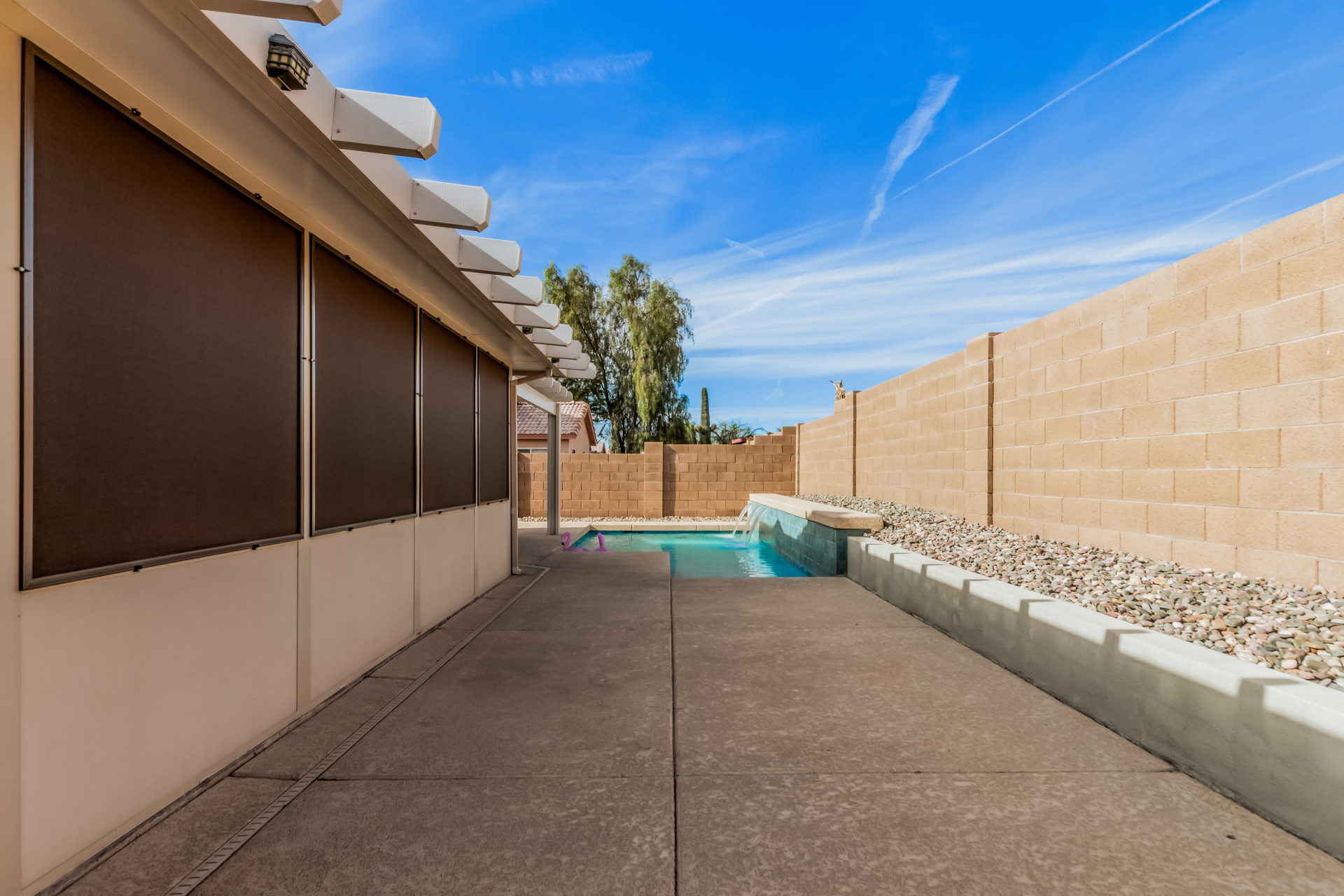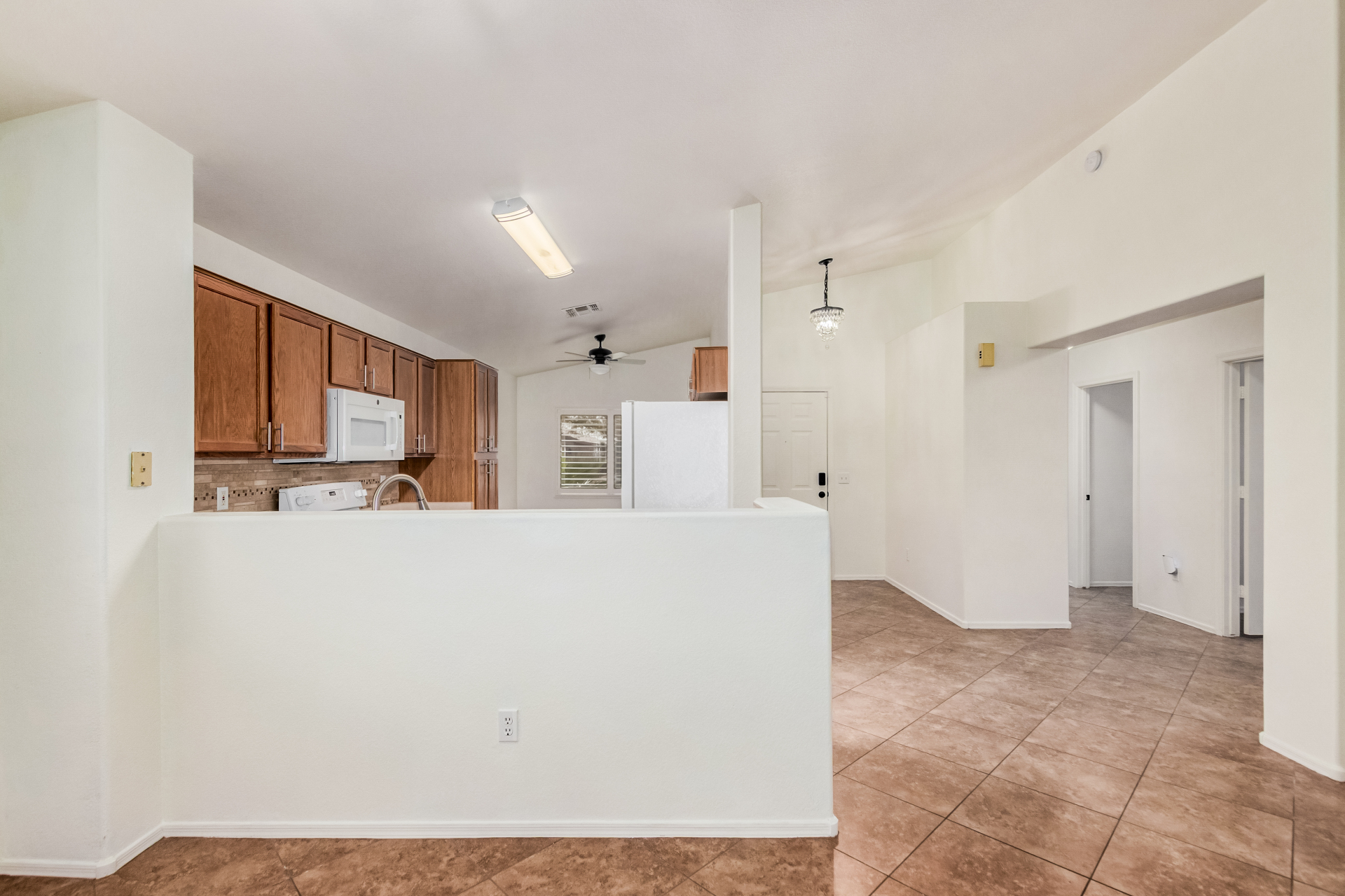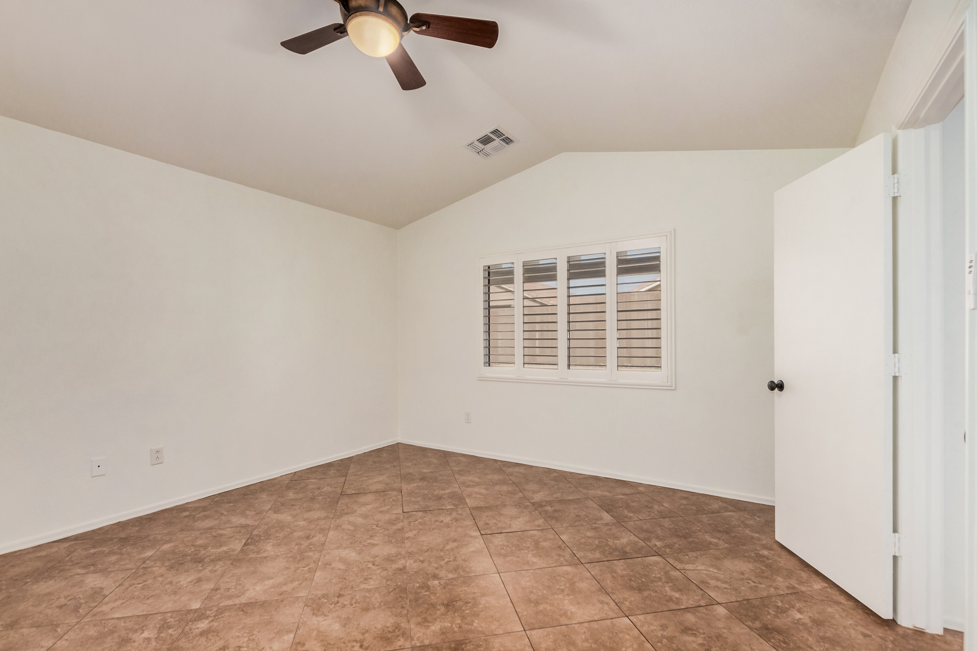 Fall in love with this charming single-level home in Meridian Hills! Inside, vaulted ceilings, tile floors, plantation shutters, and a warm, inviting living room create a space that instantly feels like home. The kitchen is ready for everyday living and entertaining, featuring matching appliances, wood cabinetry, a tile backsplash, and a convenient breakfast bar. Unwind in the main bedroom complete with a walk-in closet and private bathroom. Enjoy peaceful mornings or relaxing afternoons in the Arizona room, then head outside to the backyard with a patio and sparkling pool perfect for soaking up the Arizona lifestyle. The garage offers handy attached cabinets for extra storage. This home truly has it all. Come see it and fall in love!
