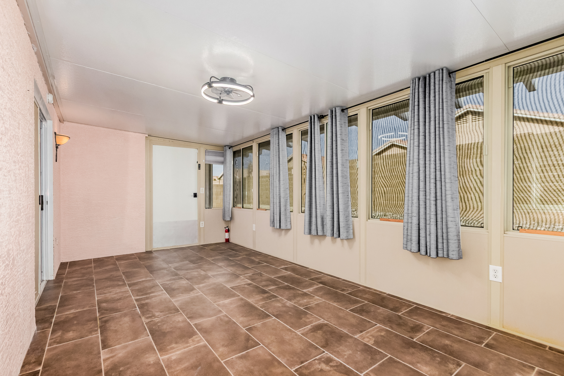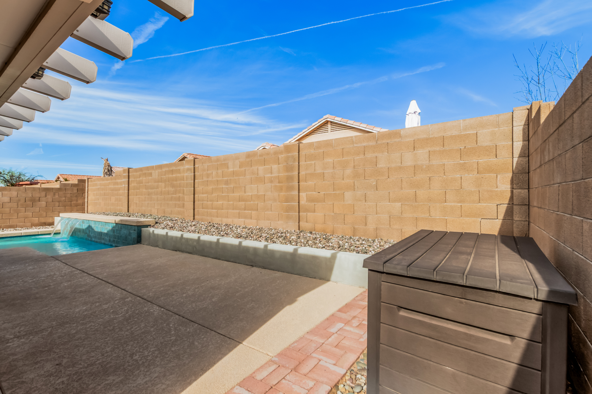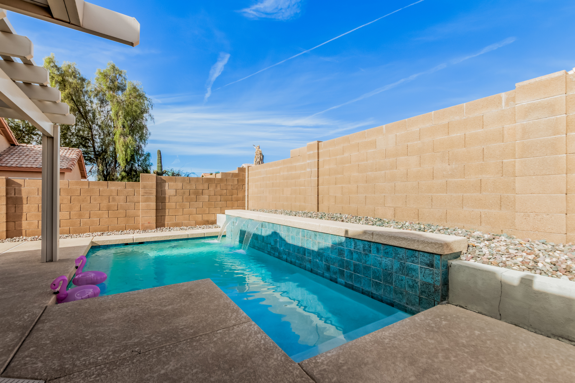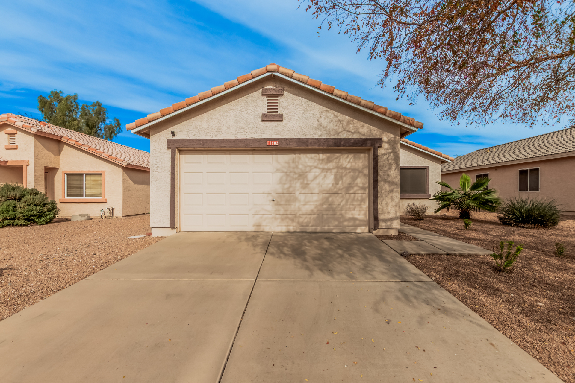 Fall in love with this charming single-level home in Meridian Hills! Inside, vaulted ceilings, tile floors, plantation shutters, and a warm, inviting living room create a space that instantly feels like home. The kitchen is ready for everyday living and entertaining, featuring matching appliances, wood cabinetry, a tile backsplash, and a convenient breakfast bar. Unwind in the main bedroom complete with a walk-in closet and private bathroom. Enjoy peaceful mornings or relaxing afternoons in the Arizona room, then head outside to the backyard with a patio and sparkling pool perfect for soaking up the Arizona lifestyle. The garage offers handy attached cabinets for extra storage. This home truly has it all. Come see it and fall in love!