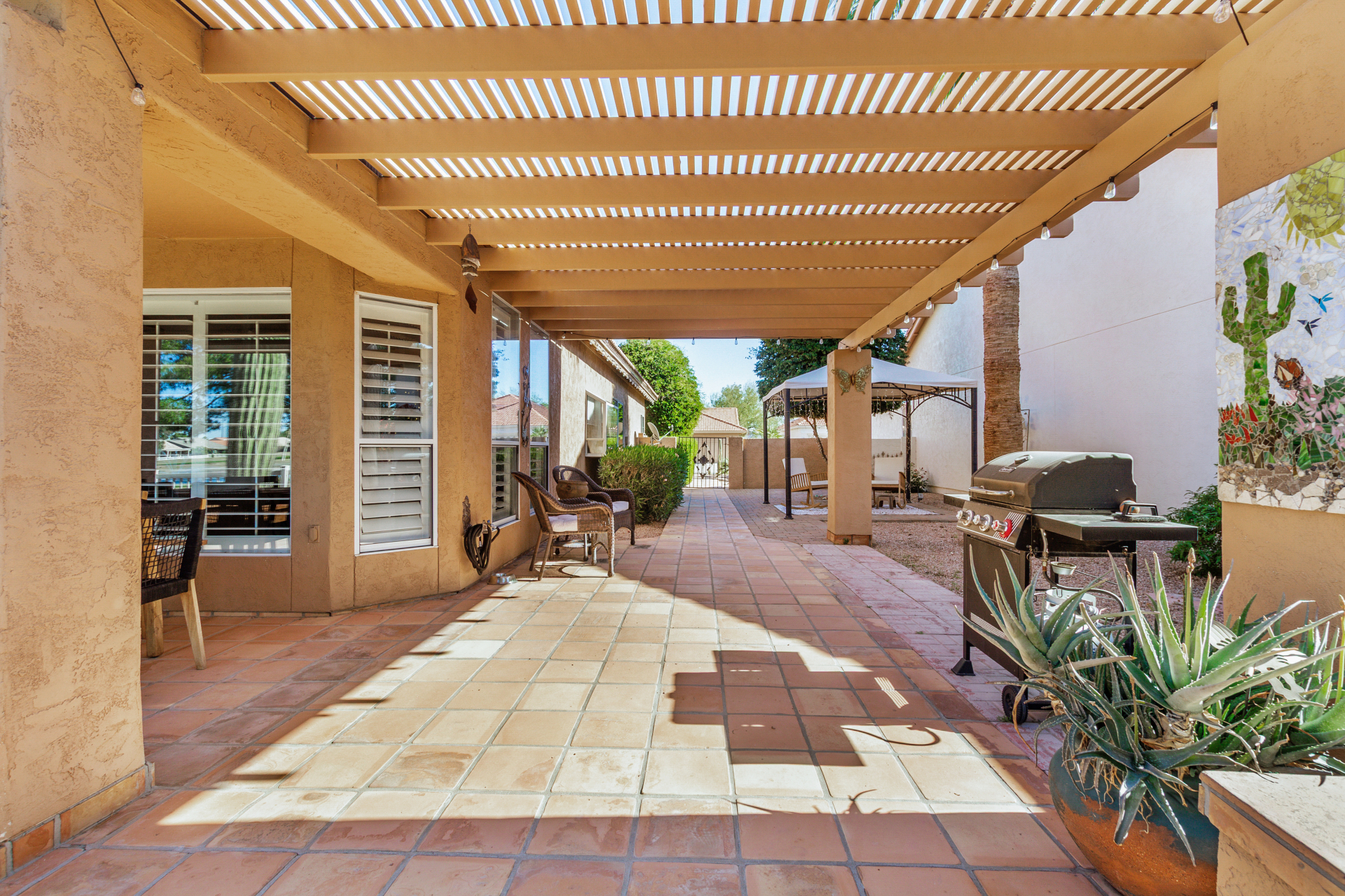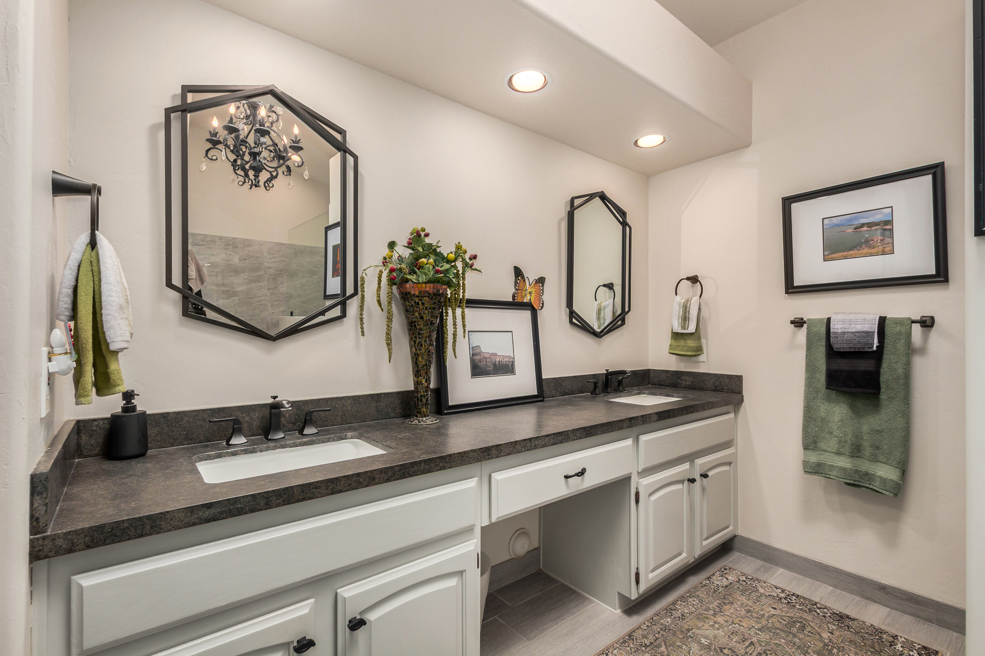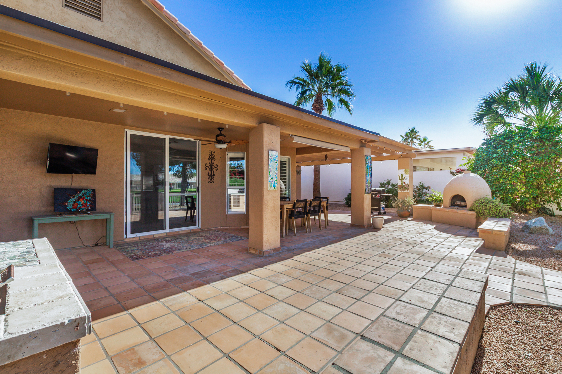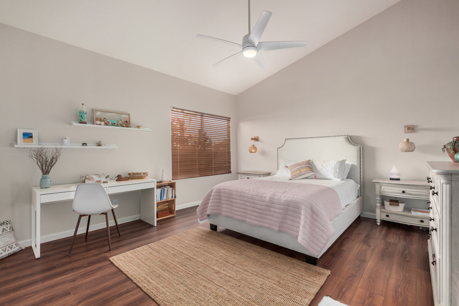 Beautifully maintained 2-bedroom home with a 3-car garage radiates style and comfort at every turn! Perfect for everyday living and entertaining, this light-filled home features an airy living and dining area anchored by a stunning floor-to-ceiling stone fireplace, plus a spacious great room bathed in natural light. Wood-look tile flooring, soaring vaulted ceilings, neutral tones, and plantation shutters are features you'll love. Recent upgrades include all-new interior paint, a new refrigerator, new garage doors, new garage door openers, and a roof replaced just two years ago. The spotless kitchen showcases ample cabinetry with crown molding, stainless steel appliances, a tile backsplash, granite countertops, and recessed lighting that brightens every corner.