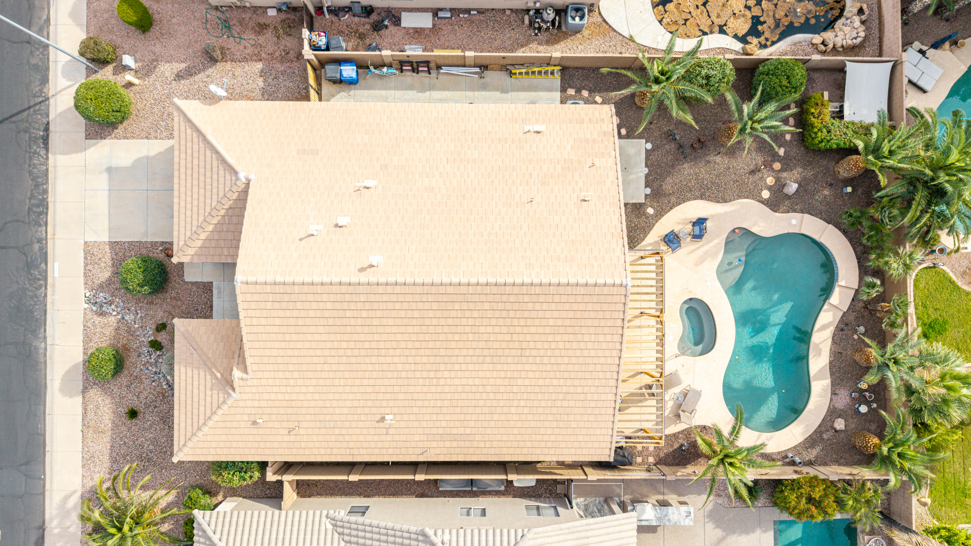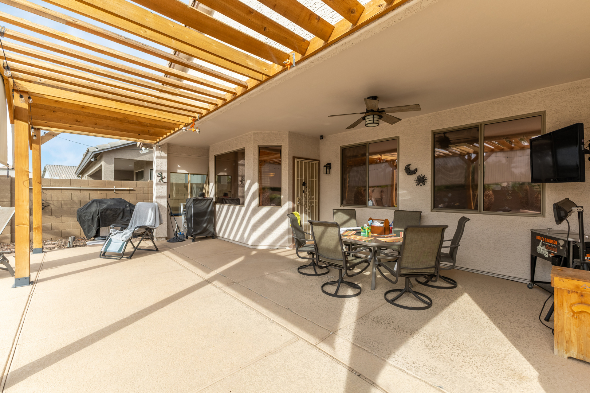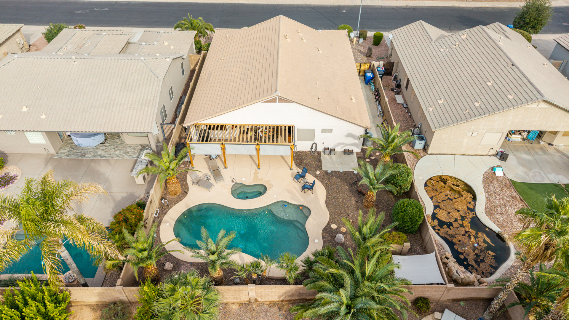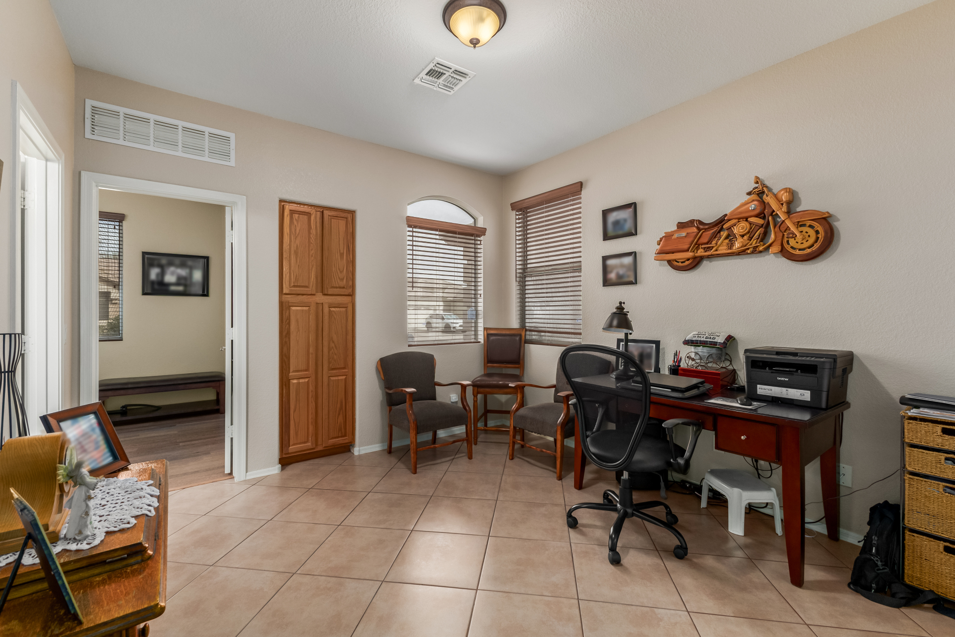 Charming 3-bedroom home with pool! Explore the bright & inviting layout, showcasing tile flooring, plenty of natural light, and a soothing palette that creates a cozy ambiance throughout. The well-appointed kitchen features staggered cabinets with crown molding, spacious counters, SS appliances, and an island, for those quick meals and casual conversations. Get a good night's rest in the primary retreat, offering a closet and a full bathroom with double sinks. You'll love the extra living space with a bonus room and a den-create your ideal home office or creative area! Out back, your oasis awaits, complete with a covered patio with an attached pergola, perfect for weekend grills and peaceful evenings, a relaxing spa, and a sparkling pool for a refreshing time! You don't want to miss it!