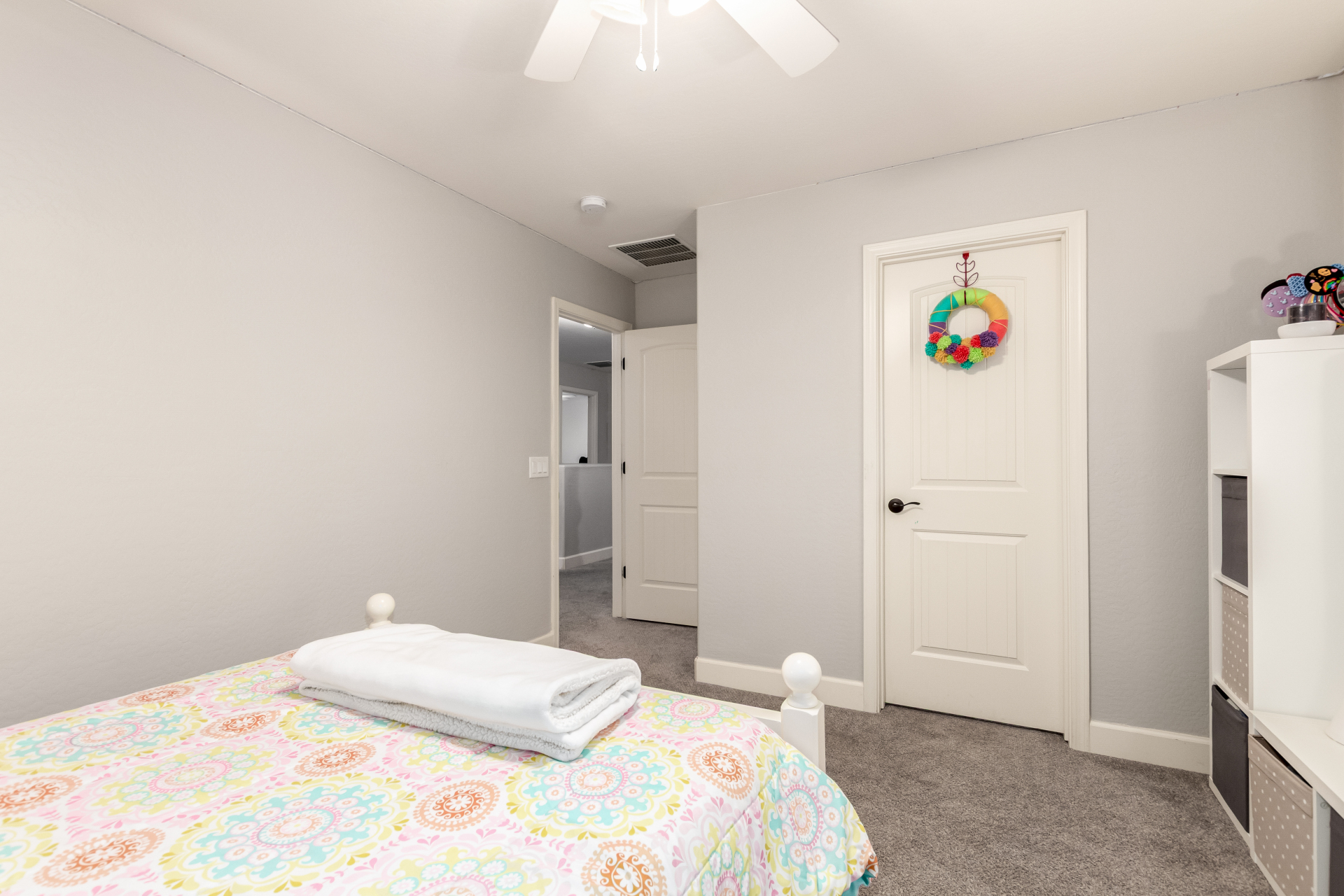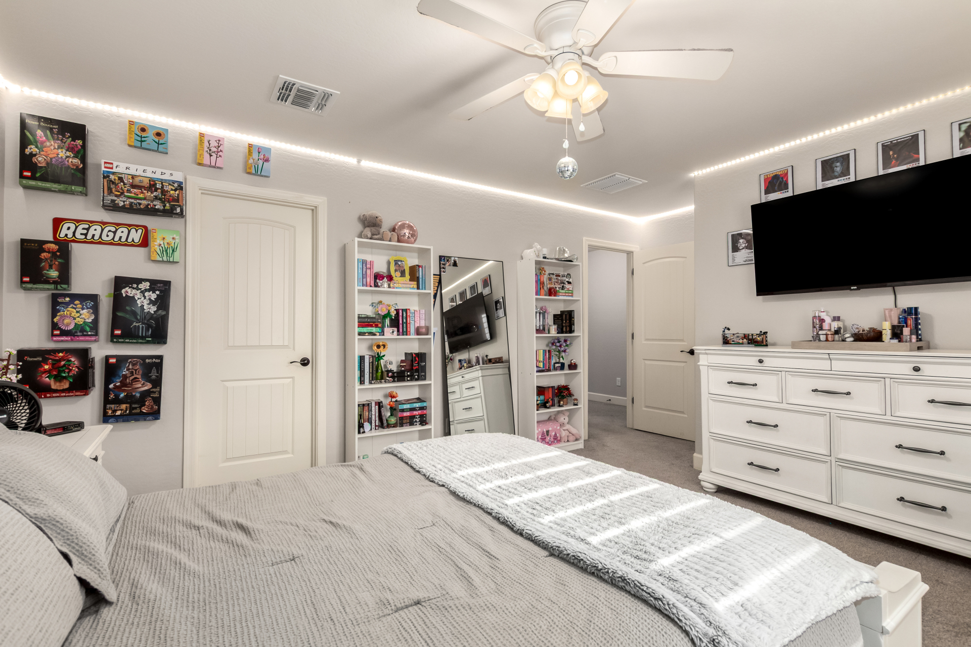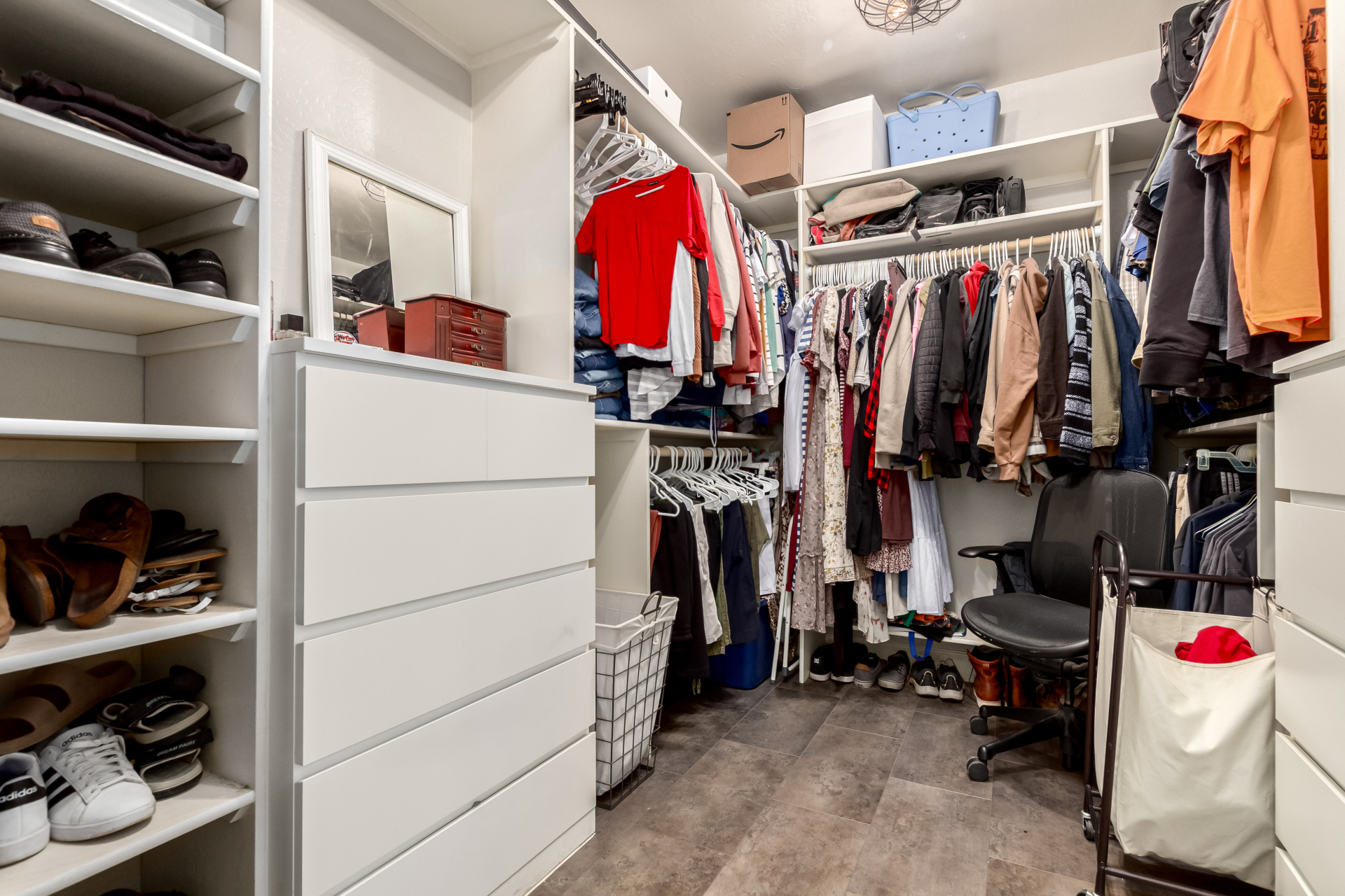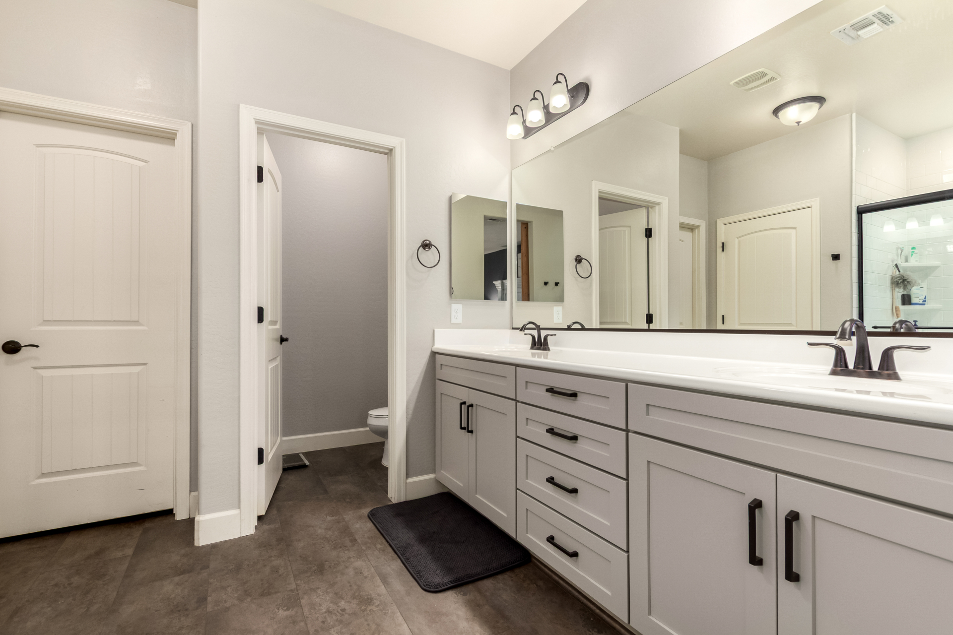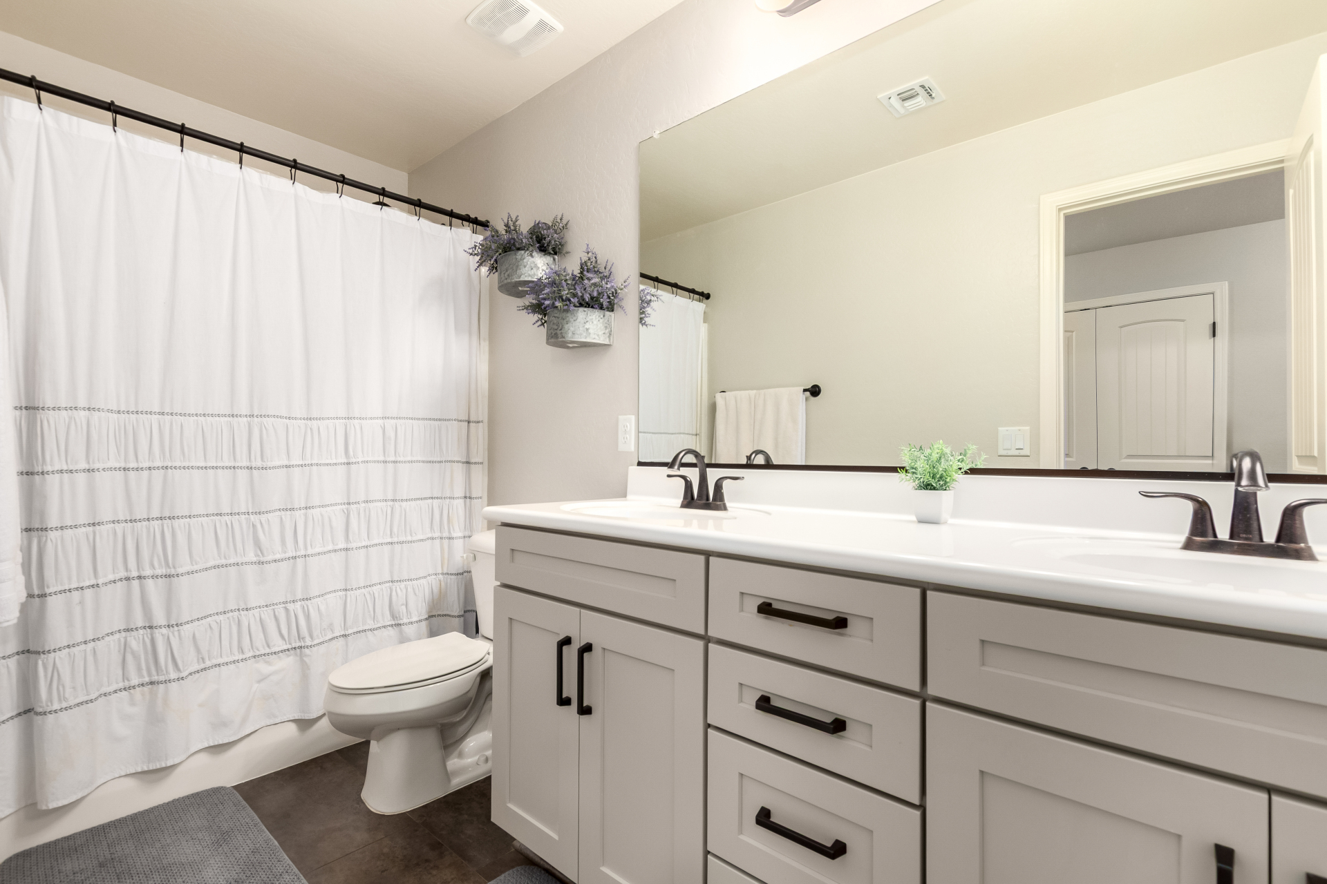 Enjoy luxury living in this exceptional 5BR, 3.5BA home designed for both comfort and functionality. The main level features the primary suite, offering convenience and privacy. Upstairs offers 4BR, all w/walk-in closets and a spacious loft for extra hang-out space. The backyard is ideal for entertaining, featuring a pebble sheen pool with a Baja deck, travertine decking, a covered patio, and low-maintenance synthetic turf. A standout feature is the 14.5' x 47.5' RV garage w/16-foot ceilings, partially insulated, and dual mini-split systems and an attached two-car garage with built-in cabinets and epoxy flooring. Other highlights include upgraded vinyl flooring, shutters, sun screens, and enhanced baseboards throughout. There are too many features to note- schedule your showing today!