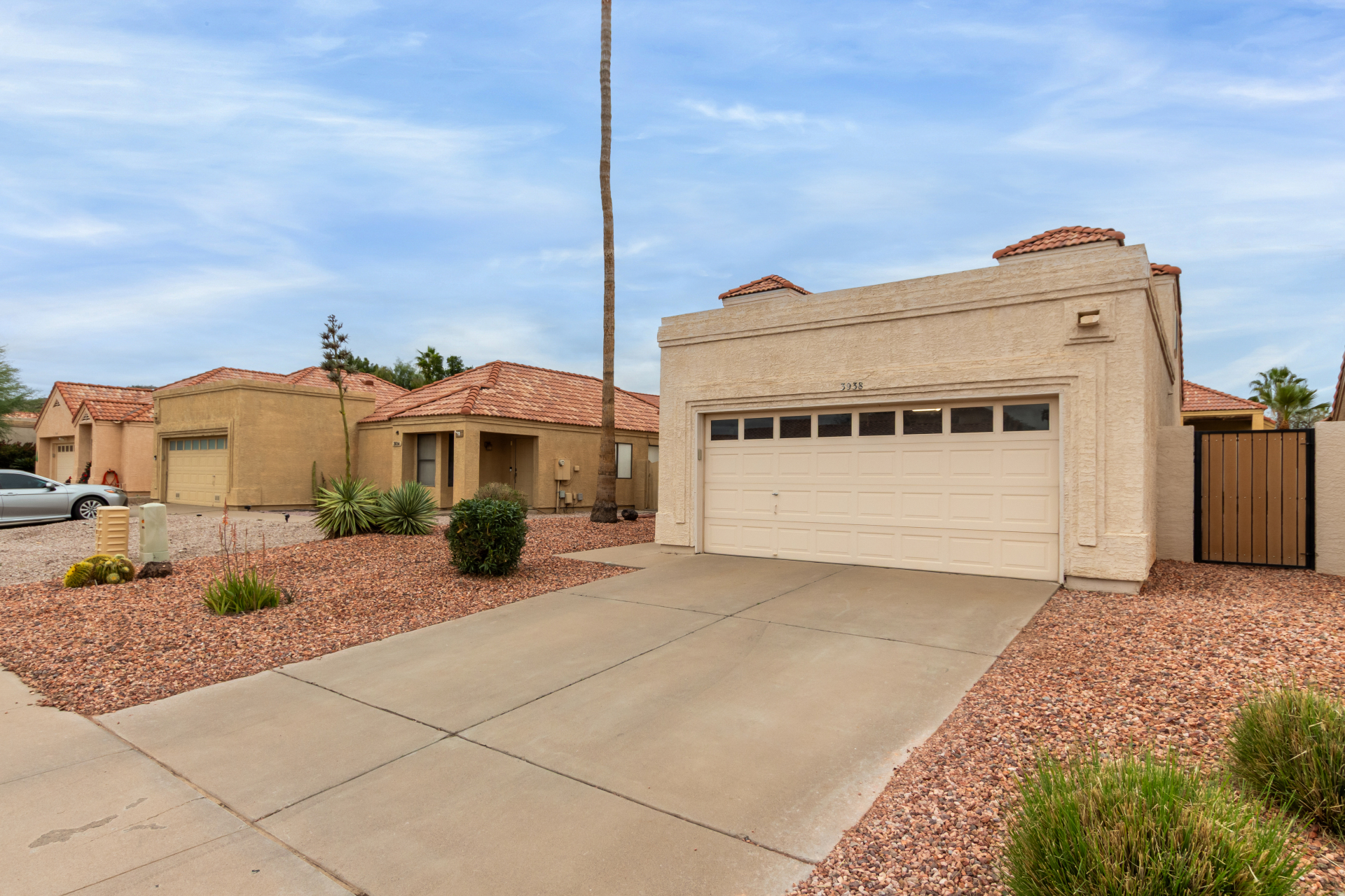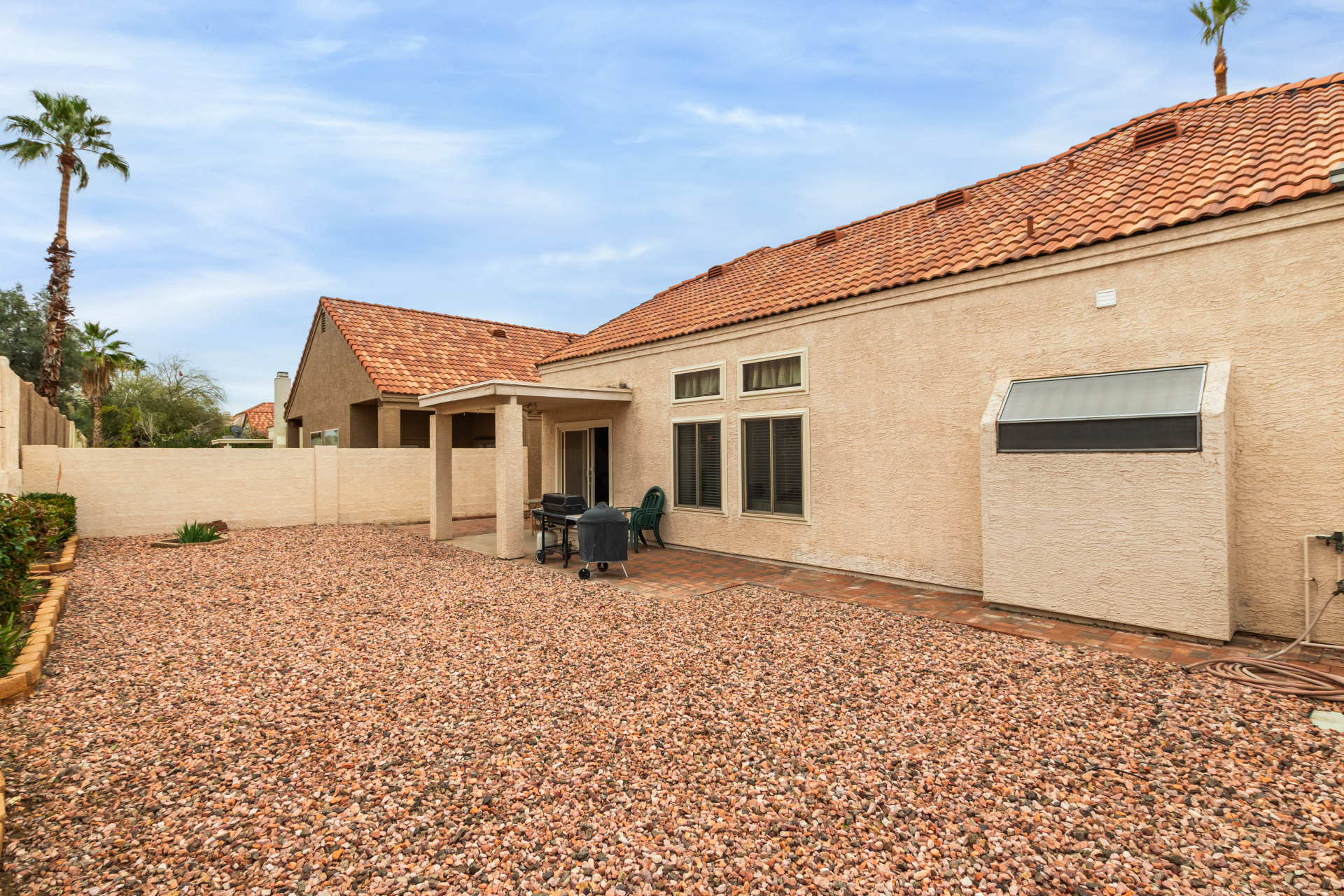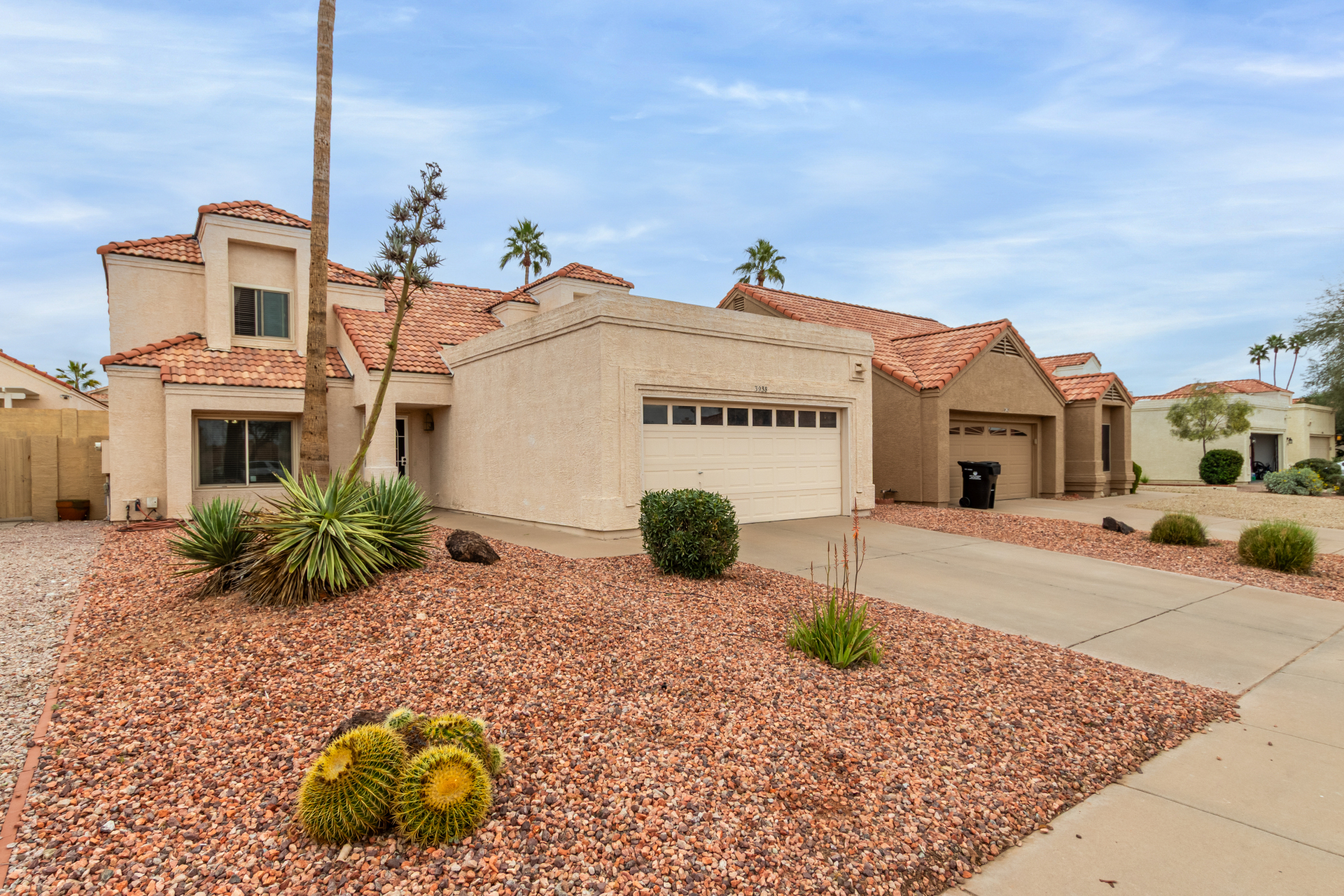 Home, sweet home! This gorgeous two-story residence welcomes you with 3 bd, 2.5 baths and 2 car garage. Inside, you'll find inviting living spaces with wood-look flooring, tile in all the right places, soaring vaulted ceilings that add an airy feel, and an earthy palette that makes you want to stay. The bright kitchen is ready for your culinary adventures, displaying ample cabinetry and counter space, as well as built-in essentials for a seamless cooking experience. The primary bedroom is downstairs and hosts a full ensuite with double sinks and double walk-in closets. The backyard is complete with a cozy covered patio ideal for morning coffee and a nice seating space perfect for weekend BBQ with friends. Newer HVAC, water heater and roof over garage. Washer, dryer and fridge convey.