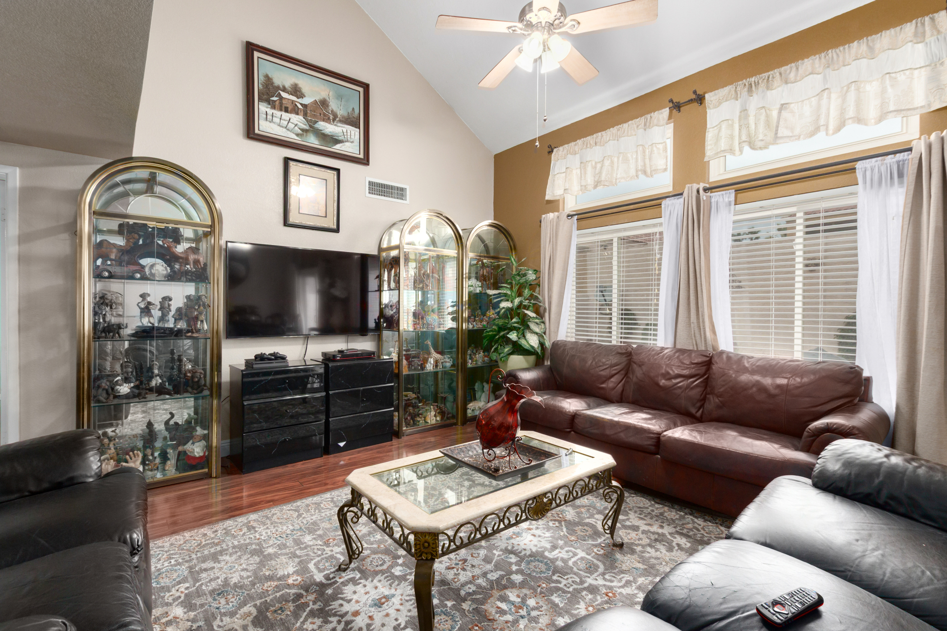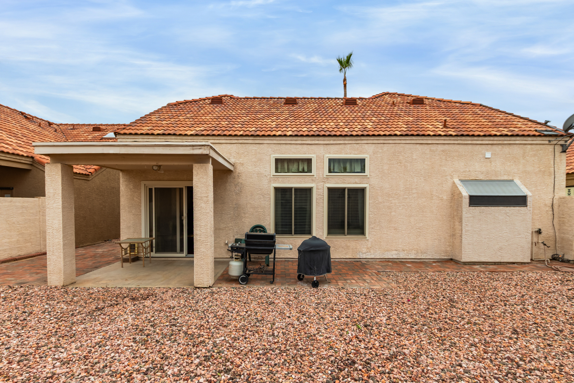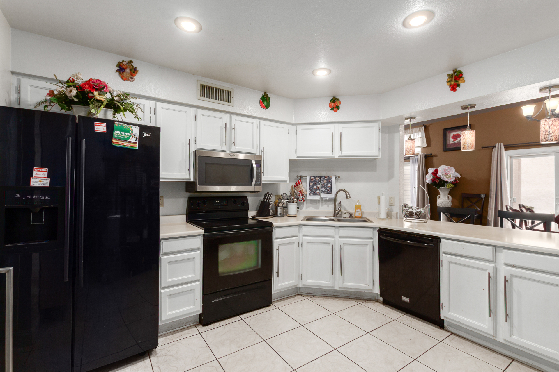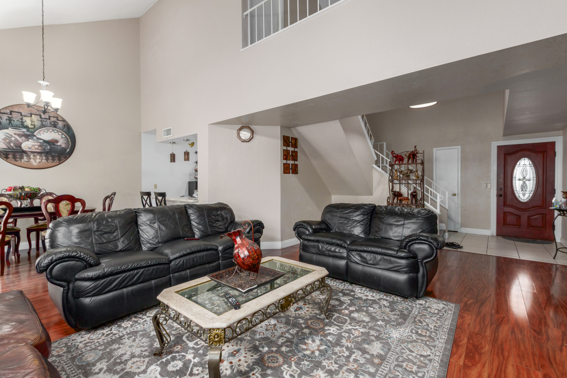 Home, sweet home! This gorgeous two-story residence welcomes you with 3 bd, 2.5 baths and 2 car garage. Inside, you'll find inviting living spaces with wood-look flooring, tile in all the right places, soaring vaulted ceilings that add an airy feel, and an earthy palette that makes you want to stay. The bright kitchen is ready for your culinary adventures, displaying ample cabinetry and counter space, as well as built-in essentials for a seamless cooking experience. The primary bedroom is downstairs and hosts a full ensuite with double sinks and double walk-in closets. The backyard is complete with a cozy covered patio ideal for morning coffee and a nice seating space perfect for weekend BBQ with friends. Newer HVAC, water heater and roof over garage. Washer, dryer and fridge convey.