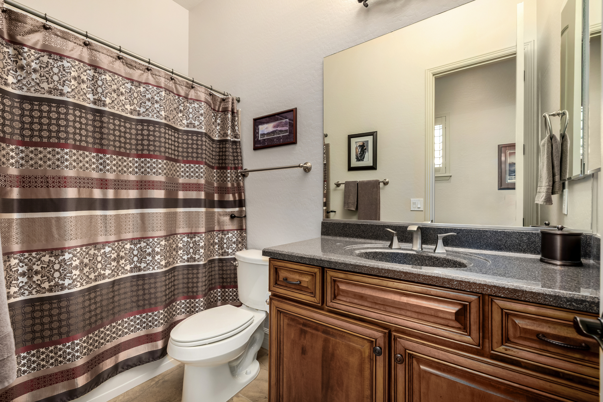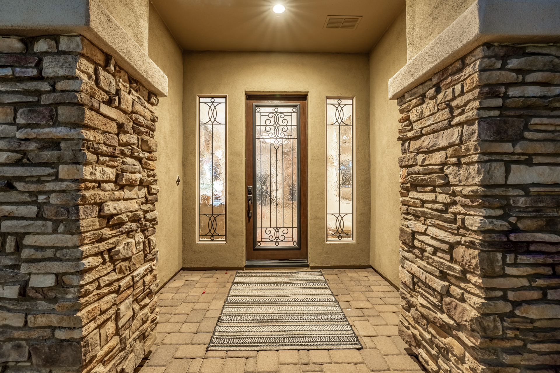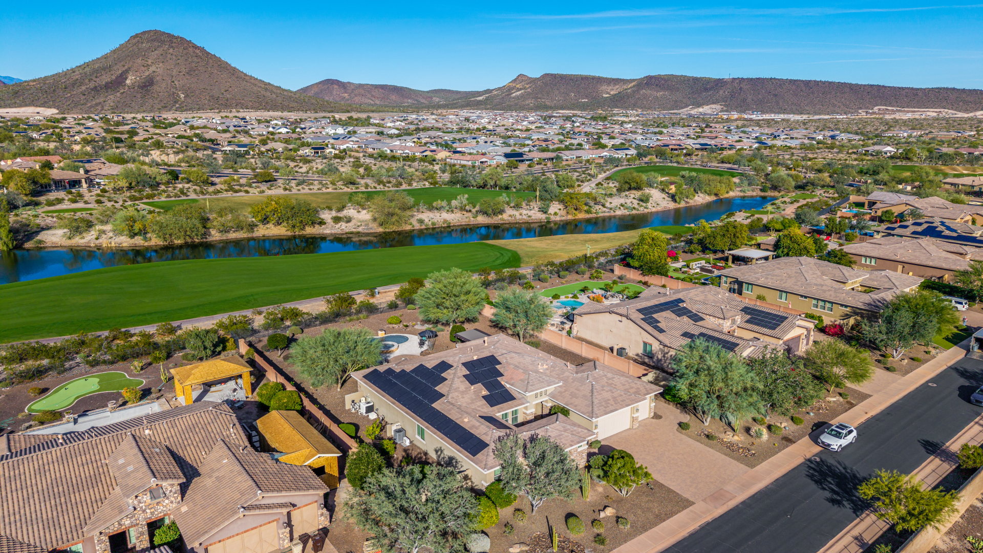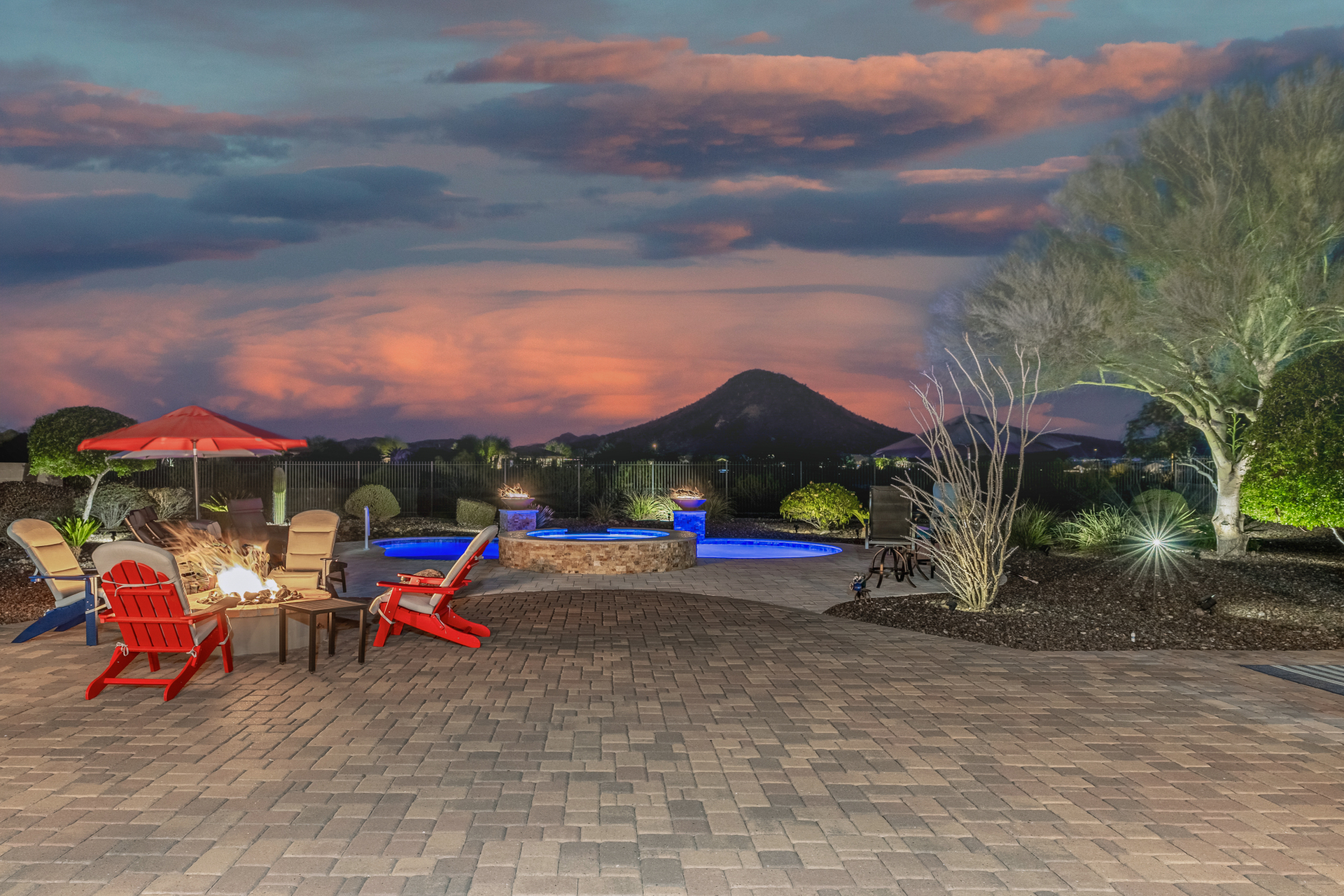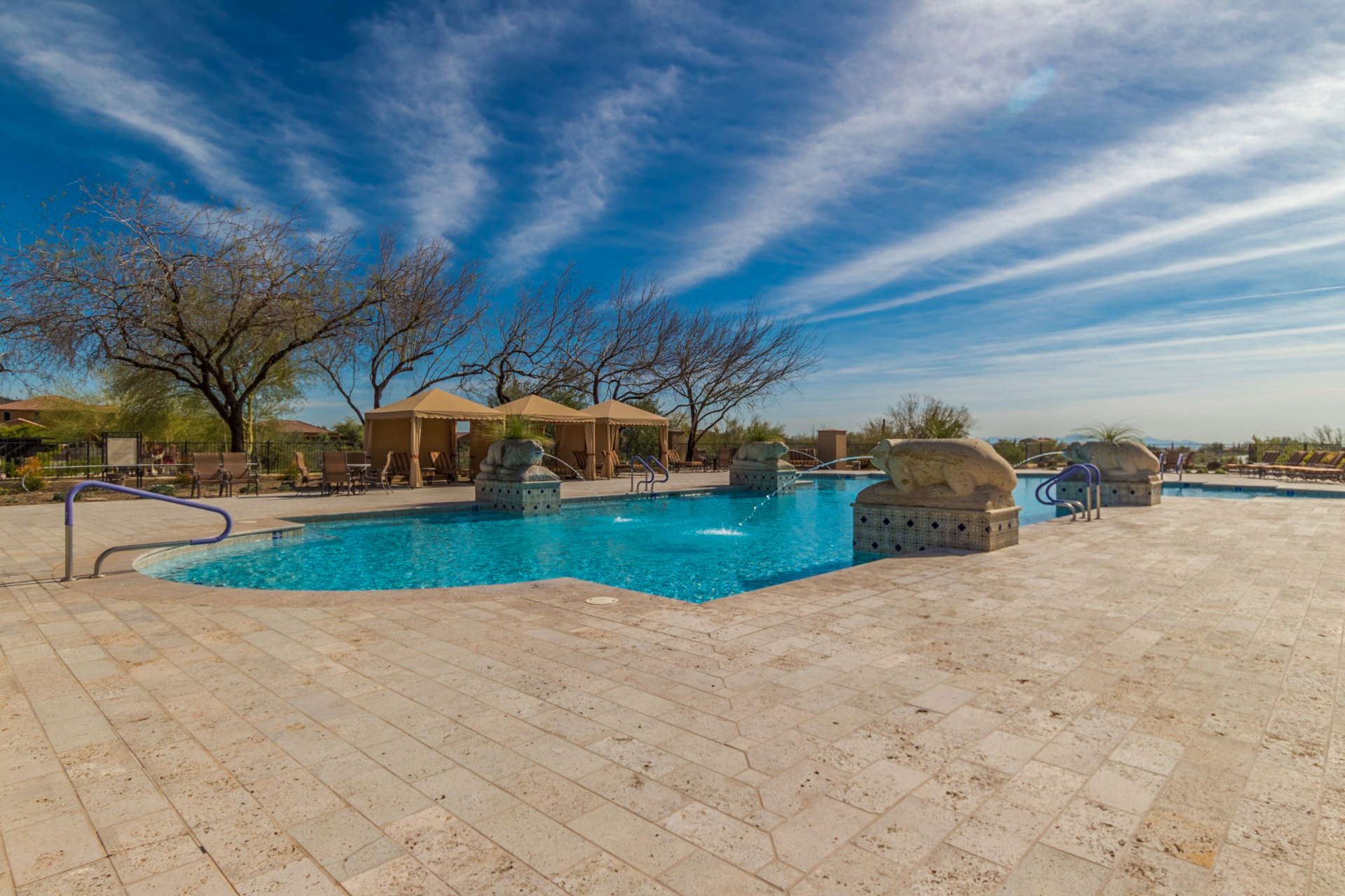 Perched on one of the larger lots overlooking the 4th fairway, this exceptional residence captures breathtaking golf course views and timeless Tuscan-inspired elegance. Beyond the private iron gate, a charming front courtyard welcomes you, featuring a 230 square foot bonus room, perfect for a private office, media room, studio or custom retreat tailored to your lifestyle. The main residence spans 3,358 square feet of thoughtfully designed living space, showcasing superior craftsmanship throughout. The kitchen is a true centerpiece, with a massive granite island and breakfast bar, buffet countertop, upgraded cabinetry with custom pull-out shelving, gas cooktop, built-in refrigerator and a spacious eat-in area ideal for both everyday living and entertaining.