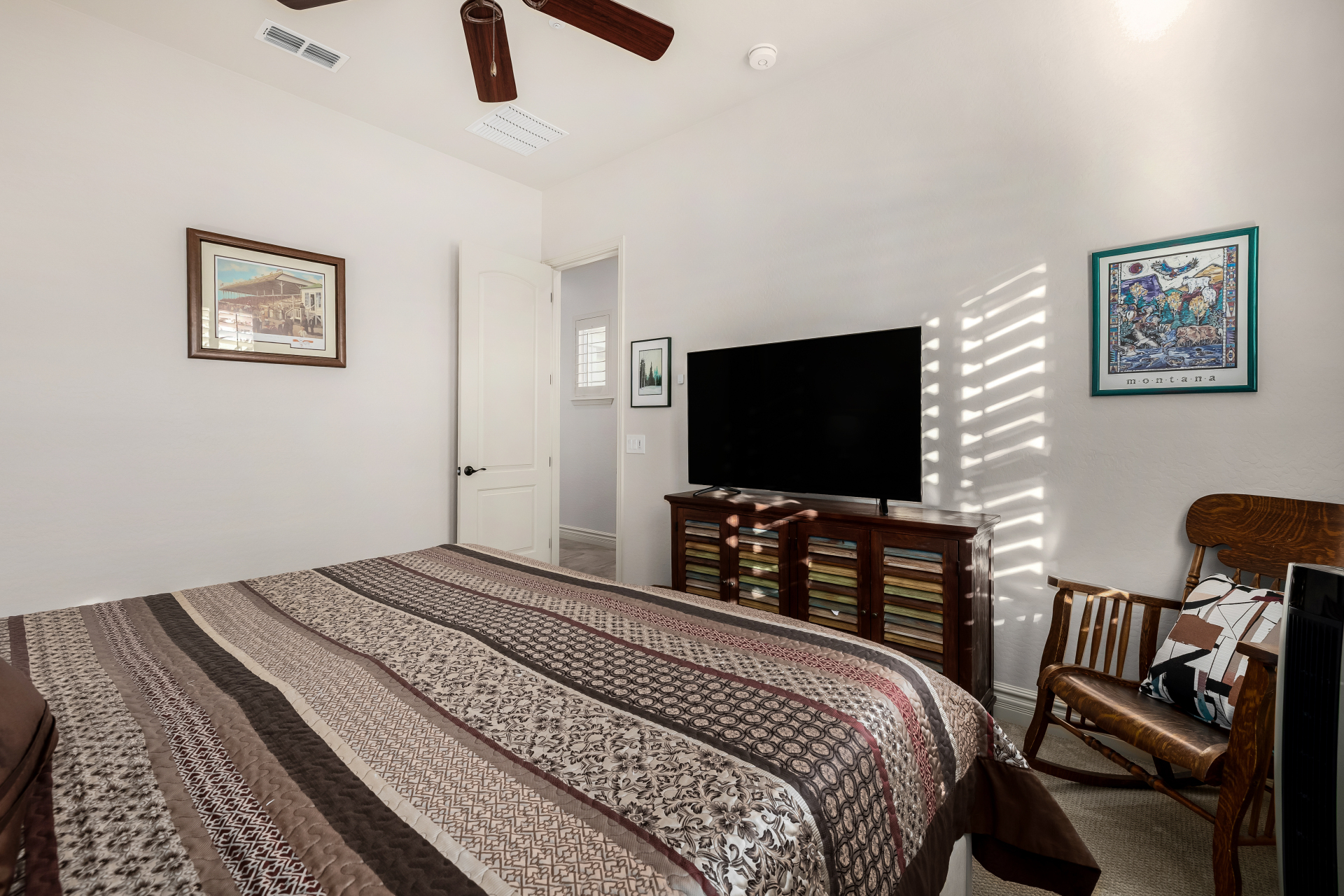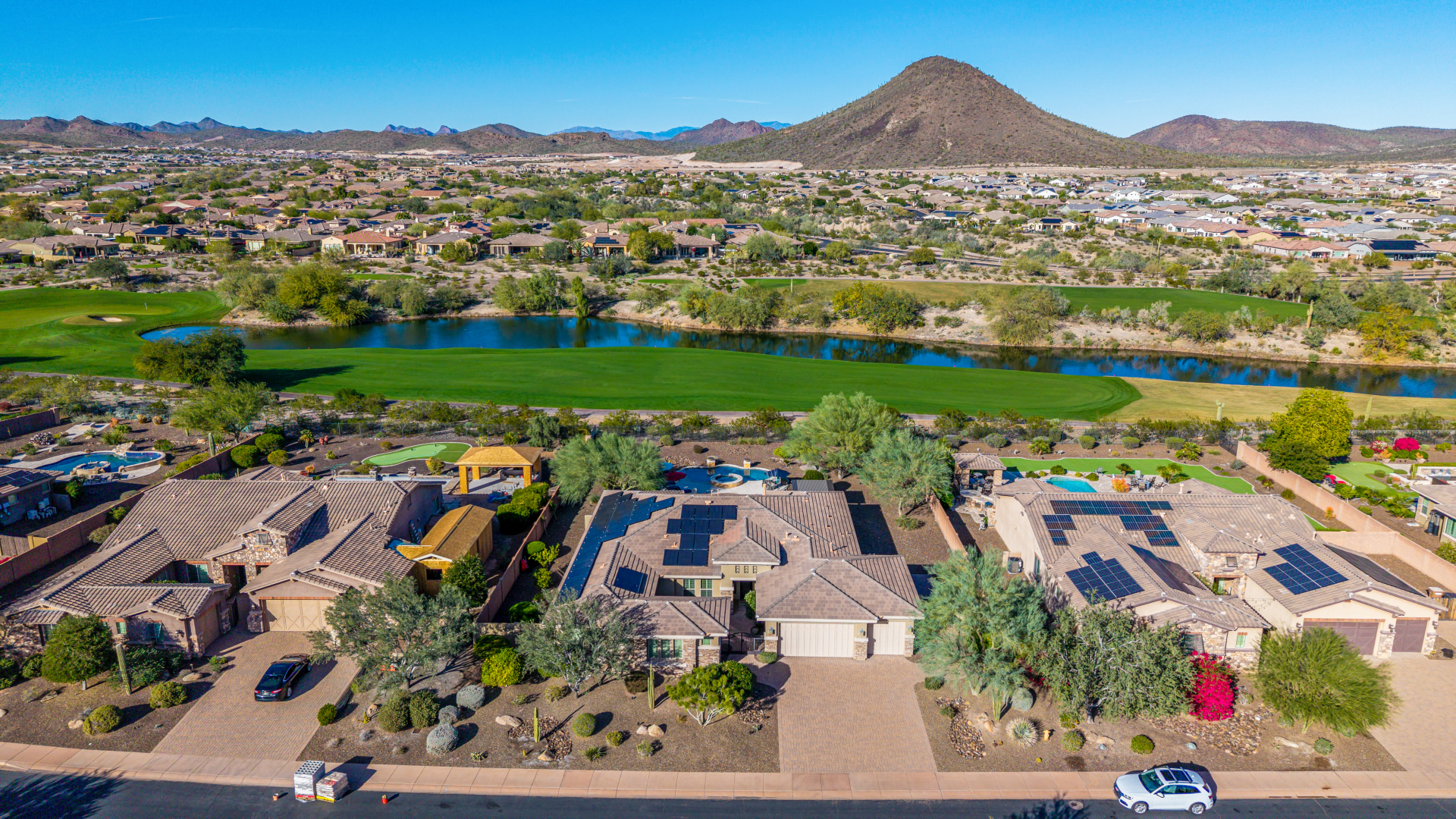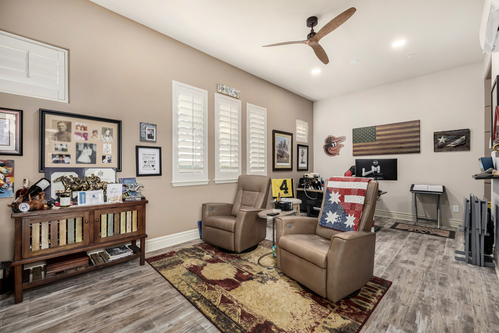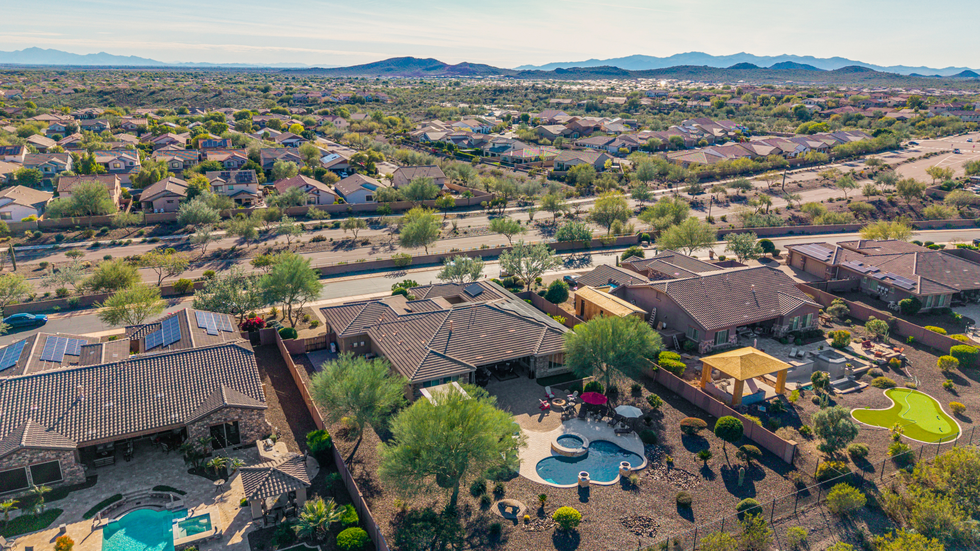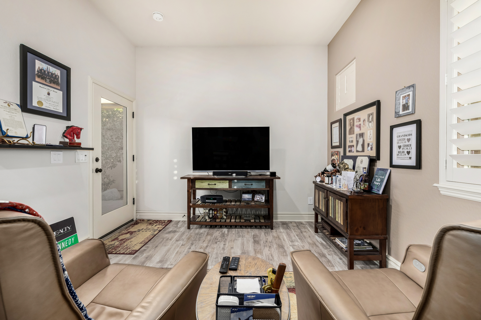 Perched on one of the larger lots overlooking the 4th fairway, this exceptional residence captures breathtaking golf course views and timeless Tuscan-inspired elegance. Beyond the private iron gate, a charming front courtyard welcomes you, featuring a 230 square foot bonus room, perfect for a private office, media room, studio or custom retreat tailored to your lifestyle. The main residence spans 3,358 square feet of thoughtfully designed living space, showcasing superior craftsmanship throughout. The kitchen is a true centerpiece, with a massive granite island and breakfast bar, buffet countertop, upgraded cabinetry with custom pull-out shelving, gas cooktop, built-in refrigerator and a spacious eat-in area ideal for both everyday living and entertaining.