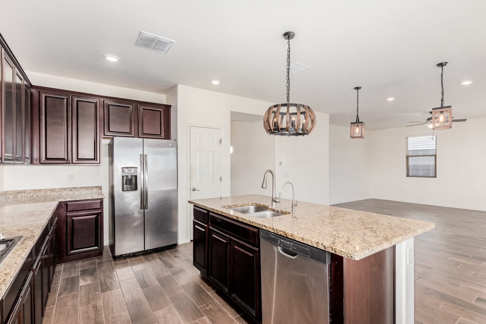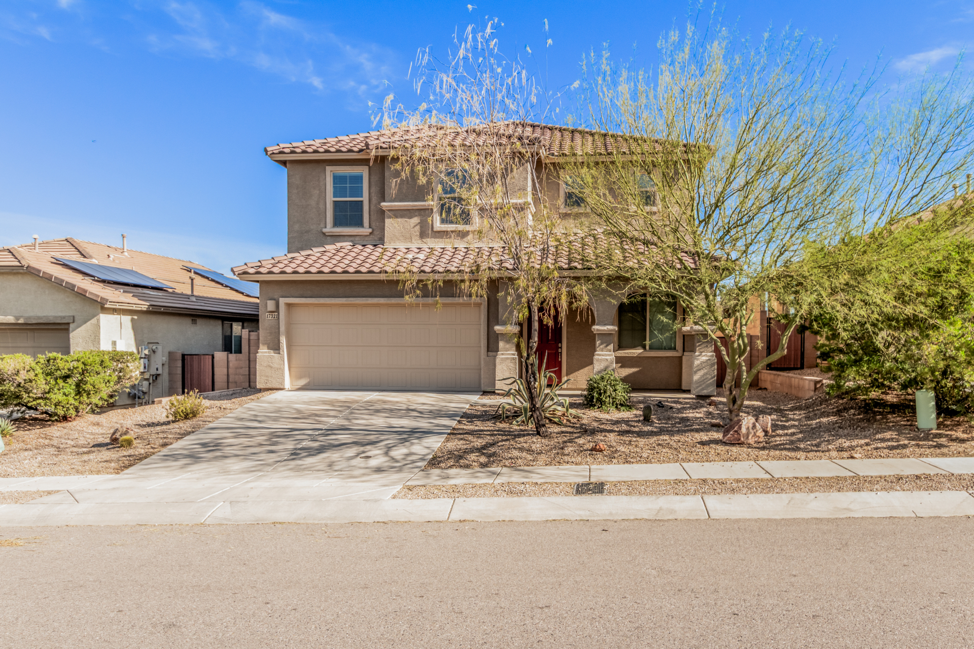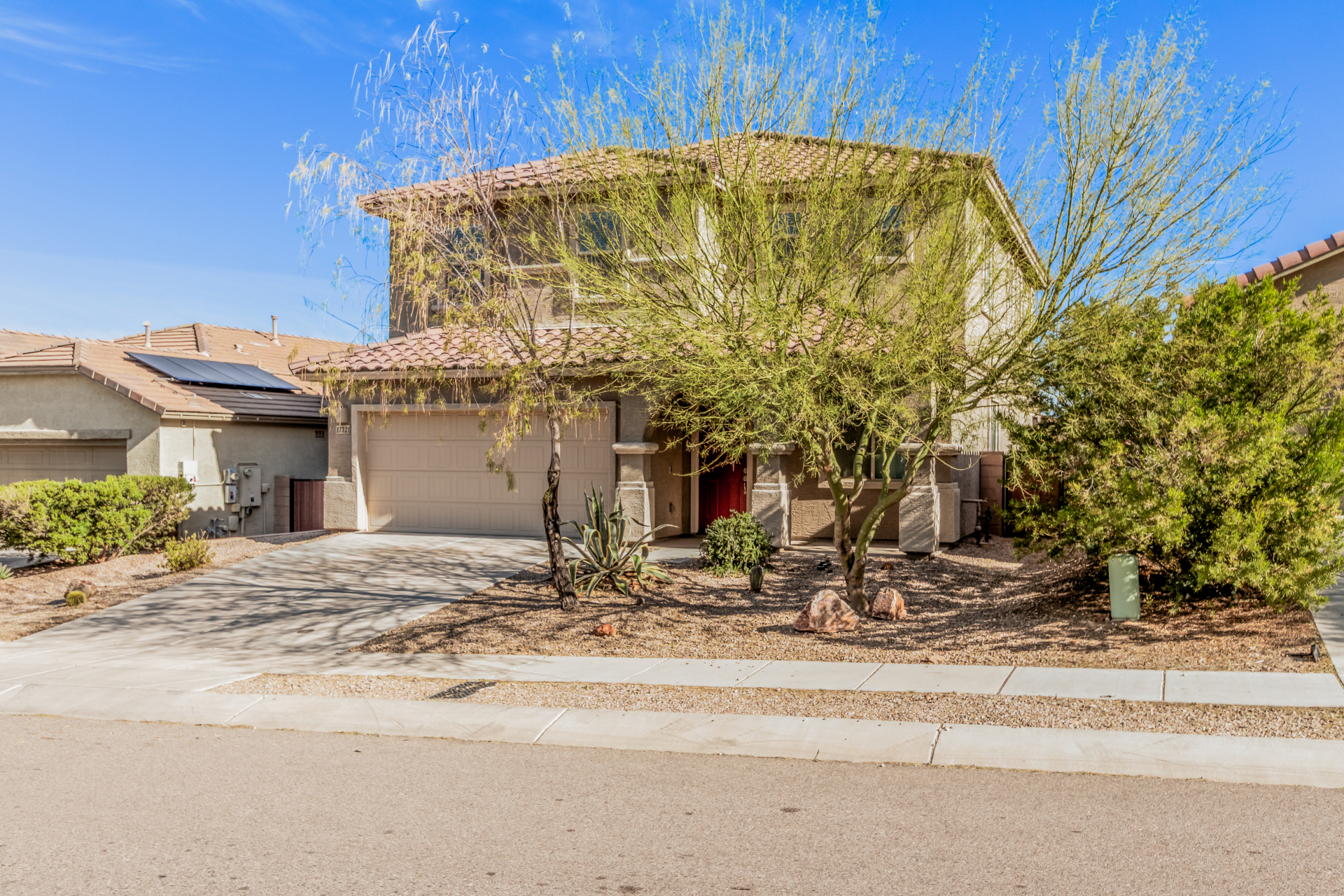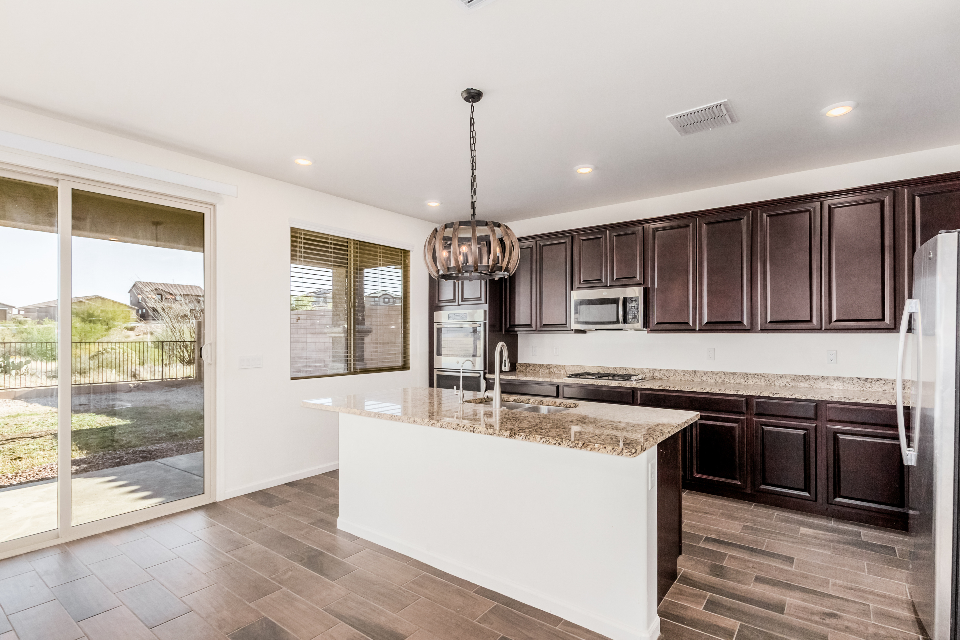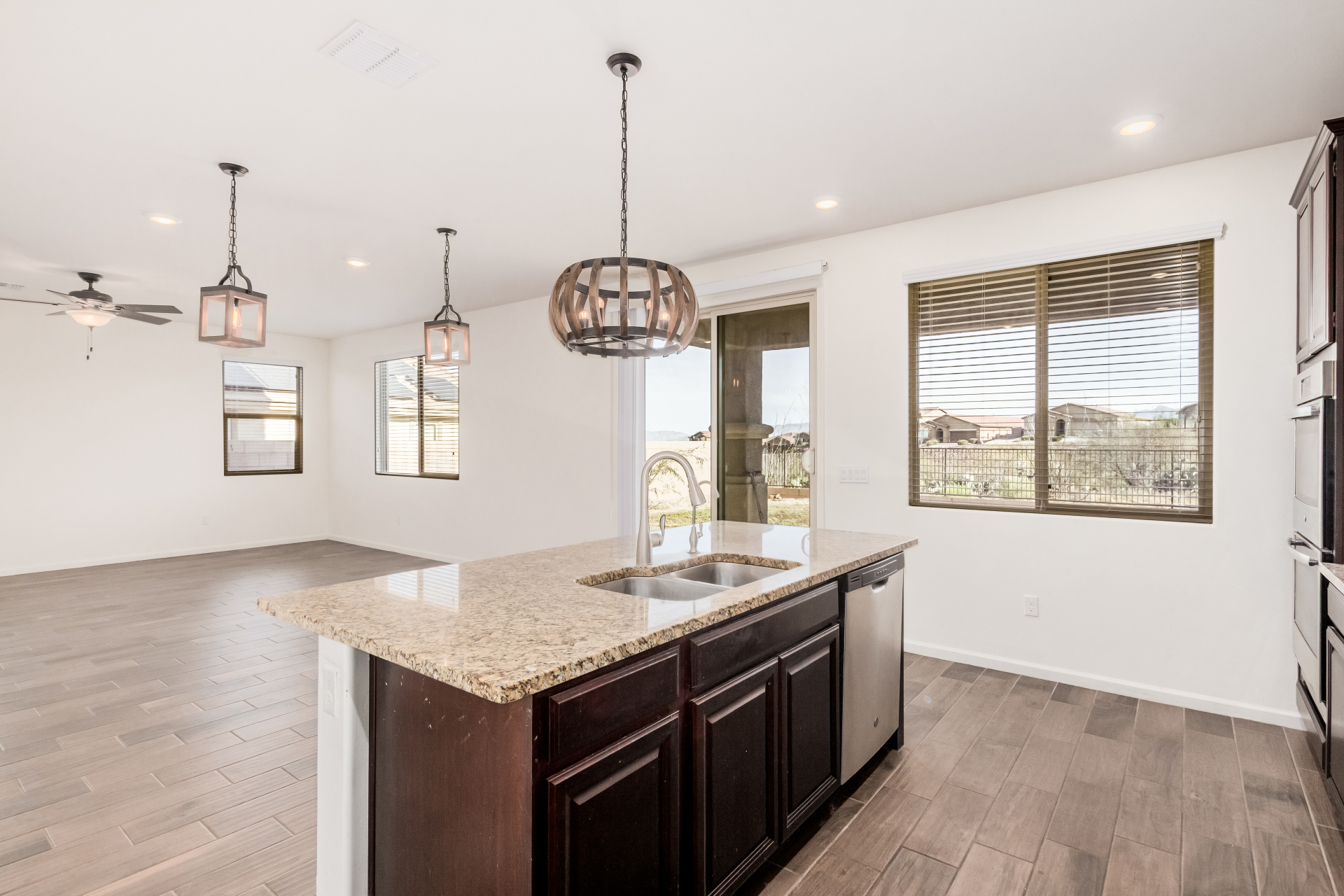 Start creating lasting memories in this inviting 2-story property with a 2-car garage! The interior features wood-look floors in all the right places and a welcoming living/dining area ideal for gatherings. A spacious great room sets the stage for entertaining, while the kitchen impresses with stainless steel appliances, wall ovens, neutral cabinetry, granite counters, a pantry, and a center island with a breakfast bar. Upstairs, enjoy a sizable loft perfect for a media center or flexible living space. The main bedroom offers a private bathroom with dual sinks, a soaking tub, and a walk-in closet. Relax outdoors under the covered patio with ample room for a pool and take in the beautiful mountain views. This gem is ready to be yours!