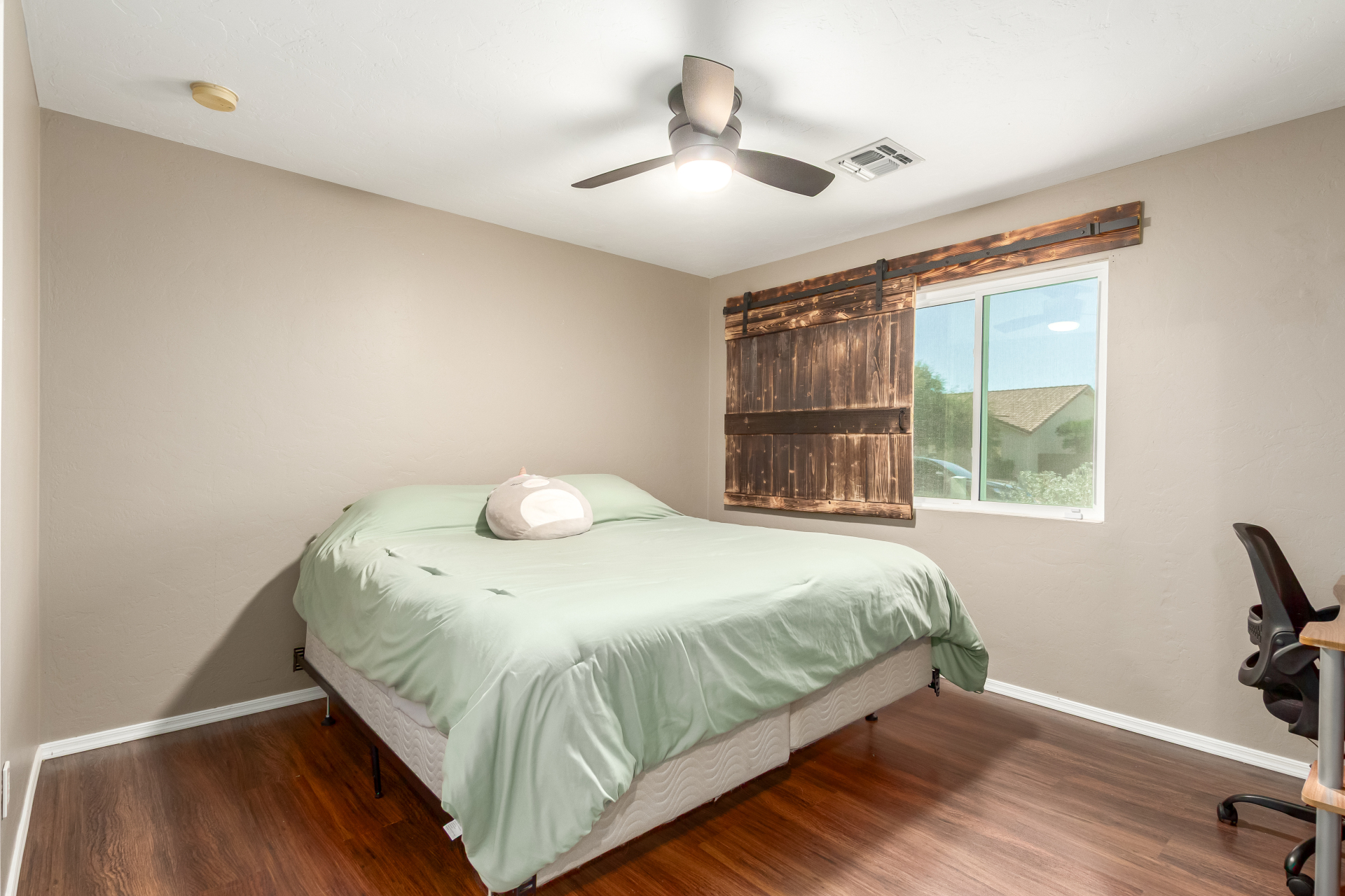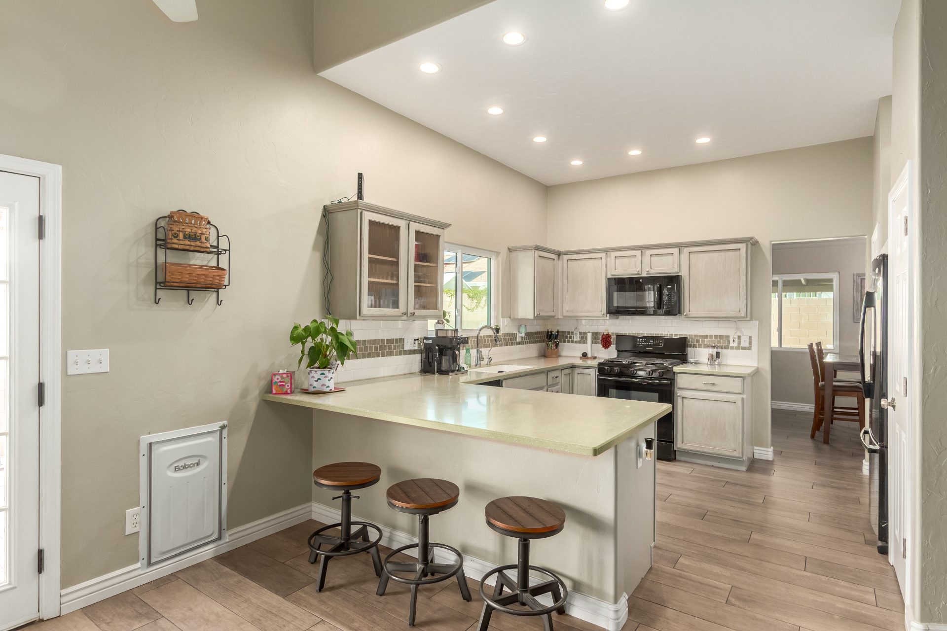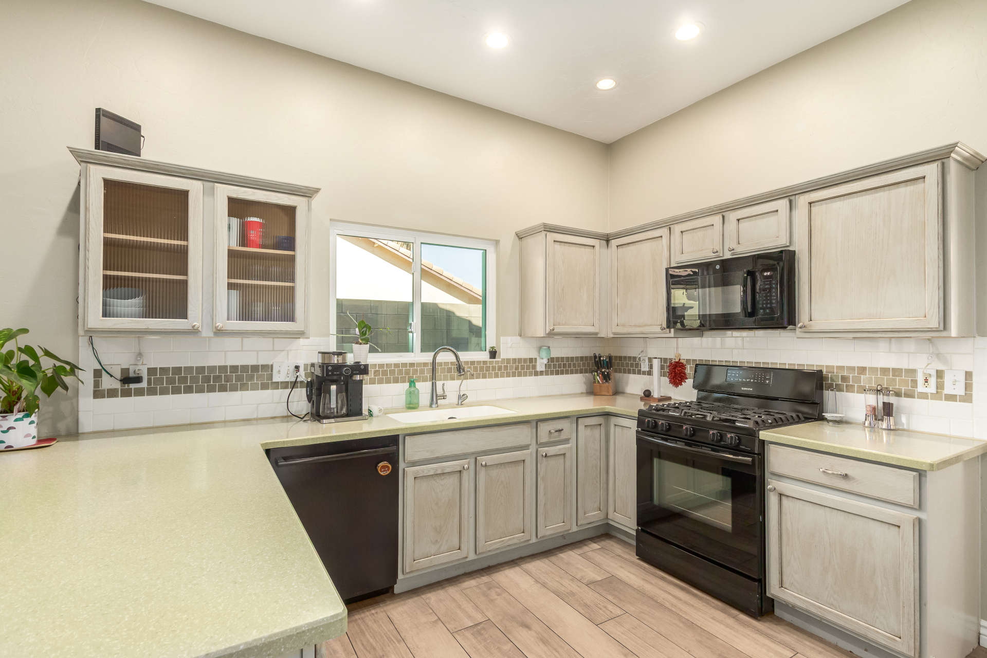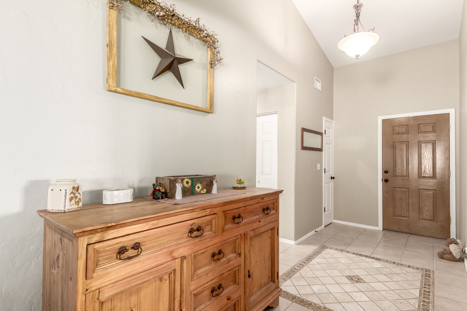 Inviting single-story home for SALE! The property welcomes you with a low-maintenance front yard & a convenient 2-car garage. Inside, tile flooring & vaulted ceilings enhance the bright great room, while the family room features a media niche. Beautiful kitchen showcases built-in appliances, Corian counters, a tile backsplash, recessed lighting, crown moulding in cabinets, a breakfast bar, & two pantries. The main bedroom has a walk-in closet & a charming barn-style sliding door that opens to the private bathroom, complete with dual sinks & a tiled shower. A spacious den with French glass doors adds flexibility. Charming backyard features a covered patio with a misting system, attractive pavers, a cozy fire pit, an above-ground spa, a storage shed, & a grassy area. Don't miss it!