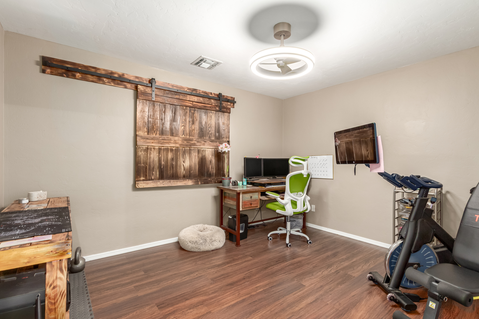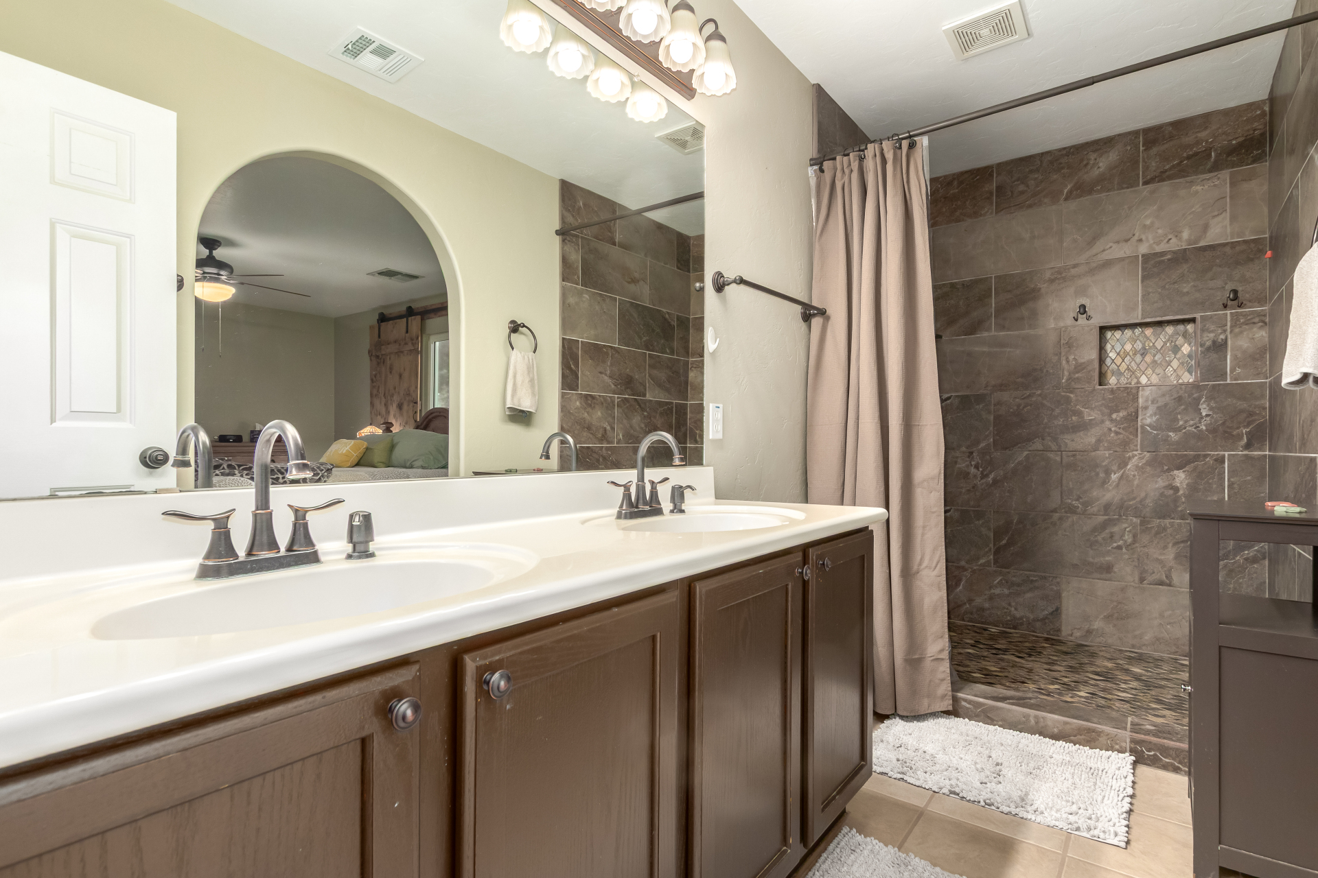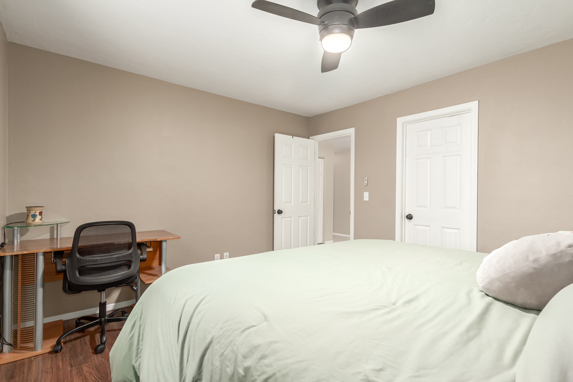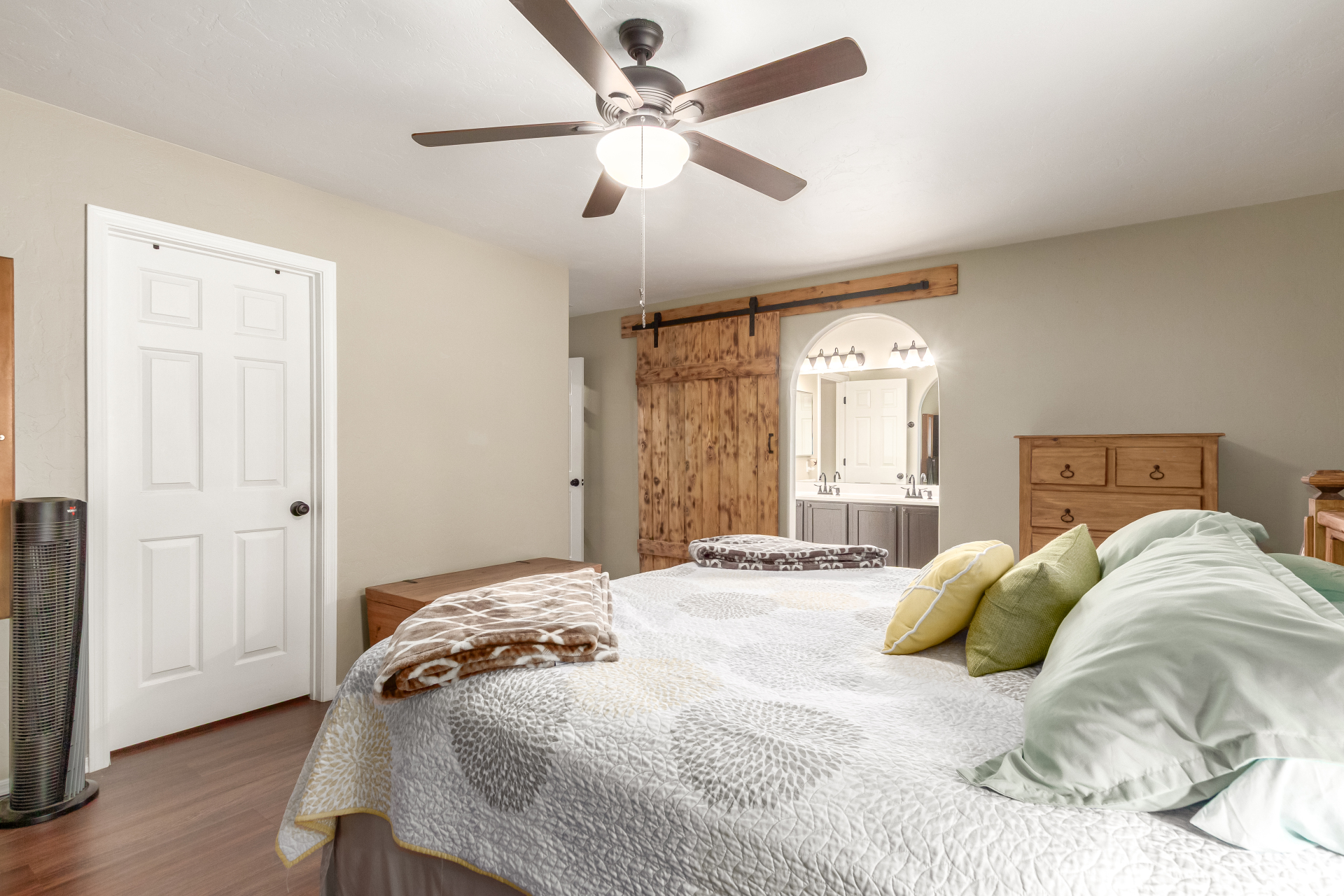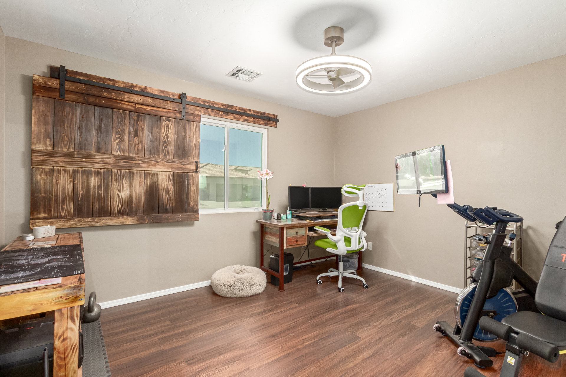 Inviting single-story home for SALE! The property welcomes you with a low-maintenance front yard & a convenient 2-car garage. Inside, tile flooring & vaulted ceilings enhance the bright great room, while the family room features a media niche. Beautiful kitchen showcases built-in appliances, Corian counters, a tile backsplash, recessed lighting, crown moulding in cabinets, a breakfast bar, & two pantries. The main bedroom has a walk-in closet & a charming barn-style sliding door that opens to the private bathroom, complete with dual sinks & a tiled shower. A spacious den with French glass doors adds flexibility. Charming backyard features a covered patio with a misting system, attractive pavers, a cozy fire pit, an above-ground spa, a storage shed, & a grassy area. Don't miss it!