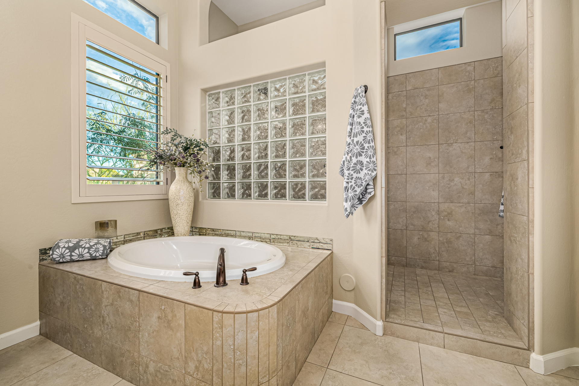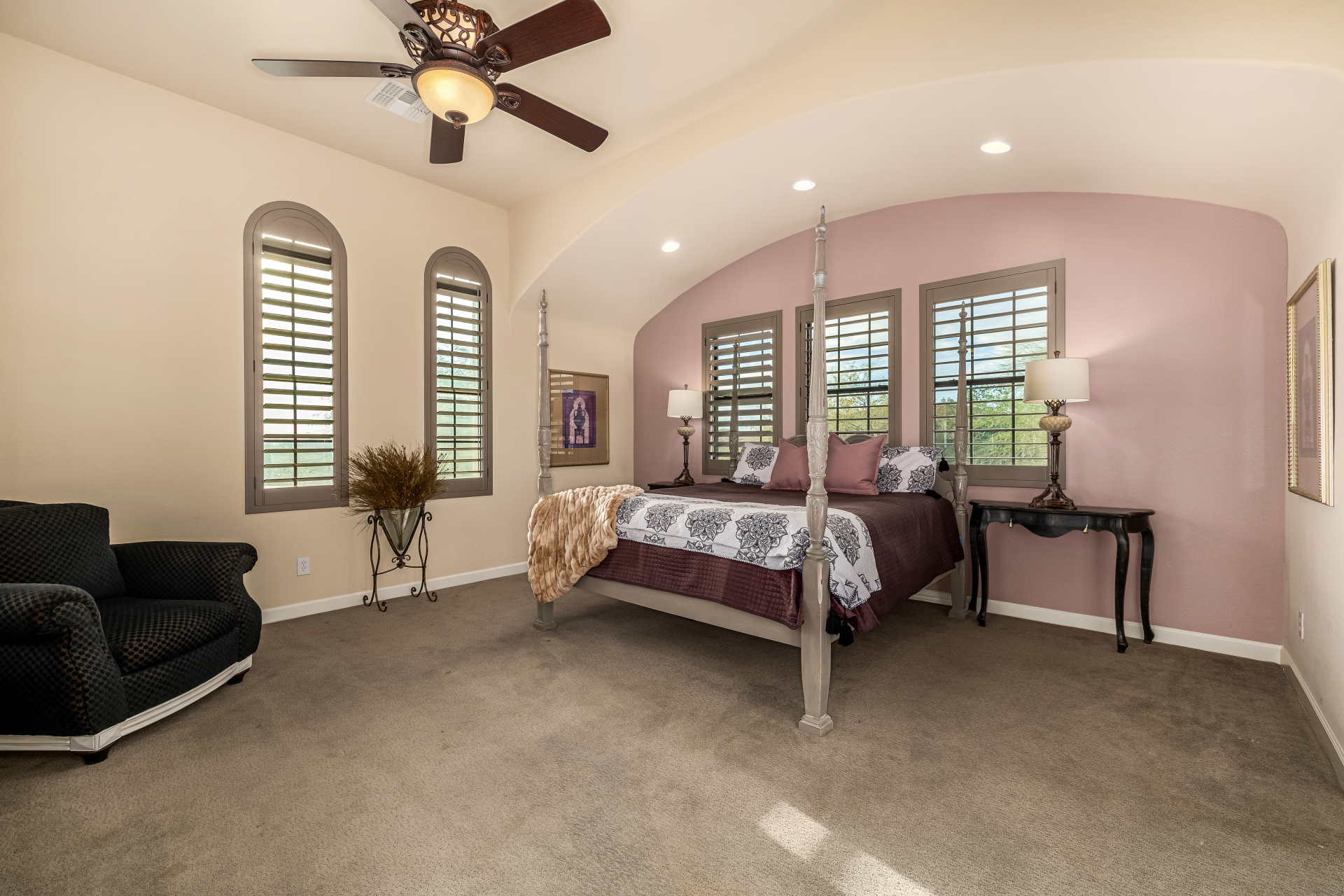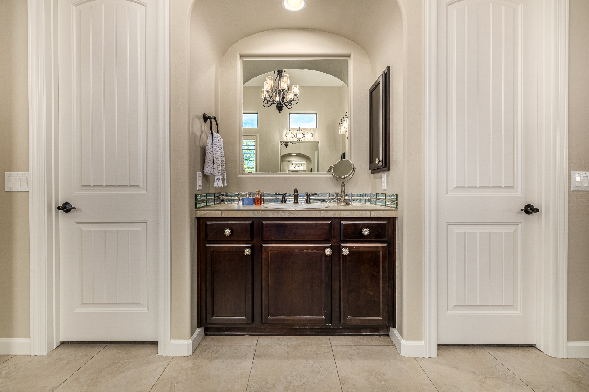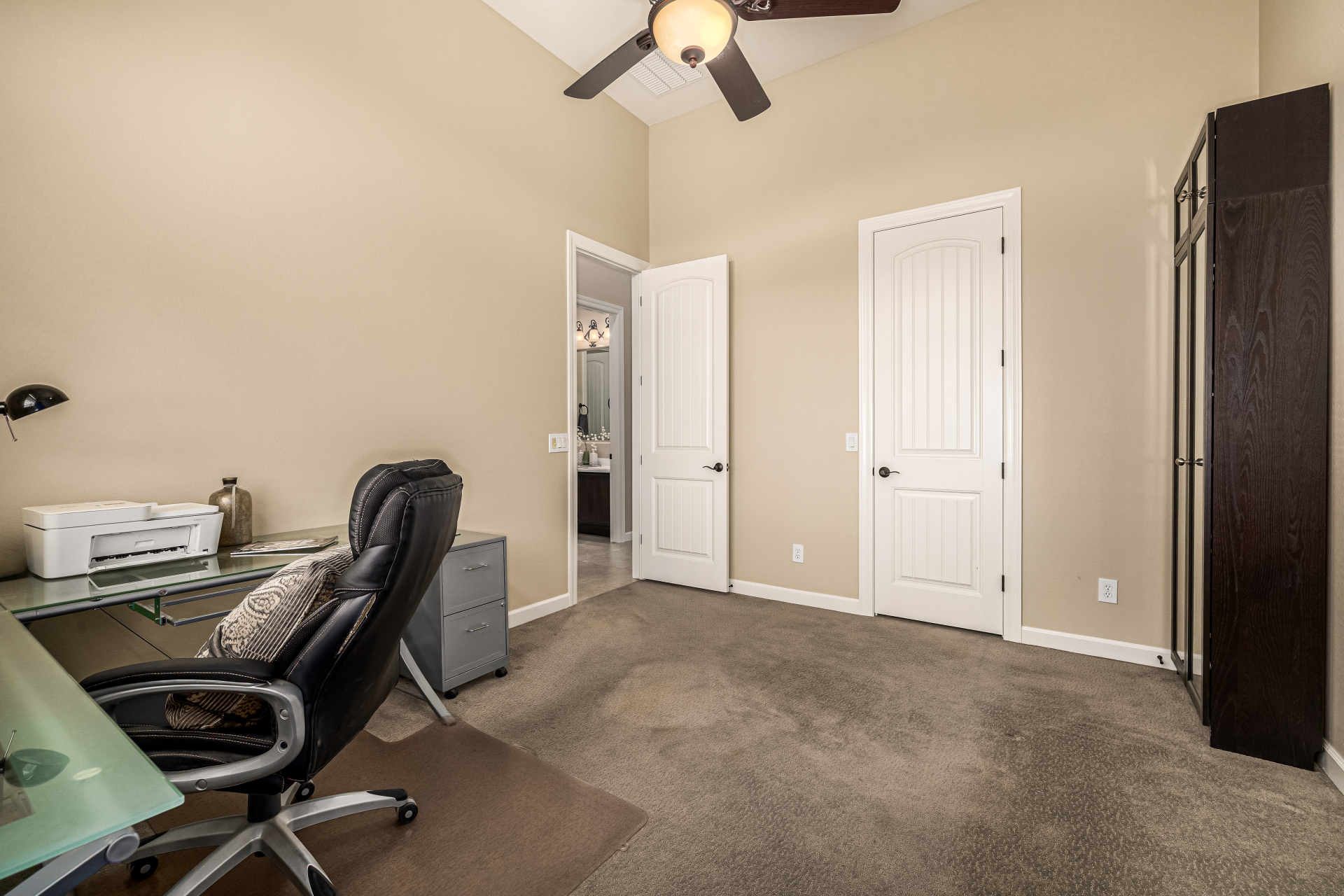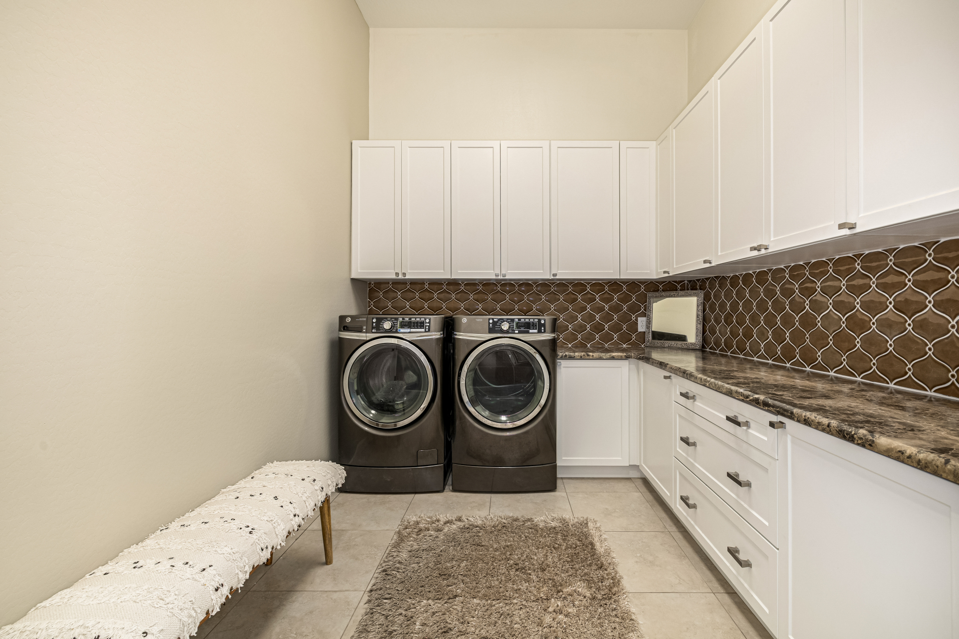 Exquisite semi-custom home on an expansive acre-plus lot, ideally positioned on a quiet cul-de-sac and surrounded by acres of pristine desert washes with breathtaking mountain views. Exceptional curb appeal sets the tone with modern custom garage doors, beautiful landscaping, and a private courtyard entry. This single-level residence offers 4 bedrooms and 3.5 baths, thoughtfully designed for privacy and functionality. Enter through the rotunda foyer, which provides access to the main home or the attached private casita—a full ensuite ideal for guests, multi-generational living, or a comfortable in-law suite. The main home showcases impressive upgrades throughout, including coffered ceilings, shiplap accent walls, plantation shutters, & designer lighting. Elegant formal living & dining areas create inviting spaces for entertaining.