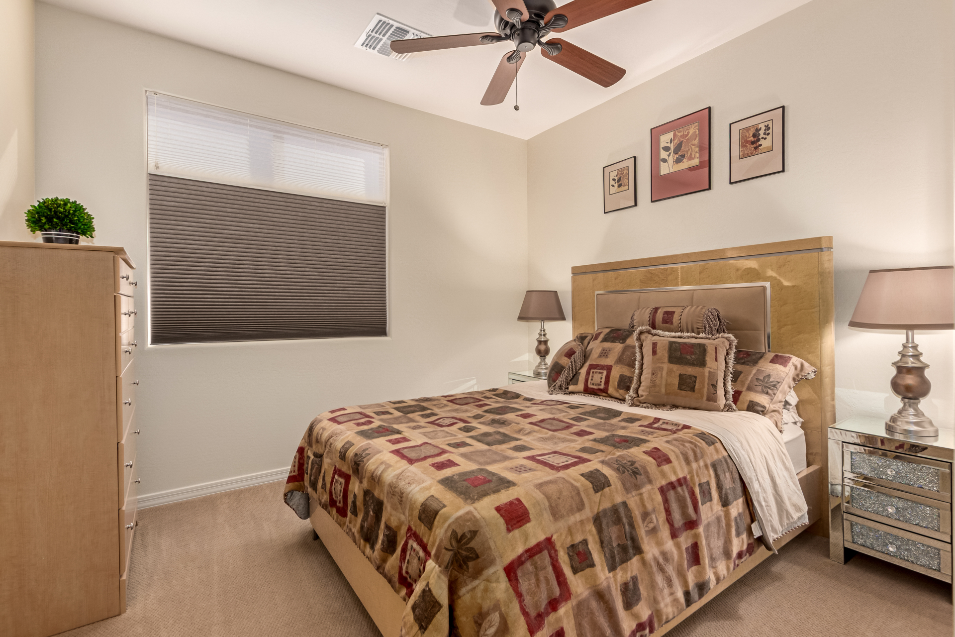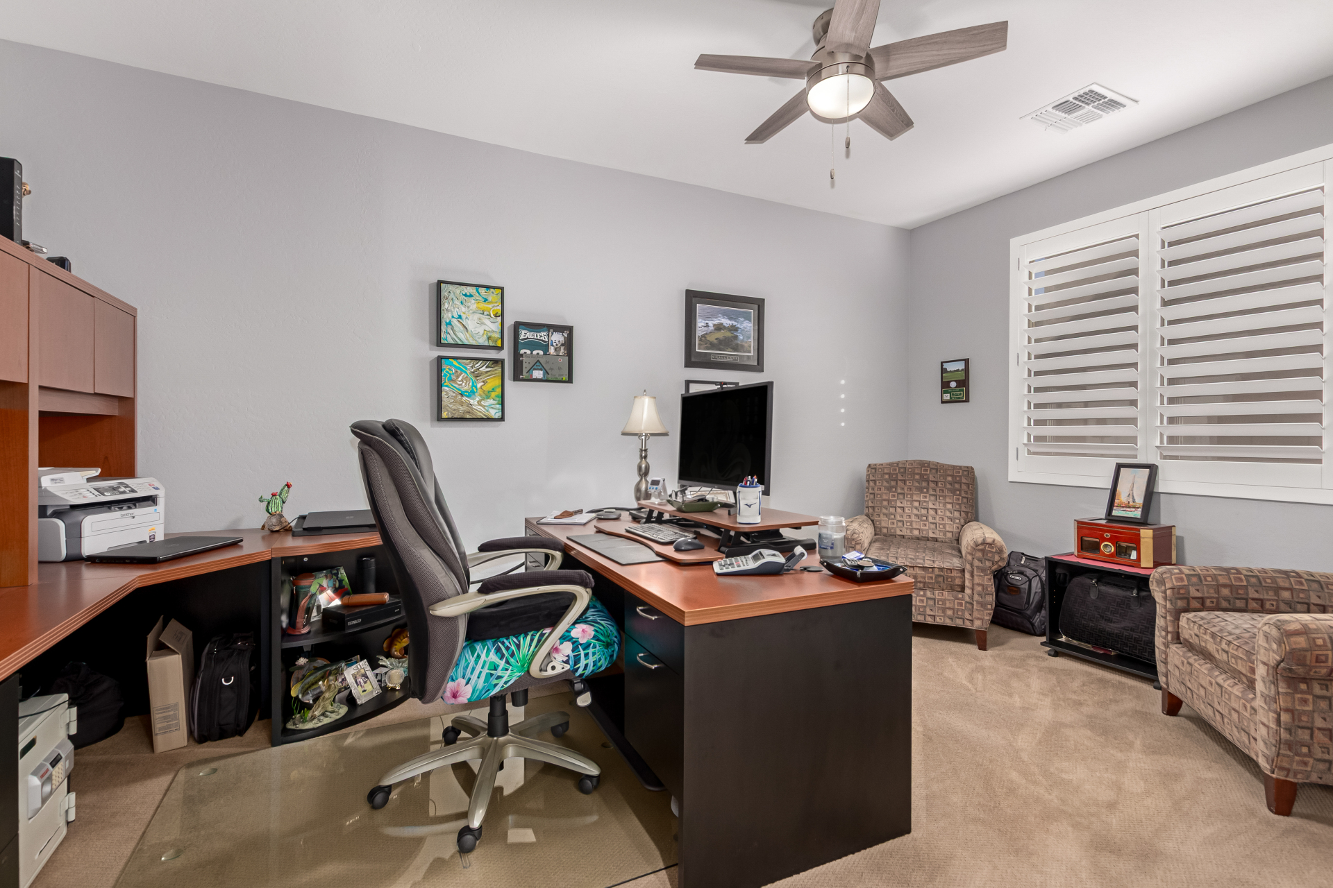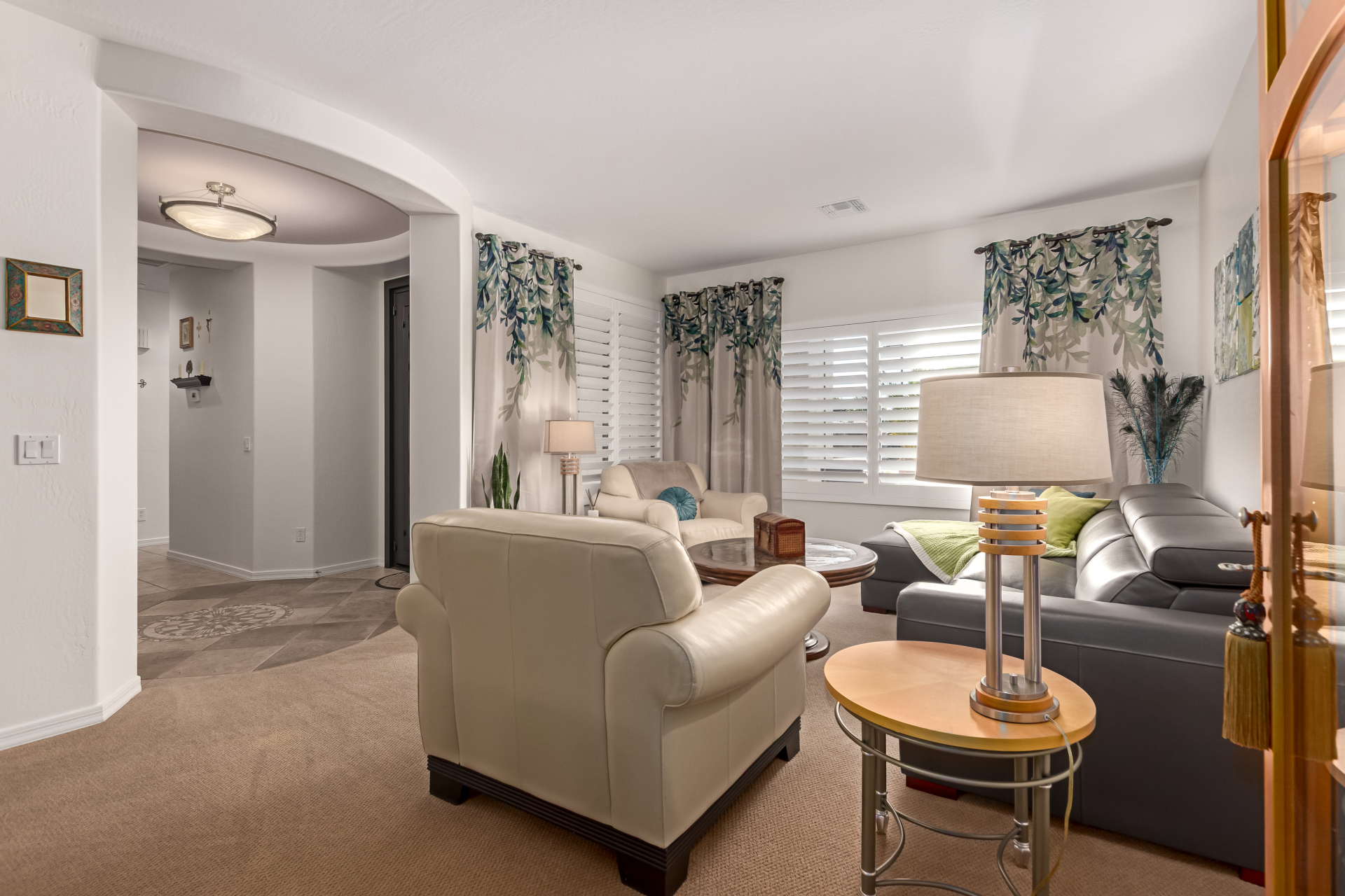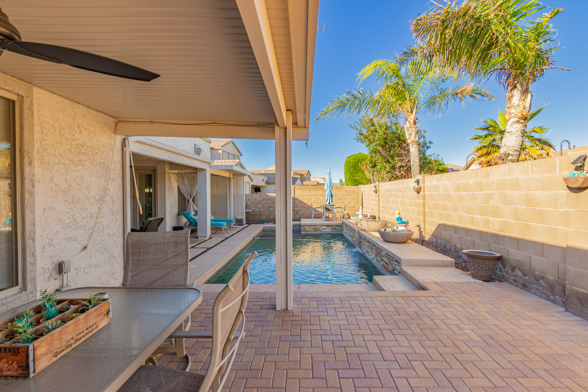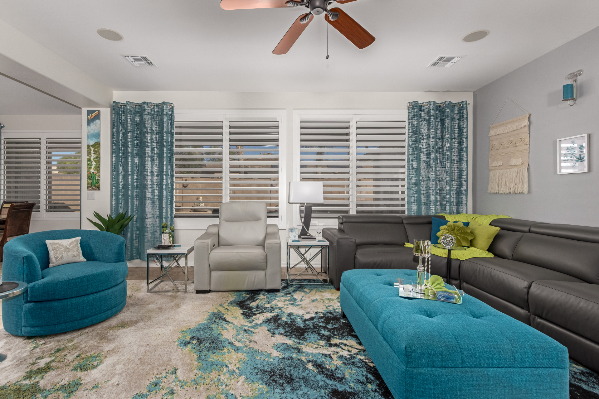 Located in the highly desirable community of Sanalina ~ This immaculate stunning home is has been extremely well kept & updated ~ Starting at the front entry a custom 1-of-a-kind metal & glass door welcomes you to a grand round foyer with a mosaic medallion tile floor & decorative niches ~ Large living/dining area can also be an amazing games room ~ Custom built-in entertainment center separates these rooms from the spacious family room & kitchen ~ Staggered cabinetry, beautiful granite slab counters & glass tile backsplashes, stainless appliances, upgraded gas range, eat-in nook, a fabulous butler's pantry that passes through to the formal dining area are some of the features of this incredible entertainer's dream kitchen ~ Family room overlooks the backyard pool & patios ~