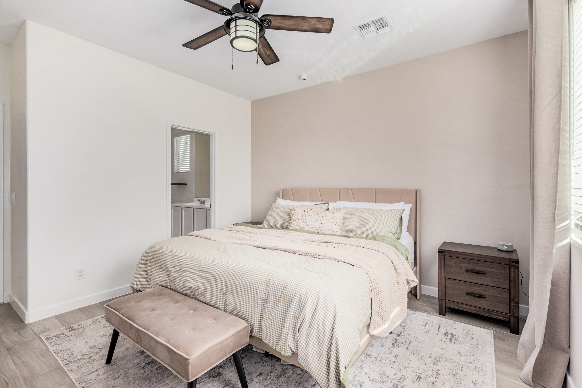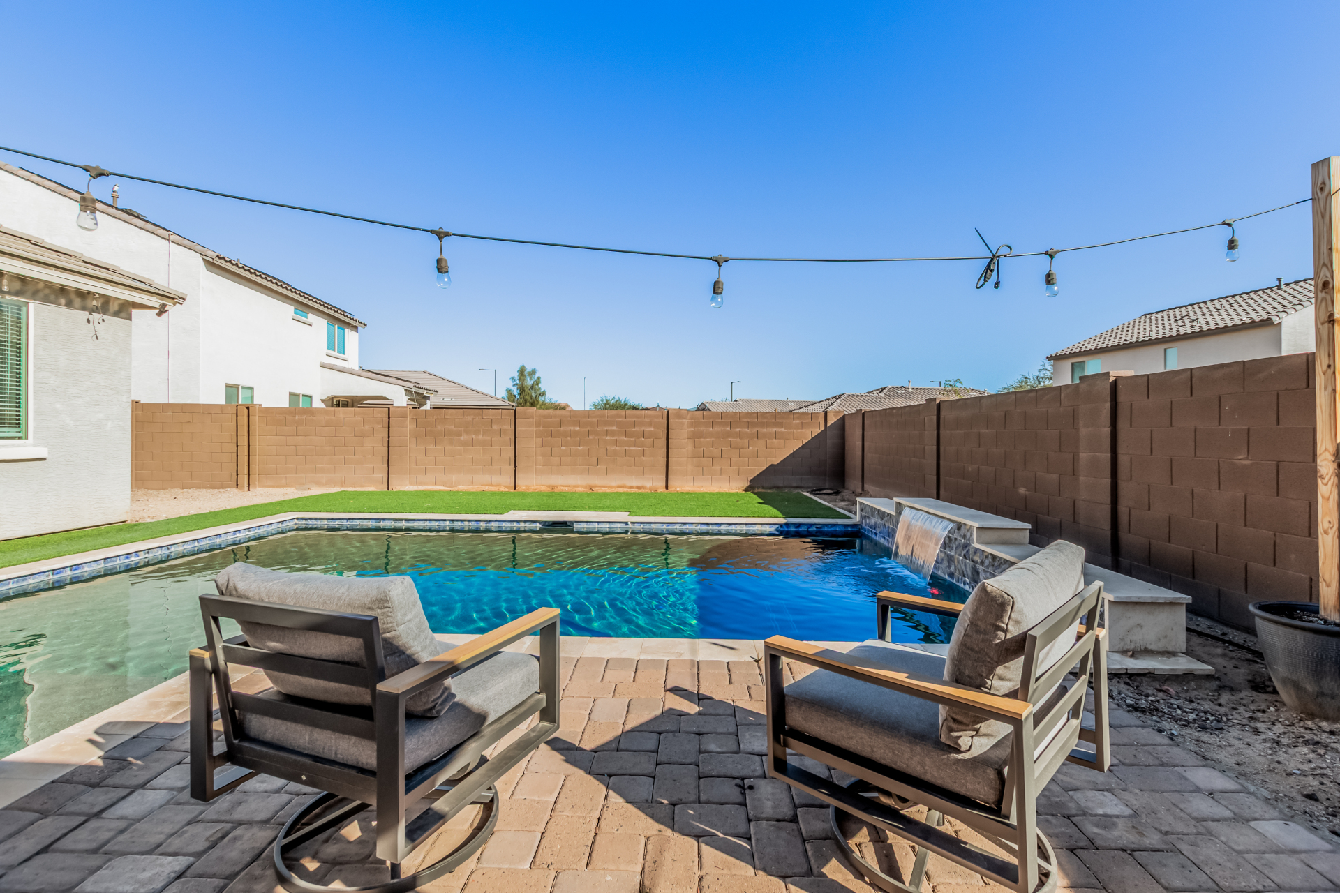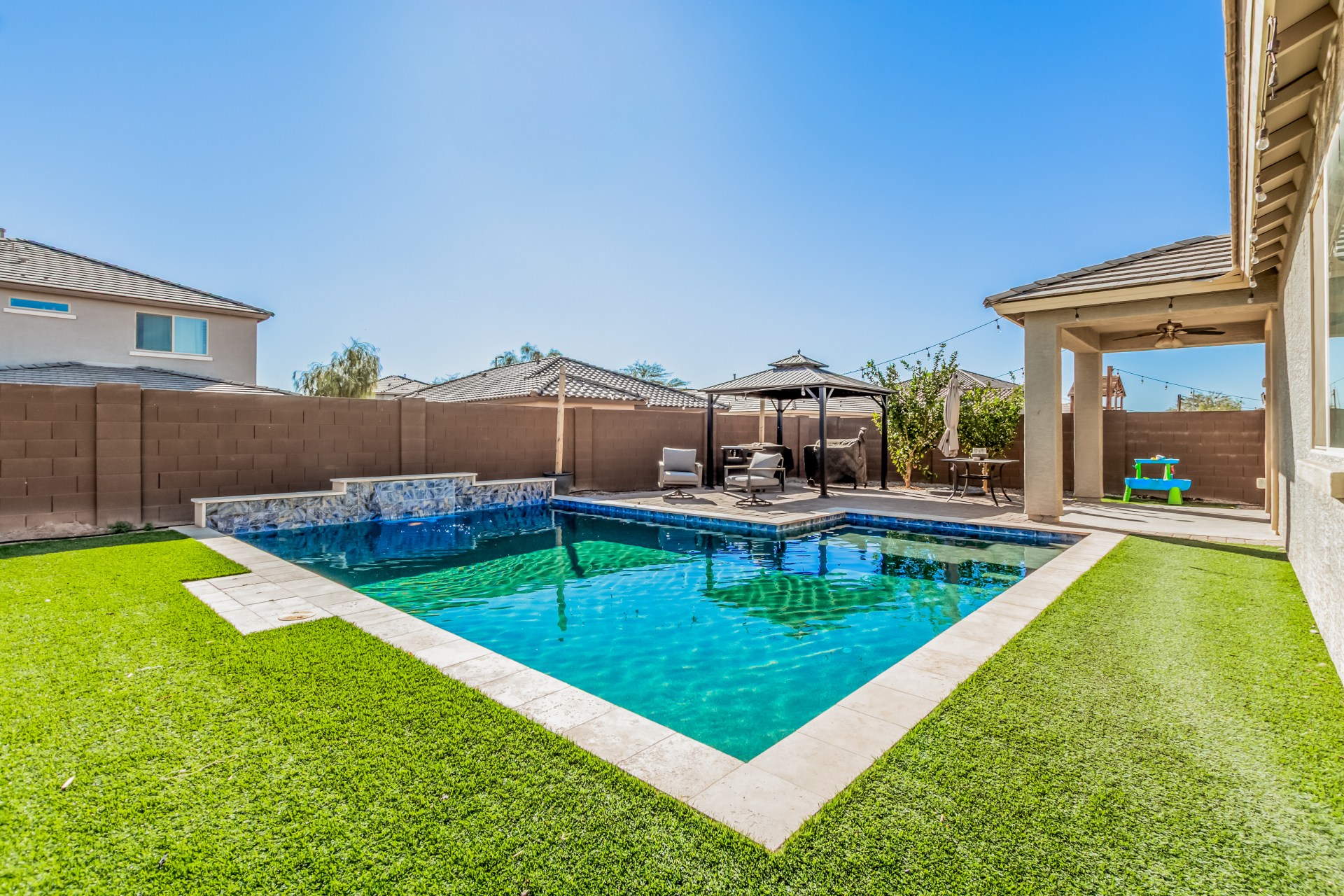 Lovely 3-bedroom home with POOL is now on the market! Explore the warm & inviting interior, featuring wood-look flooring, sliding doors to the patio, abundant natural light & neutral colors, all set in a practical open layout perfect for entertaining and relaxation. The pristine kitchen is equipped with recessed lighting, shaker-style cabinets, granite countertops, built-in appliances, and an island, for those quick bites & casual conversations. Enjoy a good night's rest in the main bedroom, offering a walk-in closet and an ensuite with double sinks. Your backyard oasis is complete with a covered patio, a nice seating space with pavers, a gazebo perfect for gatherings, a grass area, and a sparkling pool with a waterfall for a refreshing time! You don't want to miss it! Owner is an agent.