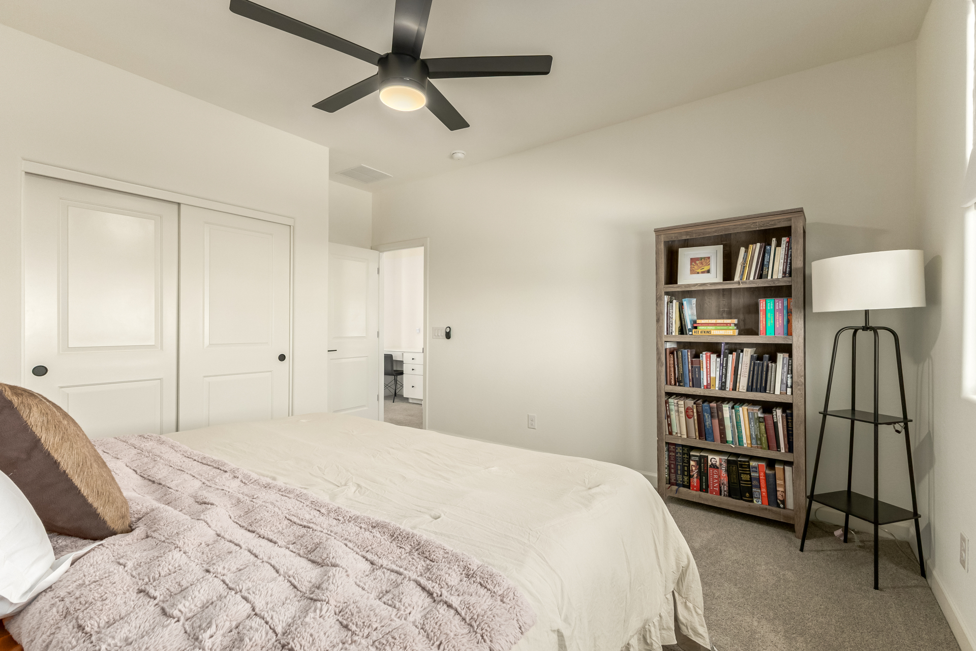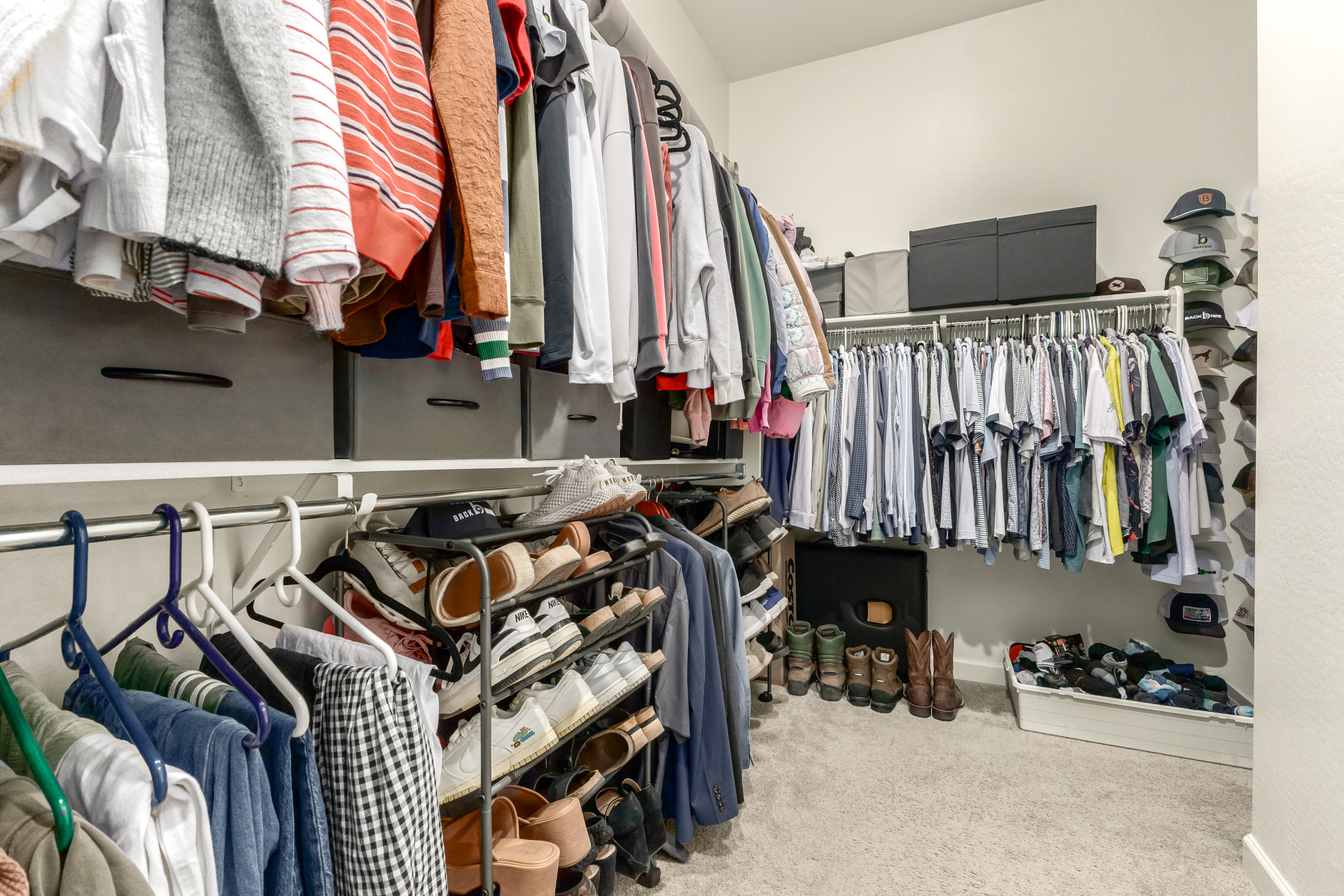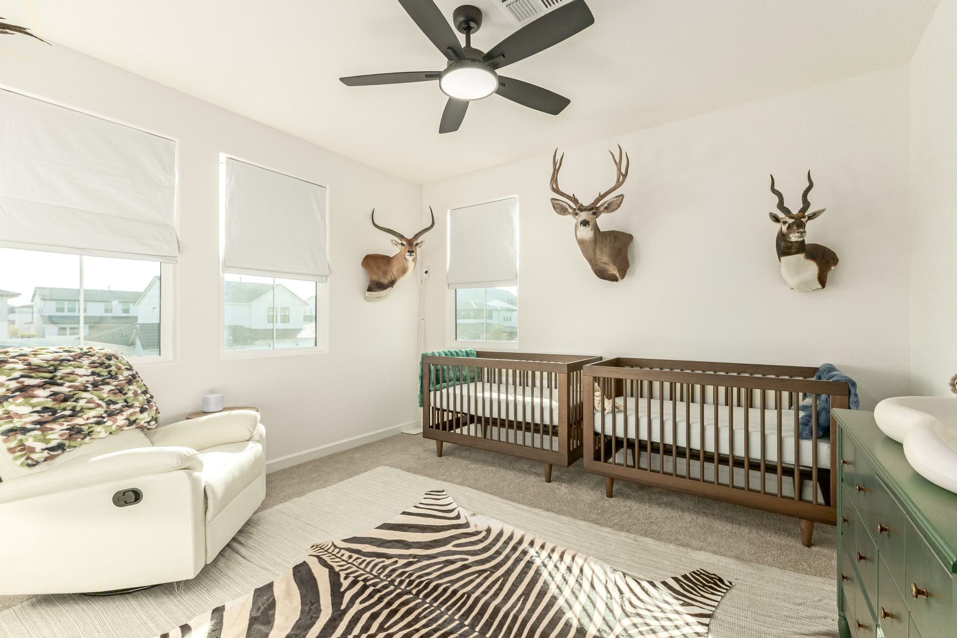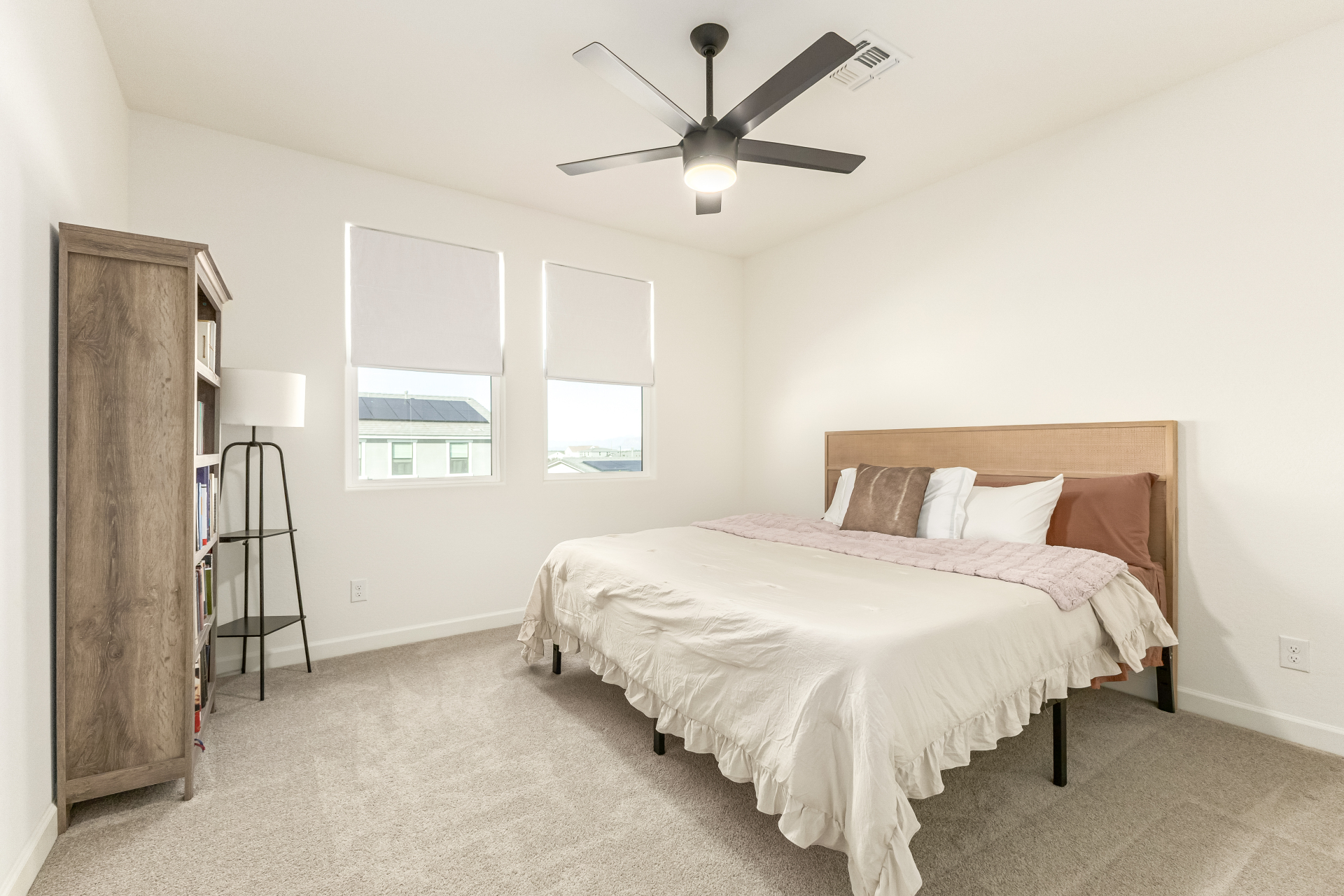 You don't want to miss this stunning 2-story gem with a 3-car garage with EV charger! The 3rd car which is separate is set up as a gym also has AC! Inside, gorgeous wood-look floors flow through a spacious great room designed for both everyday living and entertaining. The sleek kitchen is a showstopper, featuring stainless steel appliances with double wall ovens, quartz countertops, abundant white cabinetry, a center island with breakfast bar, and a walk-in pantry. The downstairs primary retreat offers a private bath with dual sinks and a generous walk-in closet. Also downstairs is a bedroom and full bathroom great for guests. Upstairs the versatile loft is ideal for a media center, while an additional cozy nook works perfectly as a home office or creative studio with built in desk.