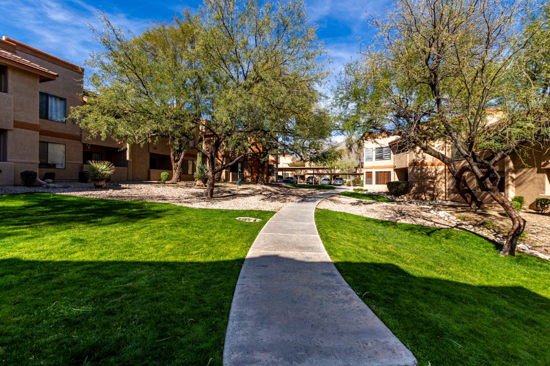 Stunning upstairs Condo in the heart of the desirable Villas at Sabino Canyon! This beautifully updated 2 bedroom, 2 bathroom unit boasts a spacious open floor plan with abundant natural light surrounded by breathtaking mountain views. Well maintained with a newer HVAC unit. Enjoy modern living and updated finishes throughout, including a stylish remodeled kitchen with stainless steal appliances and ample counter space. Private balcony for your morning coffee or evening relaxation. HOA covers water, sewer, trash, roof, and exterior. Community offers access to fantastic amenities, including a community pool, spa, fitness center, all within a gated community. Conveniently located near shopping, dining, and outdoor recreation. This condo offers the perfect blend of comfort and convenience