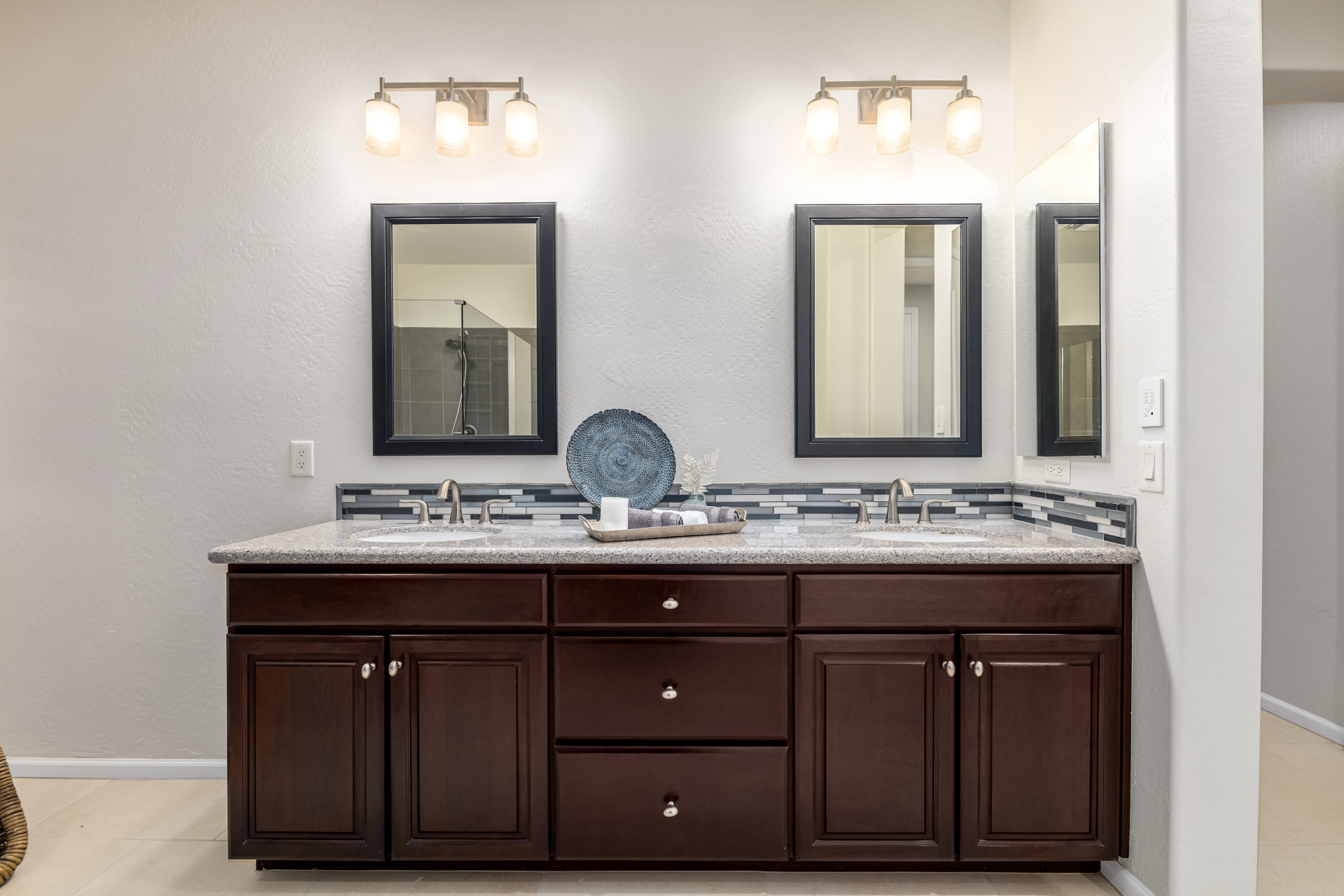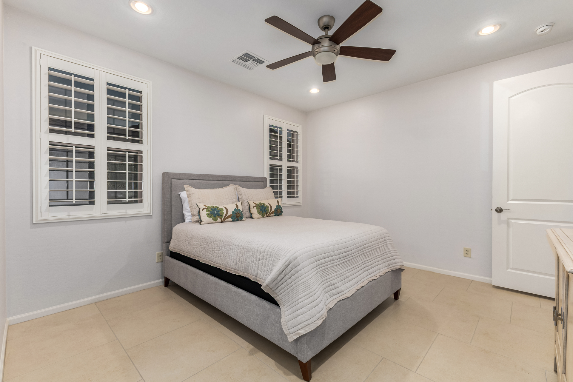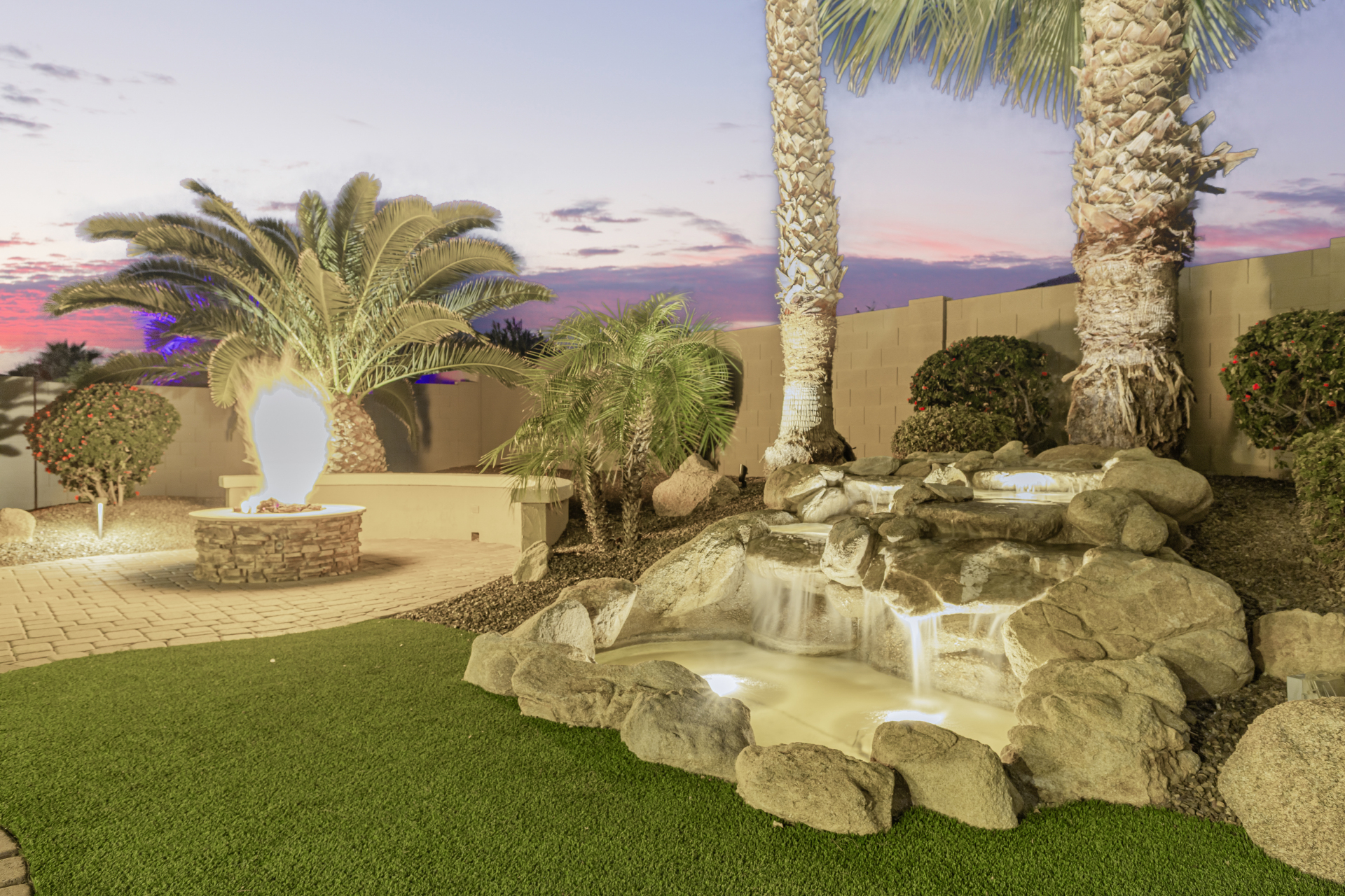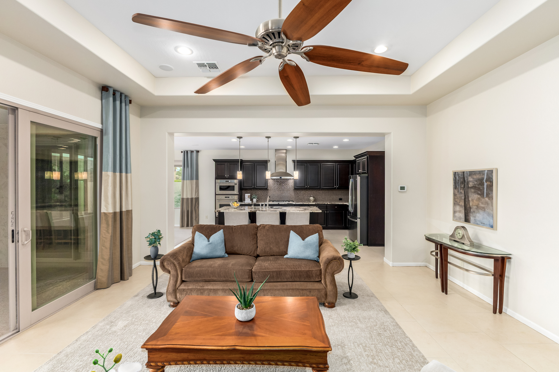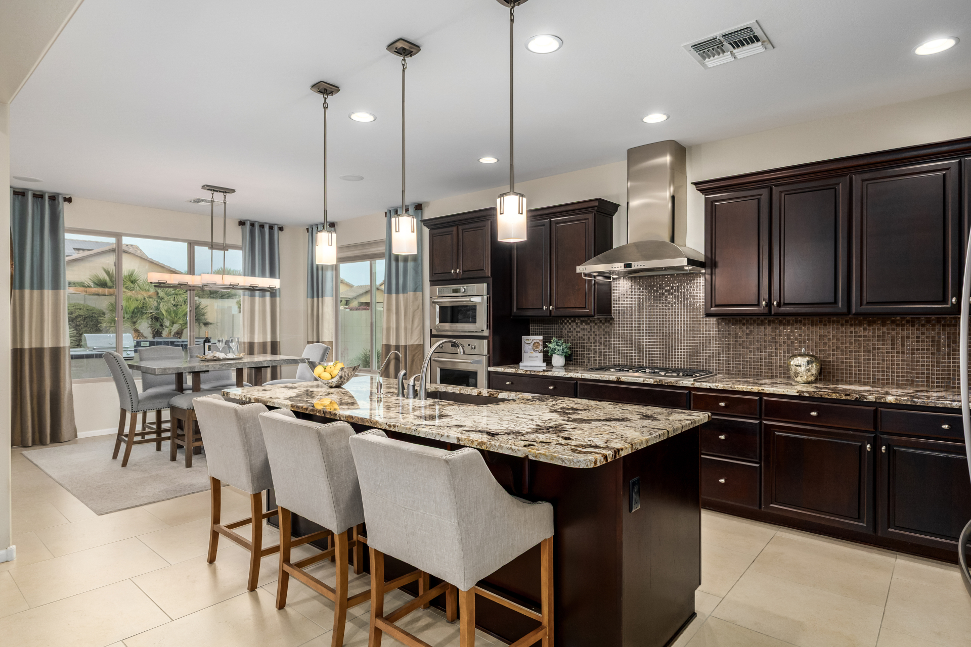 Welcome to this beautifully adorned, meticulously maintained home in PebbleCreek Golf Community. NEW Tesla Inverter and Solar Panels!! This extended Treviso model has it all! The gorgeous professional front landscape leads to the warmth of the front foyer to the open living area which allows you to take in the resort style back yard. A gourmet kitchen with large island, walk in pantry, & extended eat in kitchen makes entertaining family and friends easy! The spacious floor plan boasts 24'' tile floors throughout, Plantation Shutters, custom stacked stone feature wall with surround sound throughout the home, custom espresso kitchen cabinets with mosaic tile black splash, GE Monogram gas cook top, new refrigerator & more. Additional features include the newer garage cabinetry, epoxy garage floors, addt'l overhead storage & extended garages! OWNED SOLAR is another PLUS! Enjoy the professionally landscaped PRIVATE back yard, boasting a large covered patio with cobblestone pavers, serene rock waterfall.