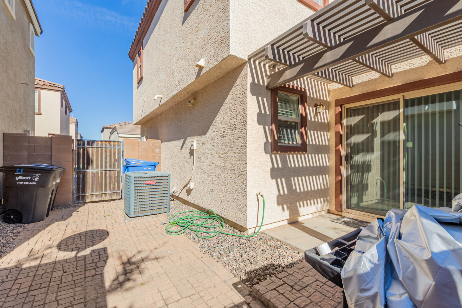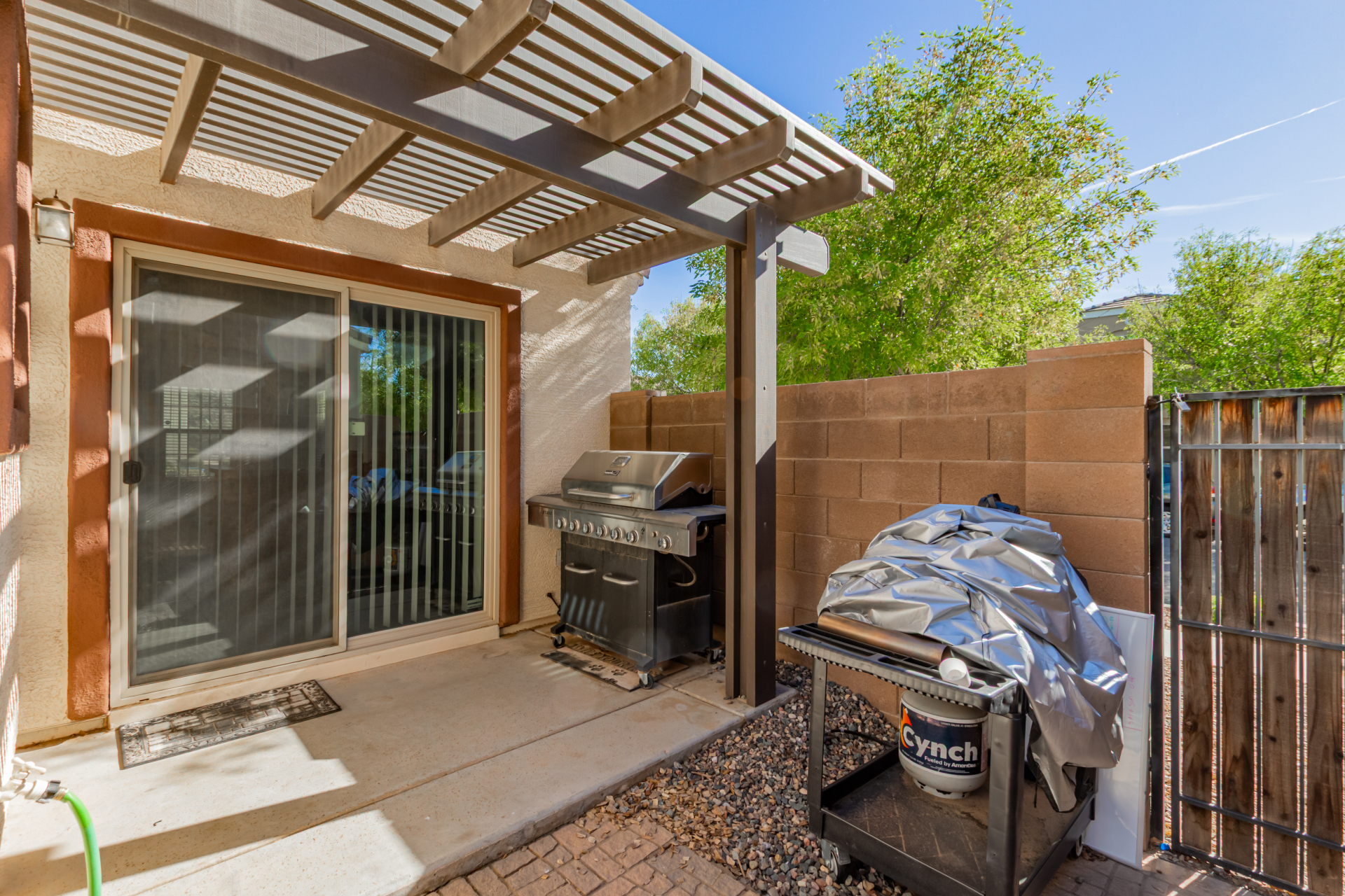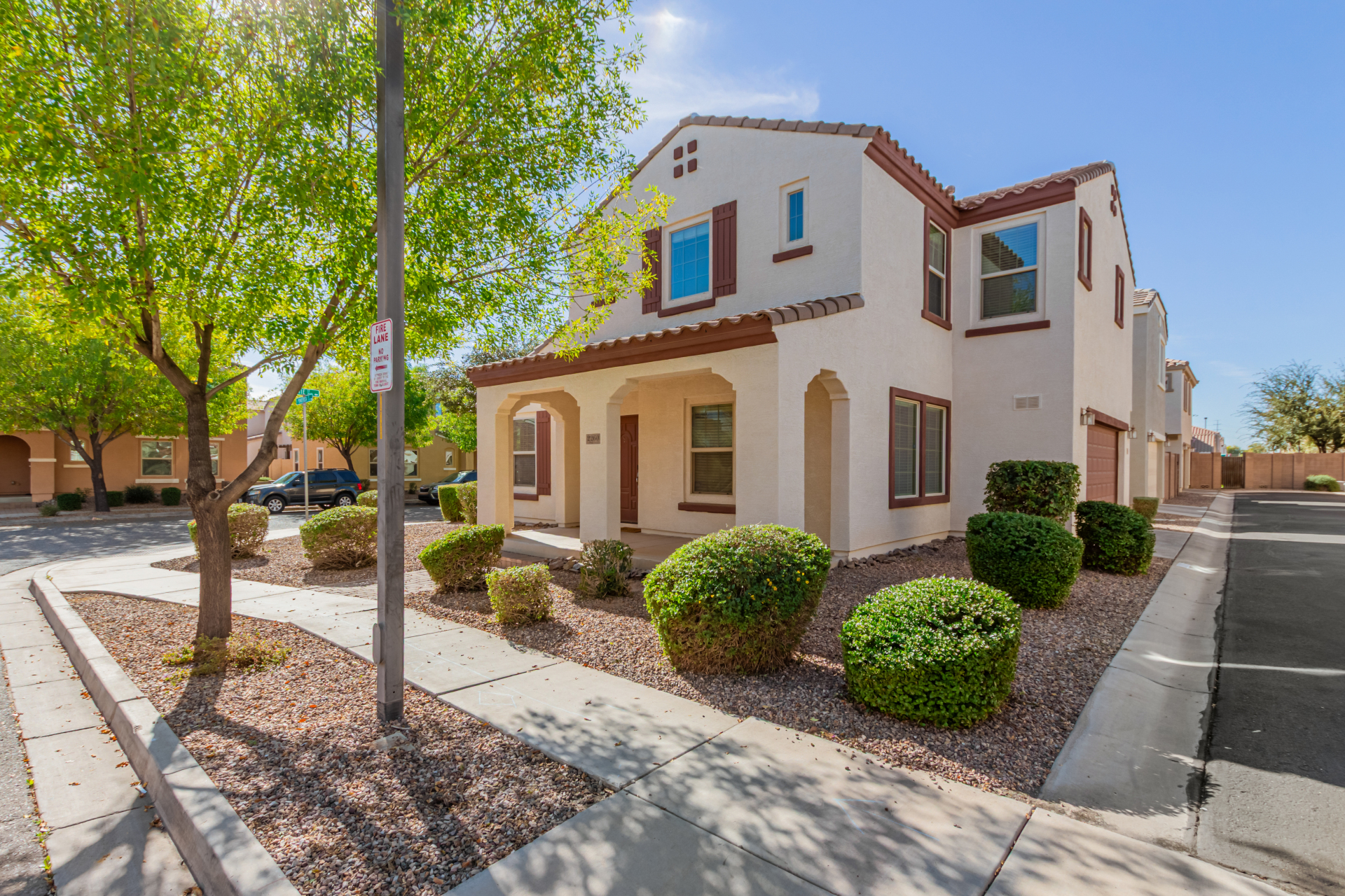 Adorable two-story home in a desirable corner lot in Lyons Gate! The interior boasts inviting living spaces with tile flooring, carpet in select areas, abundant natural light, and all the right tones, making every space perfect for entertaining and relaxation. You'll find a surround sound system in the living room, perfect for movie nights. The well-appointed kitchen features cabinets adorned with crown molding, spacious counters, and built-in appliances for a seamless cooking experience. Get a good night's rest in the main suite, complete with a closet and a bathroom for privacy. Get ready for weekend grills and peaceful evenings in the backyard, showcasing a cozy covered patio and a nice seating area with pavers. Hurry up, this one won't last!