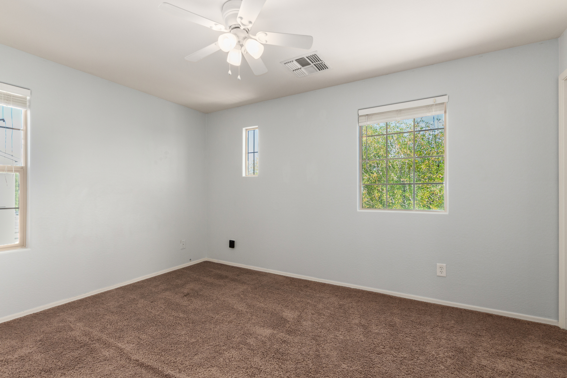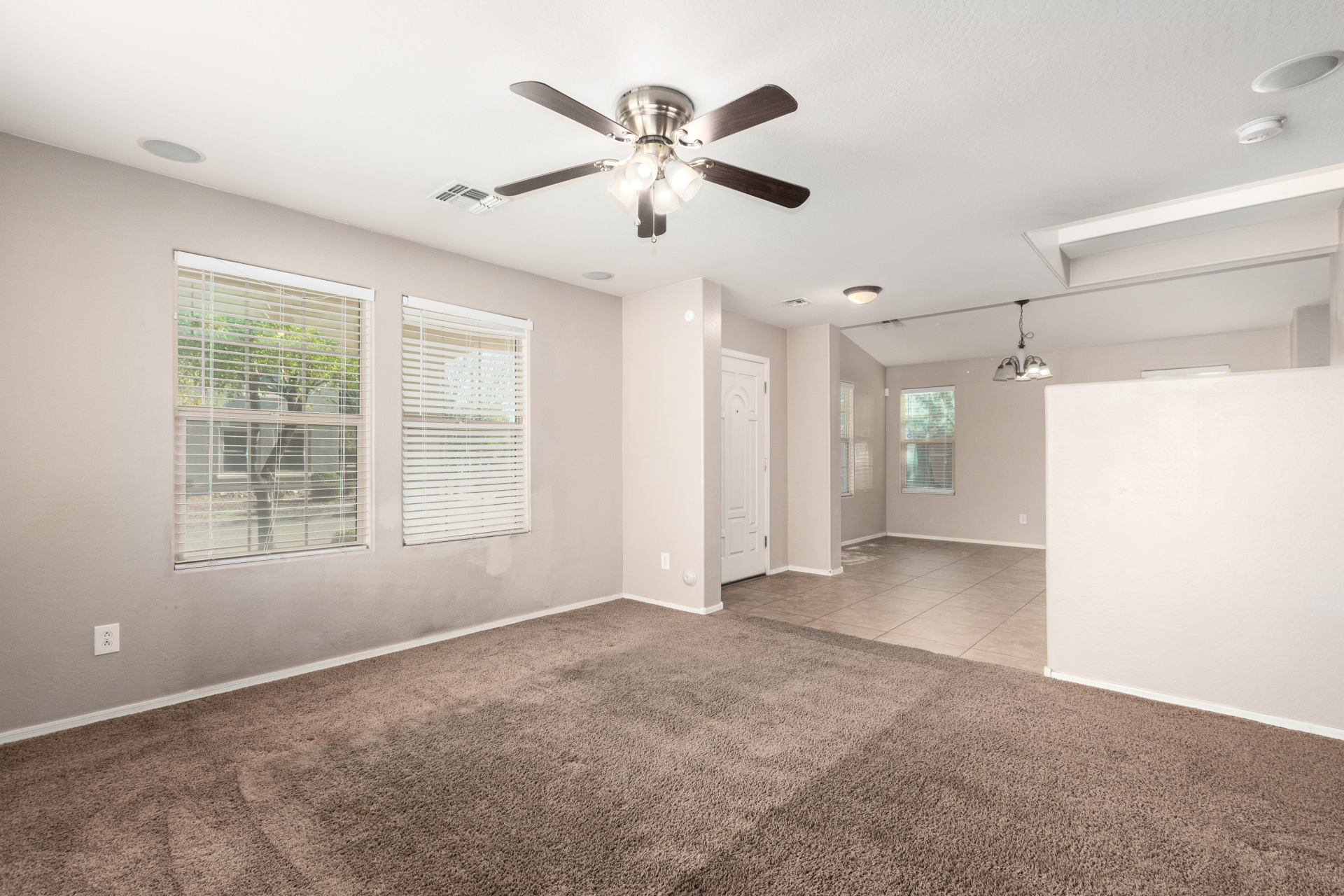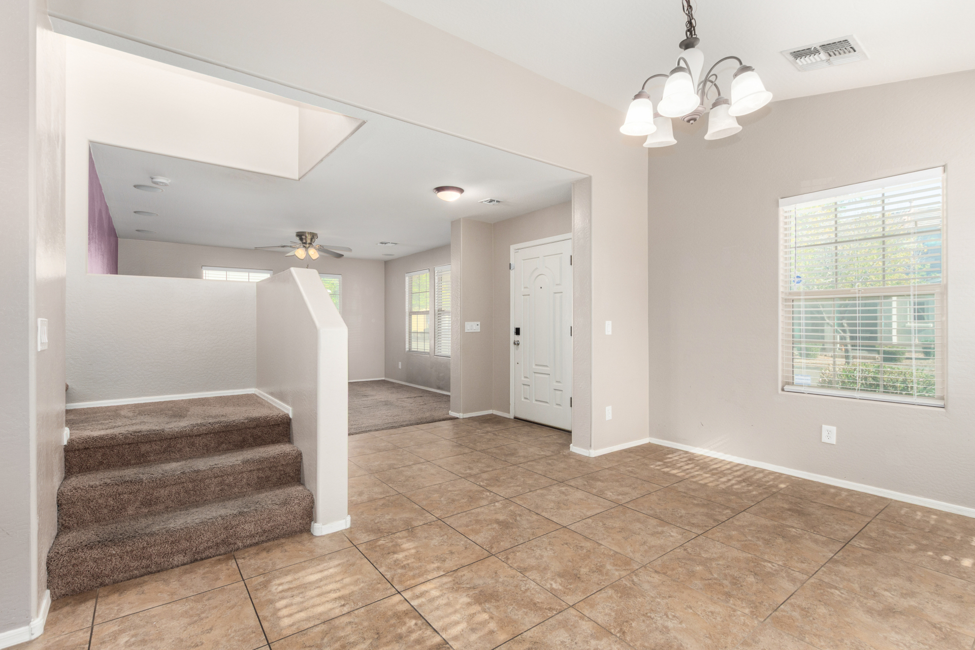 Adorable two-story home in a desirable corner lot in Lyons Gate! The interior boasts inviting living spaces with tile flooring, carpet in select areas, abundant natural light, and all the right tones, making every space perfect for entertaining and relaxation. You'll find a surround sound system in the living room, perfect for movie nights. The well-appointed kitchen features cabinets adorned with crown molding, spacious counters, and built-in appliances for a seamless cooking experience. Get a good night's rest in the main suite, complete with a closet and a bathroom for privacy. Get ready for weekend grills and peaceful evenings in the backyard, showcasing a cozy covered patio and a nice seating area with pavers. Hurry up, this one won't last!