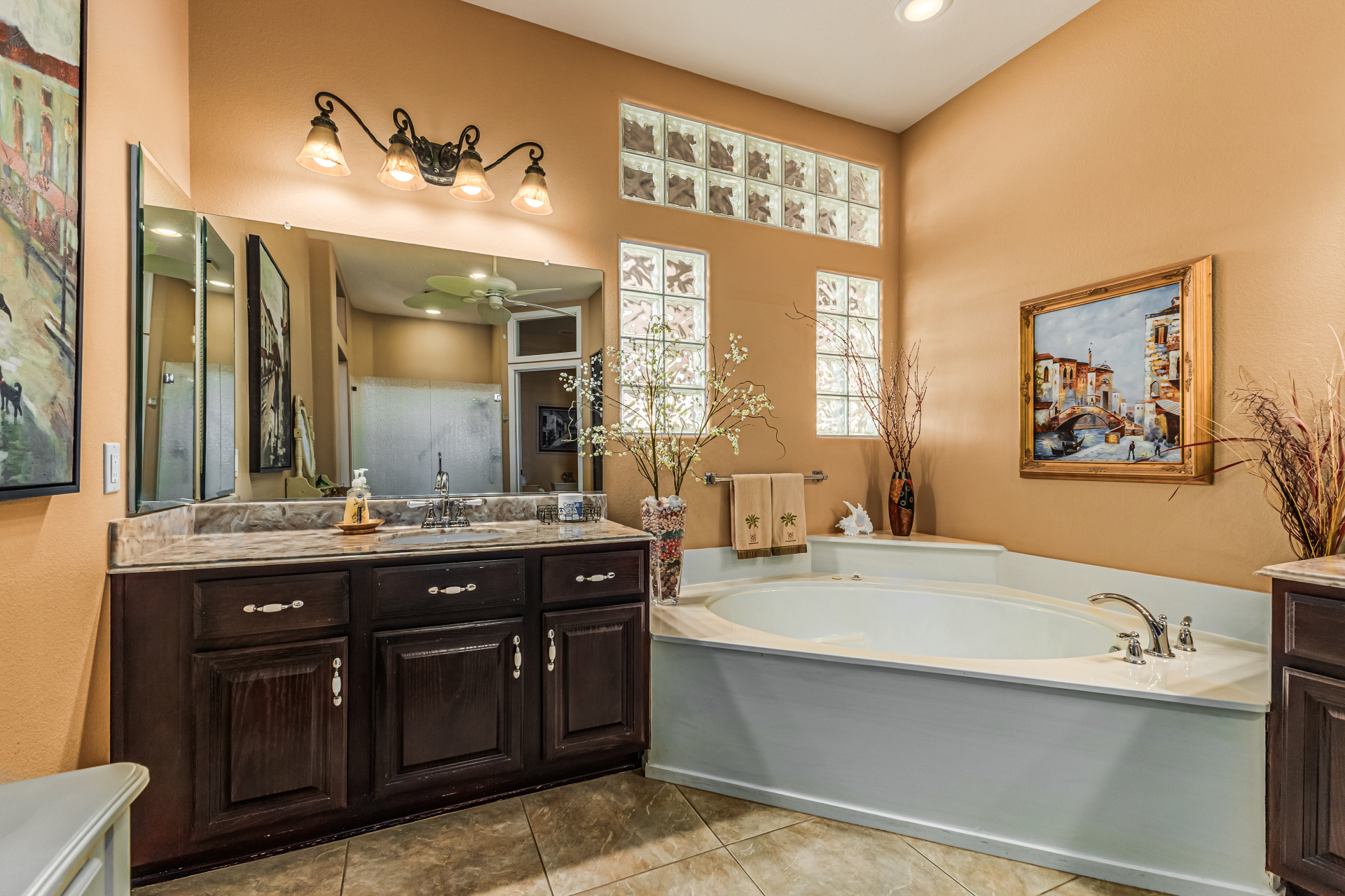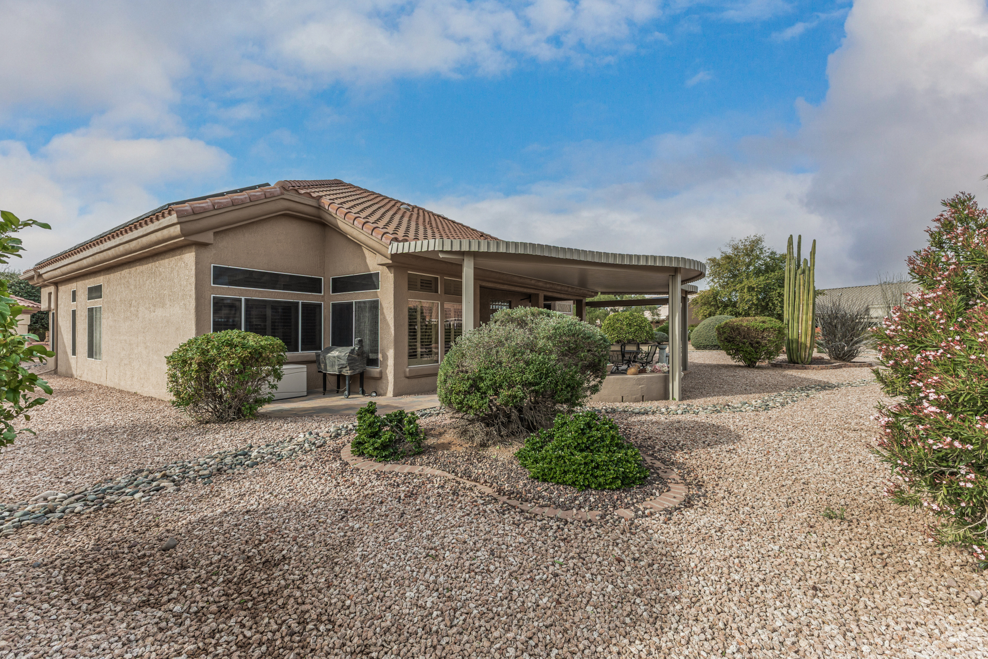 This is the nicest Cottonwood to come on the market in a long time. Everything is done top of the line with exquisite taste. The living room has been converted to an office, a wall was added with matching architectural features. The kitchen has been remodeled with breath taking soft white color cabinets with pull outs, granite counters, back splash, stainless steel appliances, 5 burner gas cook top, convection microwave and oven, Blanco sink. Both bathrooms and laundry room have been updated. Lovely decorator interior colors 2014. Outside sandblasted, new stucco and painted 2017. AC/Heaters in 2014, 2024. One is a 3 ton and one is a 4 ton. The outside is gorgeous and private, 15,860 sf. lot, extended covered patio, Kool decking, Plantation shutters throughout house (2020).