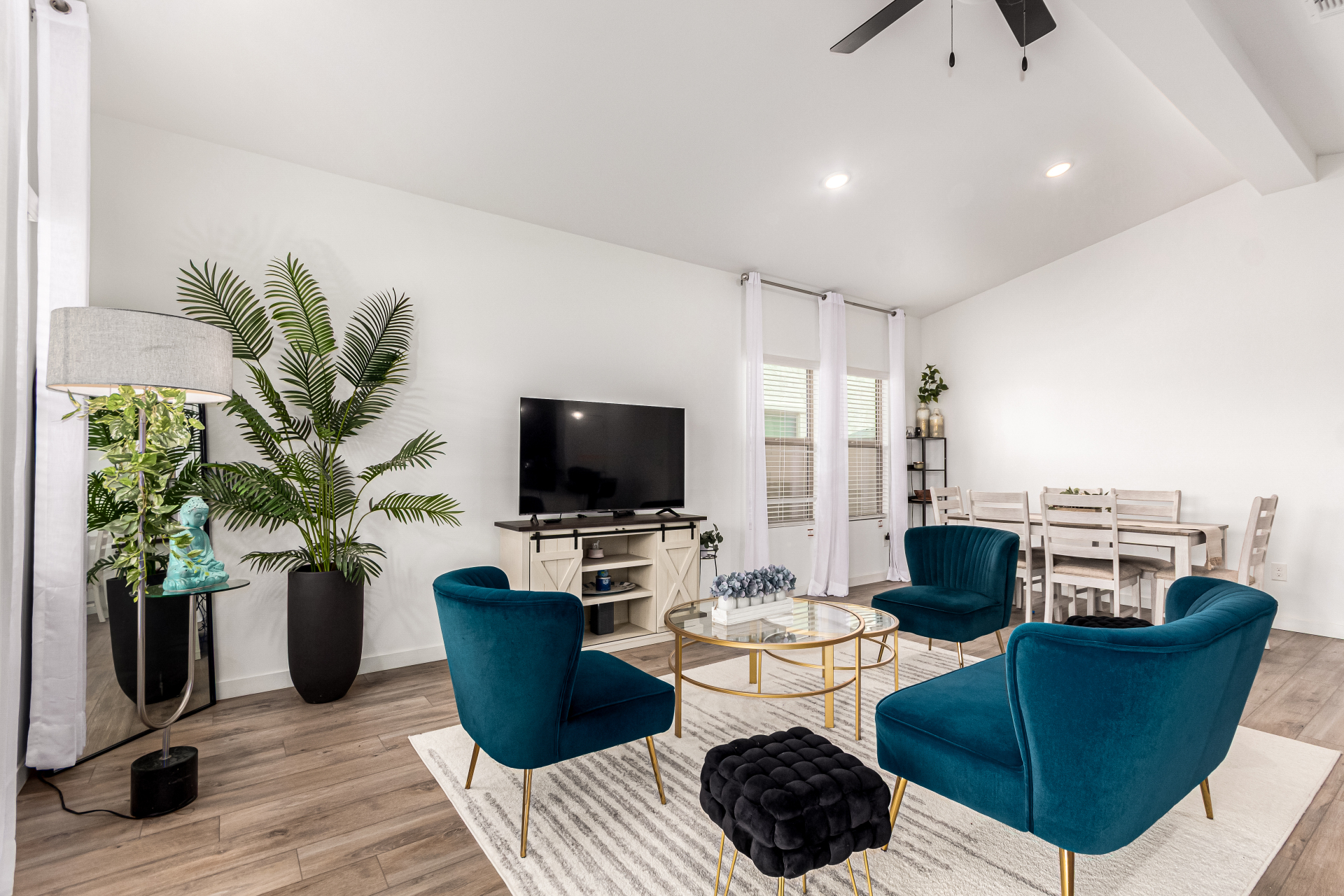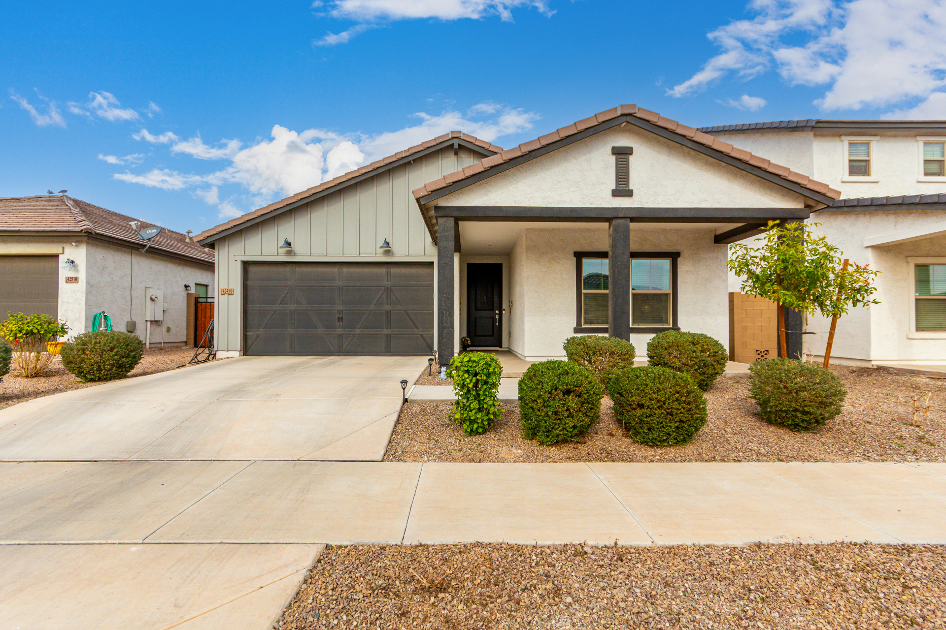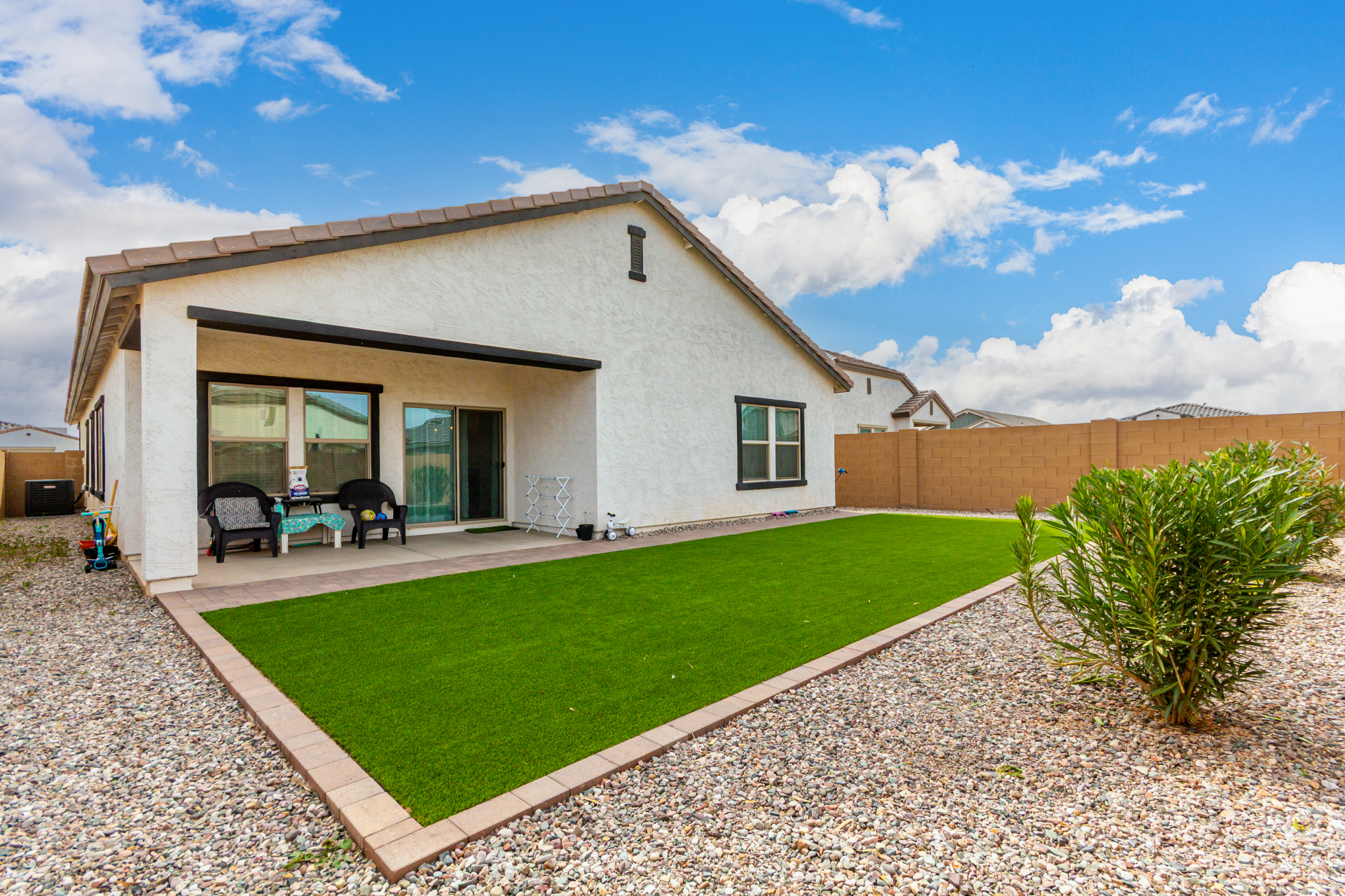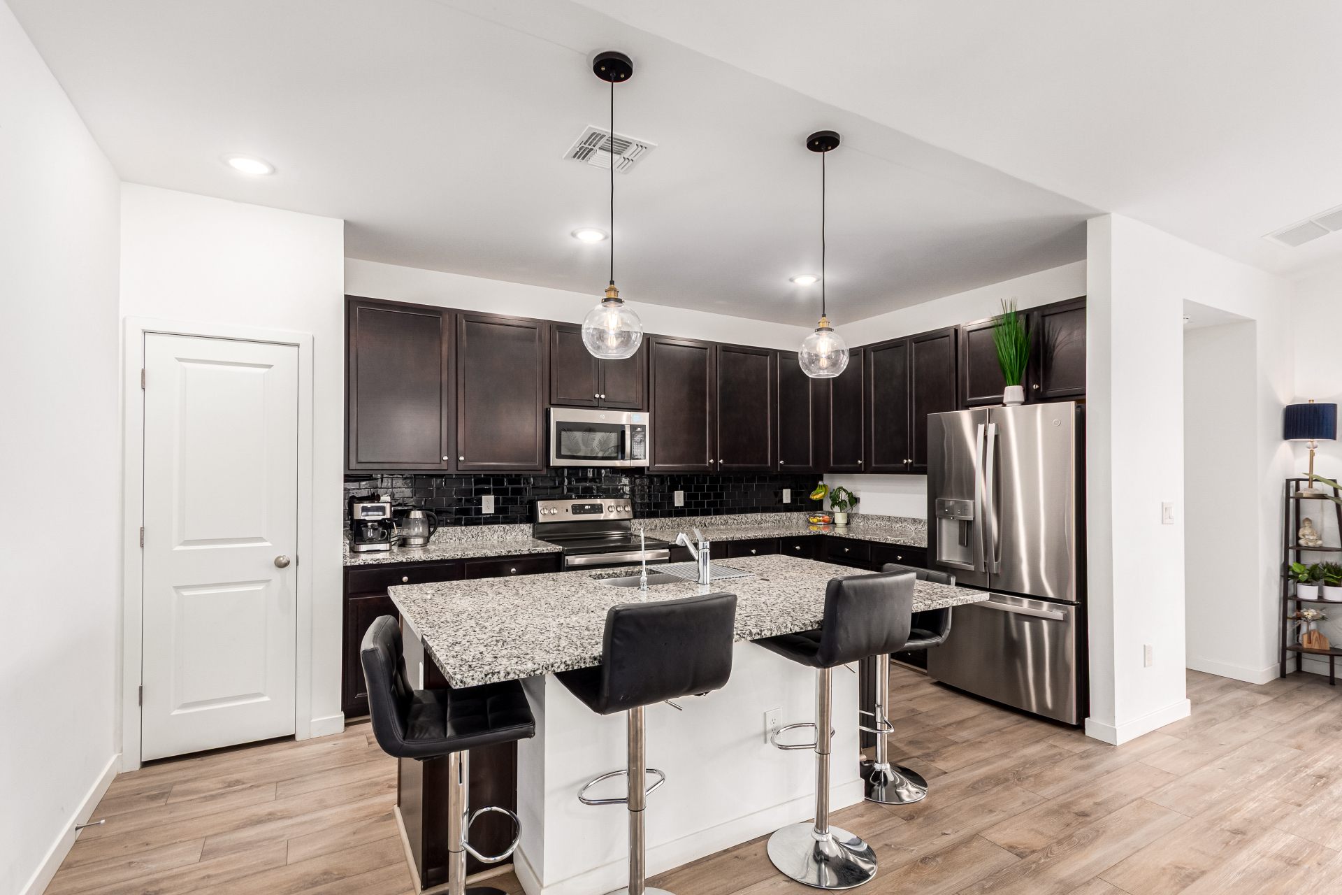 Discover this charming 4bed/3bath home ! A 2 car garage welcomes you in, setting the stage for what awaits inside. Wood-look floors enhance the spacious living room, creating a warm and versatile gathering space. The kitchen stands out with stainless steel appliances, granite countertops, neutral cabinetry, a pantry, tile backsplash, and a center island with a breakfast bar ideal for everyday living and entertaining. The primary bedroom offers a relaxing retreat with a private bathroom featuring dual sinks and a walk-in closet. A flexible den provides endless possibilities for a home office, playroom, or hobby space. Step outside to the covered patio and enjoy a backyard with plenty of room for outdoor activities or peaceful evenings under the stars. This is one you won't want to miss.
