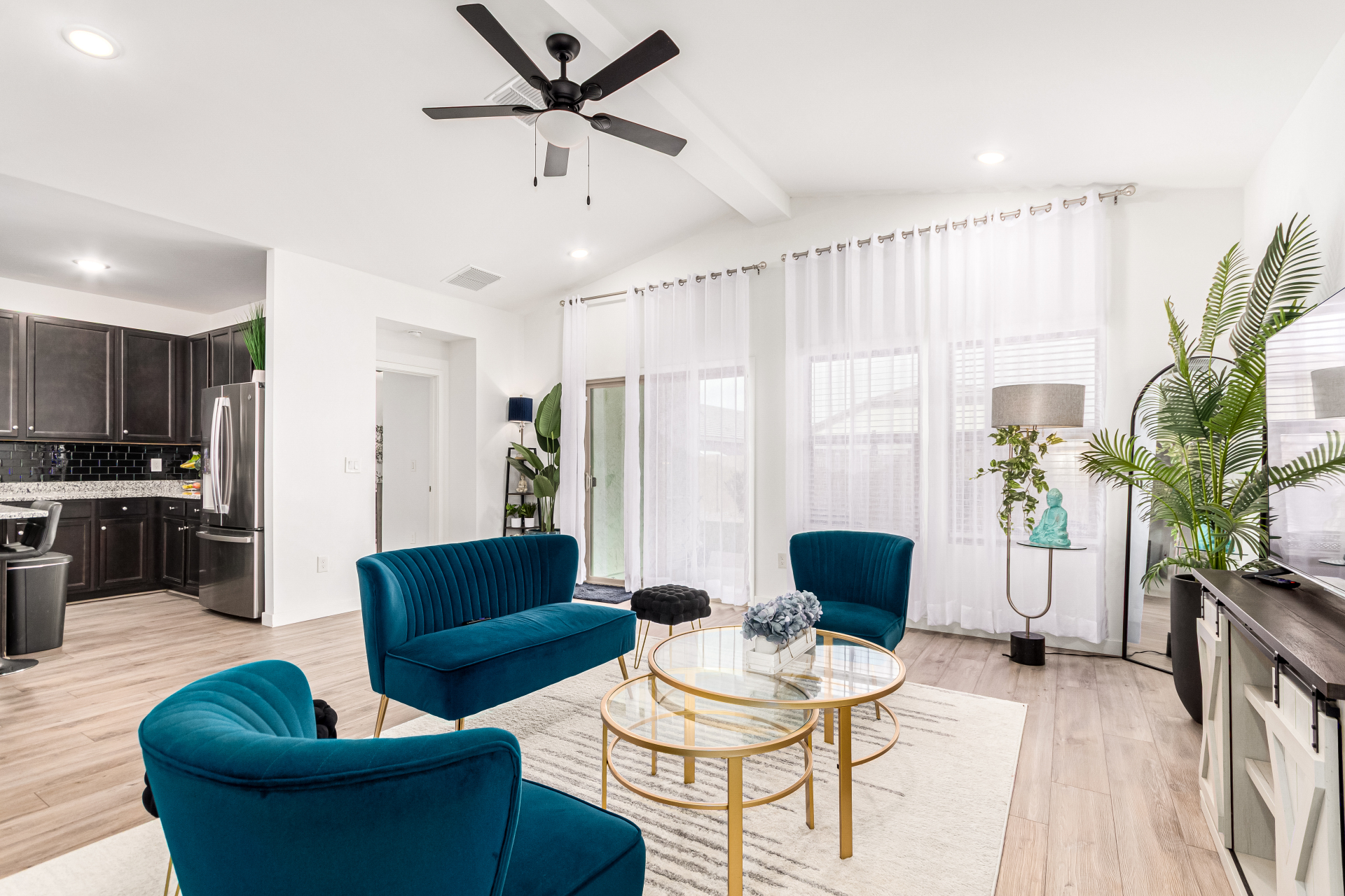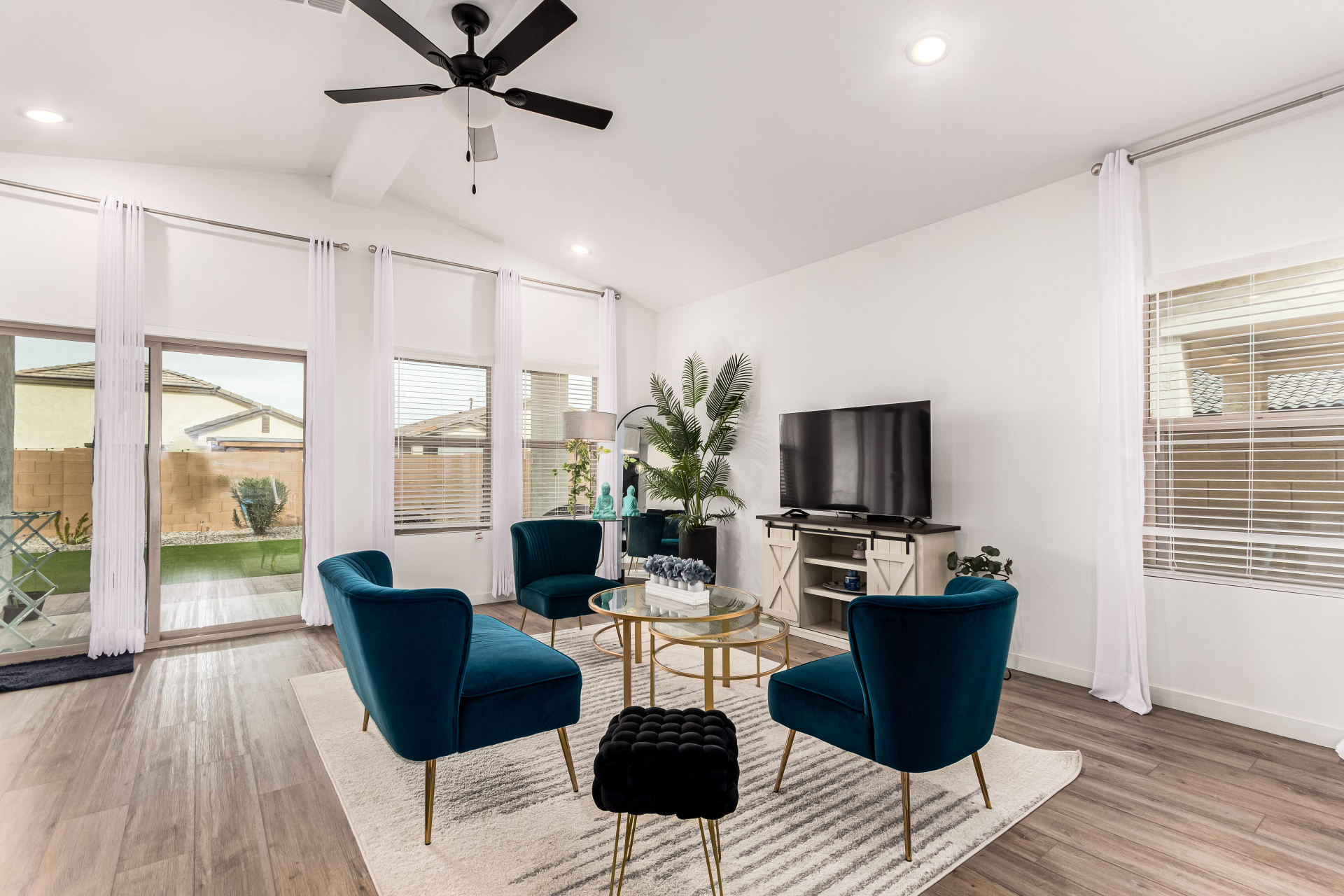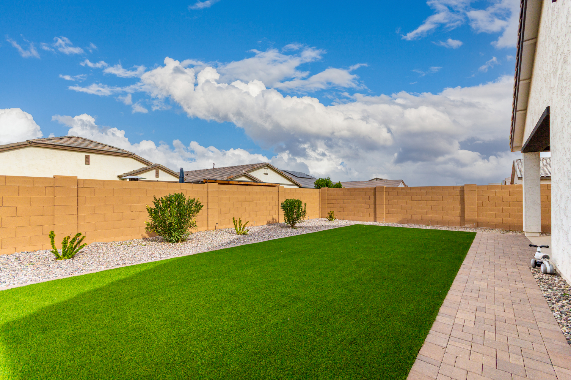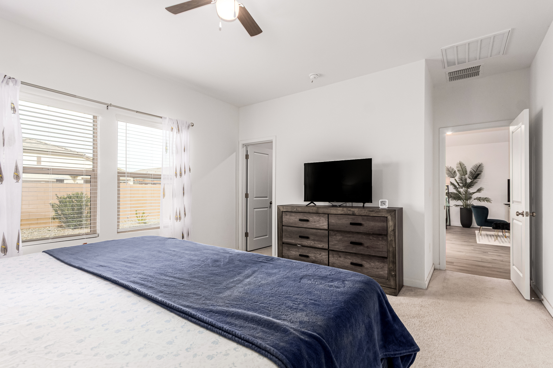 Discover this charming 4bed/3bath home ! A 2 car garage welcomes you in, setting the stage for what awaits inside. Wood-look floors enhance the spacious living room, creating a warm and versatile gathering space. The kitchen stands out with stainless steel appliances, granite countertops, neutral cabinetry, a pantry, tile backsplash, and a center island with a breakfast bar ideal for everyday living and entertaining. The primary bedroom offers a relaxing retreat with a private bathroom featuring dual sinks and a walk-in closet. A flexible den provides endless possibilities for a home office, playroom, or hobby space. Step outside to the covered patio and enjoy a backyard with plenty of room for outdoor activities or peaceful evenings under the stars. This is one you won't want to miss.