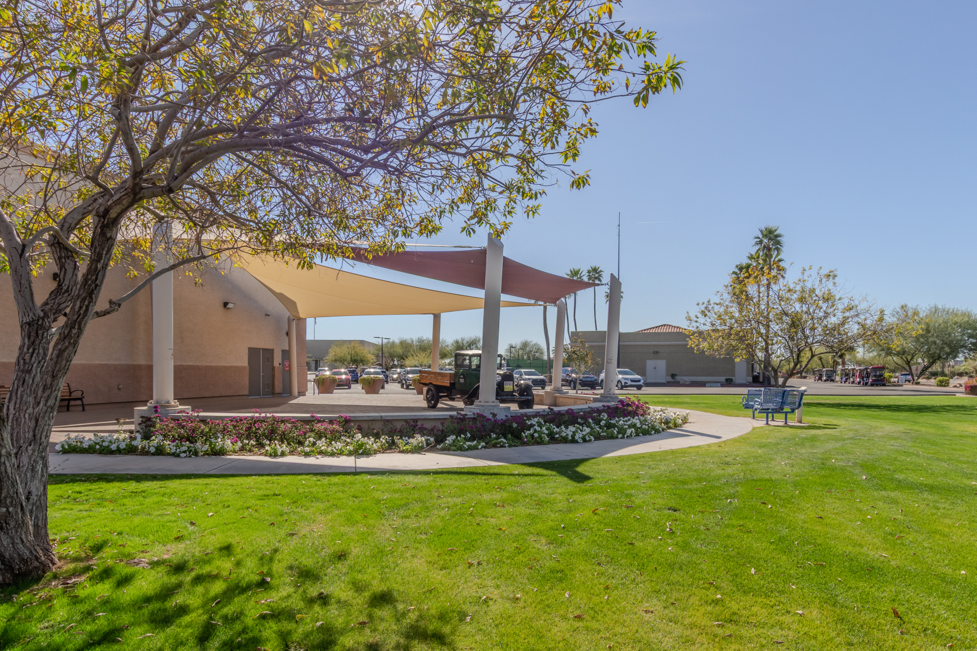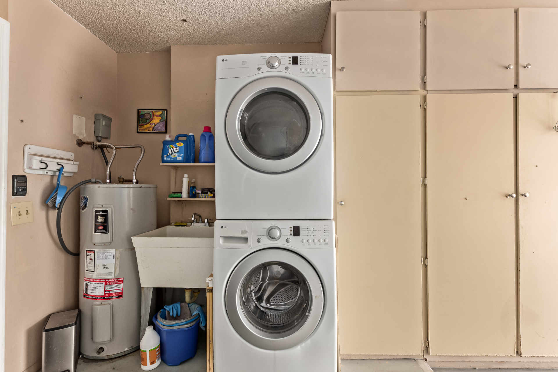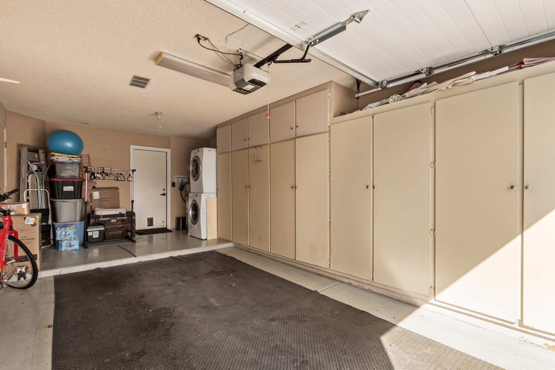This highly upgraded end-unit residence offers 2 bedrooms, 2 baths, and a 1-car garage. Luxury vinyl plank flooring flows seamlessly throughout the home, complemented by upgraded hardware, designer shutters on every window, and modern ceiling fans. The kitchen features granite countertops, a breakfast bar, white cabinetry, and a custom backsplash. The living room showcases a built-in electric fireplace with multiple settings, creating a warm, inviting ambiance. A dedicated office area includes built-in cabinetry for added functionality. The primary bedroom opens to a private rear patio, while the bath offers dual sinks and a custom built walk-in closet. The tiled patio is enhanced by a pergola, providing a private outdoor retreat. It is in Immaculate and truly move-in ready.