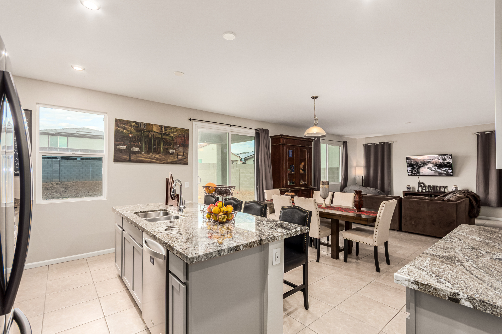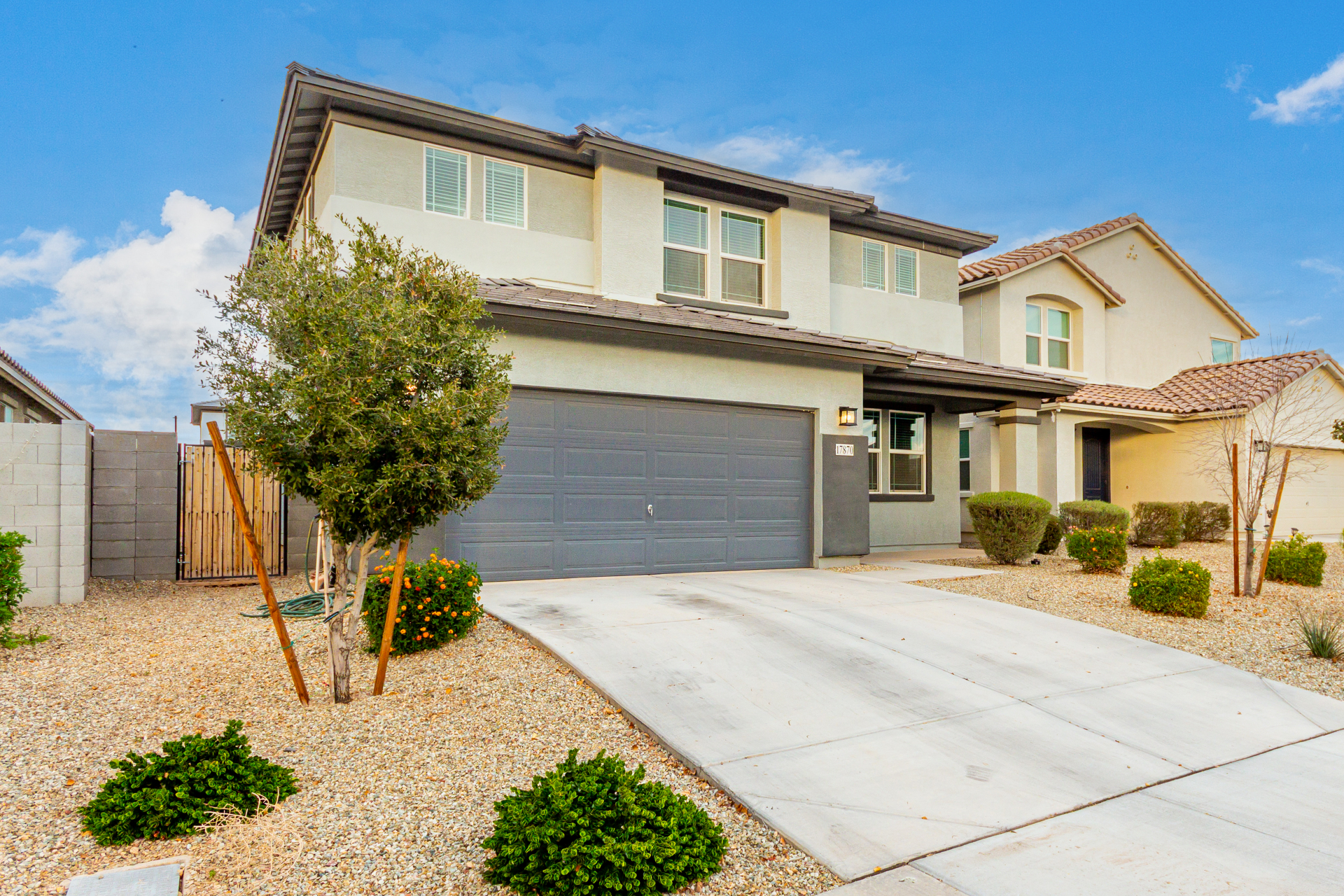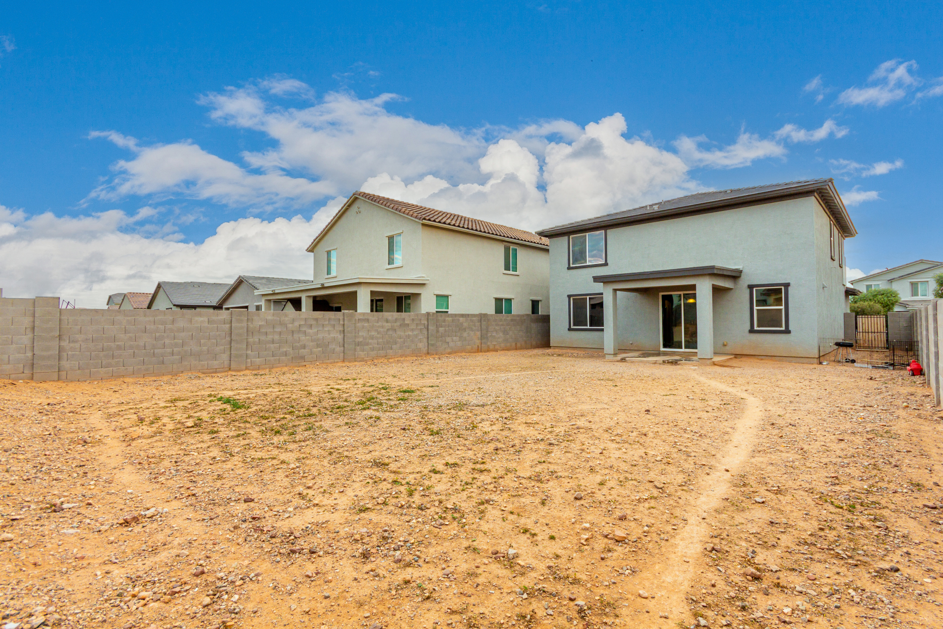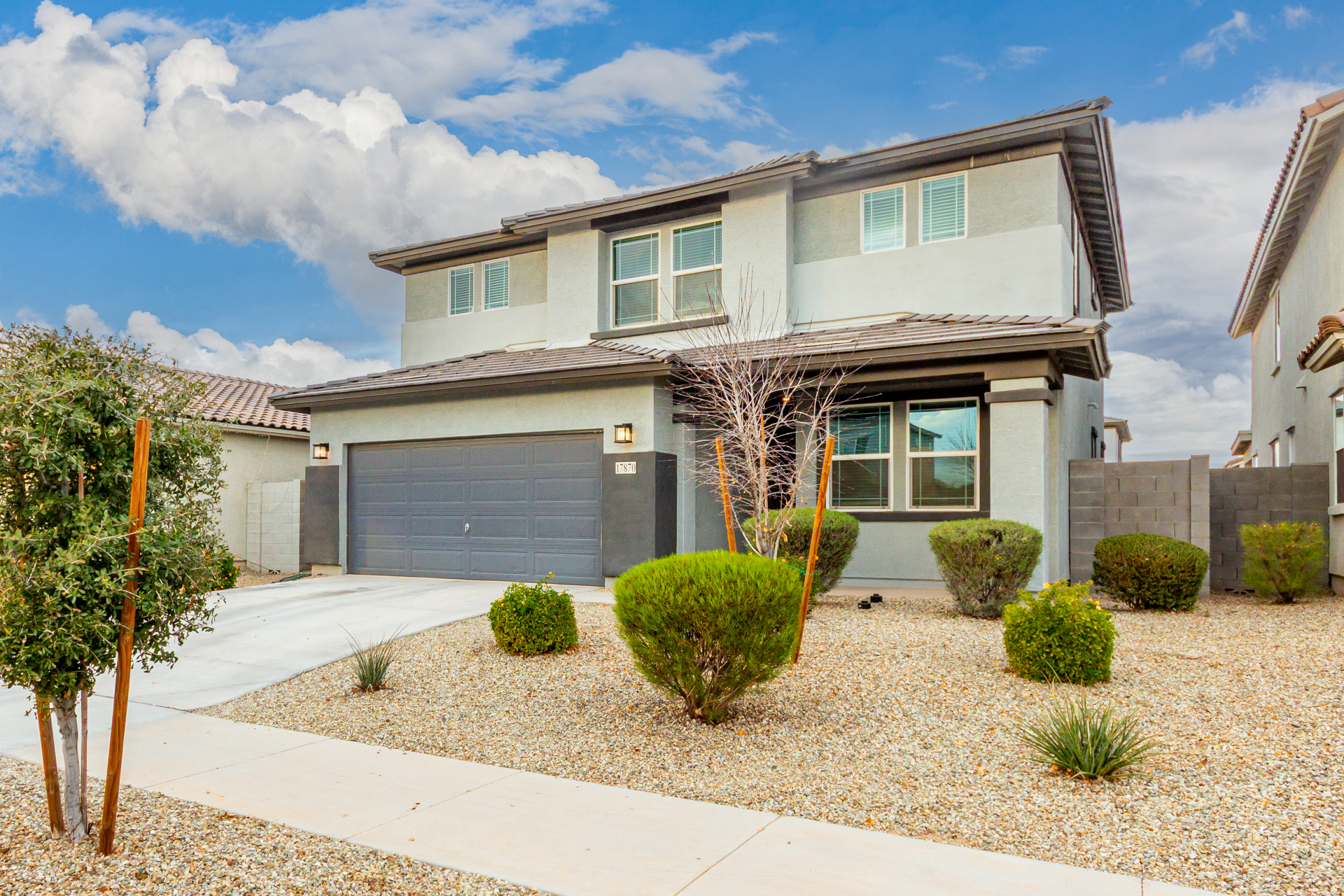 Welcome to your new home in Surprise, AZ! Thoughtfully designed with comfort and style in mind, this gem is packed with features you're sure to love. Inside, the desirable open floor plan is filled with tons of natural light. Custom palette creates a warm, inviting ambiance, enhanced by tile flooring and ceiling fans. Lovely kitchen boasts stainless steel appliances, subway tile backsplash, ample cabinetry topped with crown moulding, granite counters, a prep island with a breakfast bar, and recessed lighting. Continue upstairs to find a flexible loft, ideal for work or play. Large primary bedroom offers plush carpet, a private bathroom with dual sinks, and a walk-in closet. Enjoy a refreshing drink in the spacious backyard, complete with a covered patio. Don't let this gem pass you by!