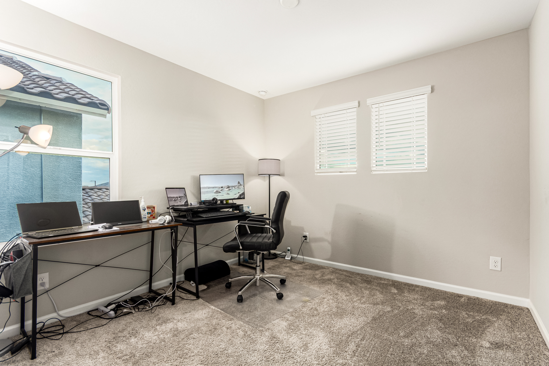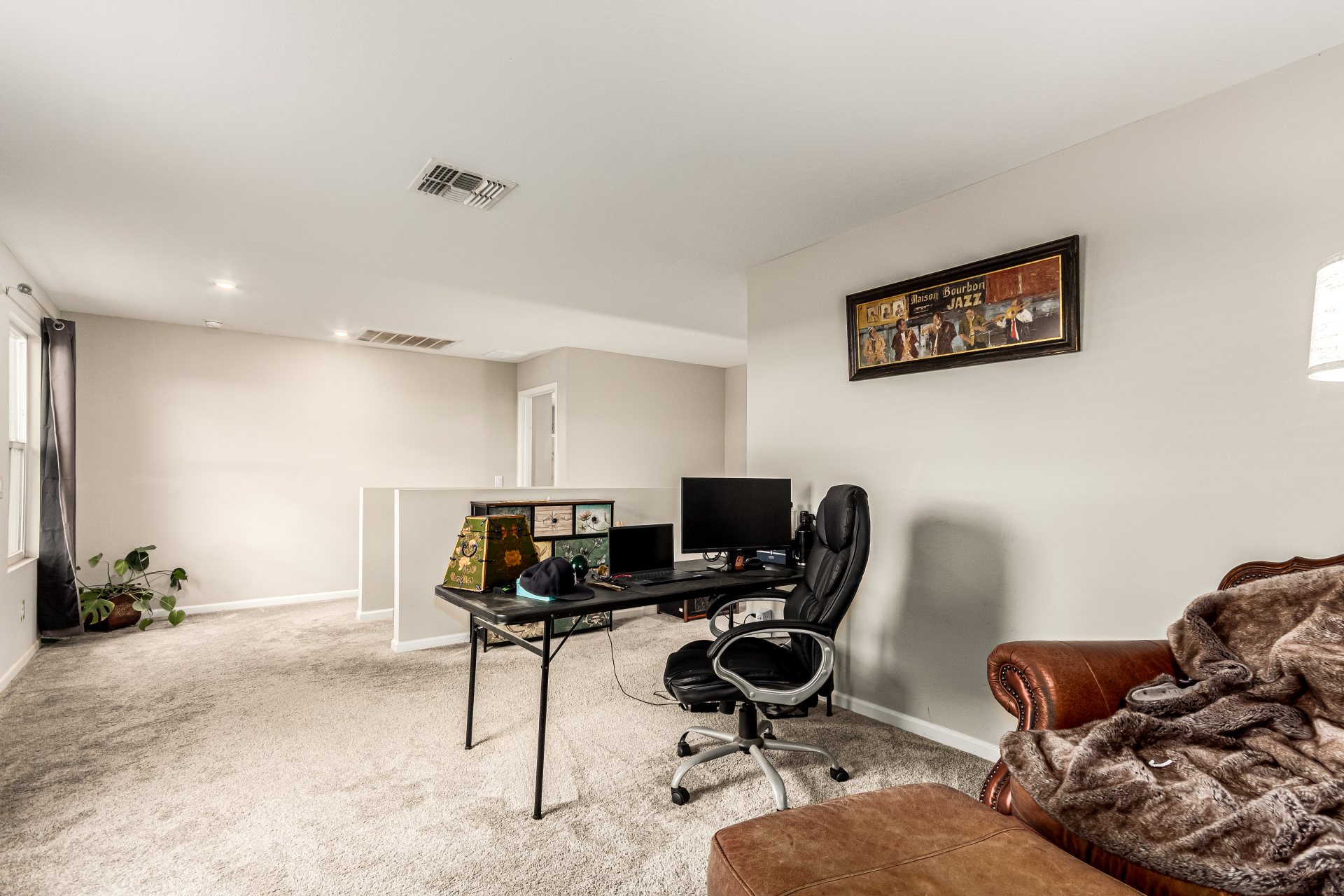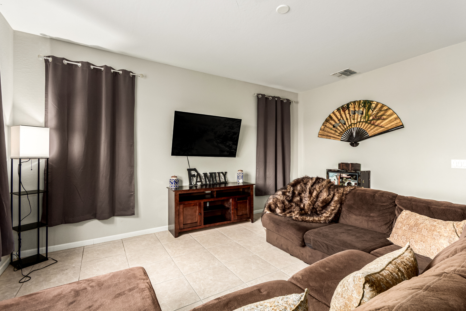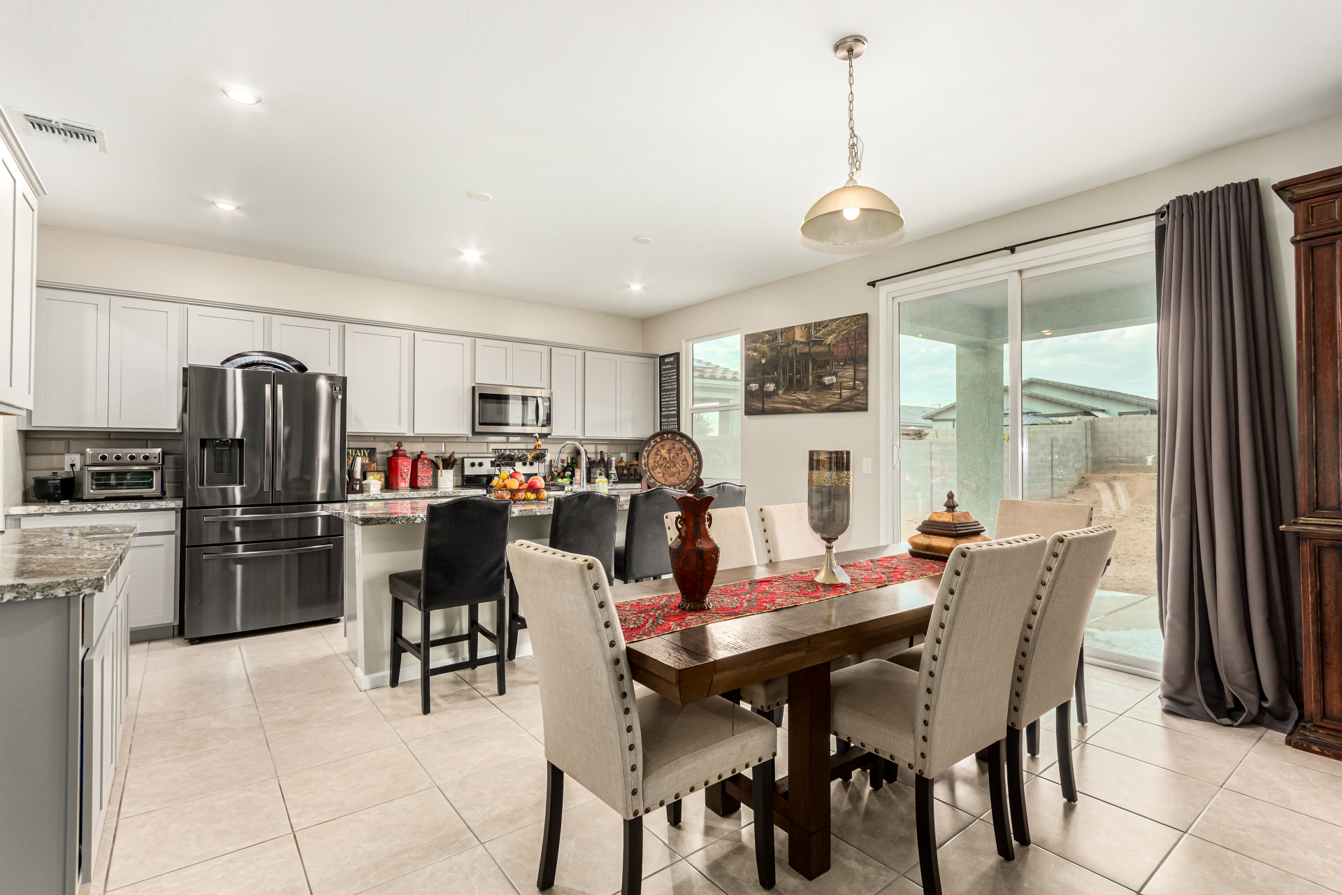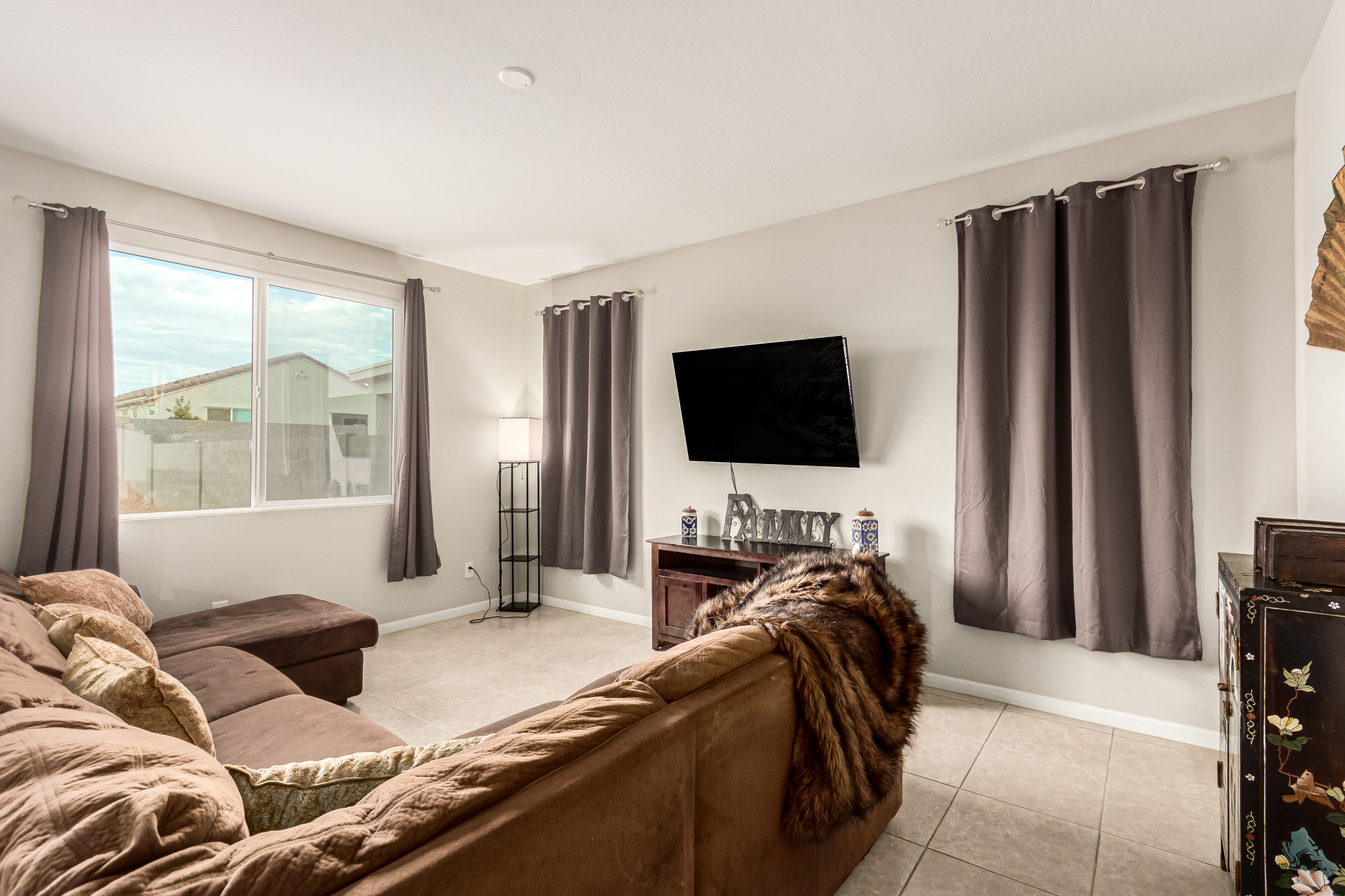 Welcome to your new home in Surprise, AZ! Thoughtfully designed with comfort and style in mind, this gem is packed with features you're sure to love. Inside, the desirable open floor plan is filled with tons of natural light. Custom palette creates a warm, inviting ambiance, enhanced by tile flooring and ceiling fans. Lovely kitchen boasts stainless steel appliances, subway tile backsplash, ample cabinetry topped with crown moulding, granite counters, a prep island with a breakfast bar, and recessed lighting. Continue upstairs to find a flexible loft, ideal for work or play. Large primary bedroom offers plush carpet, a private bathroom with dual sinks, and a walk-in closet. Enjoy a refreshing drink in the spacious backyard, complete with a covered patio. Don't let this gem pass you by!