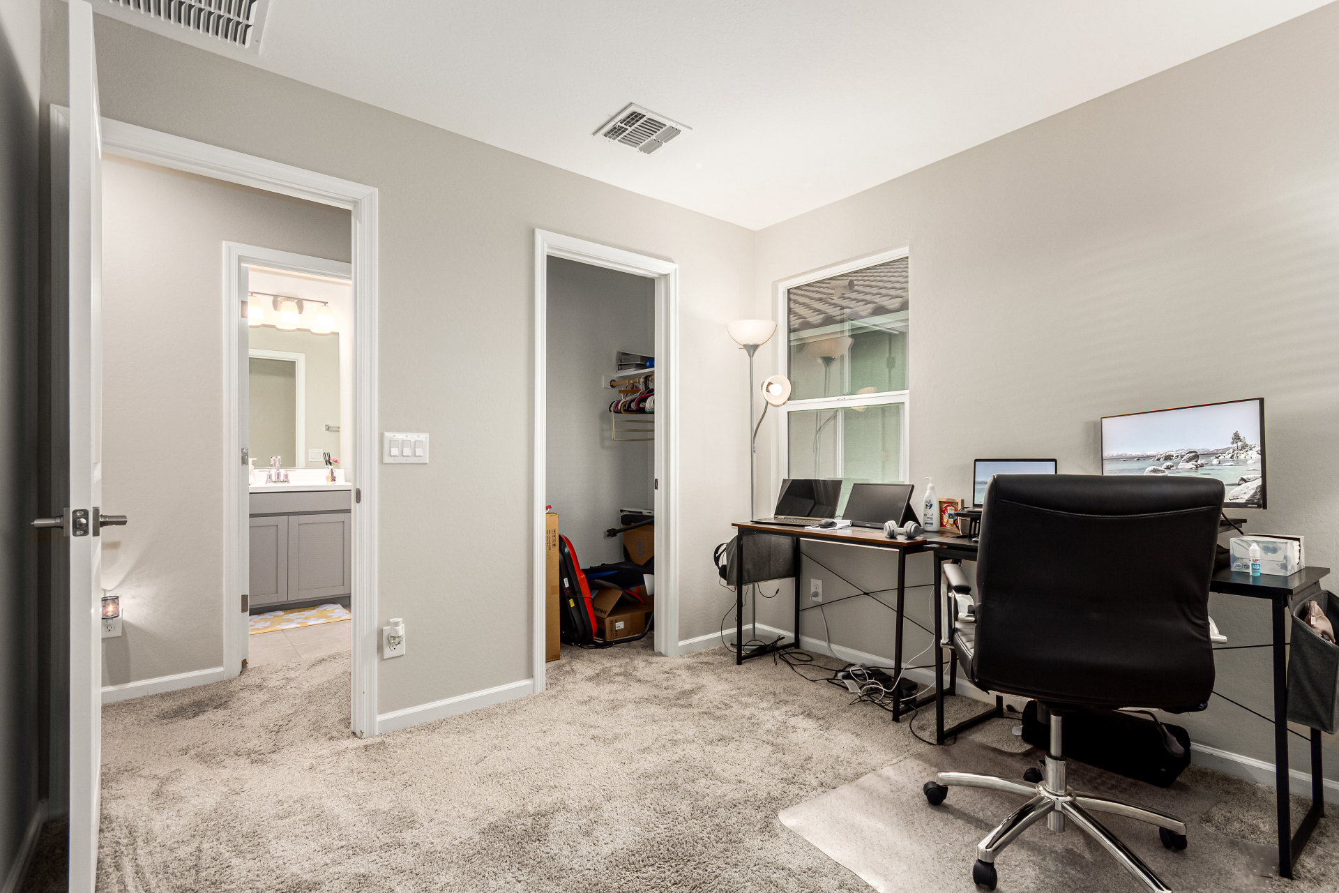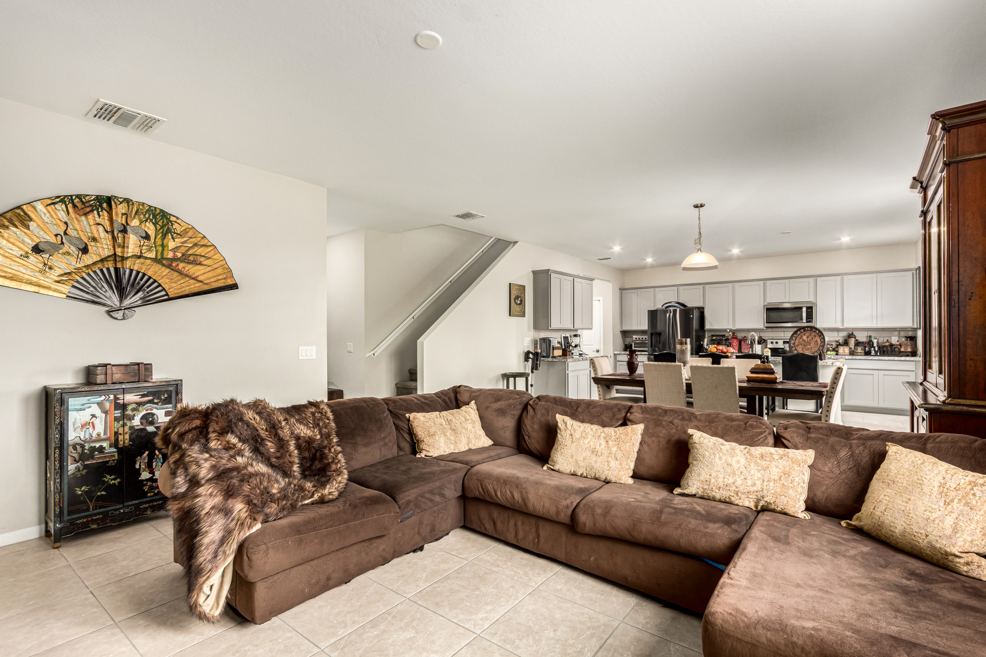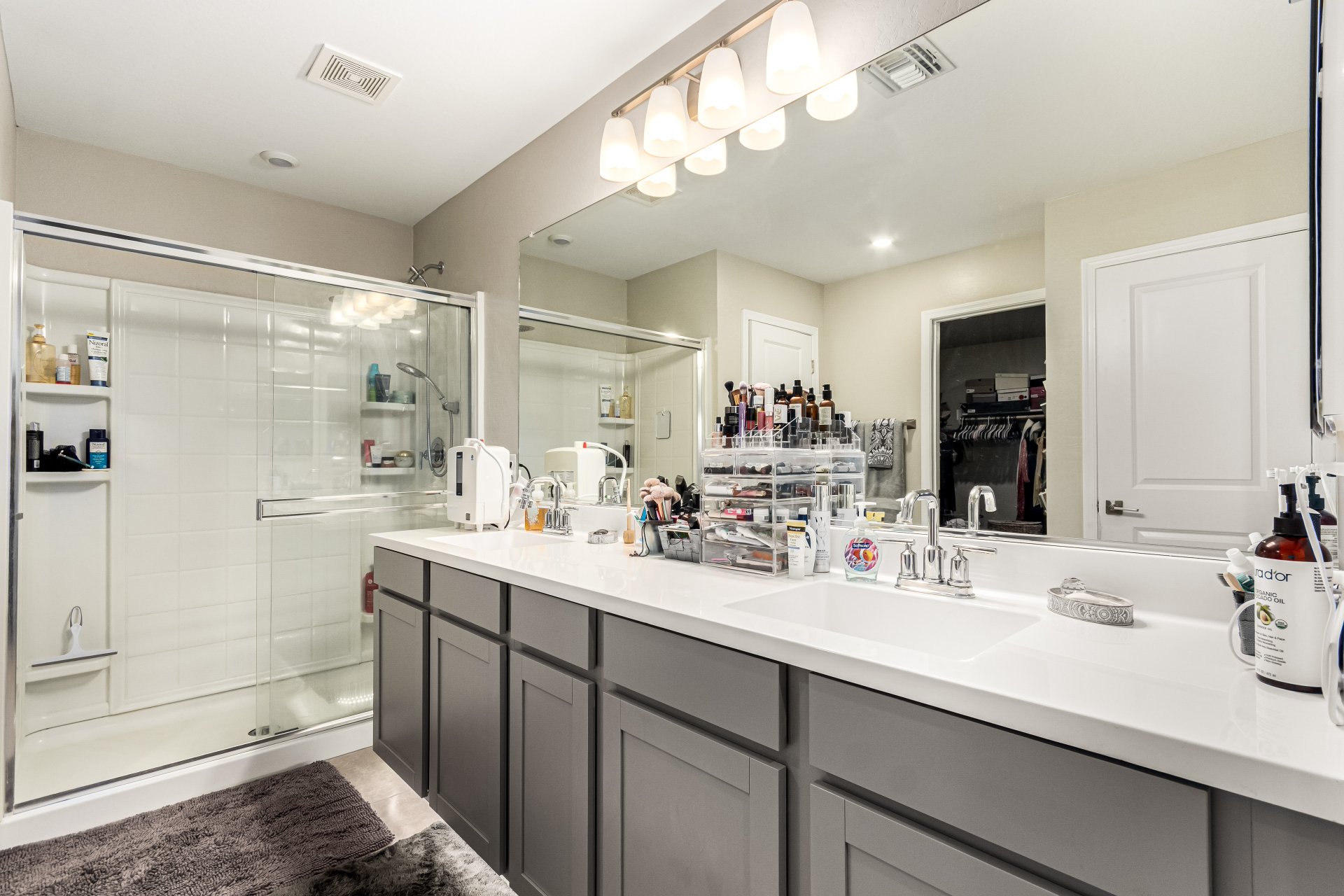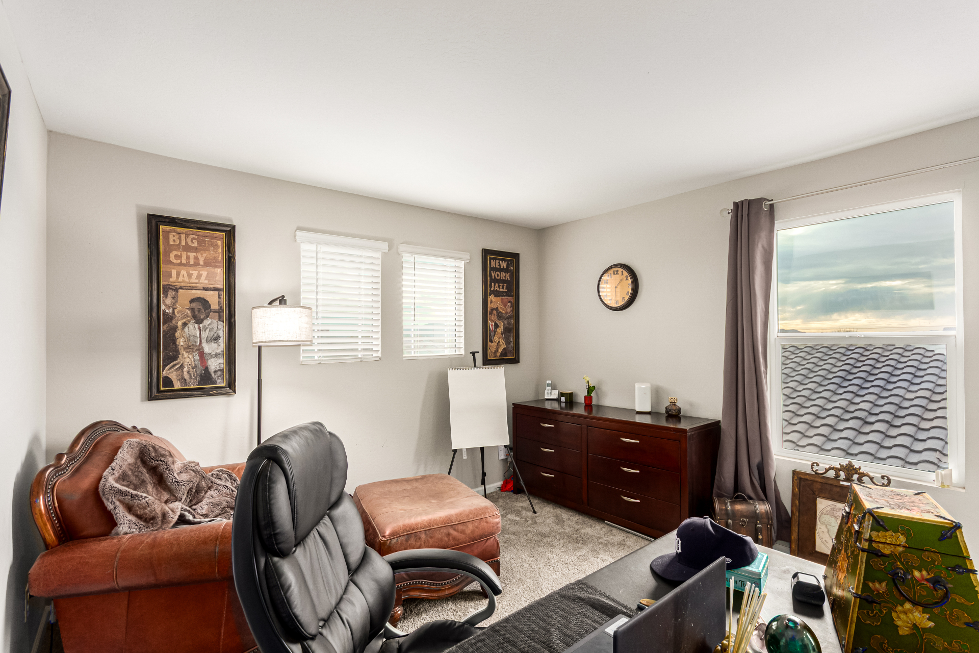 Welcome to your new home in Surprise, AZ! Thoughtfully designed with comfort and style in mind, this gem is packed with features you're sure to love. Inside, the desirable open floor plan is filled with tons of natural light. Custom palette creates a warm, inviting ambiance, enhanced by tile flooring and ceiling fans. Lovely kitchen boasts stainless steel appliances, subway tile backsplash, ample cabinetry topped with crown moulding, granite counters, a prep island with a breakfast bar, and recessed lighting. Continue upstairs to find a flexible loft, ideal for work or play. Large primary bedroom offers plush carpet, a private bathroom with dual sinks, and a walk-in closet. Enjoy a refreshing drink in the spacious backyard, complete with a covered patio. Don't let this gem pass you by!