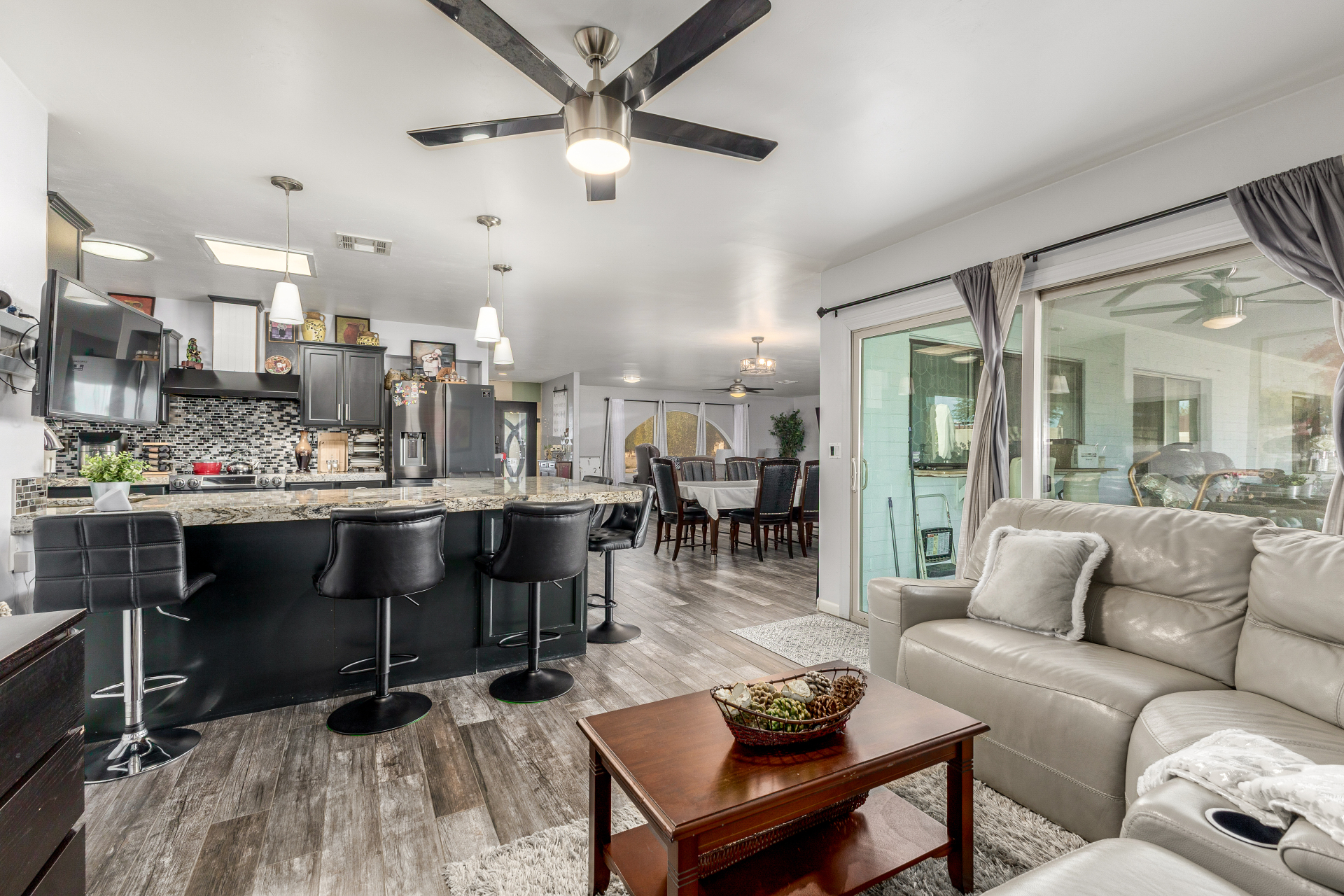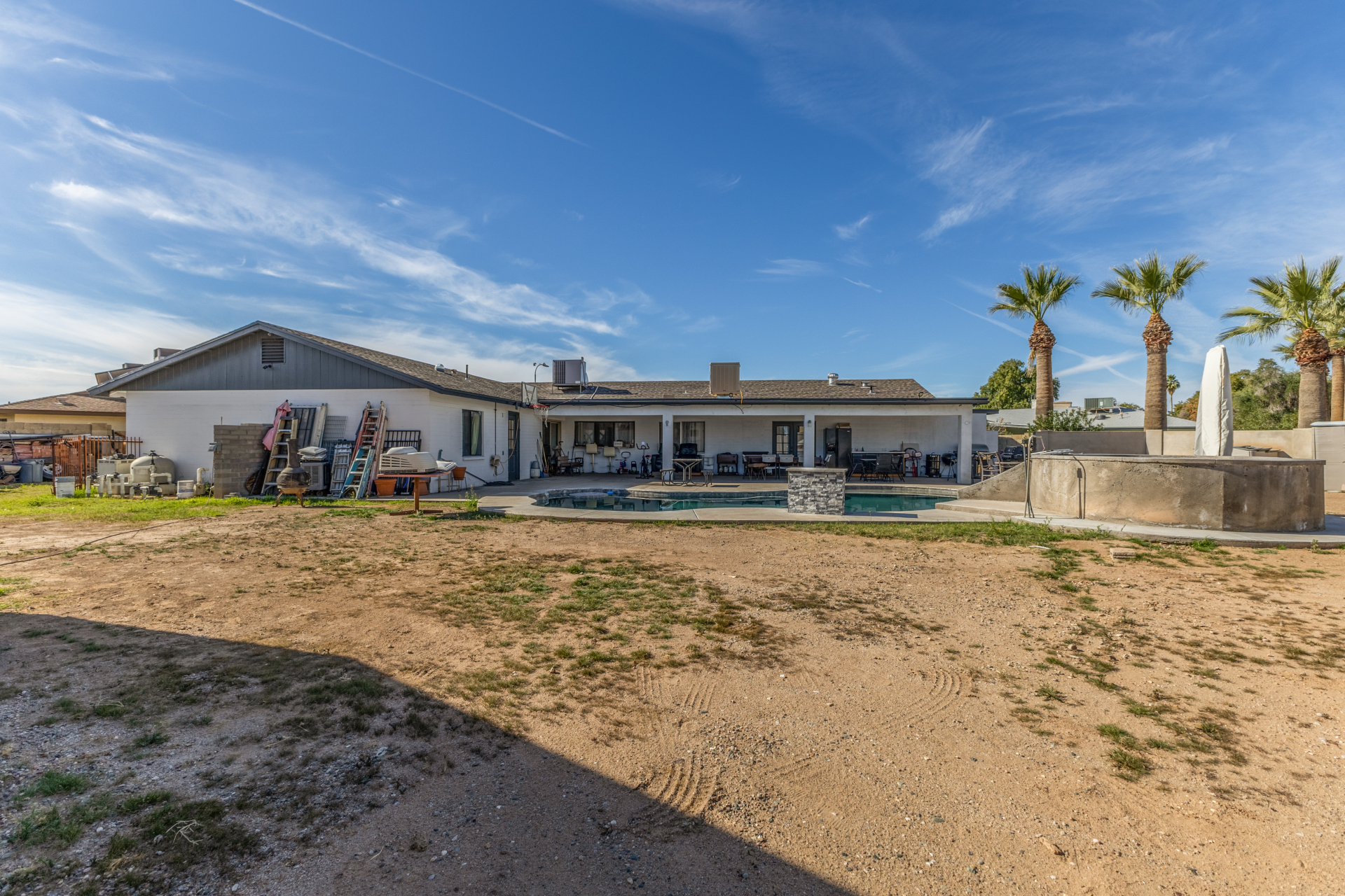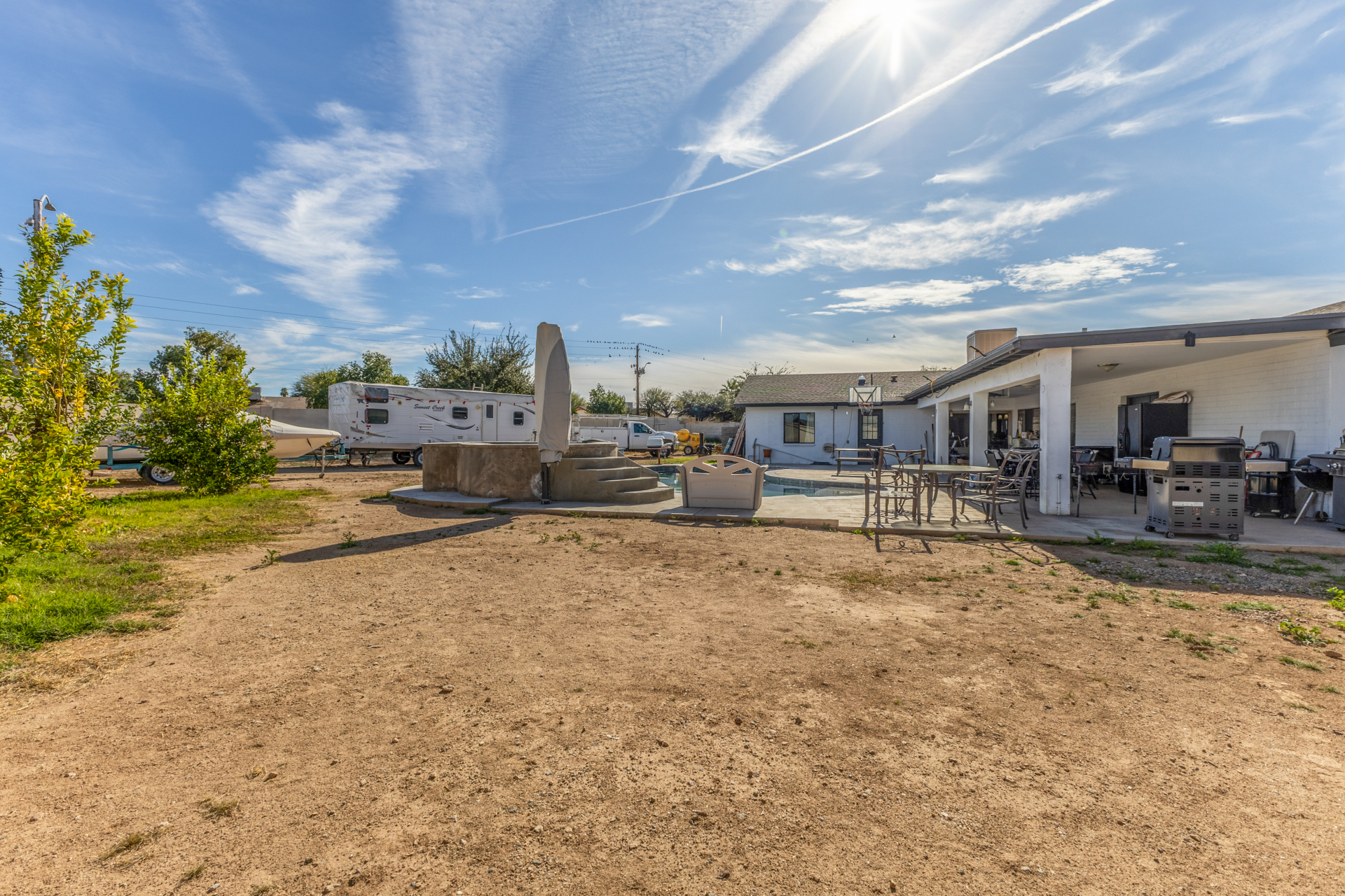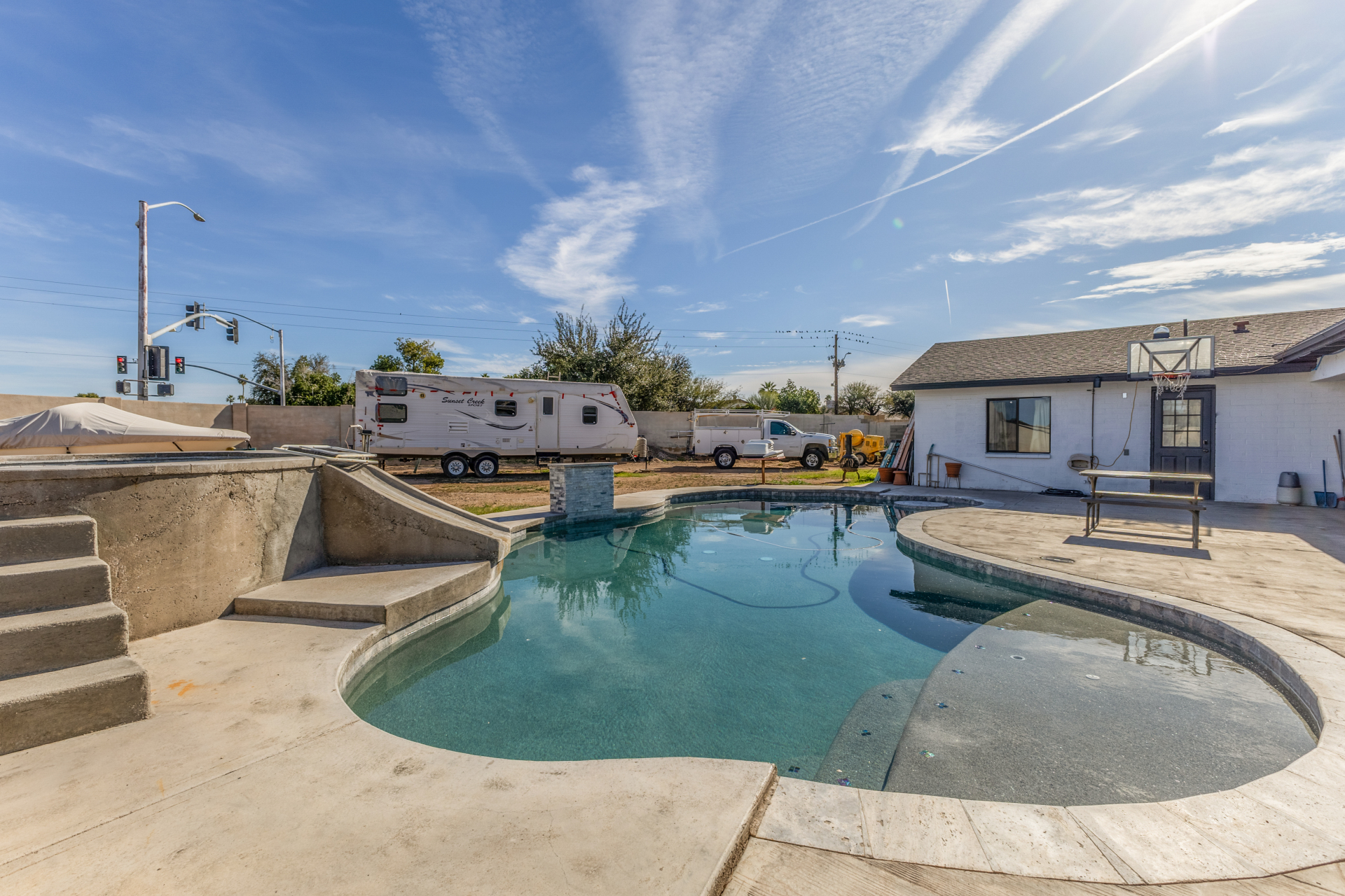 Welcome to 8443 N 51st Dr, Glendale, AZ 85302. Spacious 4-bedroom, 3-bath home located in the highly desirable Northern Palms neighborhood of Glendale. Situated on an oversized corner lot of over ⅓ acre with no HOA, this 2,430 sq ft home offers incredible flexibility and outdoor space. Fresh interior and exterior paint completed in 2025 gives the home a clean, move-in-ready feel. The fully remodeled kitchen (2015) features granite countertops and is ideal for entertaining and everyday living. The property includes both front and rear RV gates, RV power hookup, and ample parking—perfect for RVs, trailers, or toys. Enjoy Arizona living with a resurfaced pool (2022), mature landscaping, and a convenient poolside shower and bathroom. The large covered patio is equipped with a swamp cooler, creating a comfortable outdoor space for year-round enjoyment.
