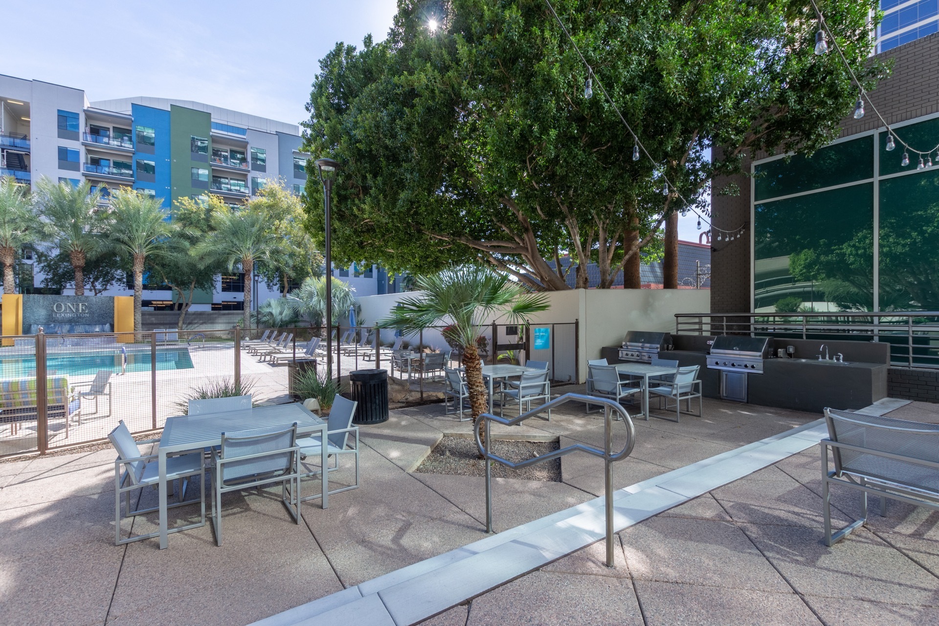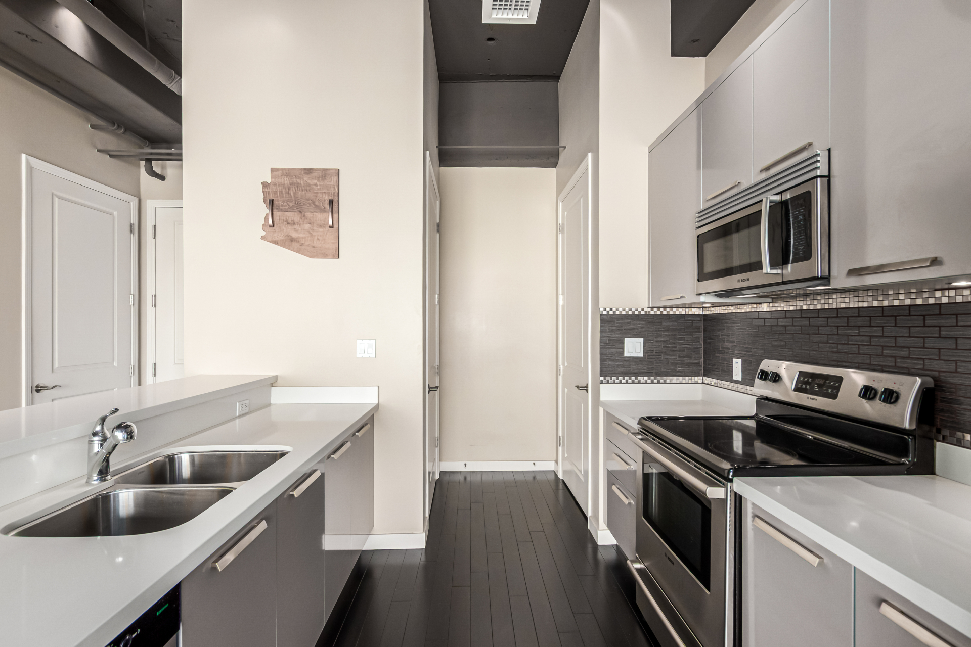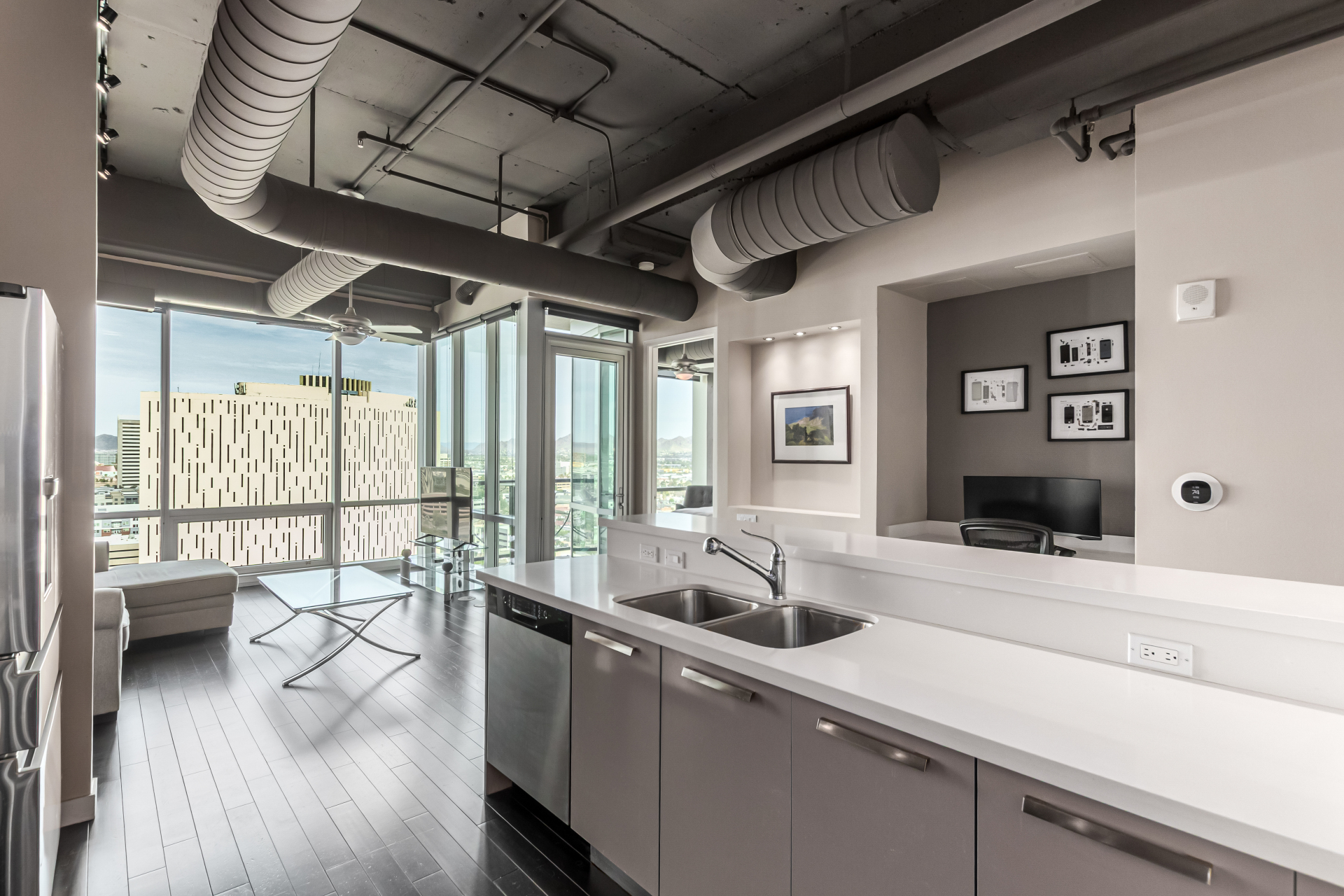 Seize the opportunity to be the proud owner of this gorgeous apartment in a high-rise with a fantastic location close to restaurants, shopping, parks, and golfing! The interior features an open layout with wood-look floors, ceilings with exposed ductwork to promote a modern industrial vibe, floor-to-ceiling windows to let ample natural light pour in, offering amazing views, and neutral tones throughout. The impeccable kitchen comes equipped with plentiful storage cabinetry, tile backsplash, solid-surface counters, and stainless steel appliances. You'll love the spacious bedroom and bathroom. The balcony is the perfect spot for relaxing with the amazing views while enjoying your favorite drink. This apartment comes with 2 assigned parking spots, and you'll have access to all the community's features, including a sparkling pool, spa, media room & clubhouse, just to mention a few! Check it out before it's too late!