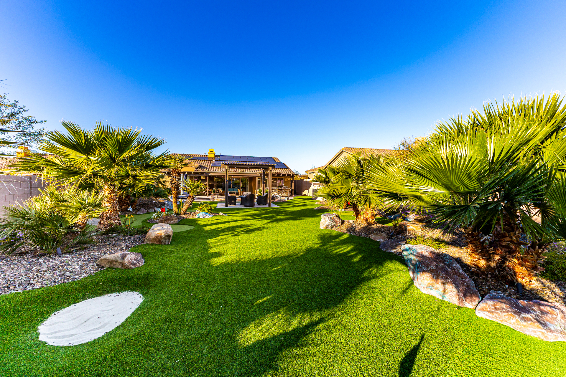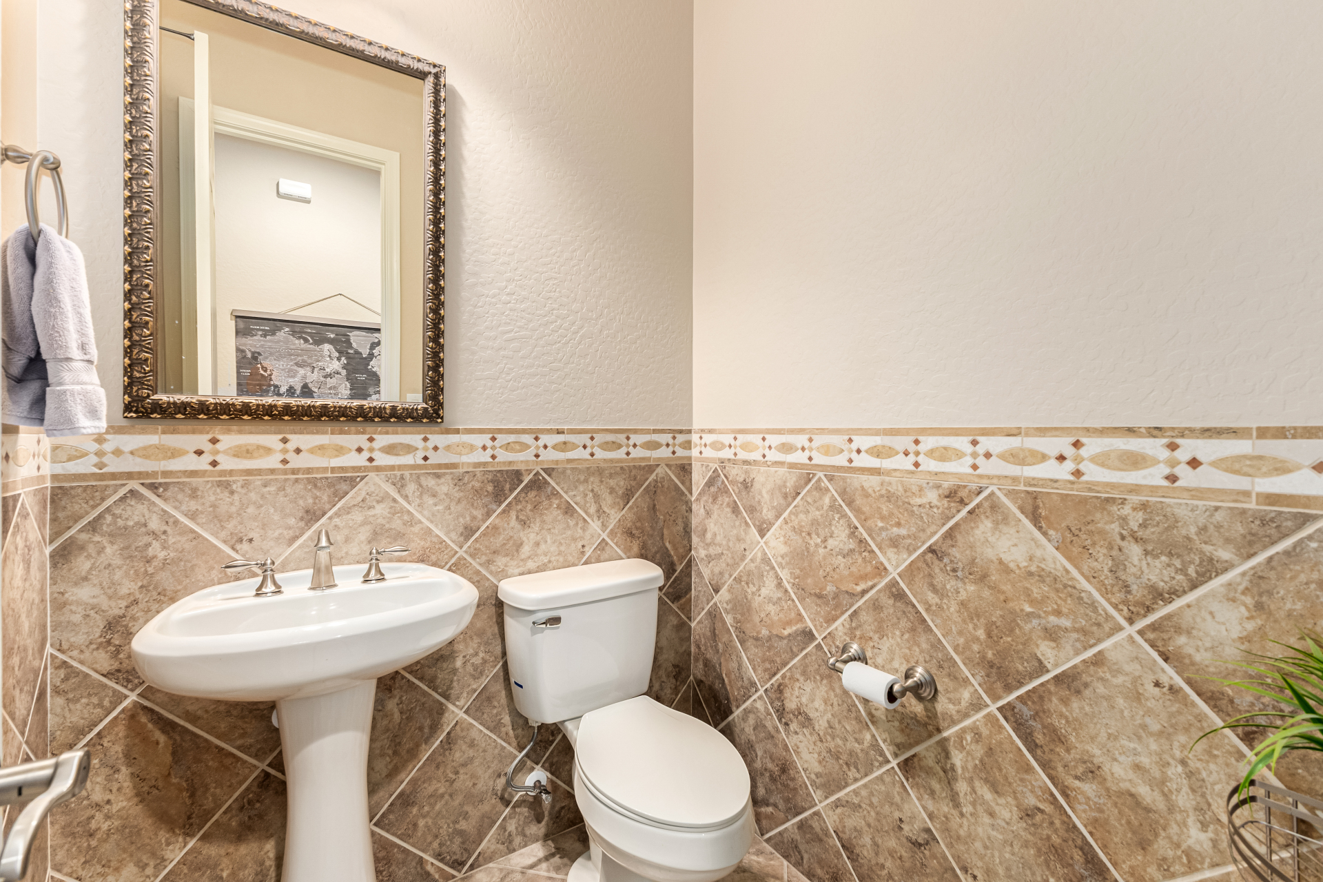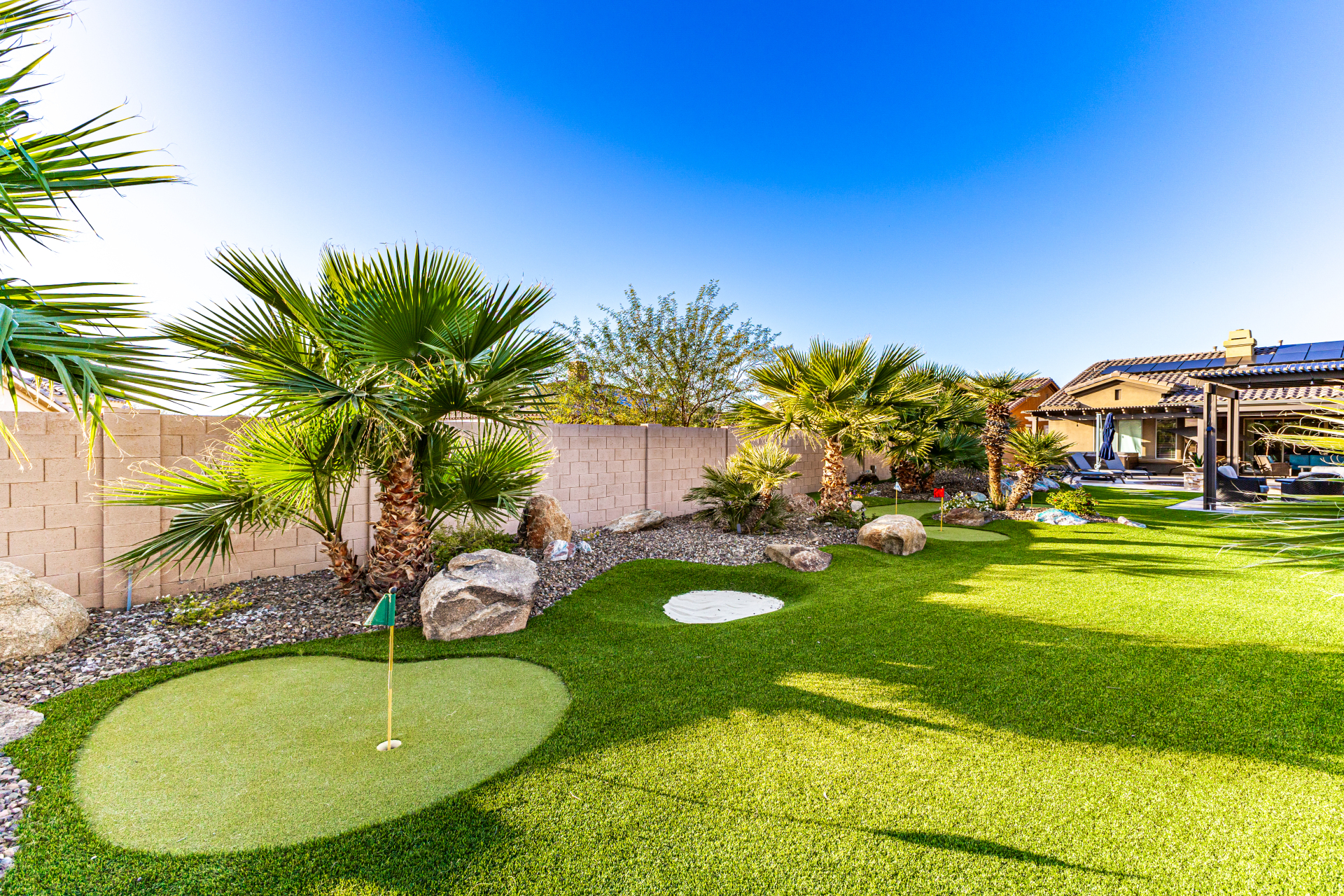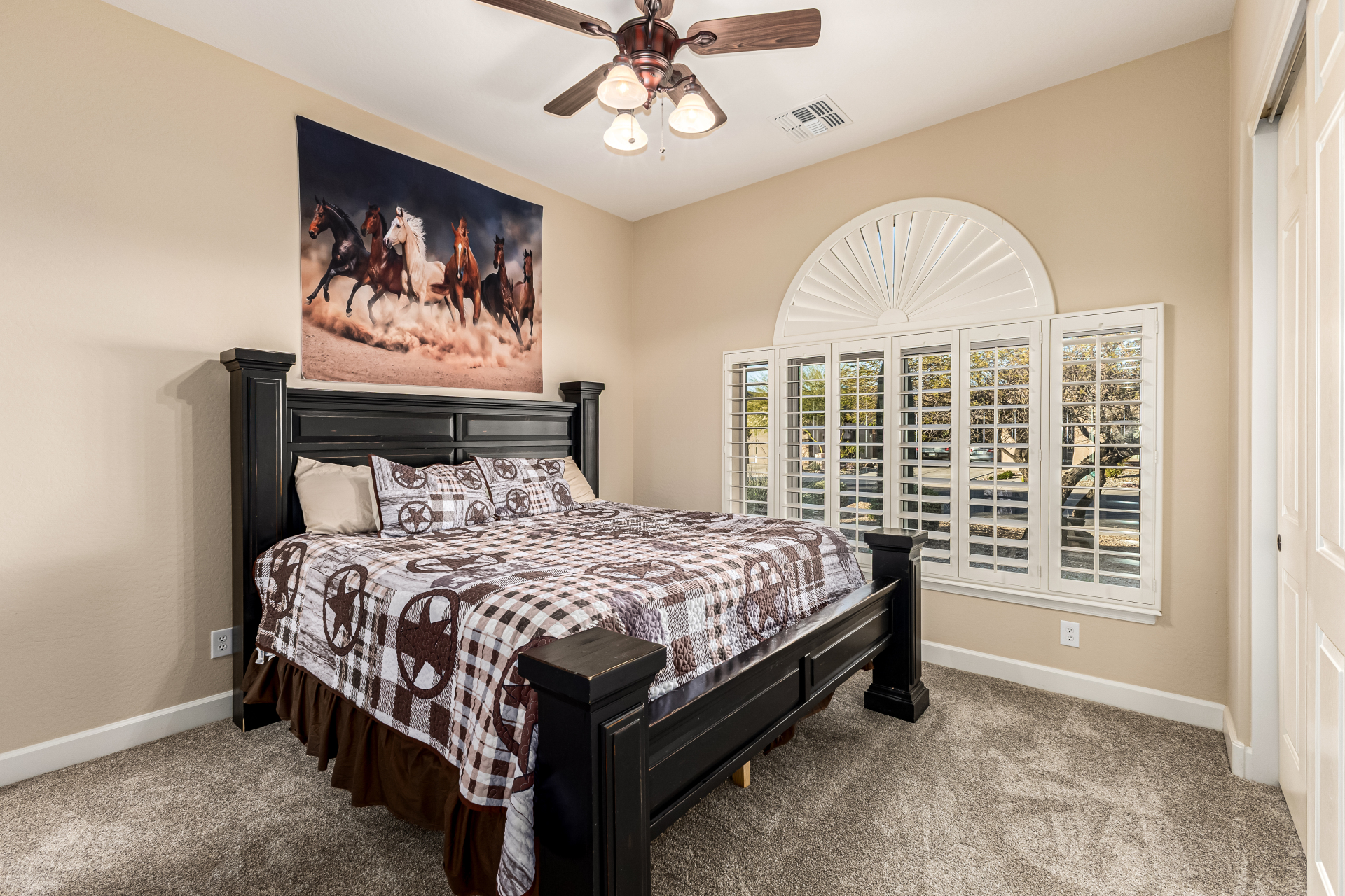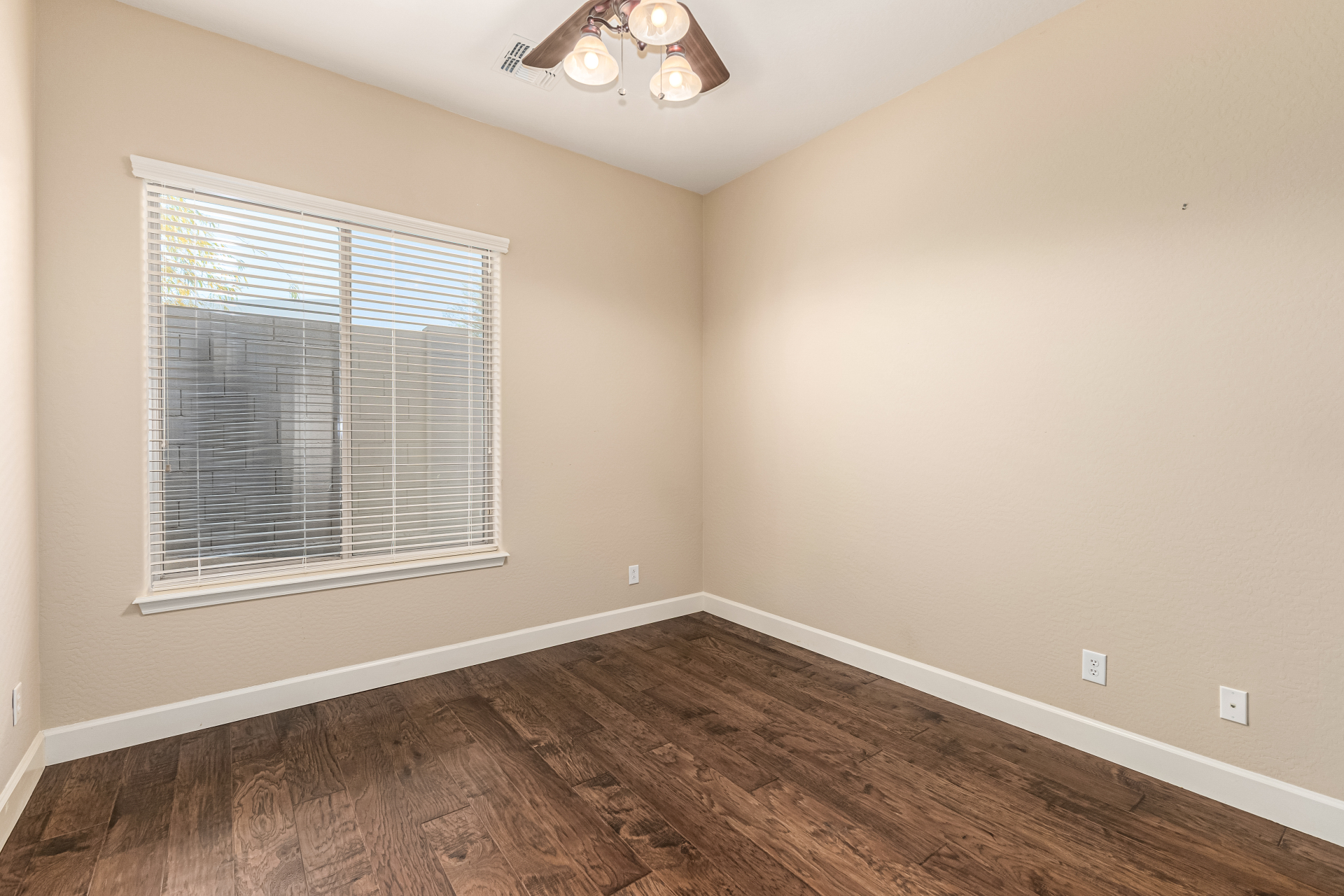 Welcome to this stunning 4-bedroom estate on a tranquil cul-de-sac in the highly sought-after Estrella Mountain Ranch! From the moment you arrive, you'll be captivated by the Tuscan-inspired curb appeal, featuring meticulously maintained desert landscaping and an extended paver driveway. Step through the gated courtyard into a welcoming foyer that opens into an amazing living/dining room. Rich wood flooring & a custom dry bar create the perfect setting for entertaining. The thoughtfully designed interior includes tile flooring in high-traffic areas, stylish lighting throughout, and a versatile den with closet space. The inviting family room showcases a dramatic stone-accented fireplace & multi-slide glass doors that blur the lines between indoor & outdoor living.