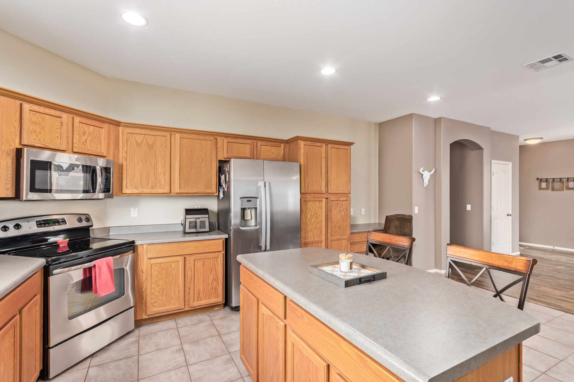 Beautifully maintained 3‑bedroom, 2‑bath home on a desirable corner lot in one of Estrella Mountain Ranch's most sought‑after neighborhoods. Open, inviting floor plan offers effortless living, with a bright large kitchen, open concept floor plan & thoughtfully designed bedrooms that provide comfort and privacy. Enjoy a low‑maintenance lifestyle with modern finishes throughout, a well‑appointed primary suite featuring walk in closet and relaxing ensuite, and a 2‑car garage for added convenience. The corner lot location brings extra natural light, enhanced privacy, and added curb appeal. Located just minutes from Estrella's lakes, community pools, World Class fitness centers, hiking trails, and golf this turnkey home delivers the perfect blend of comfort,