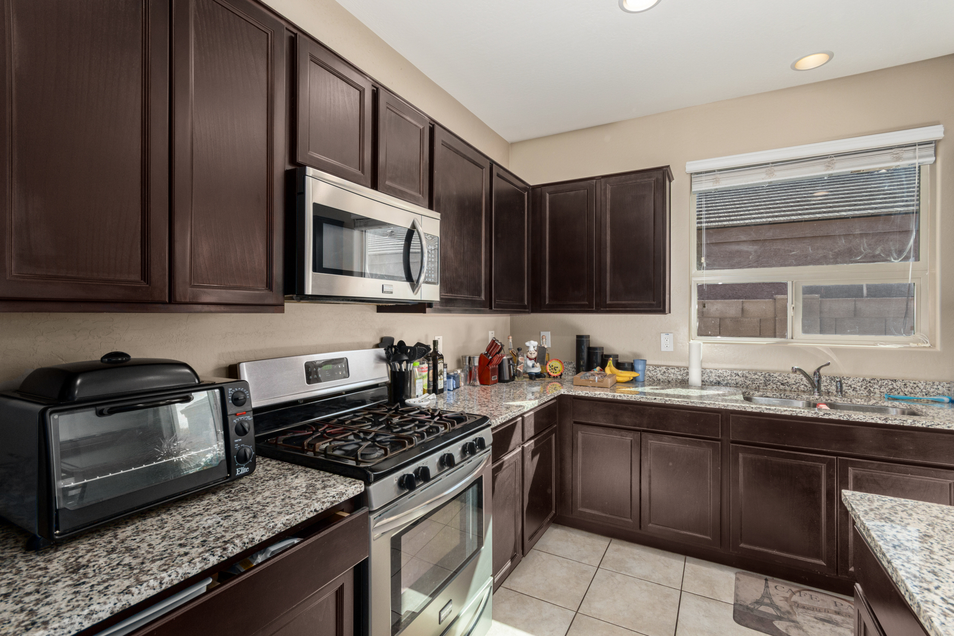 Welcome home to this inviting single-level gem with a 2-car garage, designed for comfort and easy living. Inside, a cozy living room sets the tone, while the spacious family room is perfect for hosting gatherings or relaxing nights in. The kitchen shines with stainless steel appliances, granite countertops, neutral cabinetry, a pantry, and a center island with a breakfast bar ideal for casual meals and entertaining. Retreat to the main bedroom featuring a private bathroom with dual sinks, a soaking tub, and a walk-in closet. Out back, enjoy a serene backyard with a covered patio and plenty of room for a future pool or memorable weekend barbecues. A wonderful place to create lasting memories. Don't miss it!