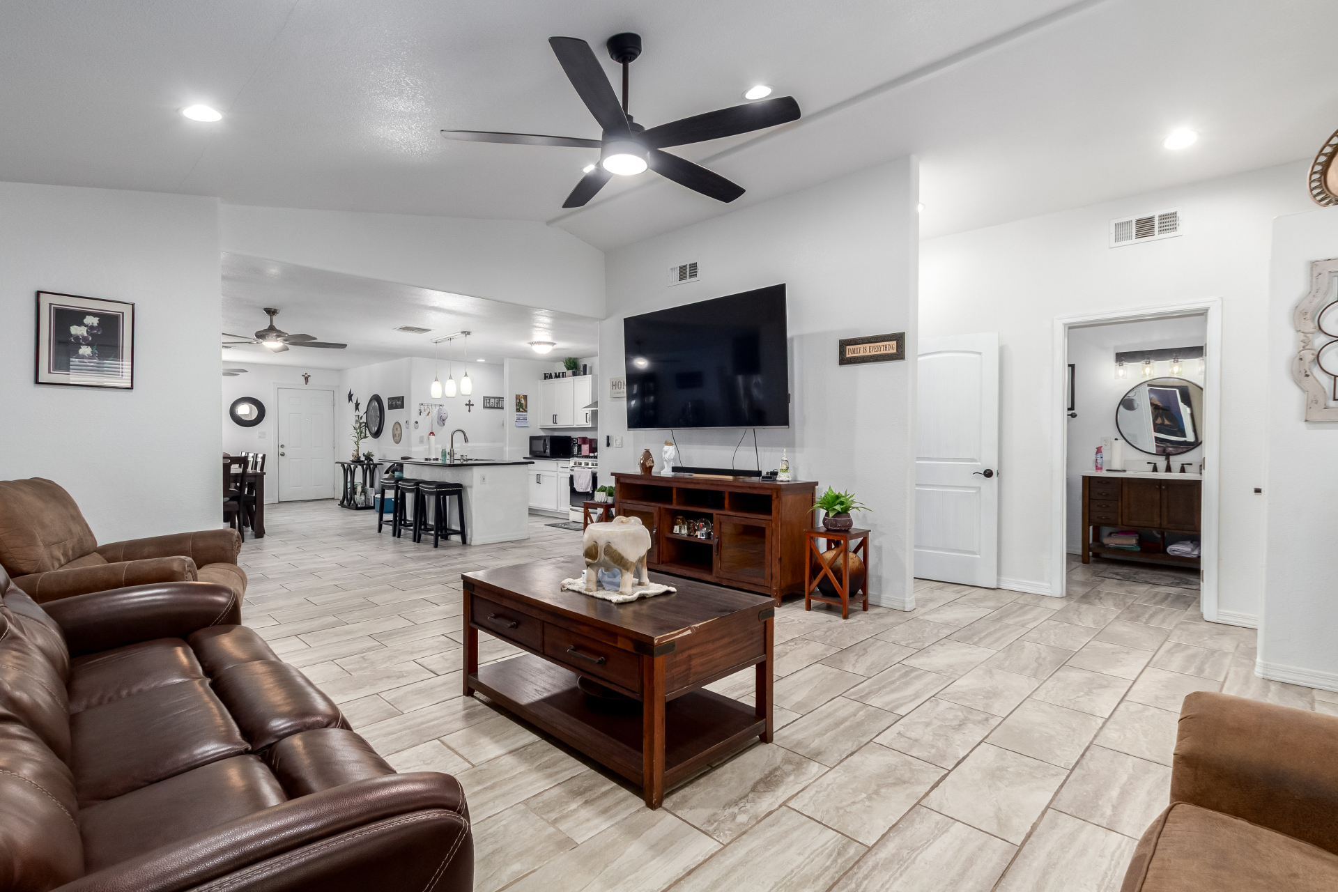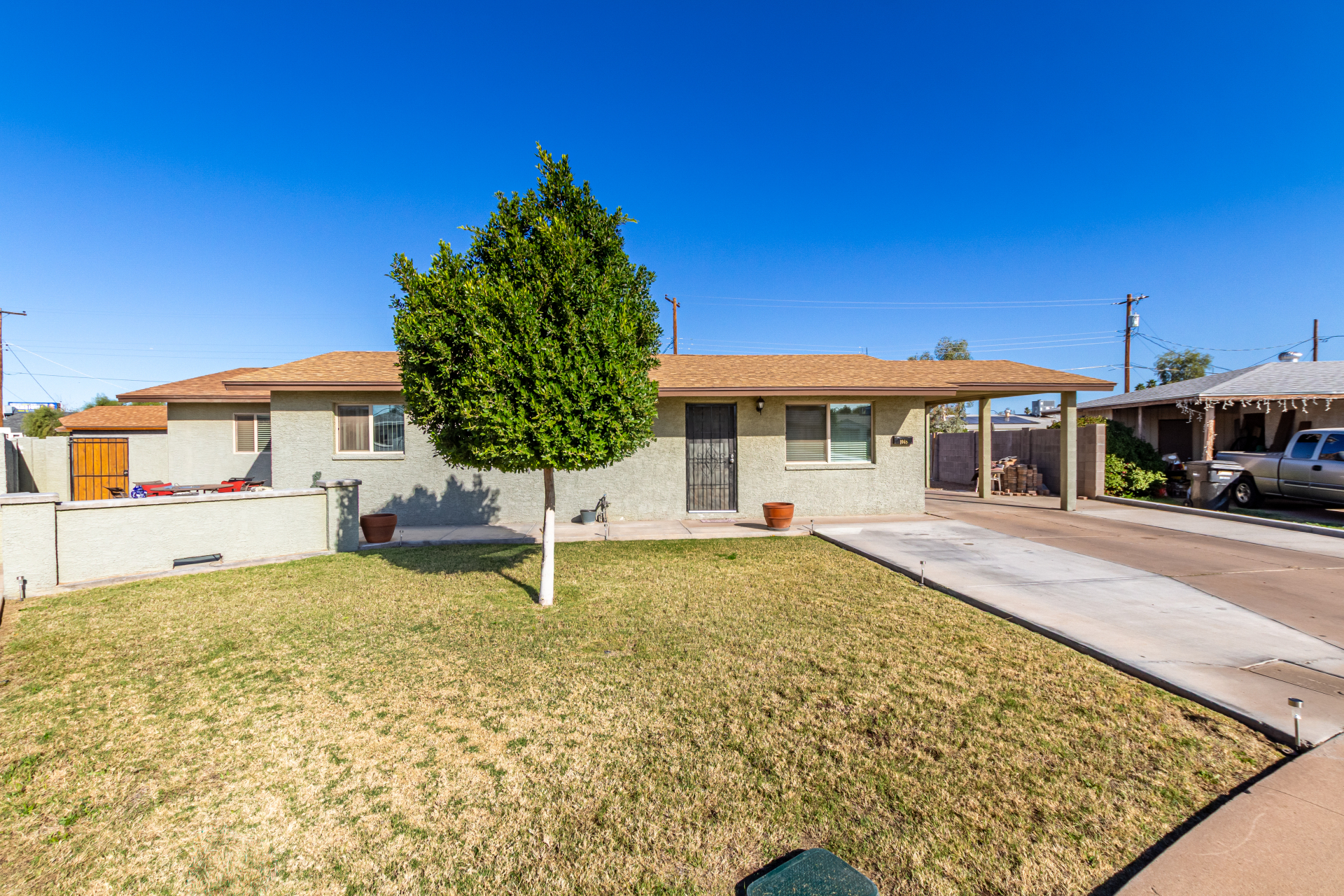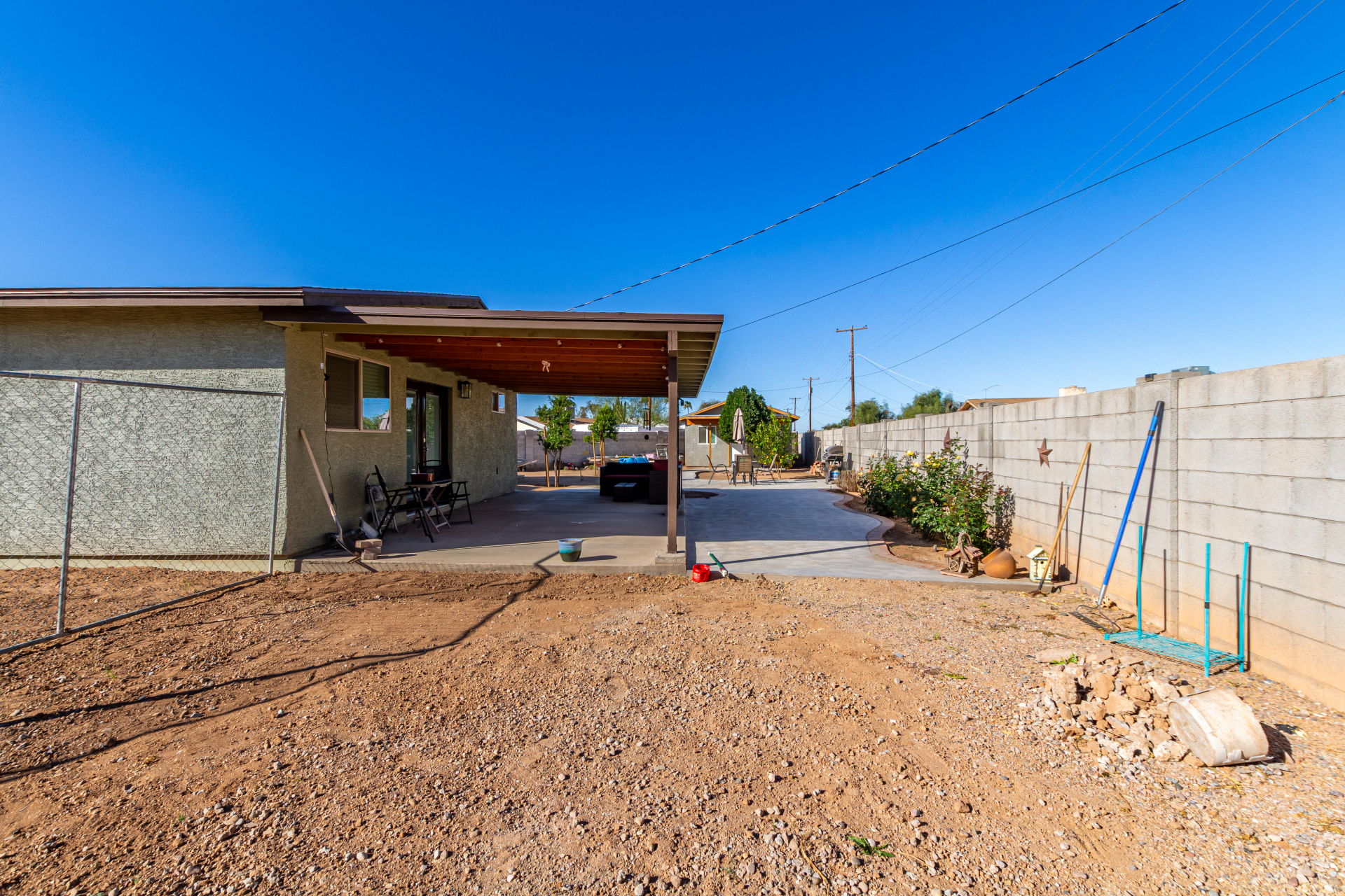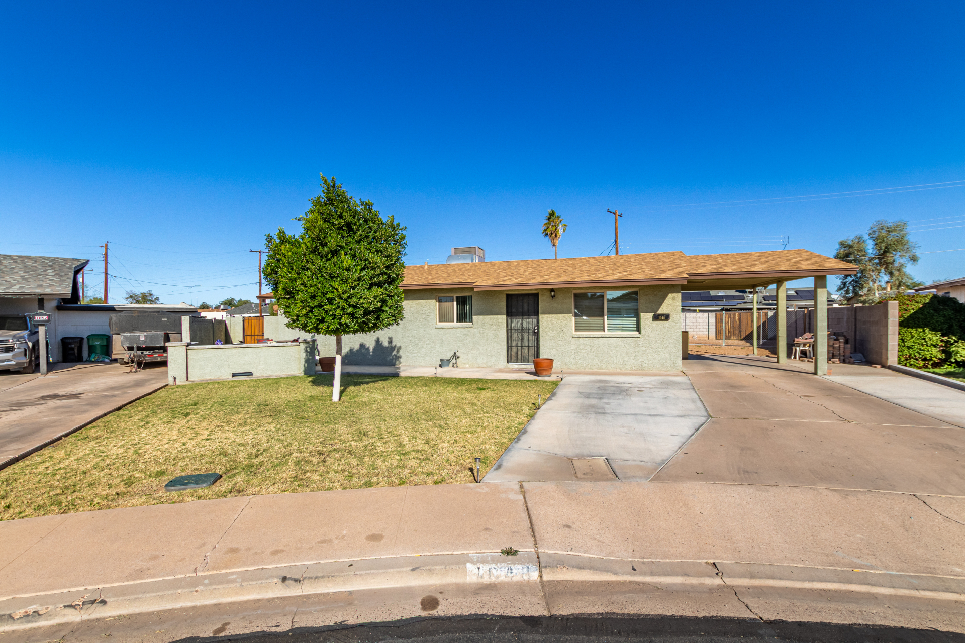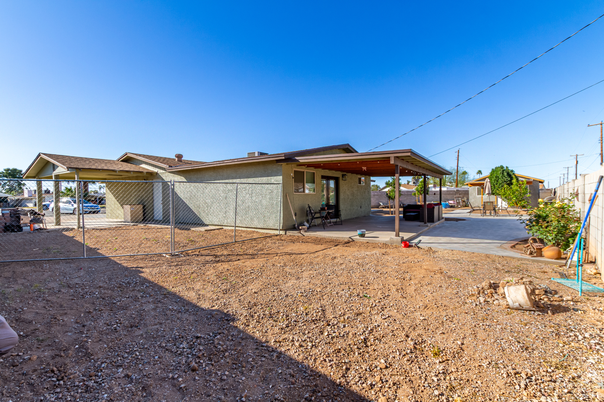 Adorable single-level home offering a convenient carport and a warm, welcoming vibe throughout! Vaulted ceilings and tile floors enhance the bright living room, creating an ideal space to relax or entertain. The chic kitchen shines with stainless steel appliances, crisp white cabinetry, a center island with breakfast bar, gleaming granite counters, and a handy pantry perfect for everyday living. Unwind in the spacious primary bedroom featuring a cozy sitting area, walk-in closet, and a chic ensuite. Out back, enjoy a covered patio and plenty of room to design your dream outdoor oasis, whether that's a pool, garden, or entertaining space. This inviting property is full of potential. Don't let it slip away!