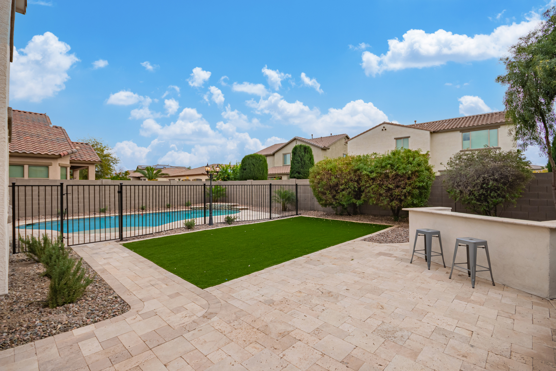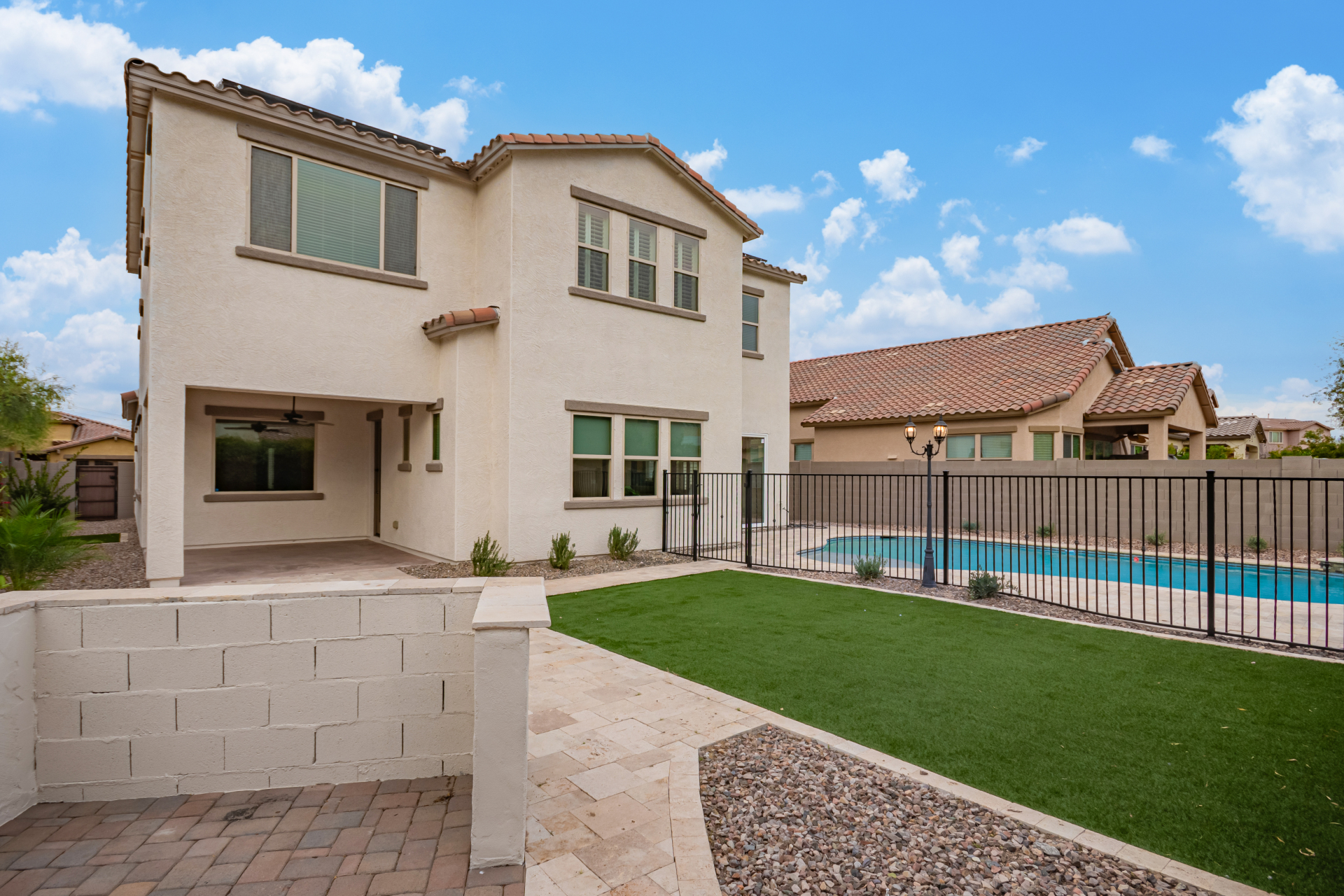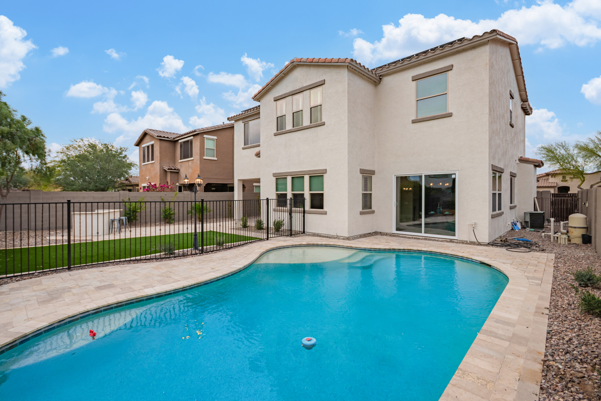 Like‑new luxury in the heart of Estrella Mountain Ranch. This beautifully recently updated 5‑bedroom home with spacious loft offers modern living at its finest. Enjoy the convenience of a full bedroom and bathroom on the main level. Plus this home features OWNED solar, delivering incredible energy savings, sliding door opens to sparkling private pool ideal for Arizona summers and brand new upgraded turf yard. Inside,you'll find stylish upgrades and updates throughout, an open and inviting layout, and plenty of natural light with soaring ceilings and windows galore. 3‑car garage provides ample storage and parking, while the prime location places you close to Estrella's lakes, trails, and community amenities. Move‑in ready, impeccably maintained, and absolutely gorgeo.