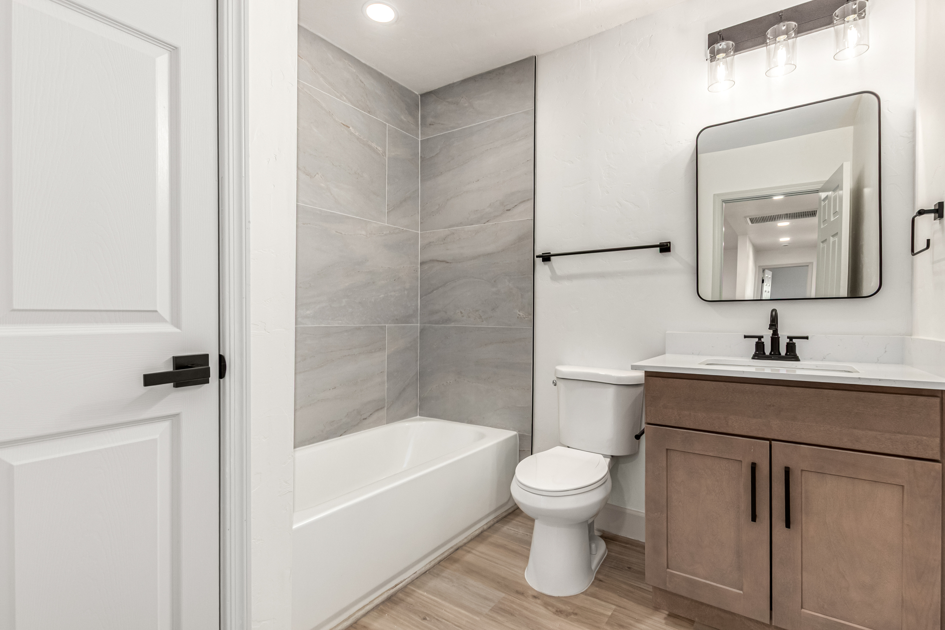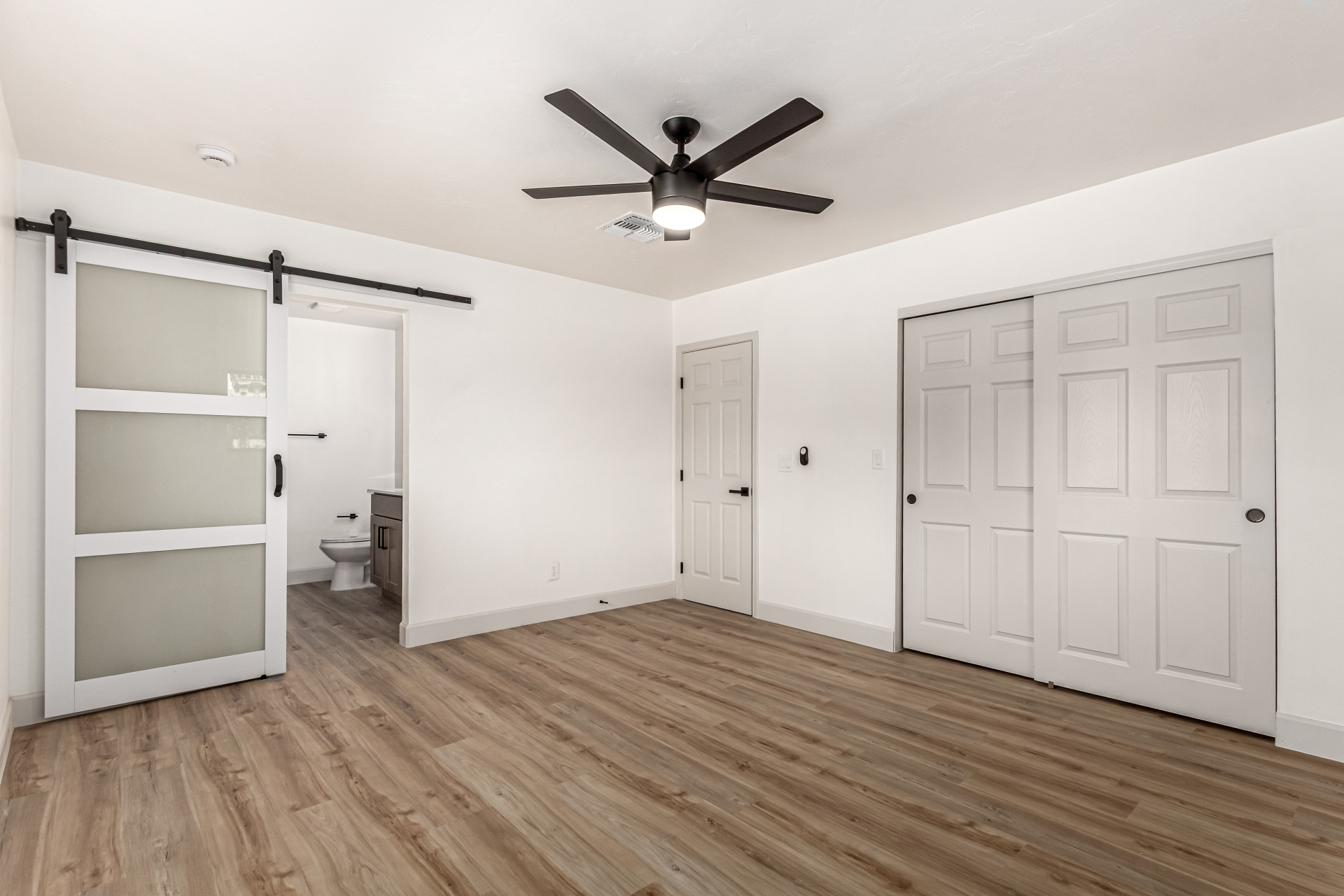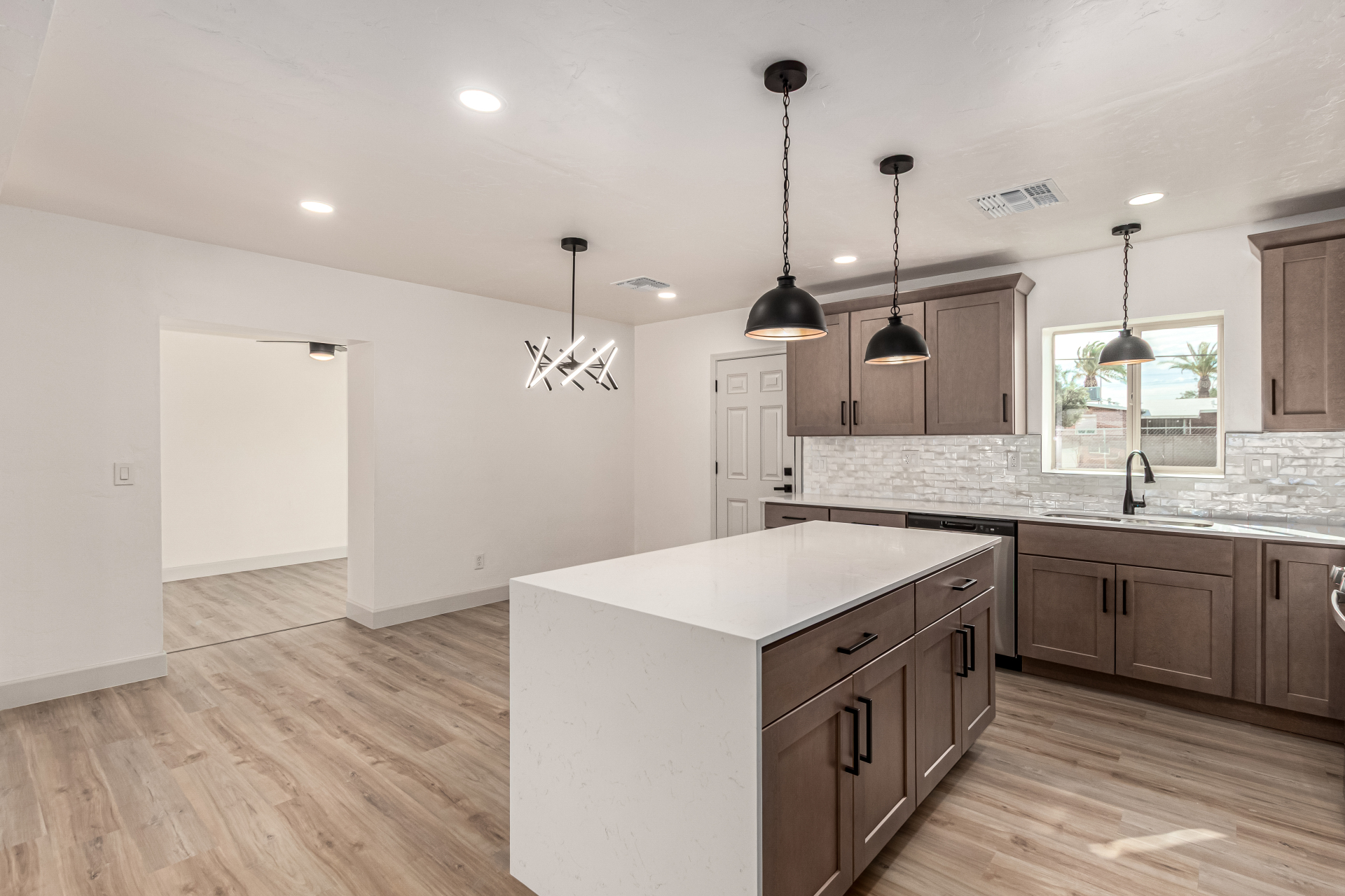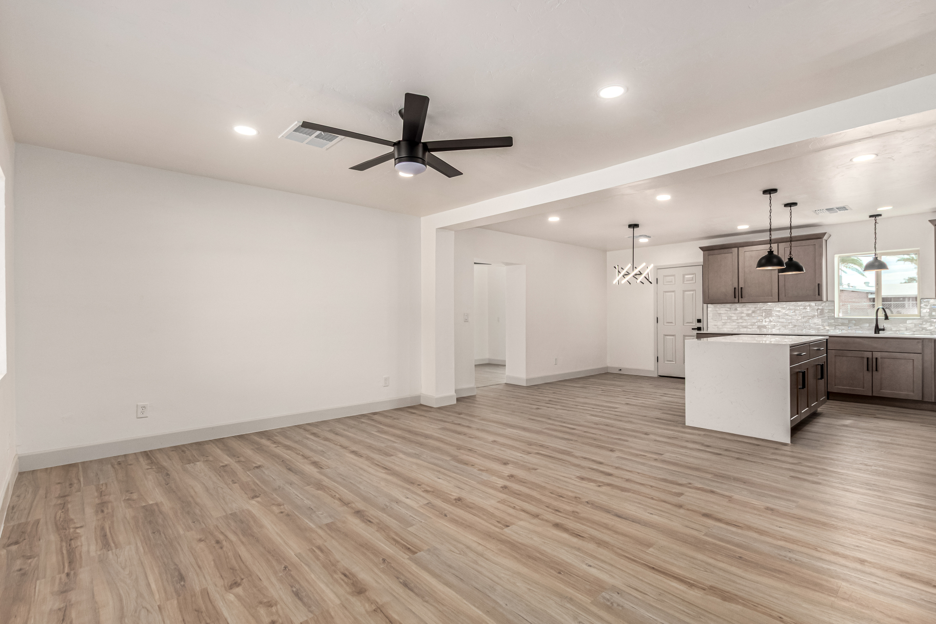 Discover this tastefully upgraded 4-bedroom home where modern comfort & style blend seamlessly! Come inside & fall in love w/ the HUGE open floor plan enhanced by wood-look flooring, abundant natural light, & fresh neutral paint t/out. A family room w/backyard access. Upscale kitchen offers recessed & pendant lighting, tile backsplash, plenty of cabinets w/crown moulding, sleek quartz counters, & a center island w/ a breakfast bar. Brand new SS appliances are gas range, dishwasher & OTR microwave (installed). Serene primary bedroom w/a trendy barn door that opens to a pristine ensuite showcasing a floor-to-ceiling tiled shower. Finally, the spacious backyard provides the ideal setting for hosting memorable gatherings w/ loved ones & friends. Don't let this gem slip by! Hurry! Agent/Owner