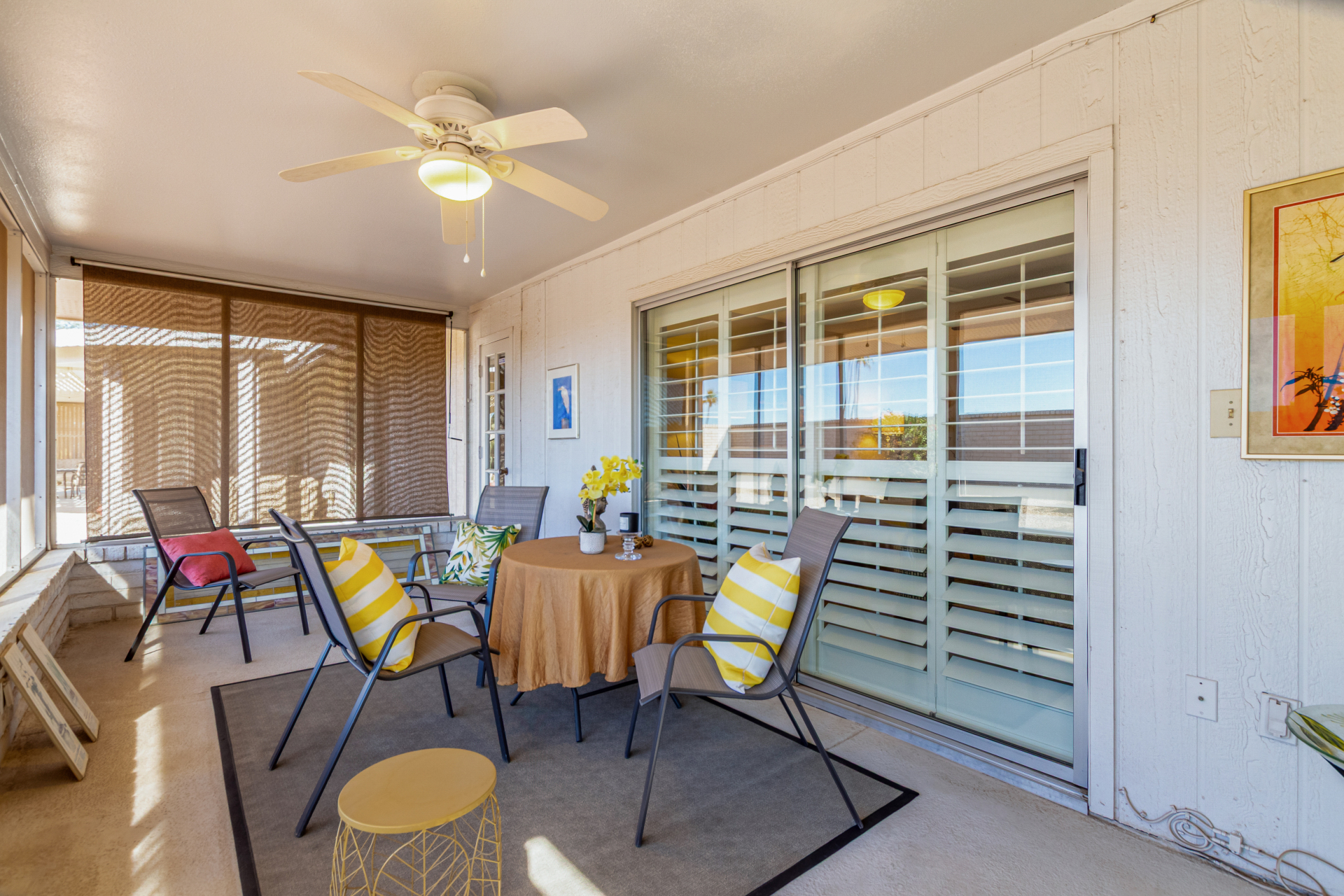 Beutifully maintained ''Gemini'' Home with 2 Bedrooms, 2 Baths, 2 Car Garage plus a spacious Arizona Room and a Screened in Patio! Newer Paver Front Courtyard (2017), Kitchen features Eating Space, Formal Dining Room and an extended Utility Room that could be a Craft or Bonus Room! Newer Tile Flooring Throughout, Newer Plantation Shutters and Blinds appx. 4 years ago, Newer HVAC, Newer Water Heater, 2nd Bedroom features a Built In Desk Area for Home Office and a Murphy Bed for Guests! This Home is offered completely & beautifully furnshished and ''Turn Key''! Just bring yourself and enjoy the Sun City West Amenities and Lifestyle!