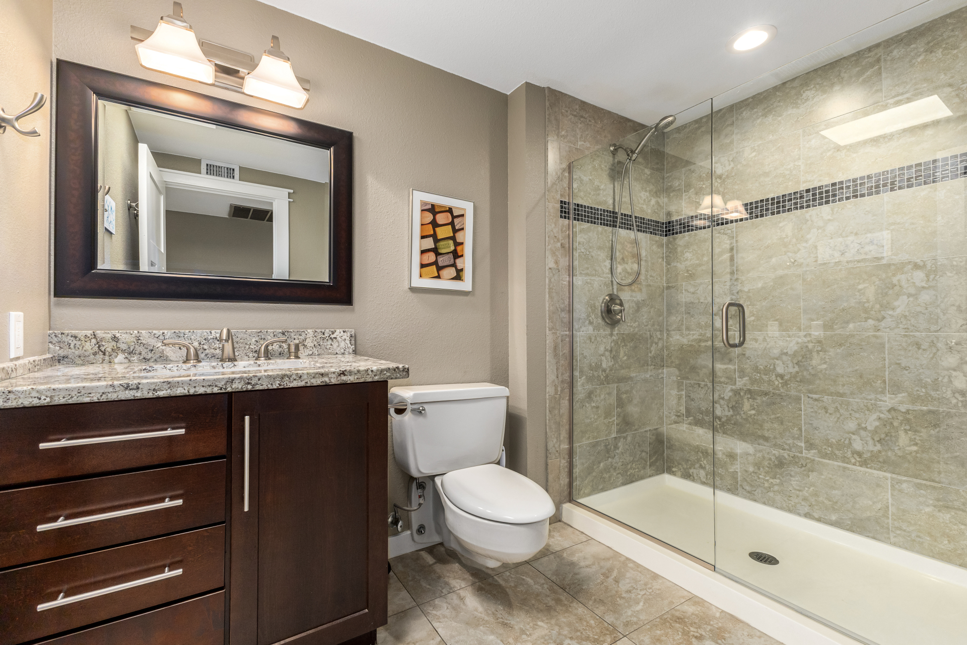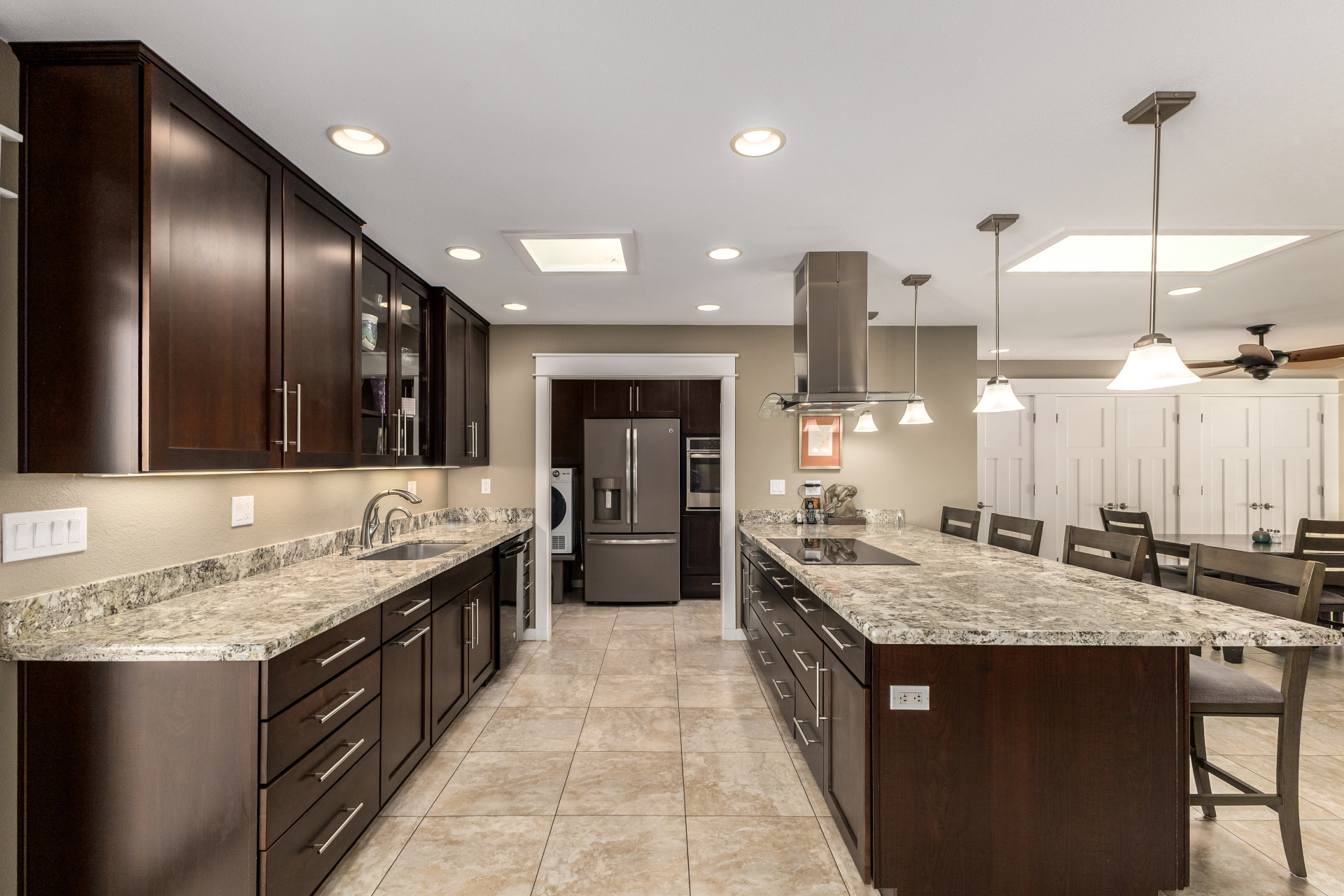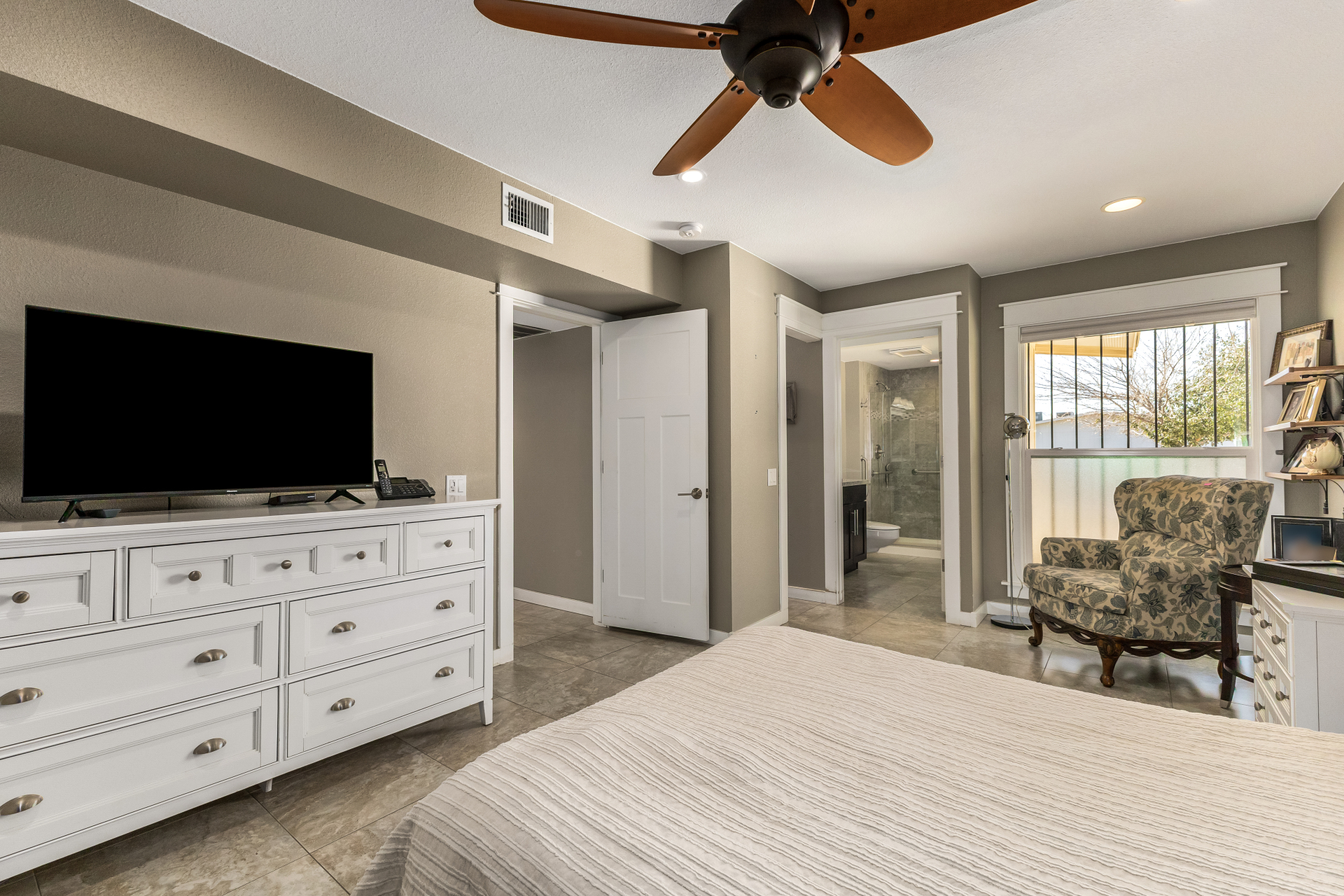 Centrally located in Sun City, Arizona, this 2-bedroom, 2-bath garden apartment is truly one-of-a-kind. It features an open floor plan with tile flooring, new baseboards throughout, flat white ceilings, newer dual-pane windows and sliders, and beautiful window furnishings. The updated kitchen boasts newer cabinetry with pull-outs and soft-close drawers, granite countertops, stainless steel appliances including an induction cooktop, and recessed / pendant lighting — perfectly combining style and functionality. Additional upgrades include replacing interior doors, recessed lighting throughout, inside laundry, and abundant of storage space. Both bathrooms have been tastefully updated with walk-in showers, raised vanities, updated cabinetry, granite countertops, mirrors, lighting, hardware, and toilets.