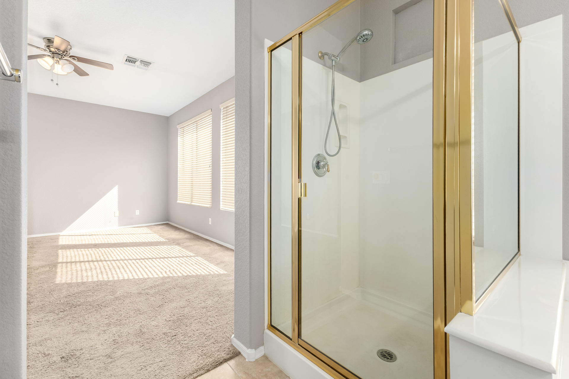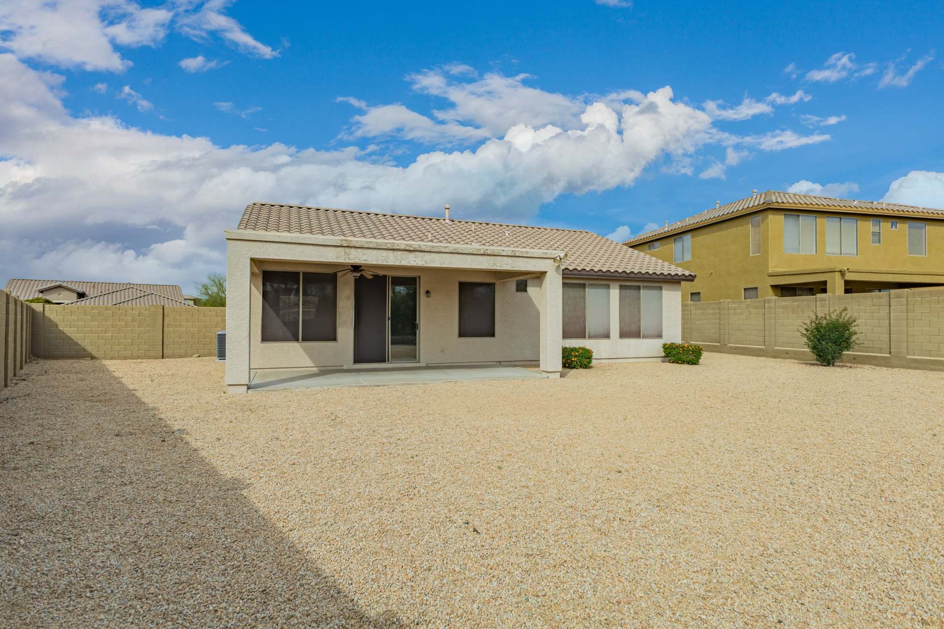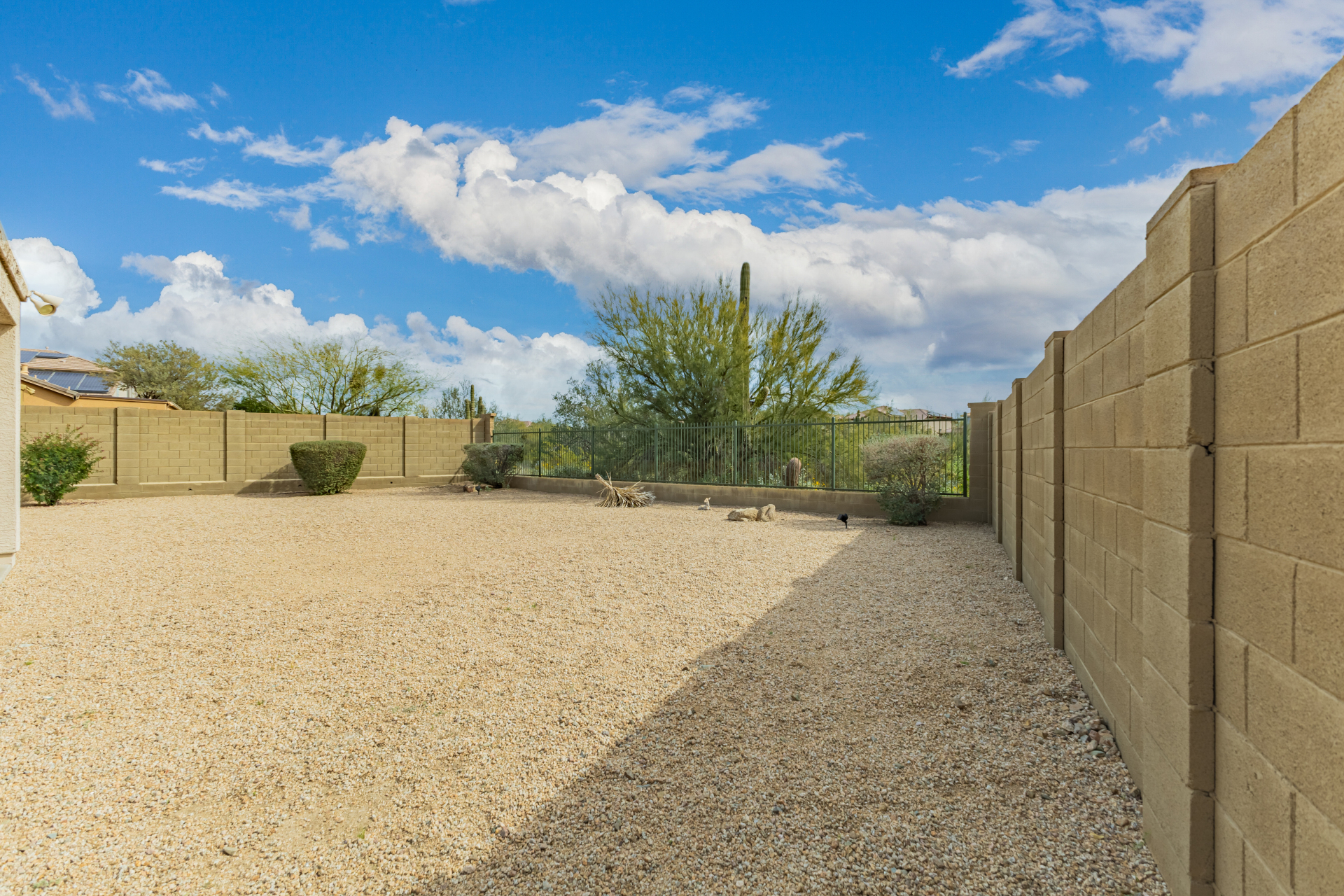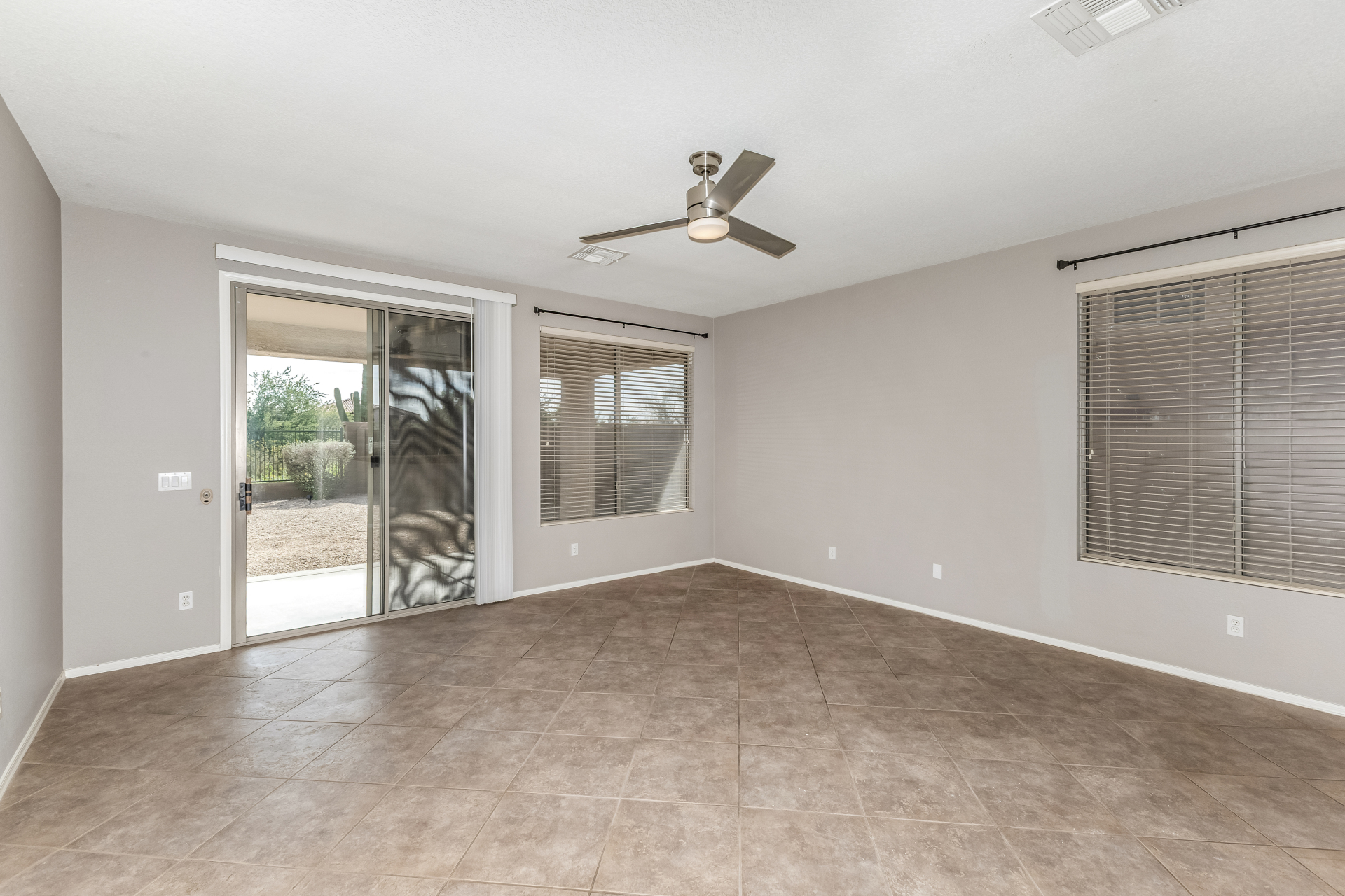 Experience this single-level home on a quiet cul-de-sac! A spacious 3-car garage + RV gate provide flexible parking space. Inside, tile flooring flows throughout, complementing the welcoming living room for entertaining. The eat-in kitchen shines with SS appliances, honey-tone cabinetry, generous counter space, & a convenient pass-through window breakfast bar. Retreat to the main bedroom featuring a private bathroom designed for relaxation with its separate tub/shower, dual sinks, & a walk-in closet. Double doors open to a nice-sized den! Enjoy a sizable backyard with a covered patio, view fence, & plenty of room to add a pool or bring your creative vision to life. Ideally located just minutes from parks, schools, dining, & local amenities. This home is ready to be yours today!