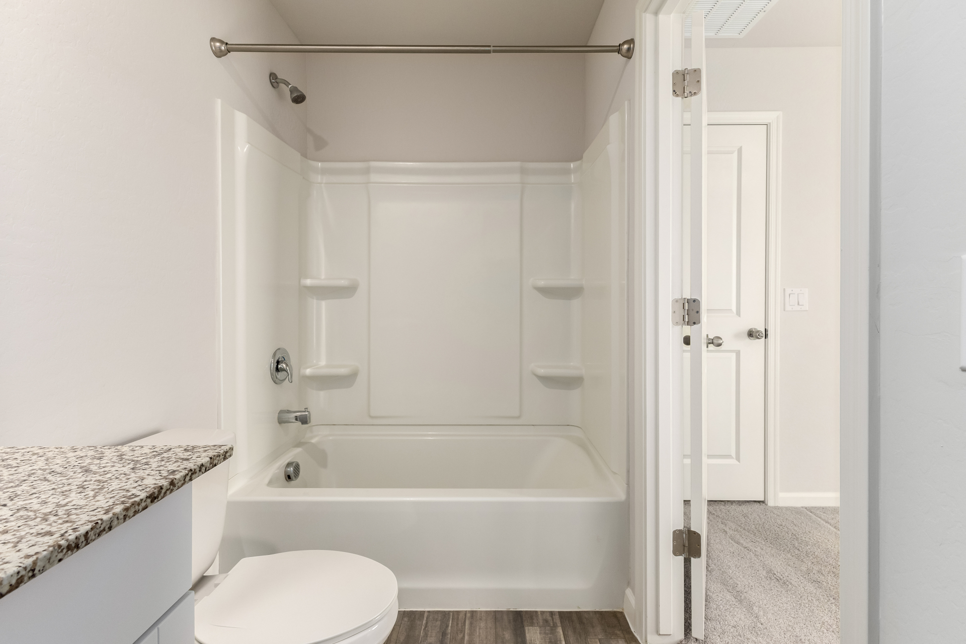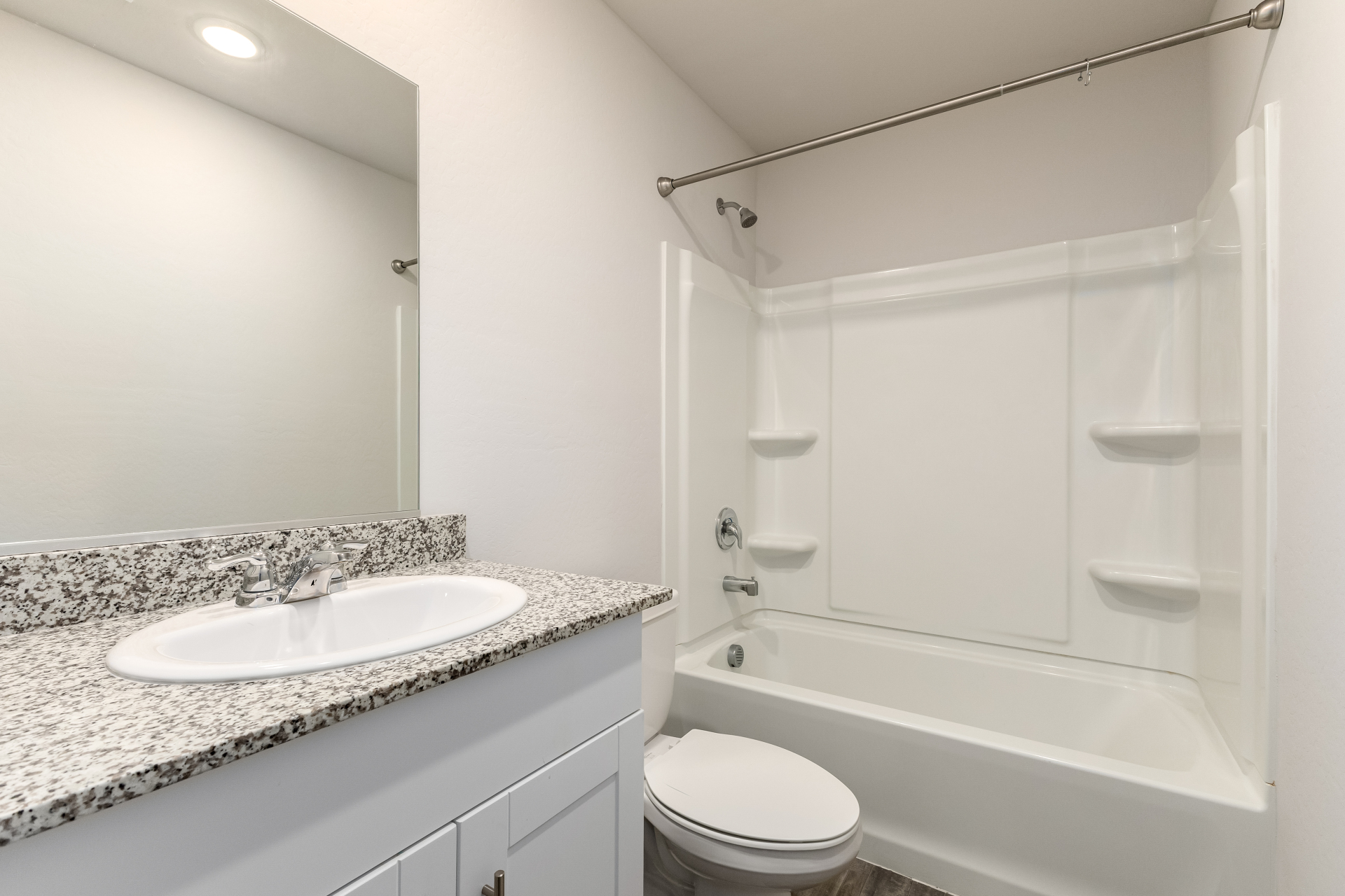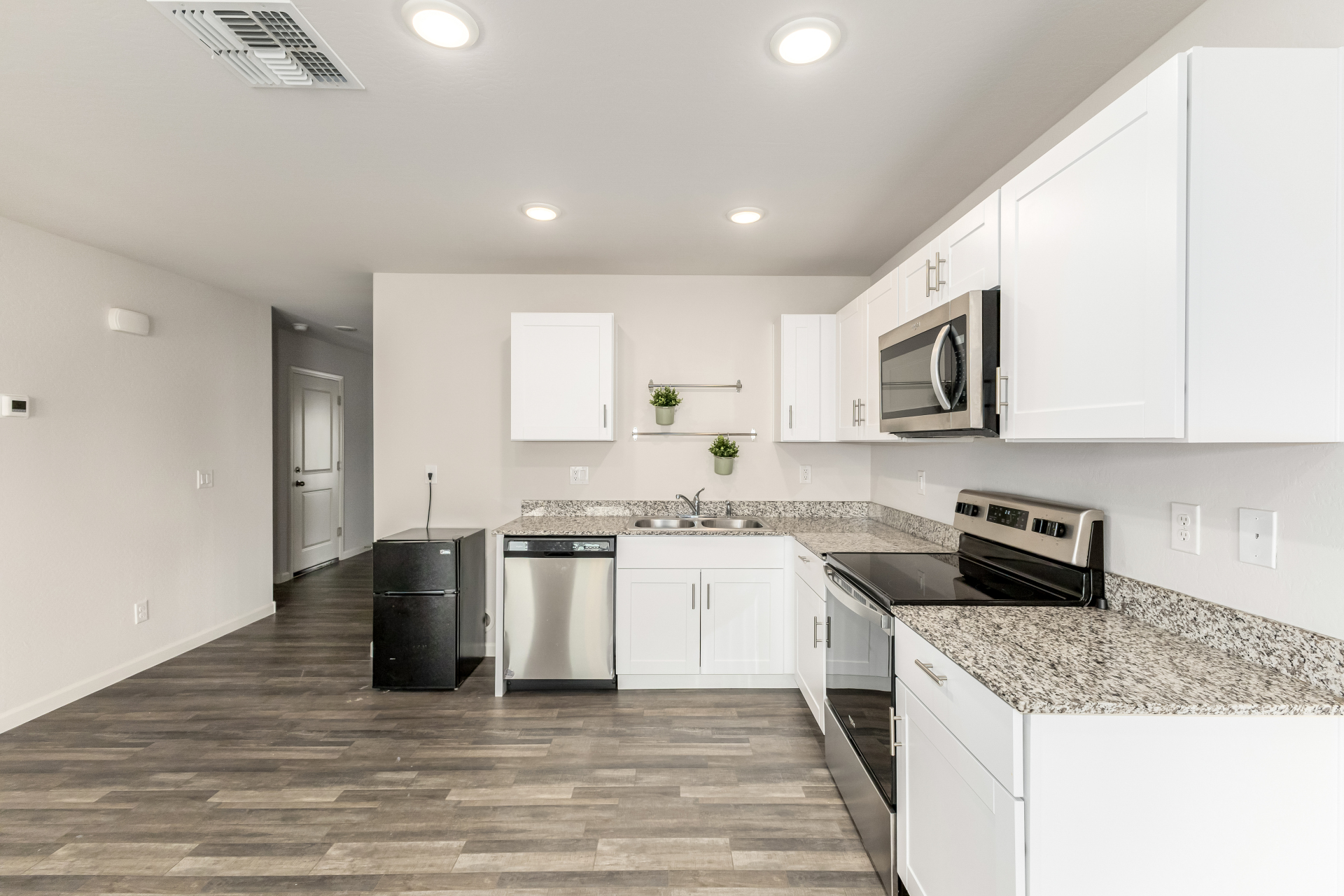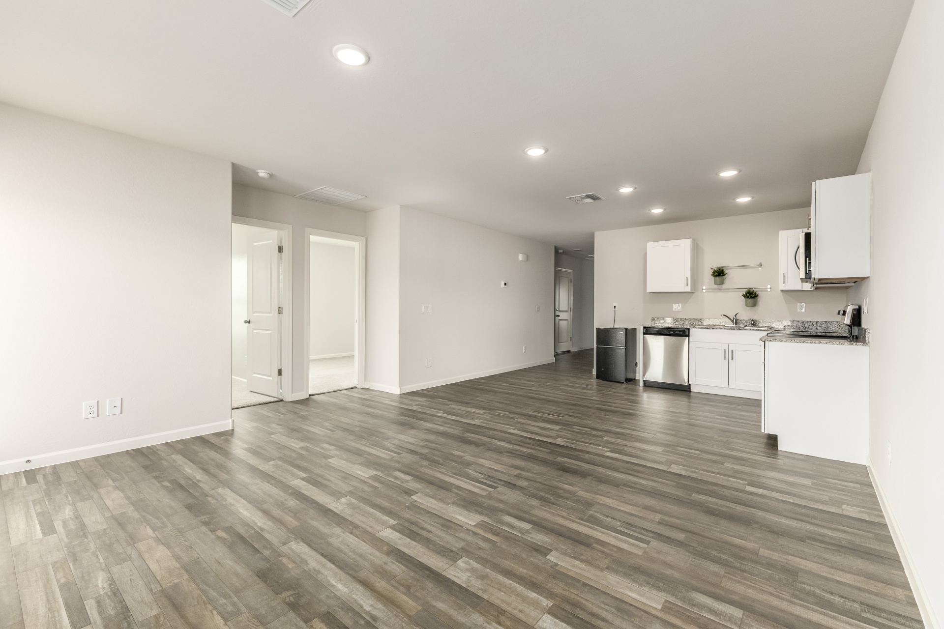 Discover comfort and convenience in this delightful 4-bedroom gem featuring a 1-car garage! Inviting interior showcases wood-look flooring, neutral palette, and window blinds throughout. At the heart of the home is a large open floor plan filled with sunshine, perfect for everyday living and creating lasting memories. Spotless kitchen comes with recessed lighting, stainless steel appliances, white cabinets, and granite counters, making meal prep both stylish and functional. Sizable primary bedroom promises a good night's sleep, complete with plush carpet and a private bathroom with a shower/tub combination. Spacious backyard is an ideal setting for hosting lively gatherings with loved ones and friends. Don't let this amazing deal slip by! Hurry!