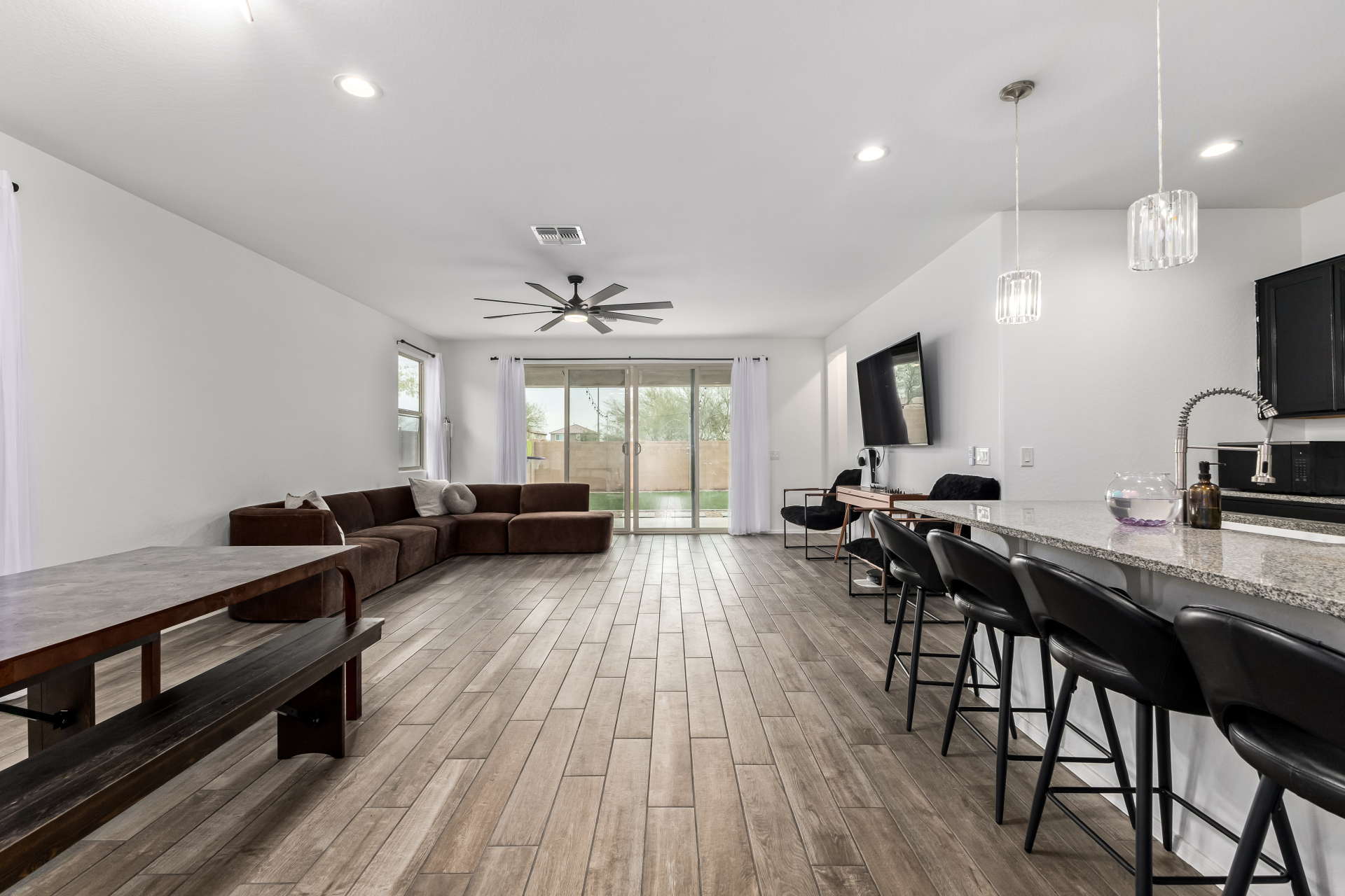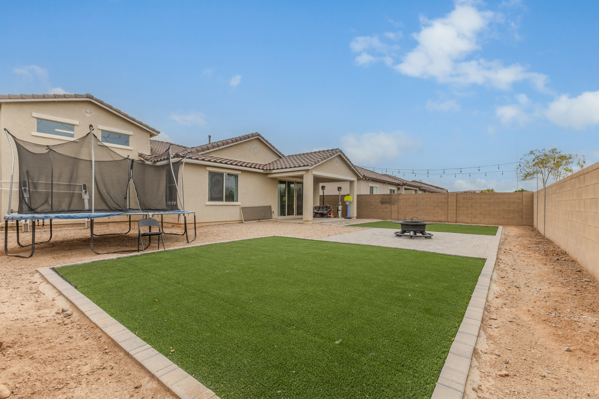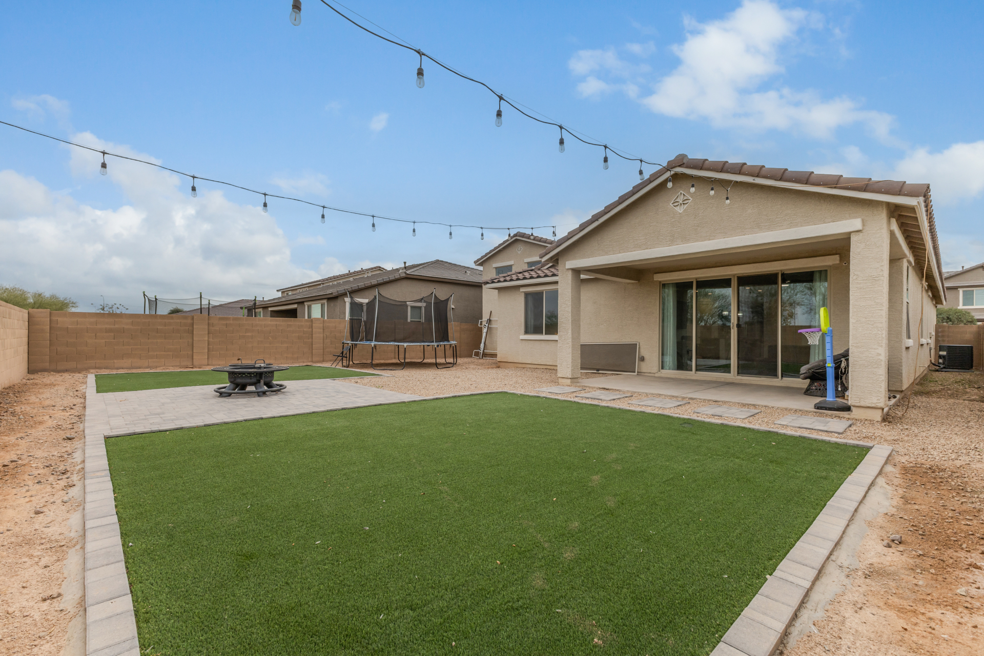 This stunning single-story home awaits you in the desirable Tuscano! The gorgeous façade, manicured landscape, and 3-car plus RV garage are just the beginning! Inside, you'll find a bright and open layout with wood-look tile floors, contemporary lighting, abundant natural light, and stylish neutral colors. The impeccable kitchen is complete with rich black cabinetry, sleek granite counters, stainless steel appliances, and an island for those casual conversations and quick bites. The main bedroom is a true retreat, boasting a walk-in closet and a private bathroom. The backyard includes a covered patio, a nice seating space with pavers, and artificial turf. Come see it before it's gone!