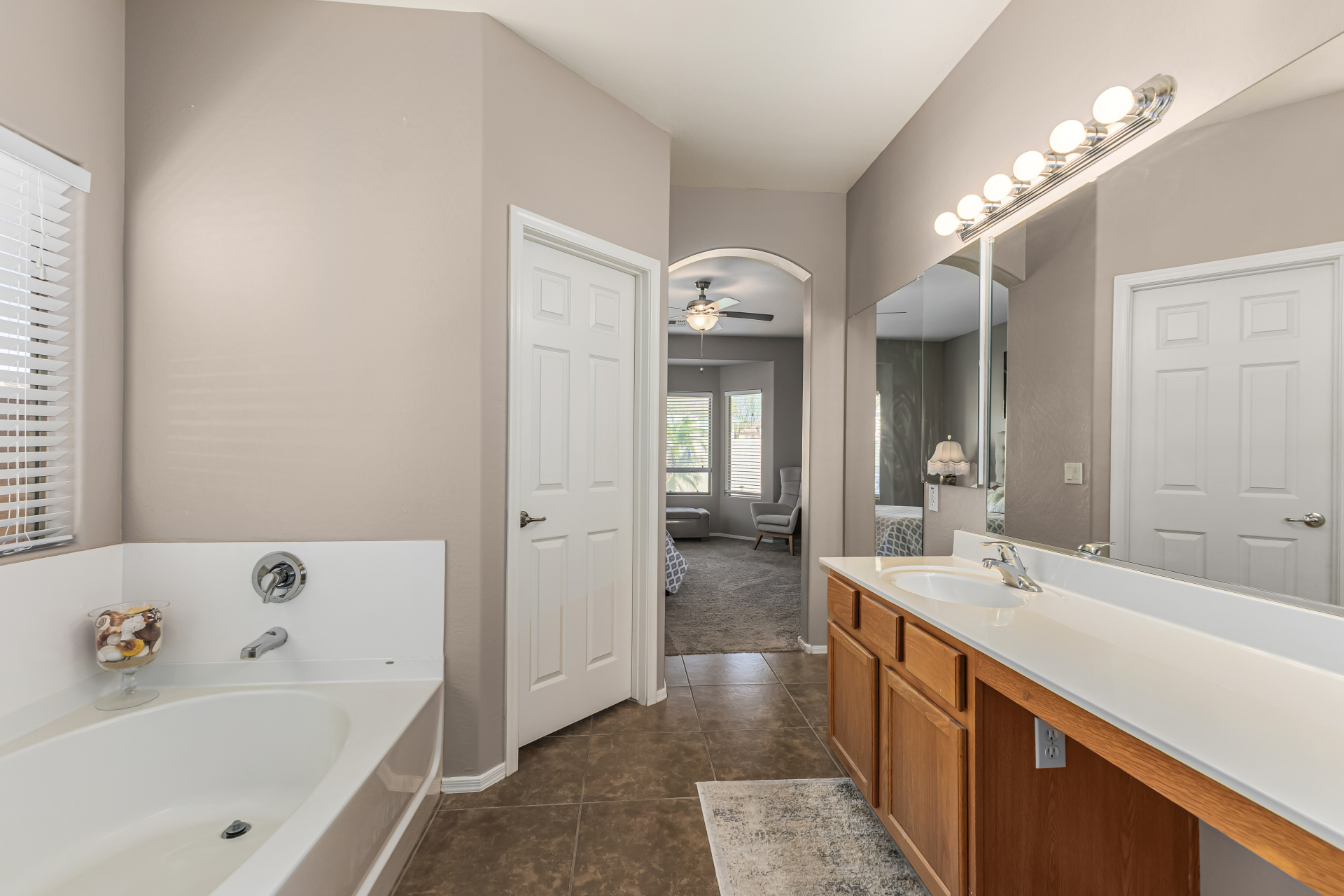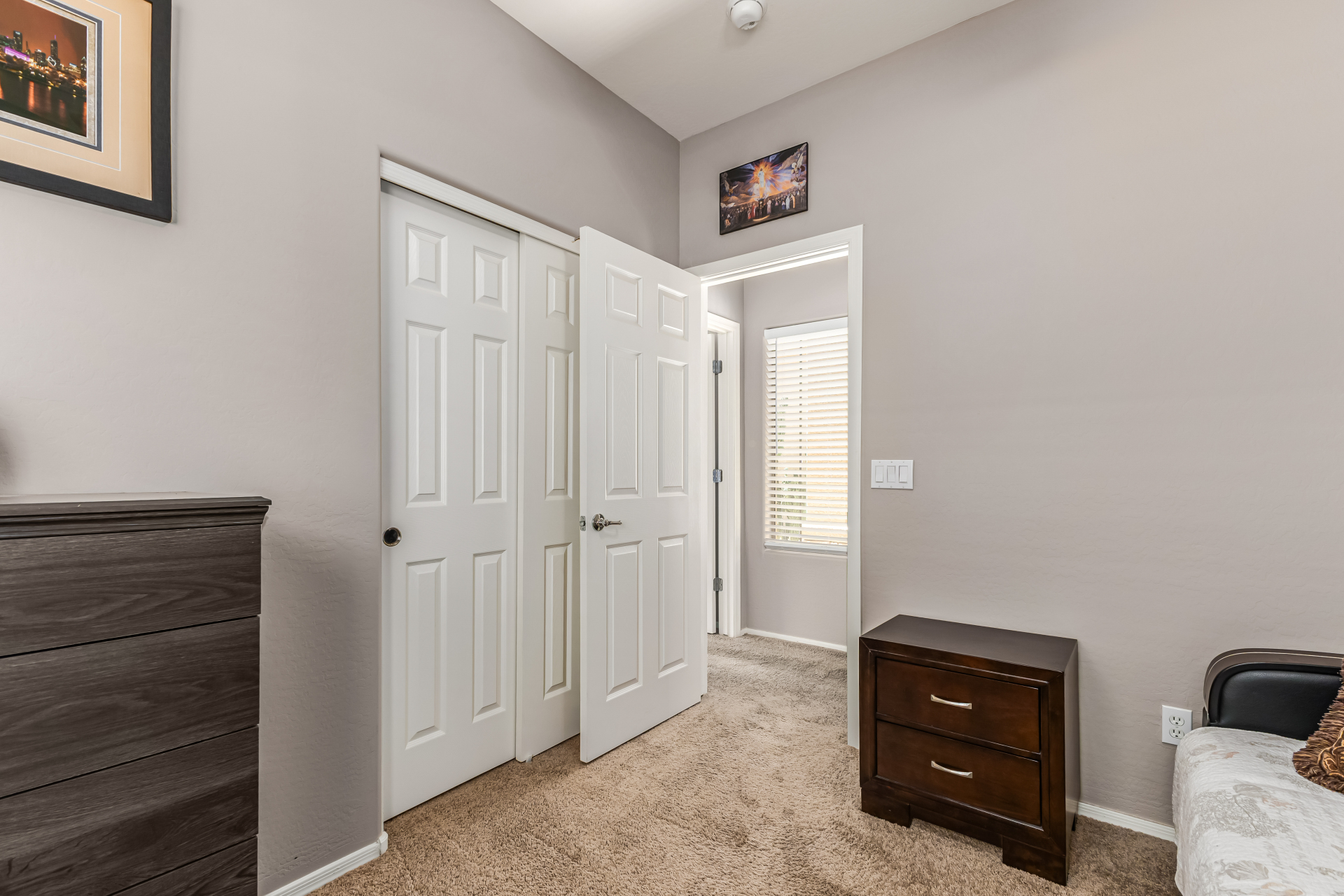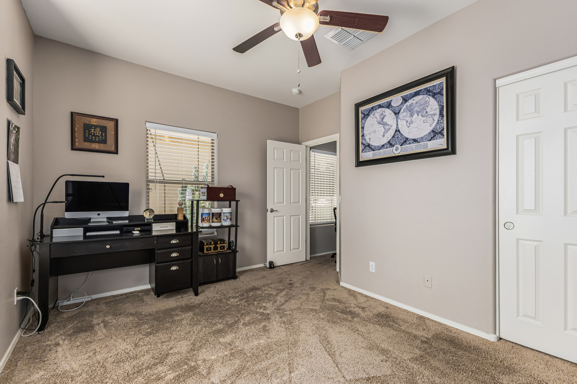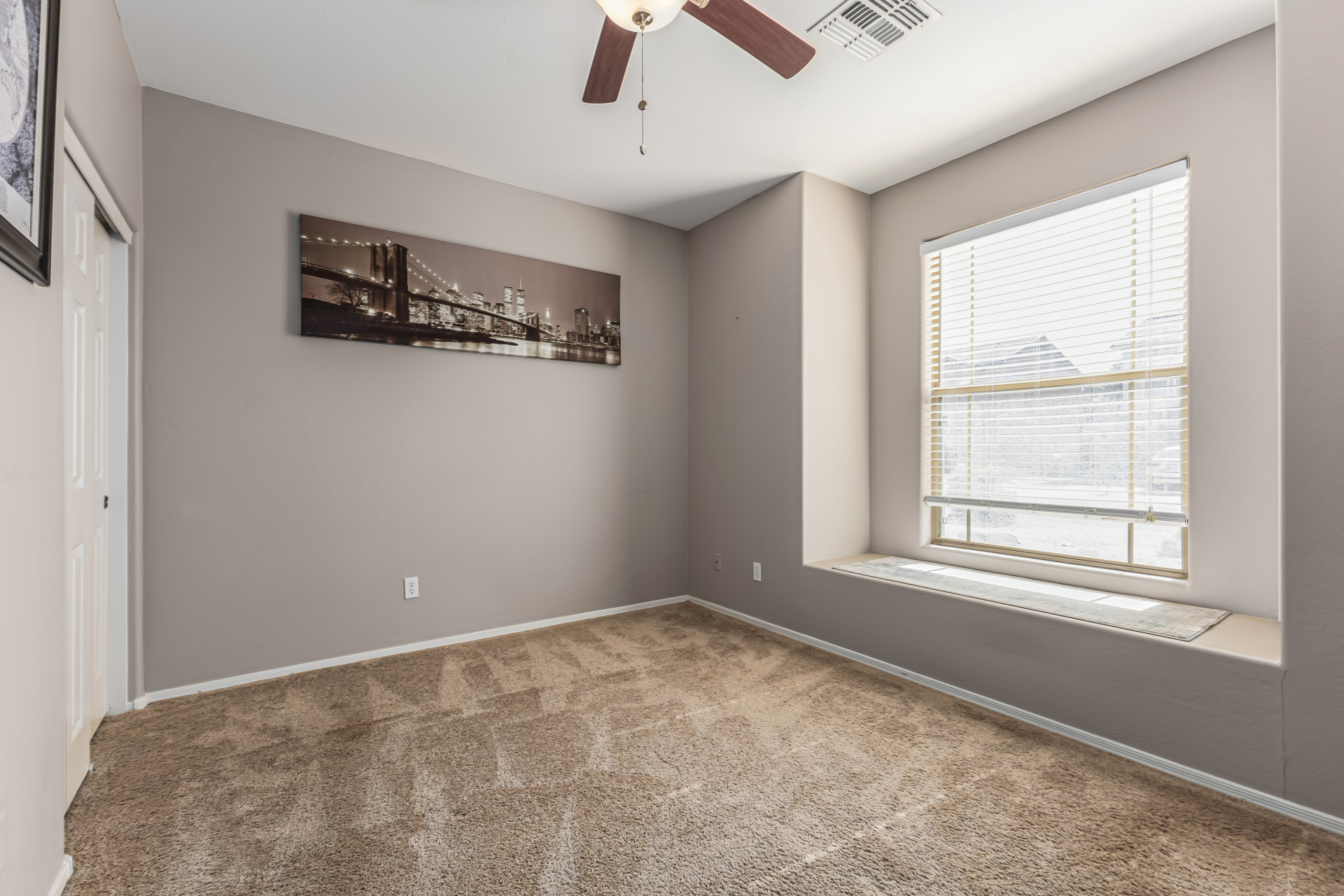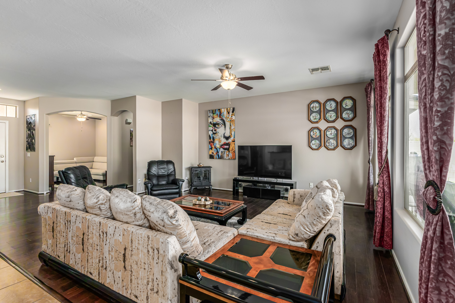 Look no further! This fantastic 3 bed, 2 bath residence in Copper Basin is the one for you! Tasteful stone accents, a no-fuss desert landscape, and a 2 car garage are just the beginning. Come inside to discover a spacious great room w/elegant wood-look flooring in all the right places, high ceilings, and a neutral palette. The eat-in kitchen is equipped w/ample cabinetry, a pantry, granite counters, tile backsplash, built-in appliances, and a two-tiered island. Enjoy a good night's sleep in the primary bedroom, boasting soft carpet, a lovely bay window, and a full bath w/dual sinks. You'll also find a cozy open den ideal for a reading nook. Lastly, the wonderful backyard includes a covered patio, extended seating area, built-in BBQ, artificial turf, and a sparkling blue pool! Act now!