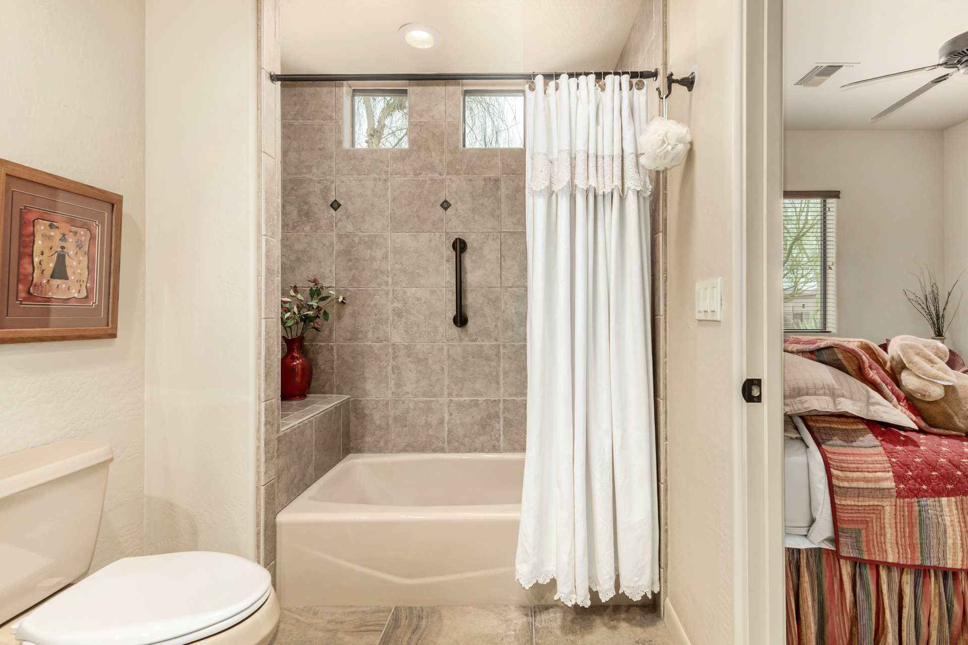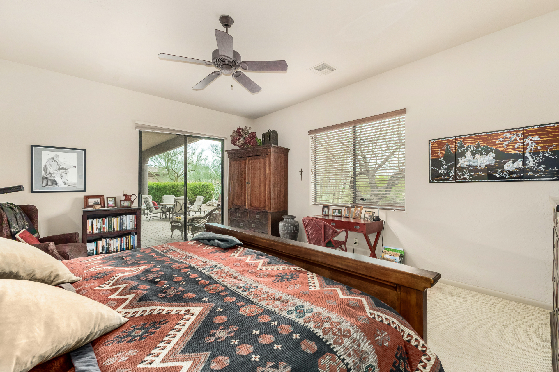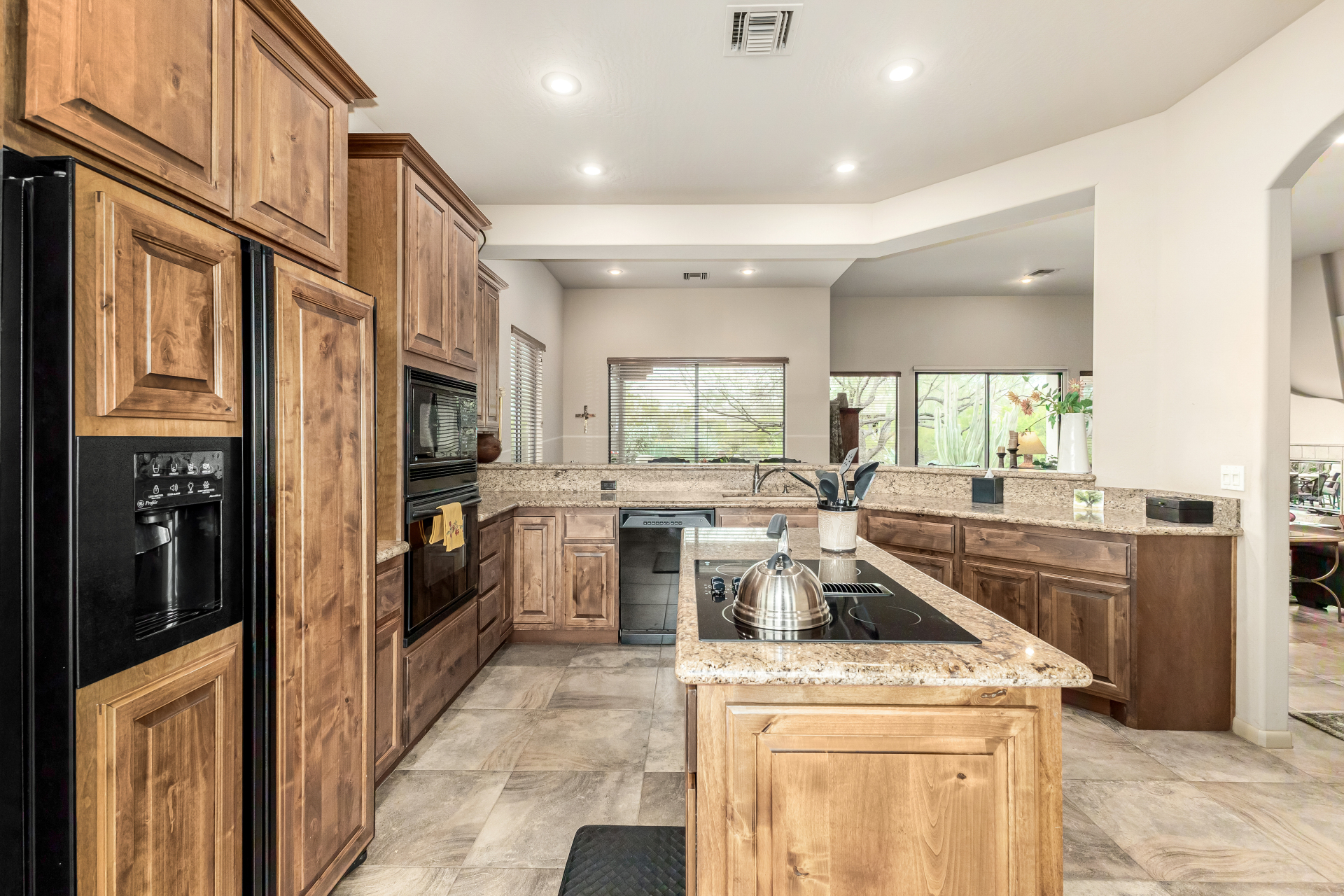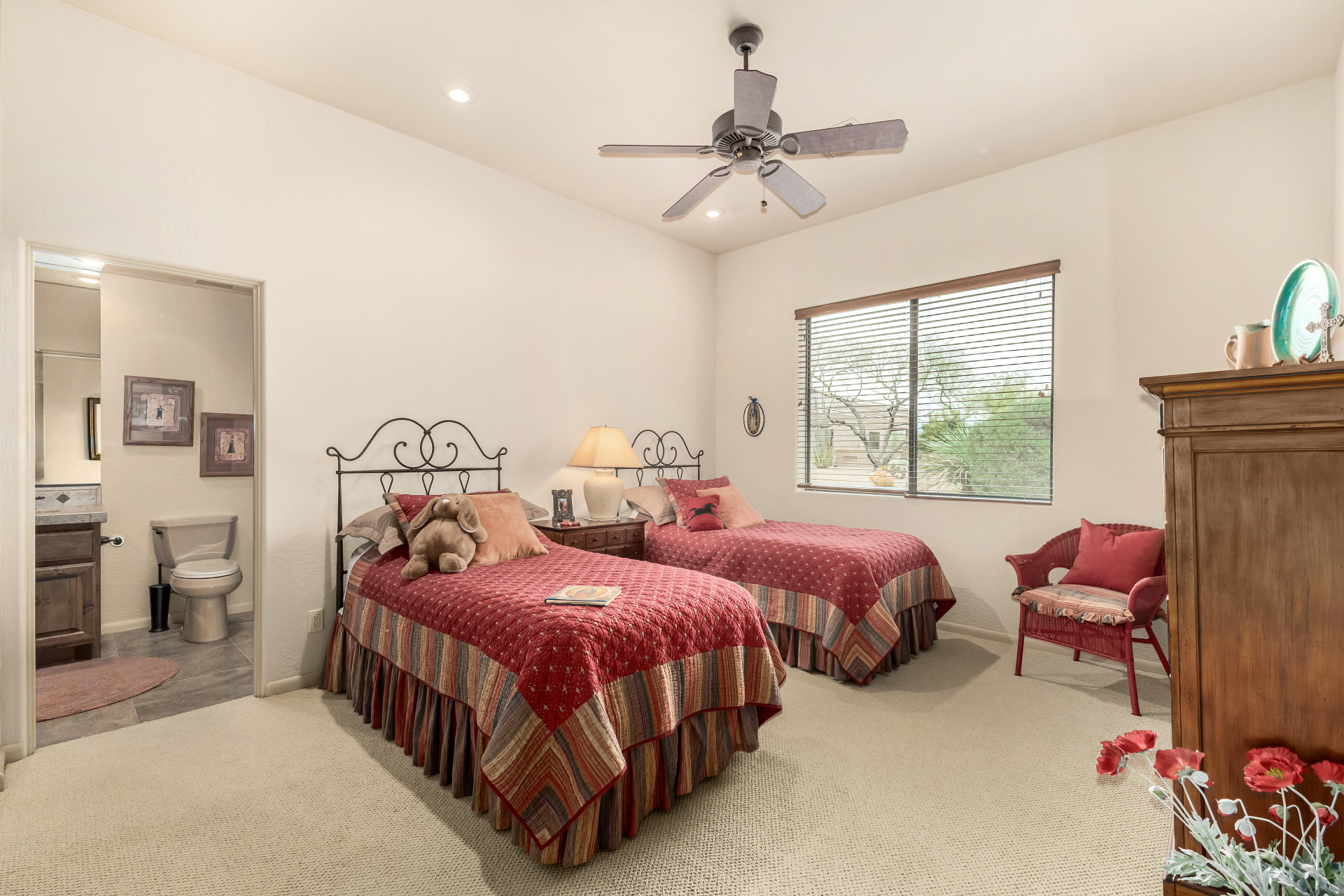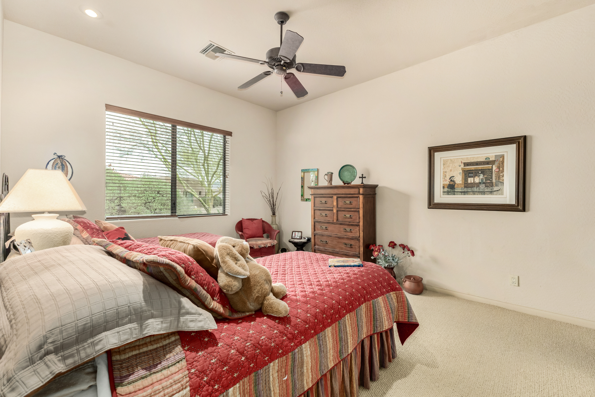Discover the allure of this exquisite 2-bedroom territorial-style home with a 2.5-car garage and timeless curb appeal. Inside, sleek tile floors guide you into a welcoming living room adorned with elegant wall niches and a cozy gas fireplace perfect for relaxing evenings. Enjoy intimate dinners in the formal dining area, then gather in the beautifully appointed kitchen featuring rich wood cabinetry, granite counters, tile backsplash, wall ovens, essential appliances, a center island, breakfast bar, and a sunny breakfast nook. The serene primary suite offers direct backyard access and a private bath with dual sinks, a soaking tub, and a spacious walk-in closet. A versatile den makes an ideal office or creative space, while the laundry room includes a convenient utility sink...