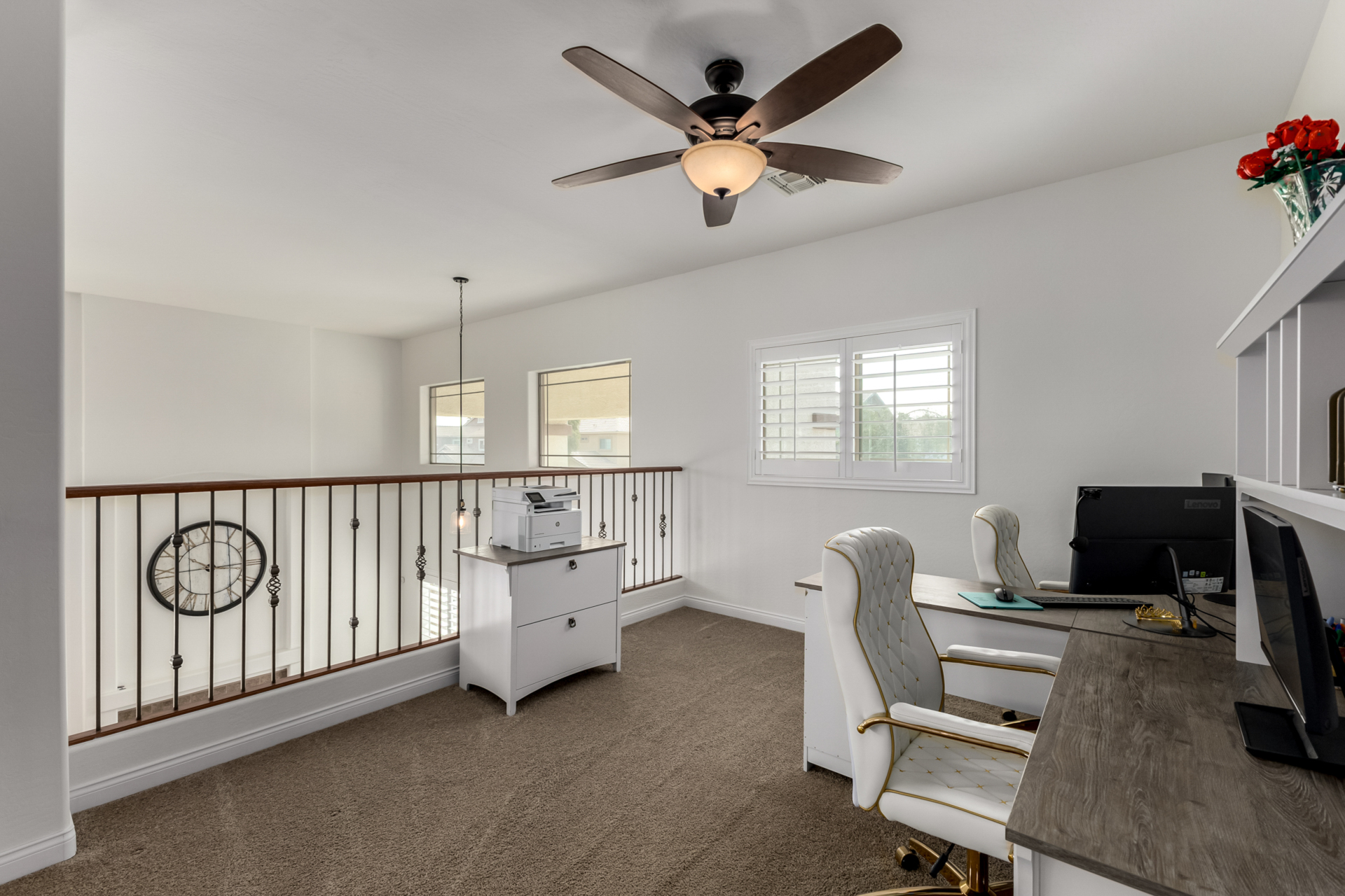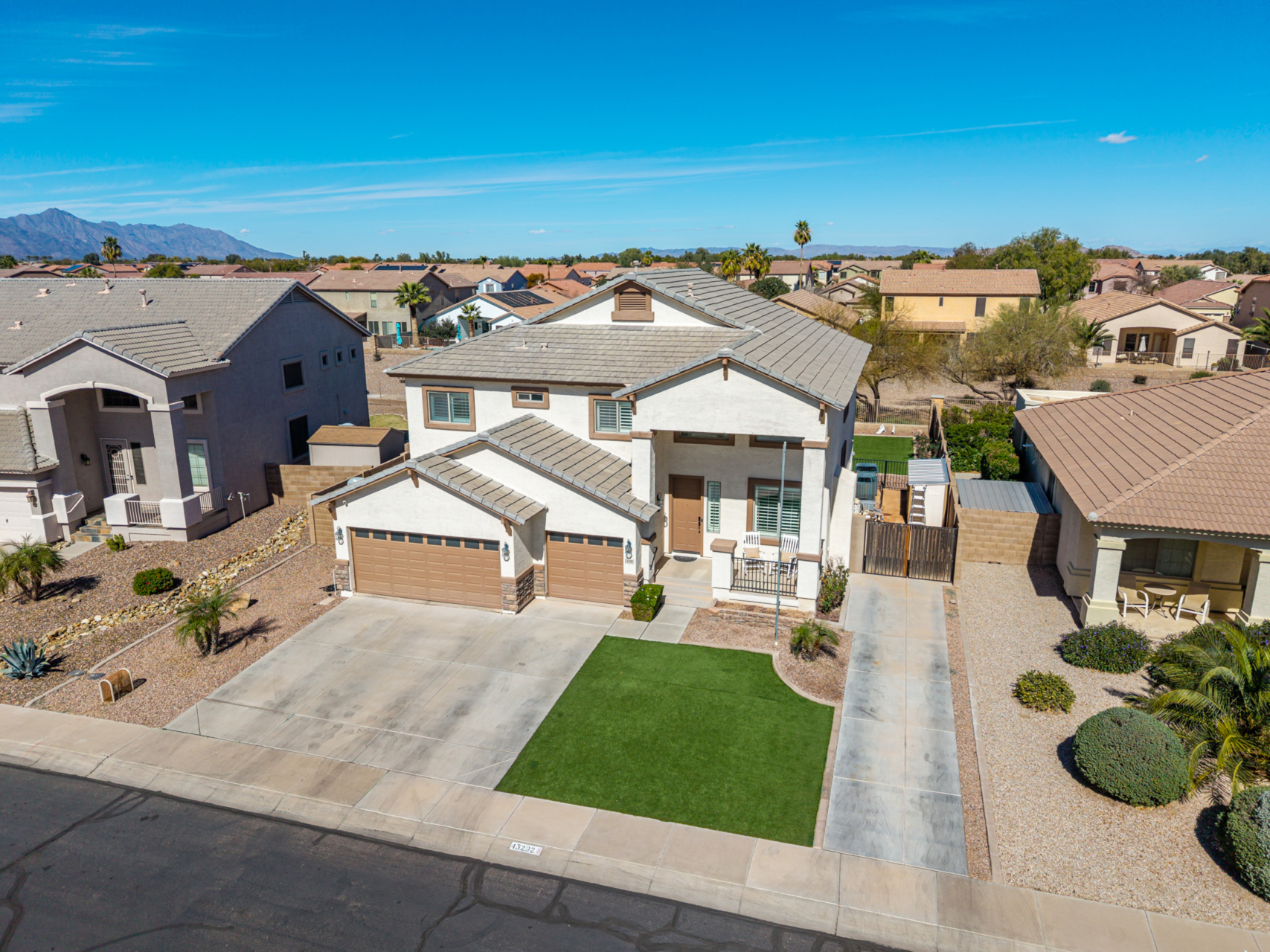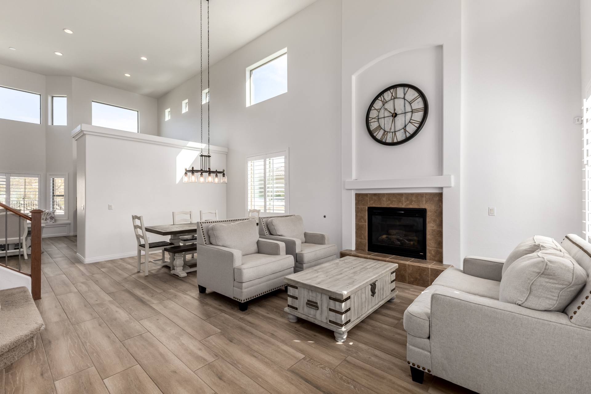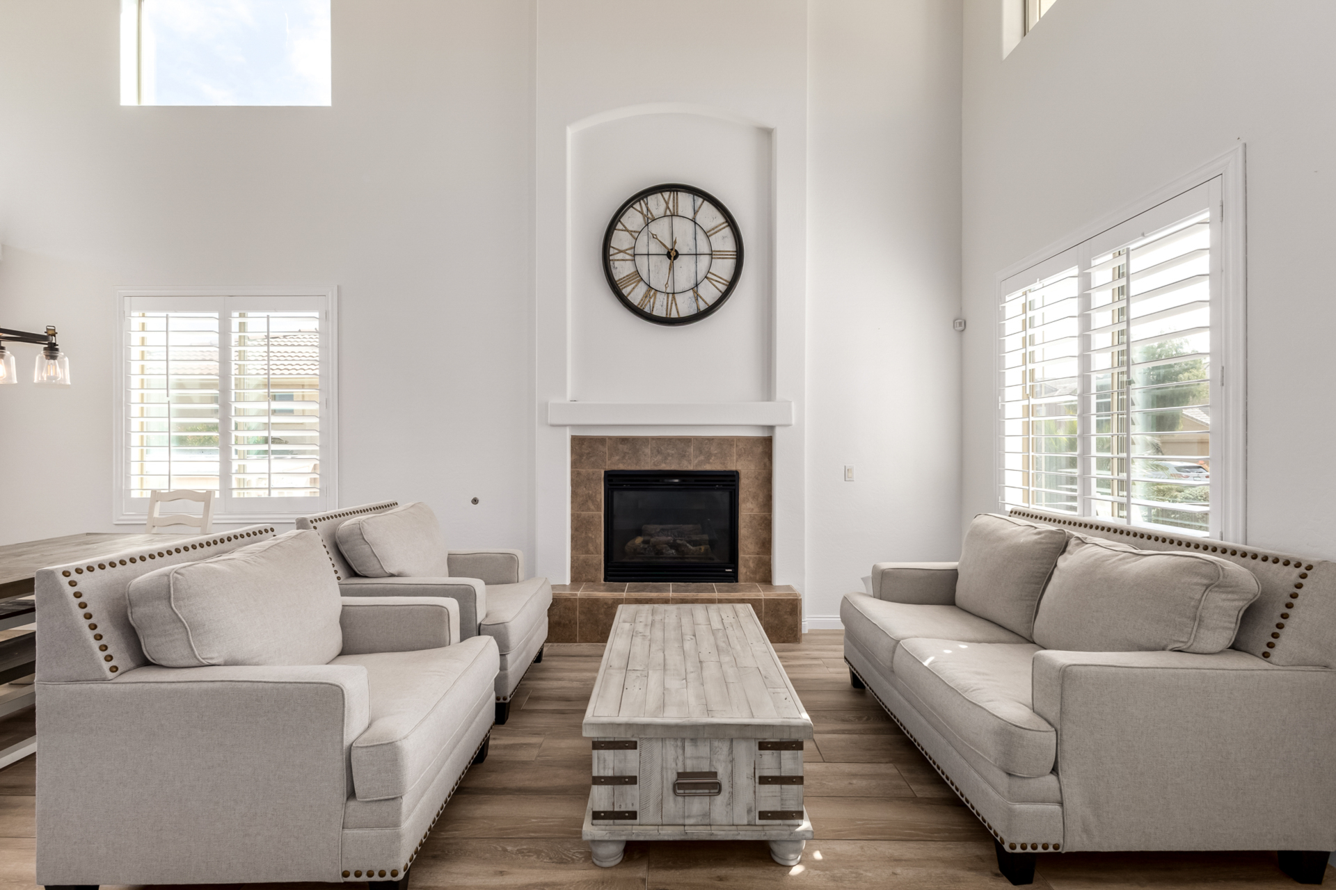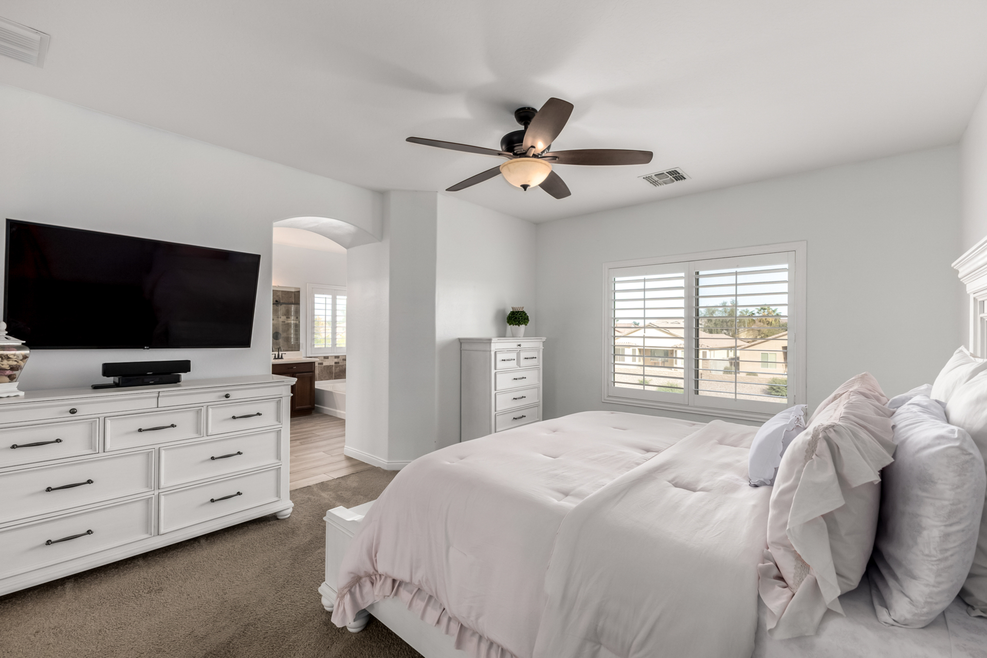DESERT RETREAT WITH ALL THE EXTRAS! This sought-after Hacienda tri-level offers a versatile, open-concept layout featuring 4 bedrooms plus a loft and 3 full bathrooms, including a convenient downstairs bedroom and bath. Enjoy formal living and dining spaces highlighted by a cozy gas fireplace, along with an expansive great room designed for everyday living and entertaining. The 3-car garage provides ample storage and parking. The chef-inspired kitchen is equipped with granite countertops, a marbled tile backsplash, stainless steel appliances, and a charming bay window seat with built-in storage. Bathrooms have been beautifully updated with tiled surrounds, sleek glass enclosures, and oil-rubbed bronze fixtures for a refined finish.